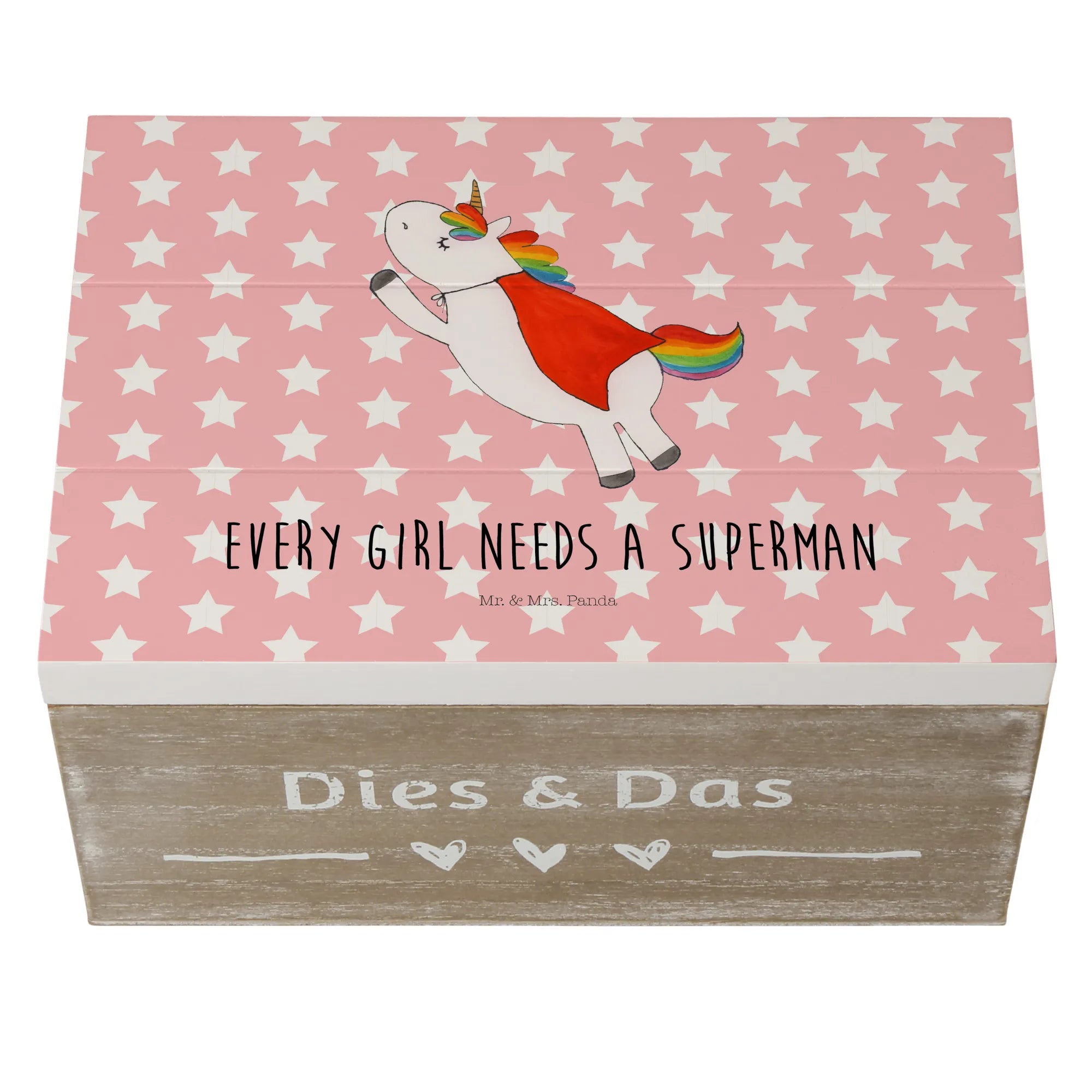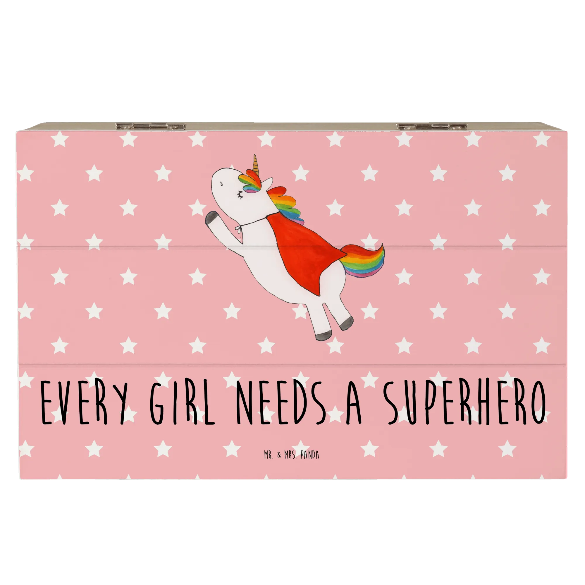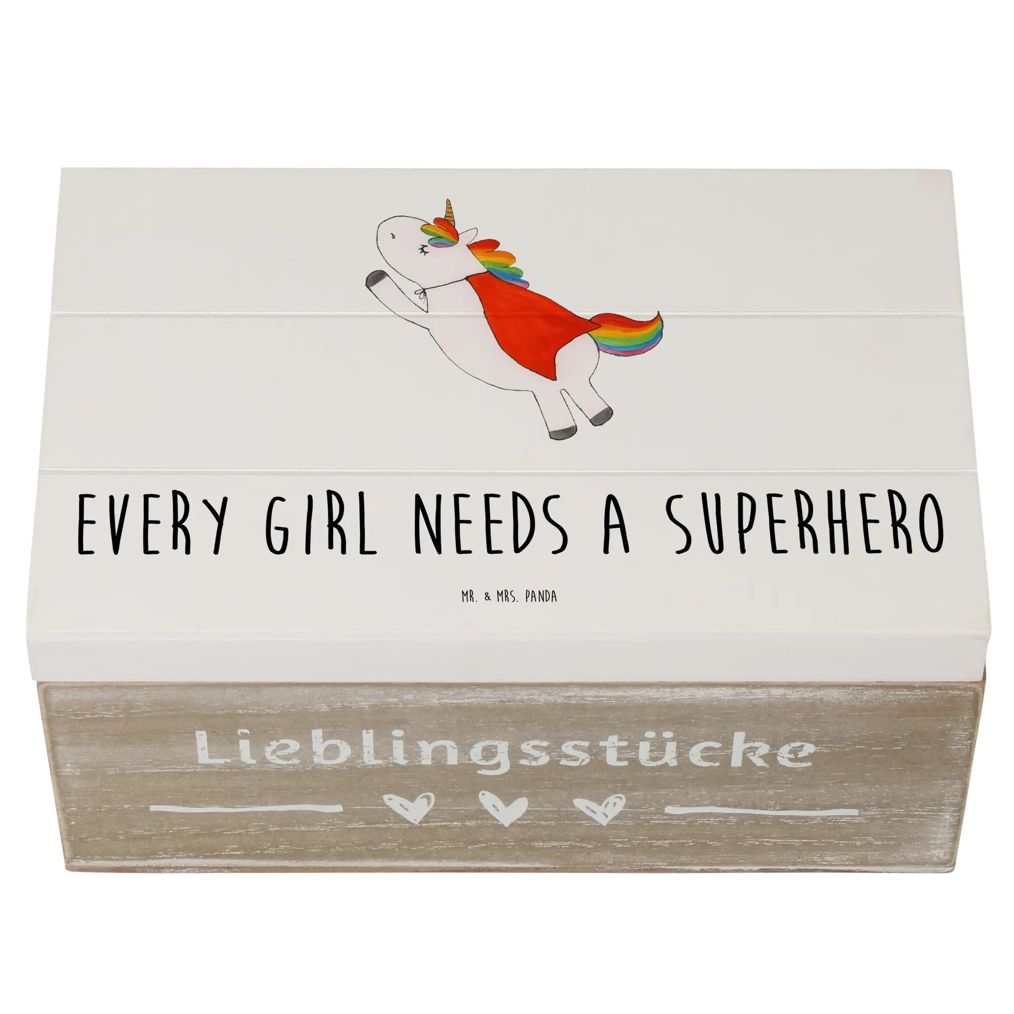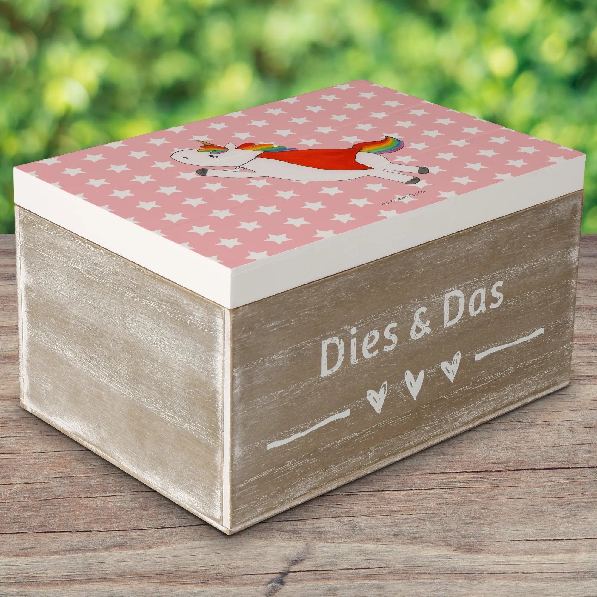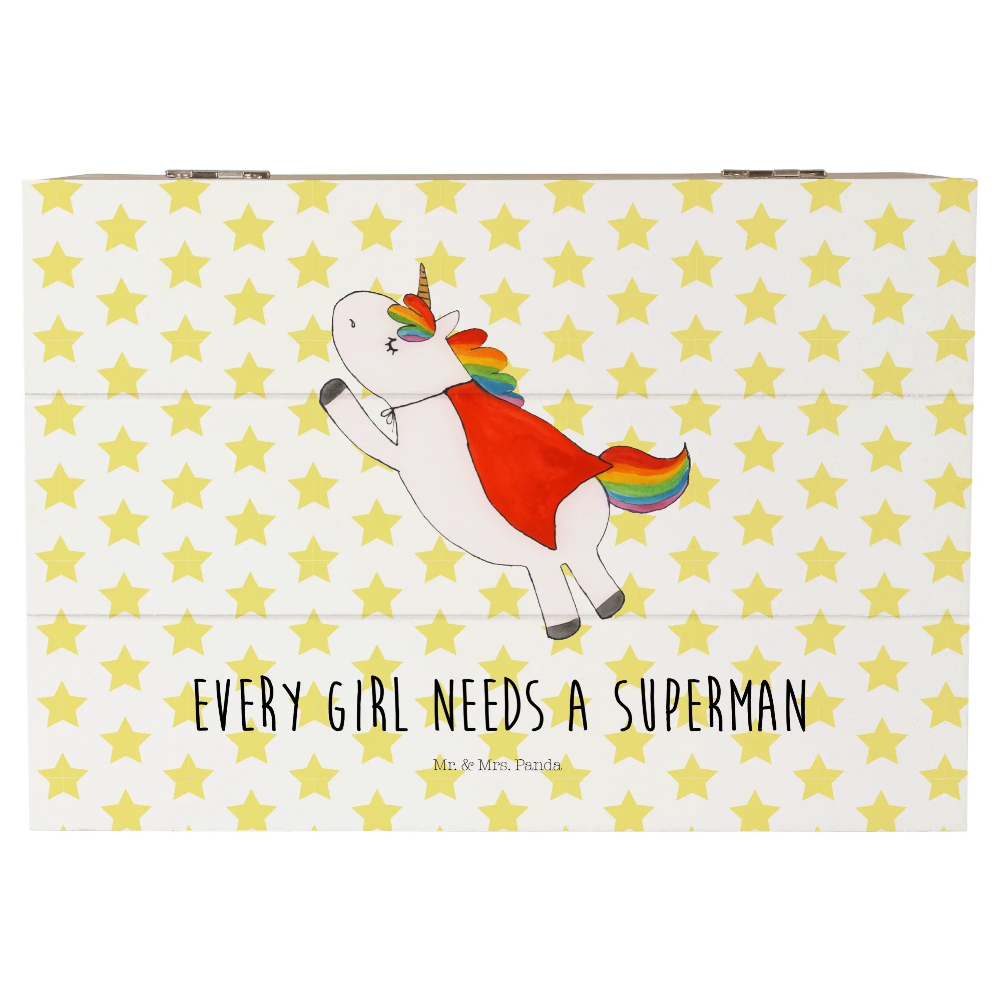 Skrzynia drewniana Jednorożec Super - 22 x 15 cm - z napisem - biały