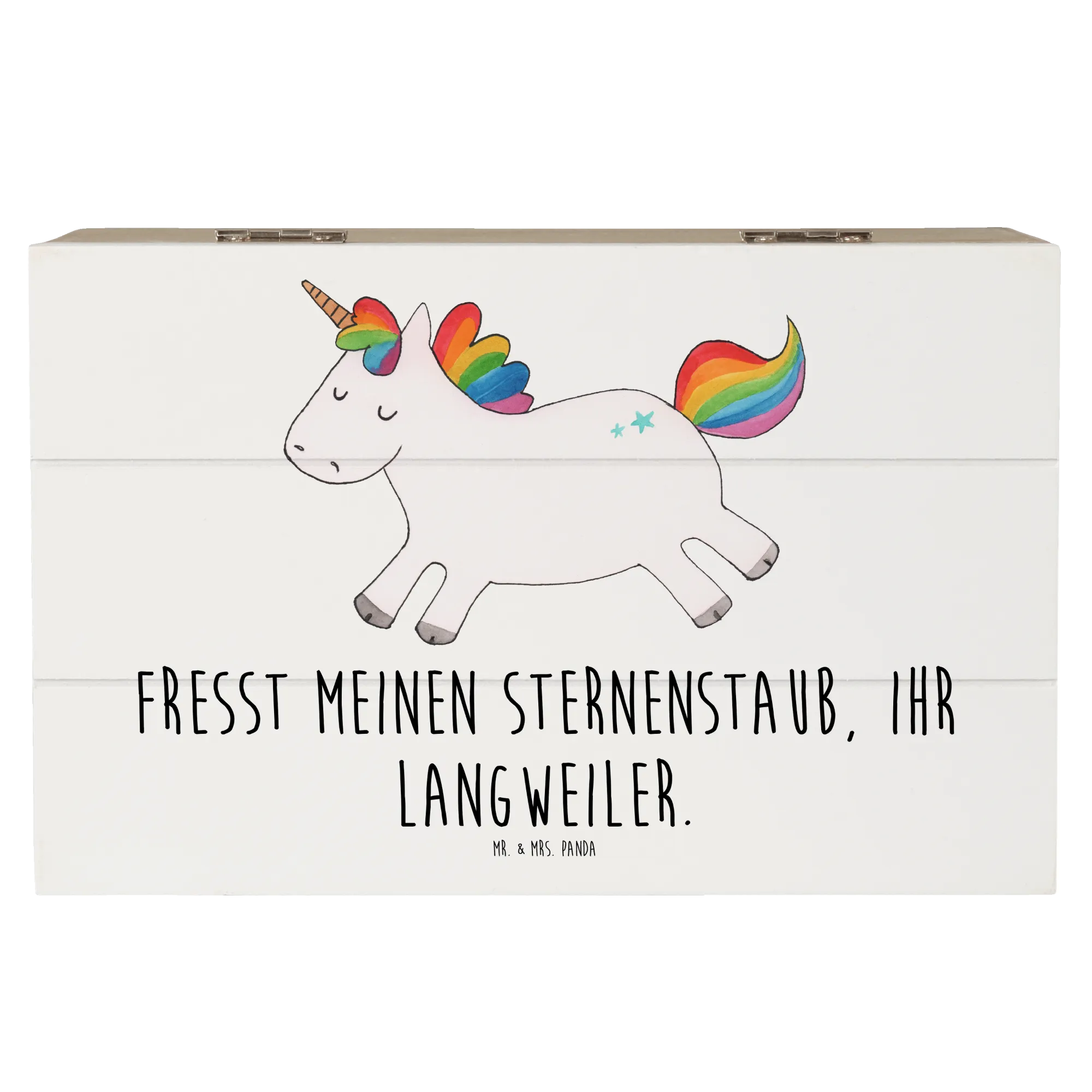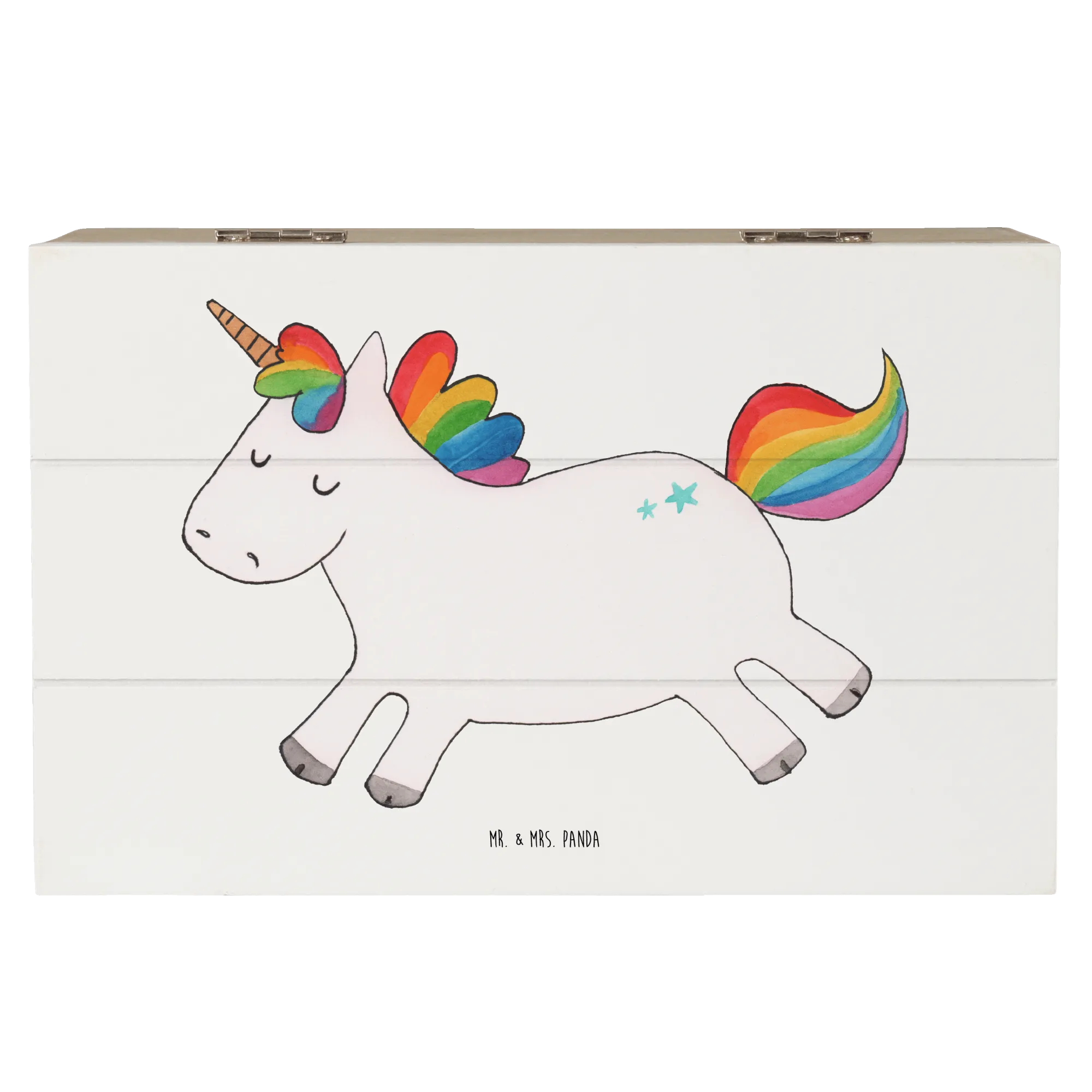 Skrzynia drewniana Jednorożec Szczęśliwy - 22 x 15 cm - z napisem - biały