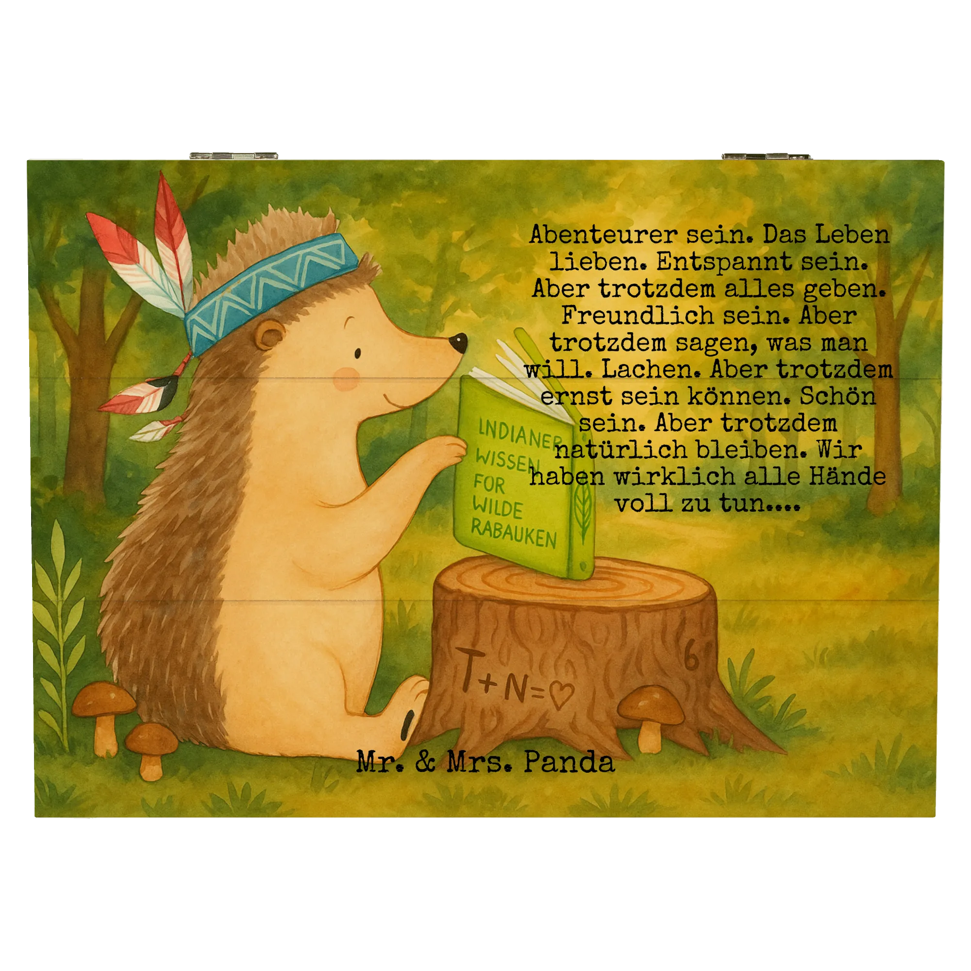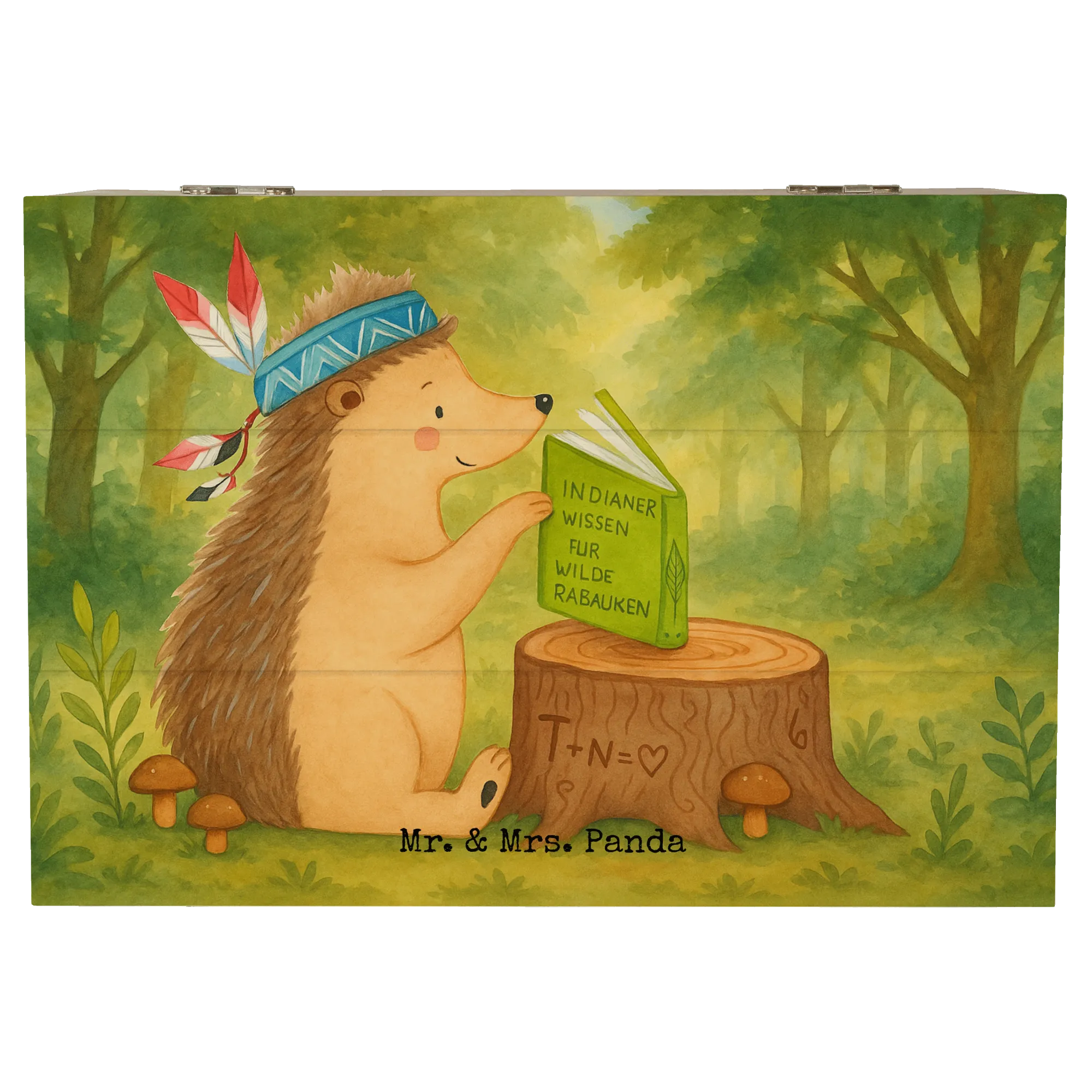 Skrzynia drewniana jeż Ozdoba z piór Design - 22 x 15 cm - z napisem