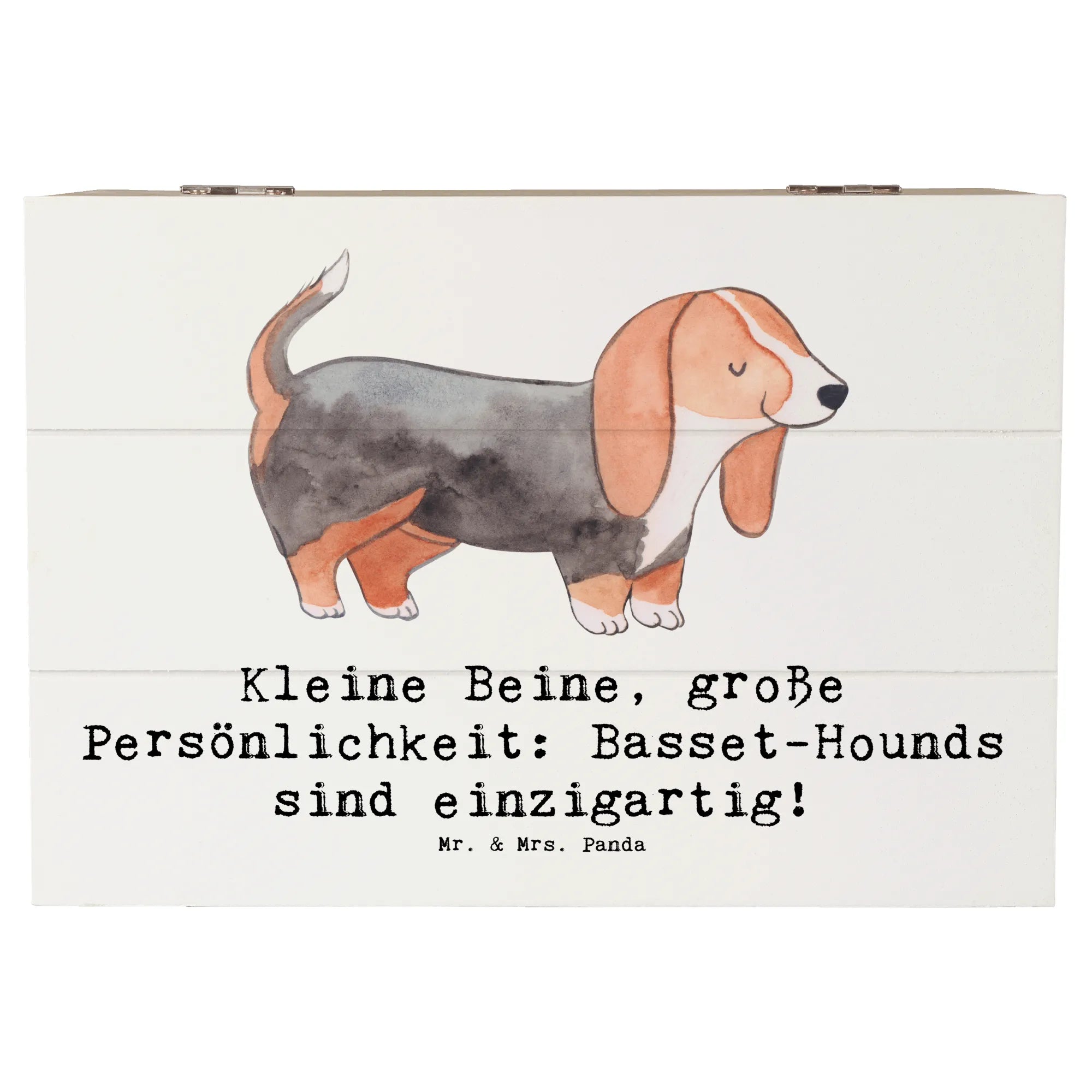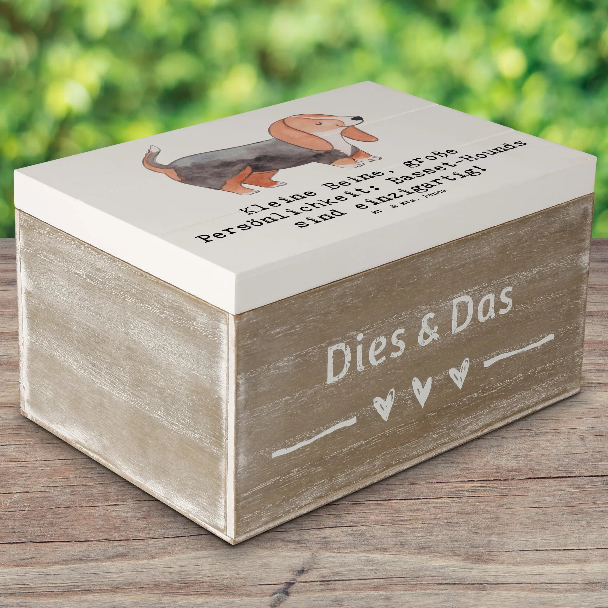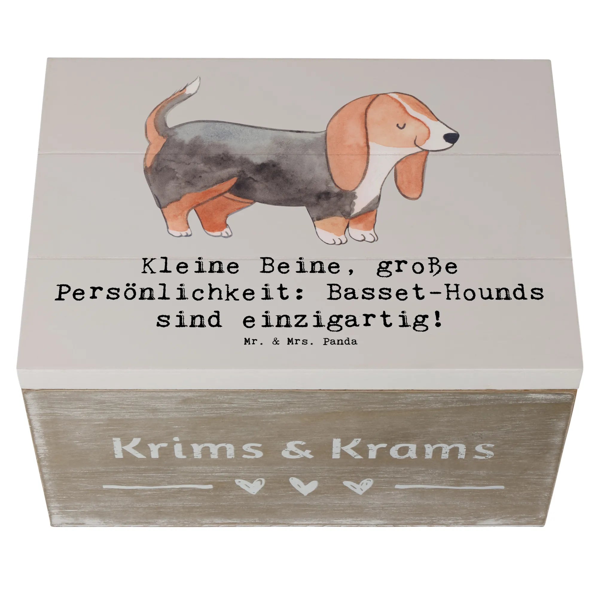Skrzynia drewniana Kleine Beine, große Persönlichkeit: Basset-Hounds sind einzigartig! - 19 x 12 cm - Pastelowy szary