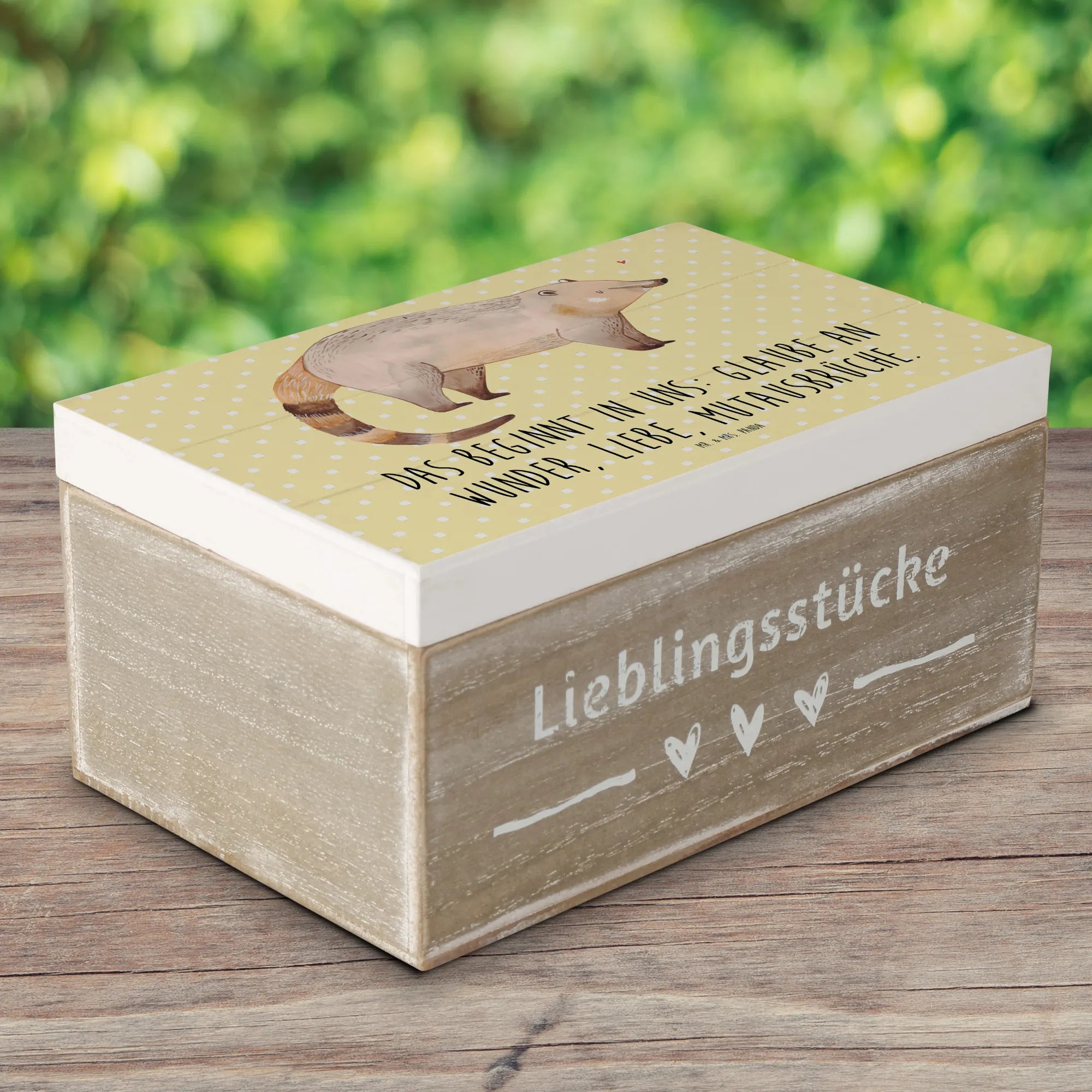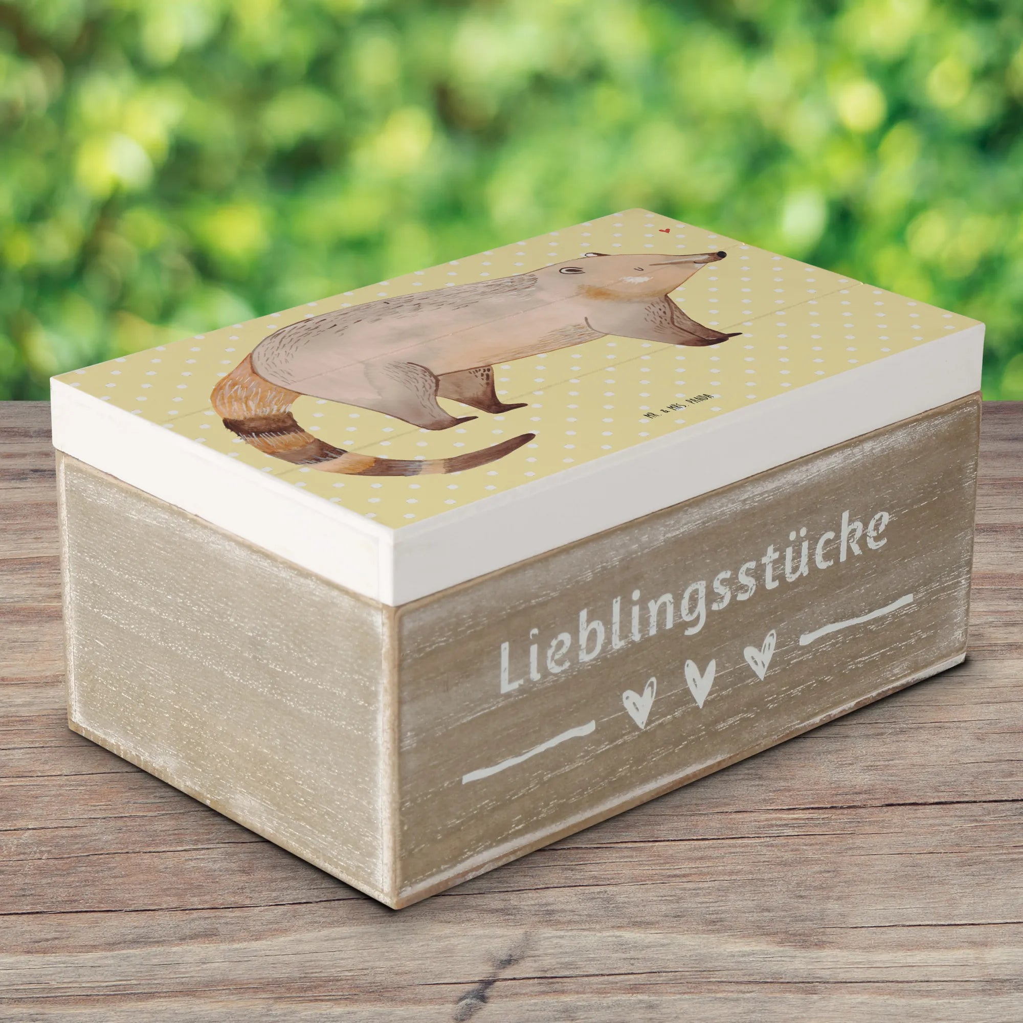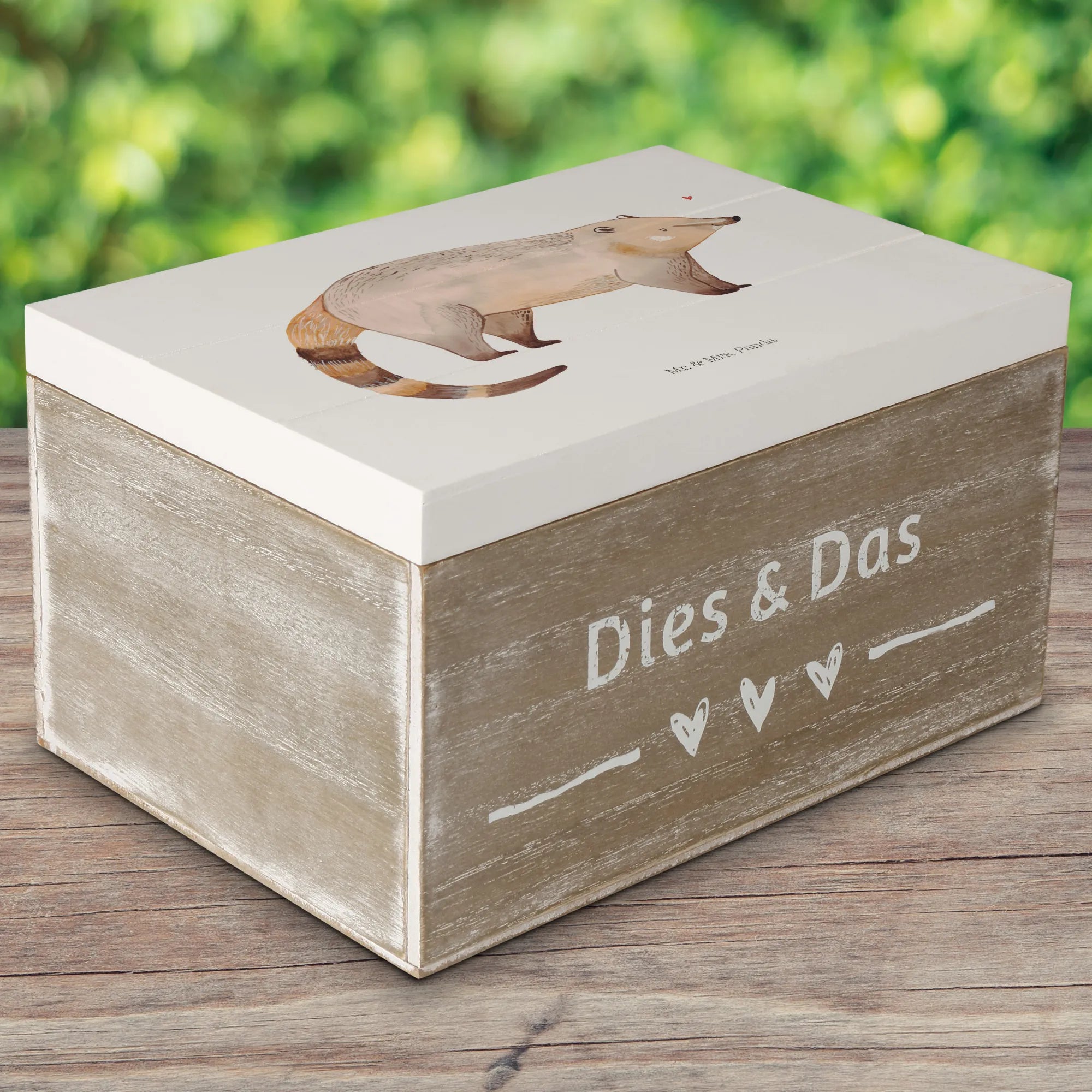 Skrzynia drewniana Koati - 22 x 15 cm - z napisem - biały