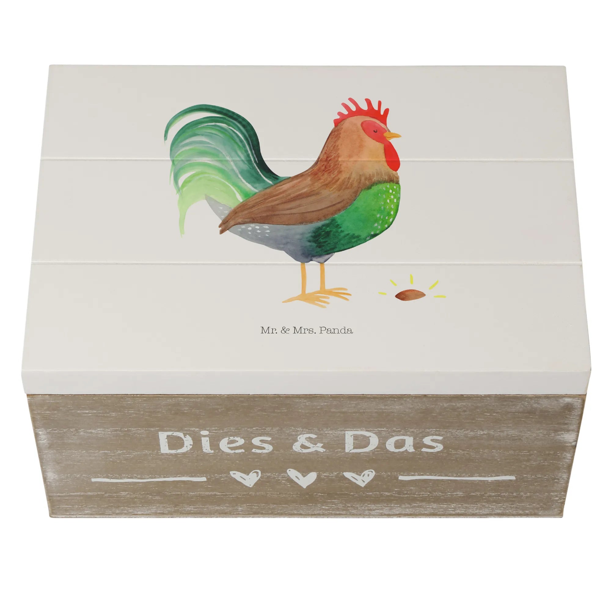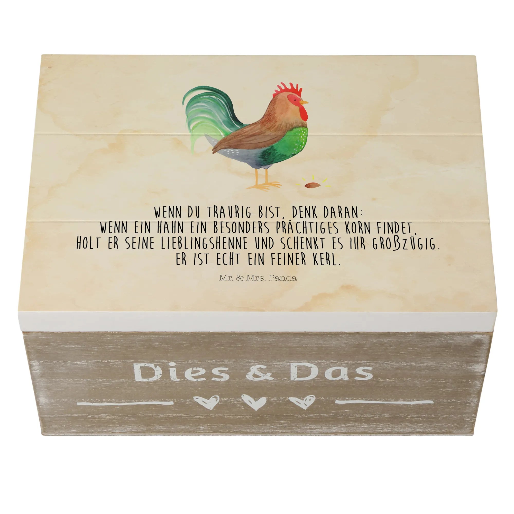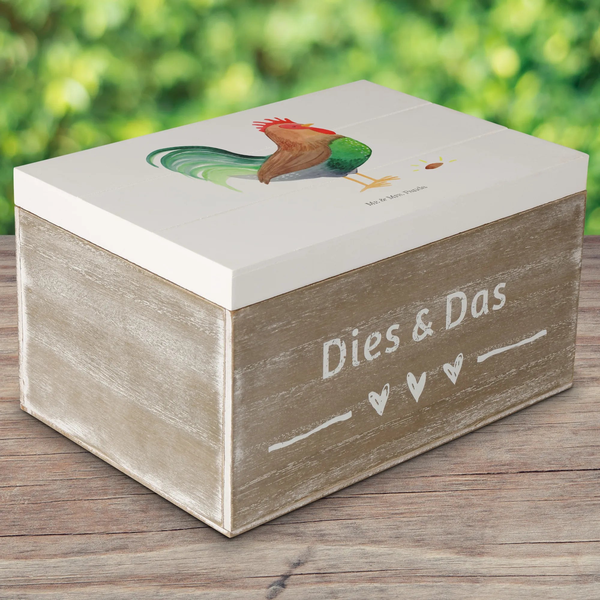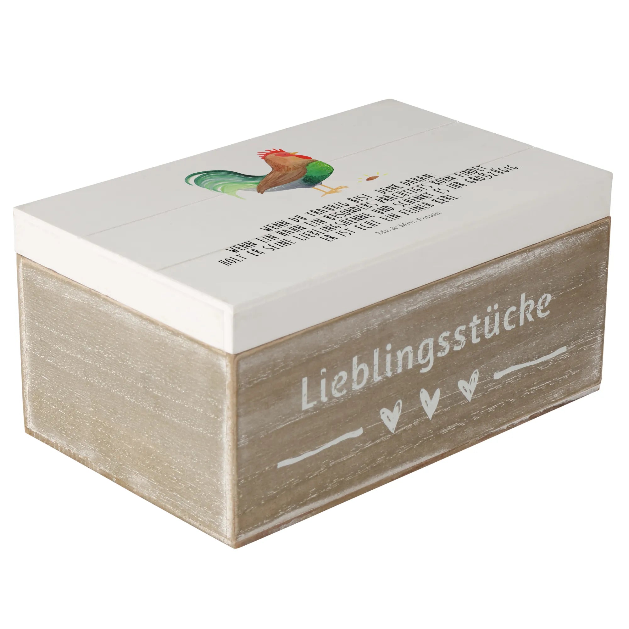 Skrzynia drewniana kogut ziarno - 22 x 15 cm - z napisem - biały