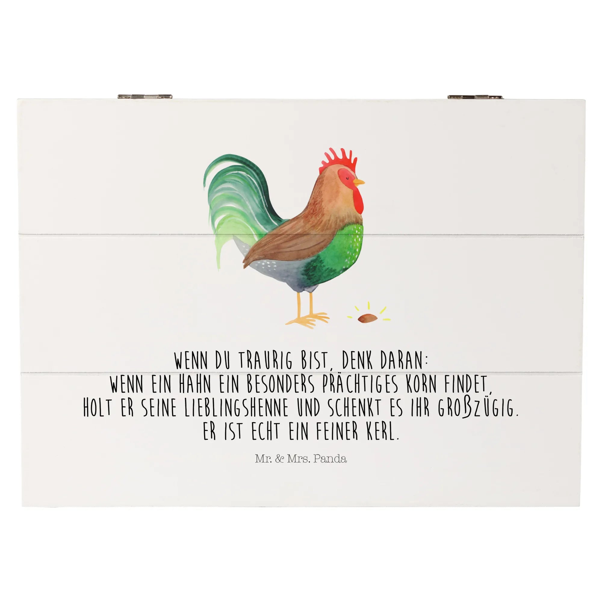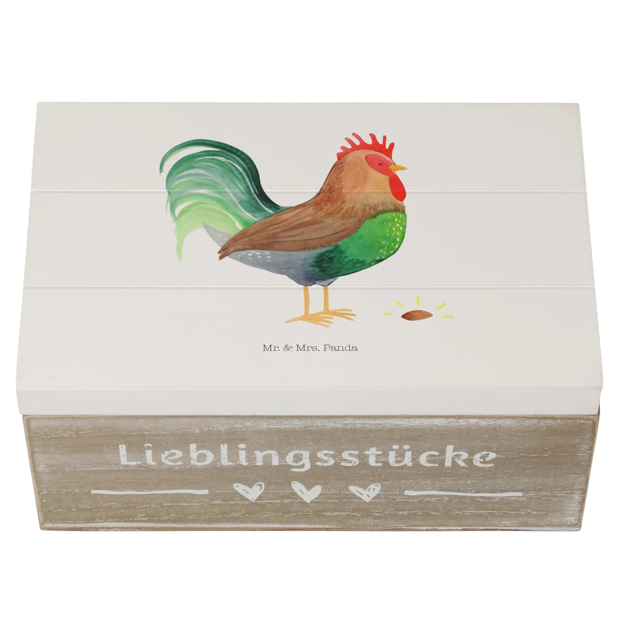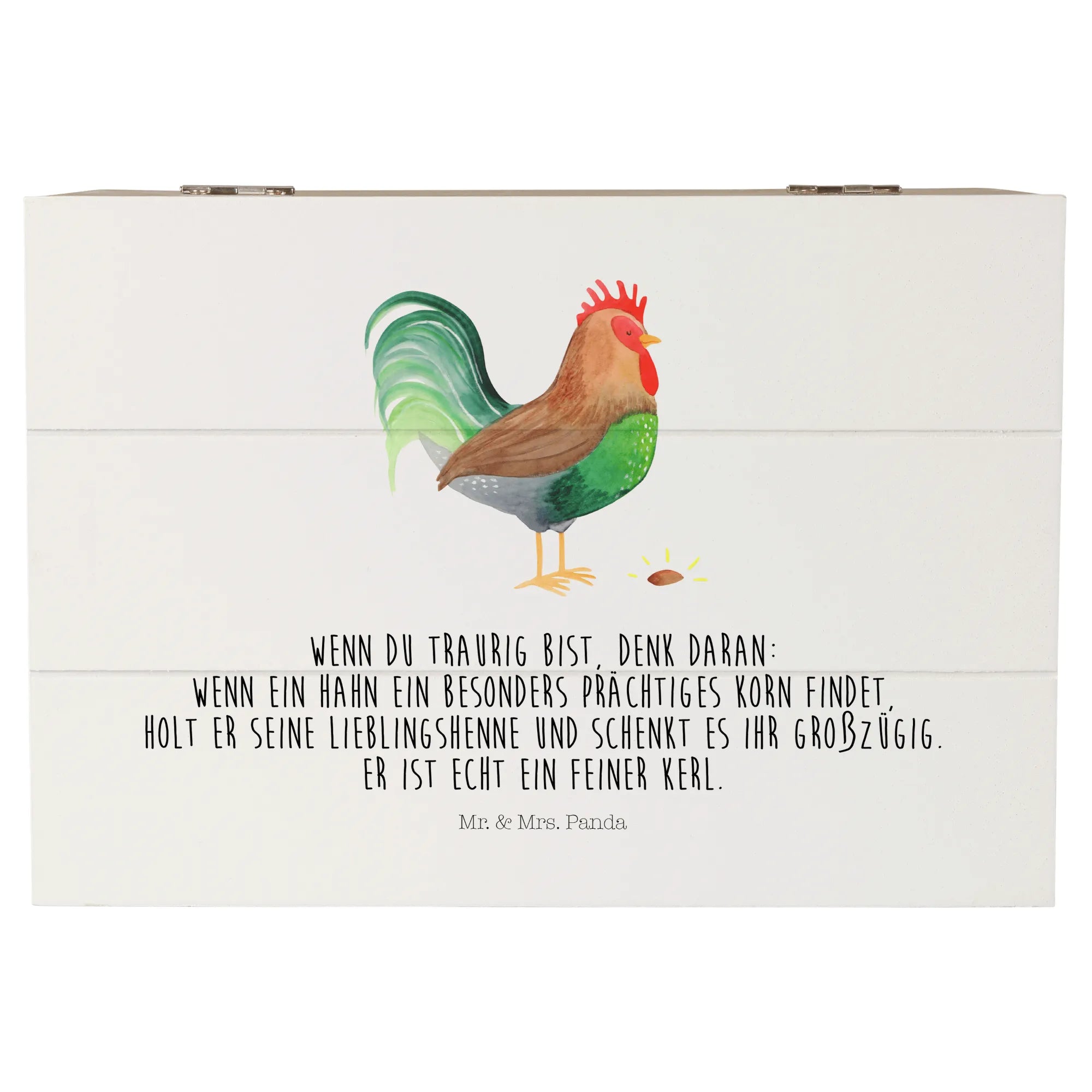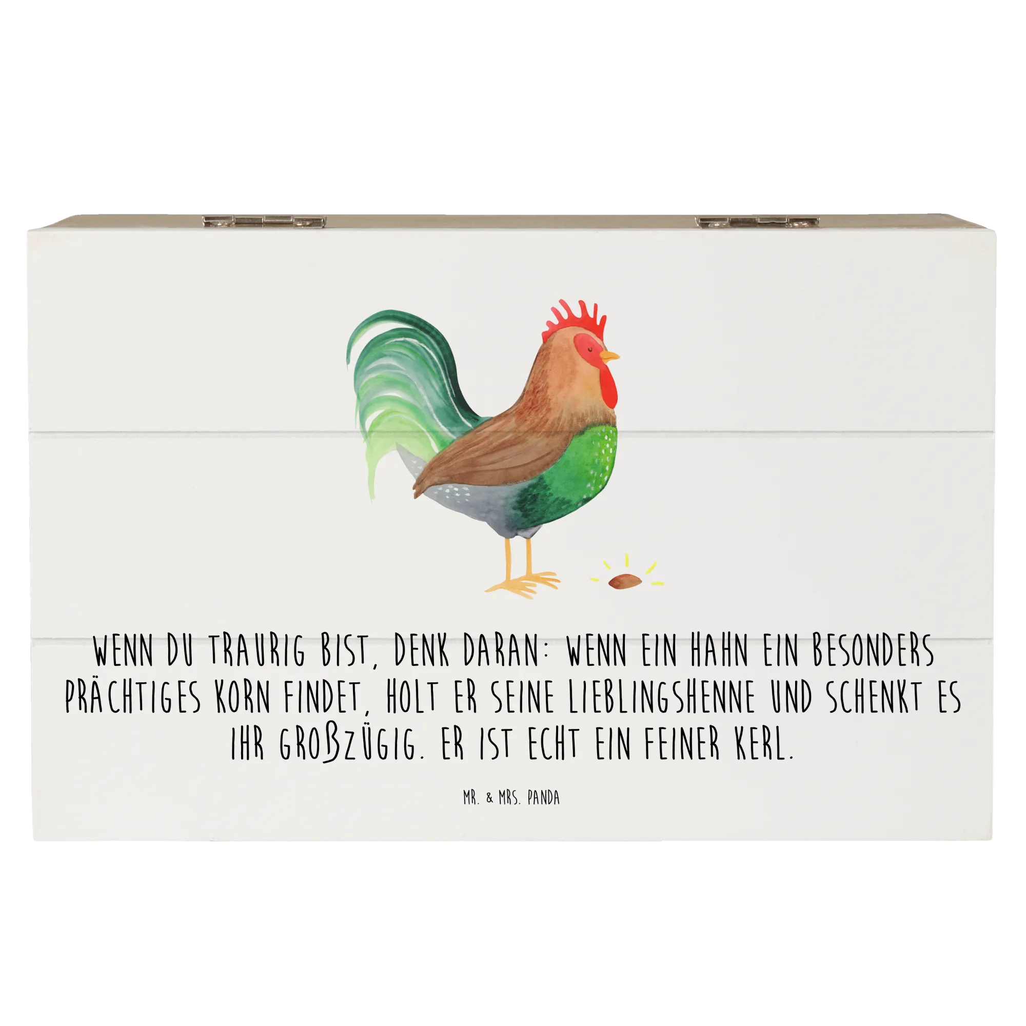 Skrzynia drewniana kogut ziarno - 22 x 15 cm - z napisem - biały