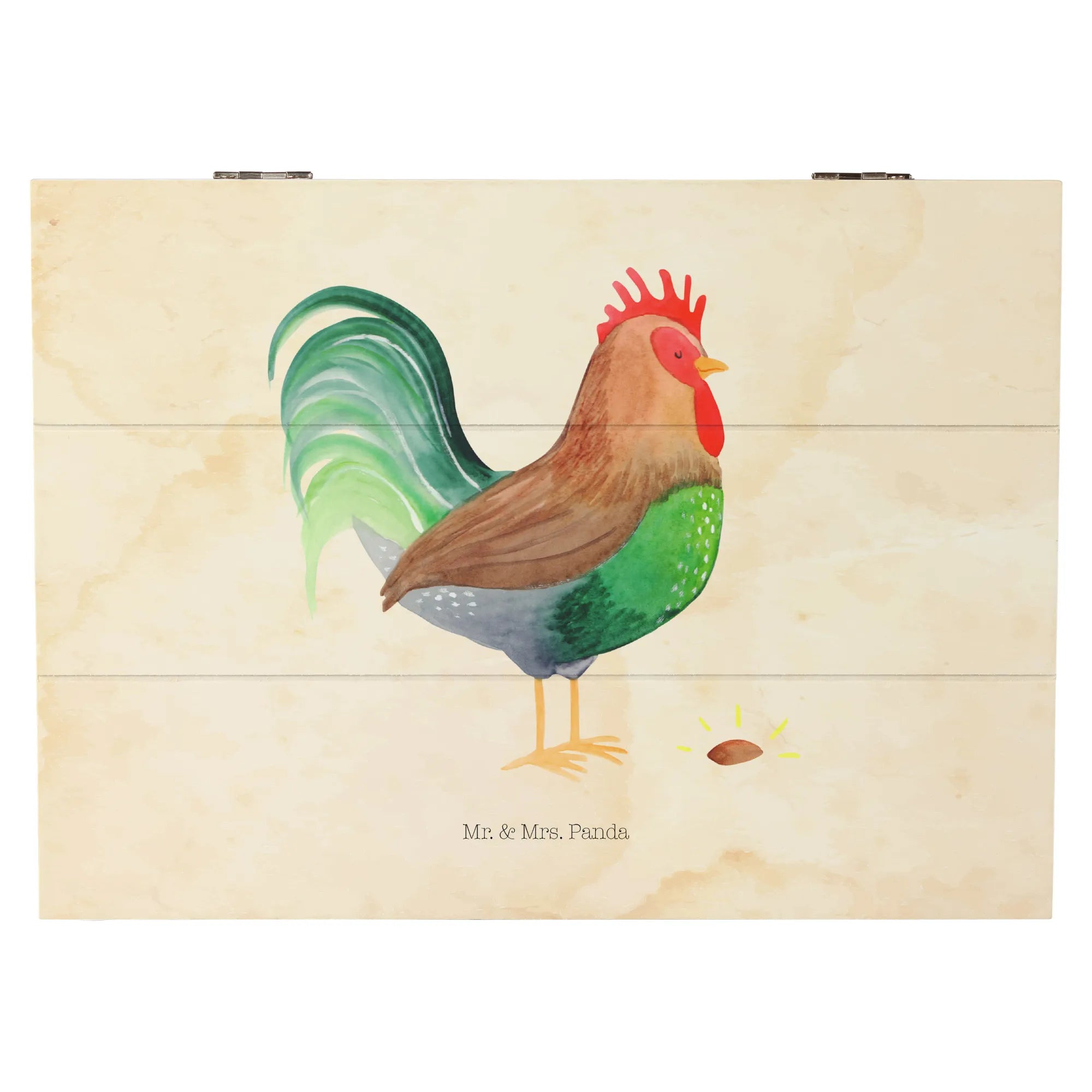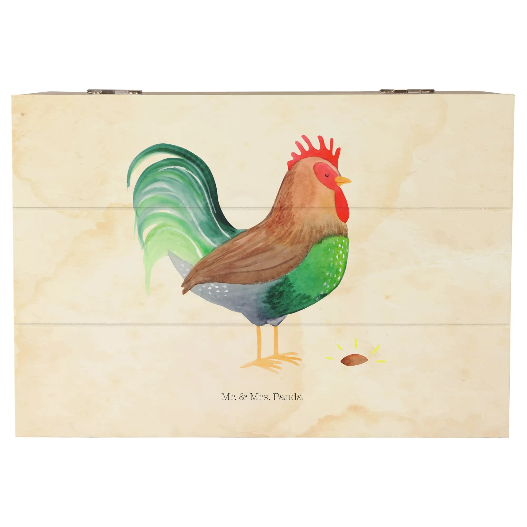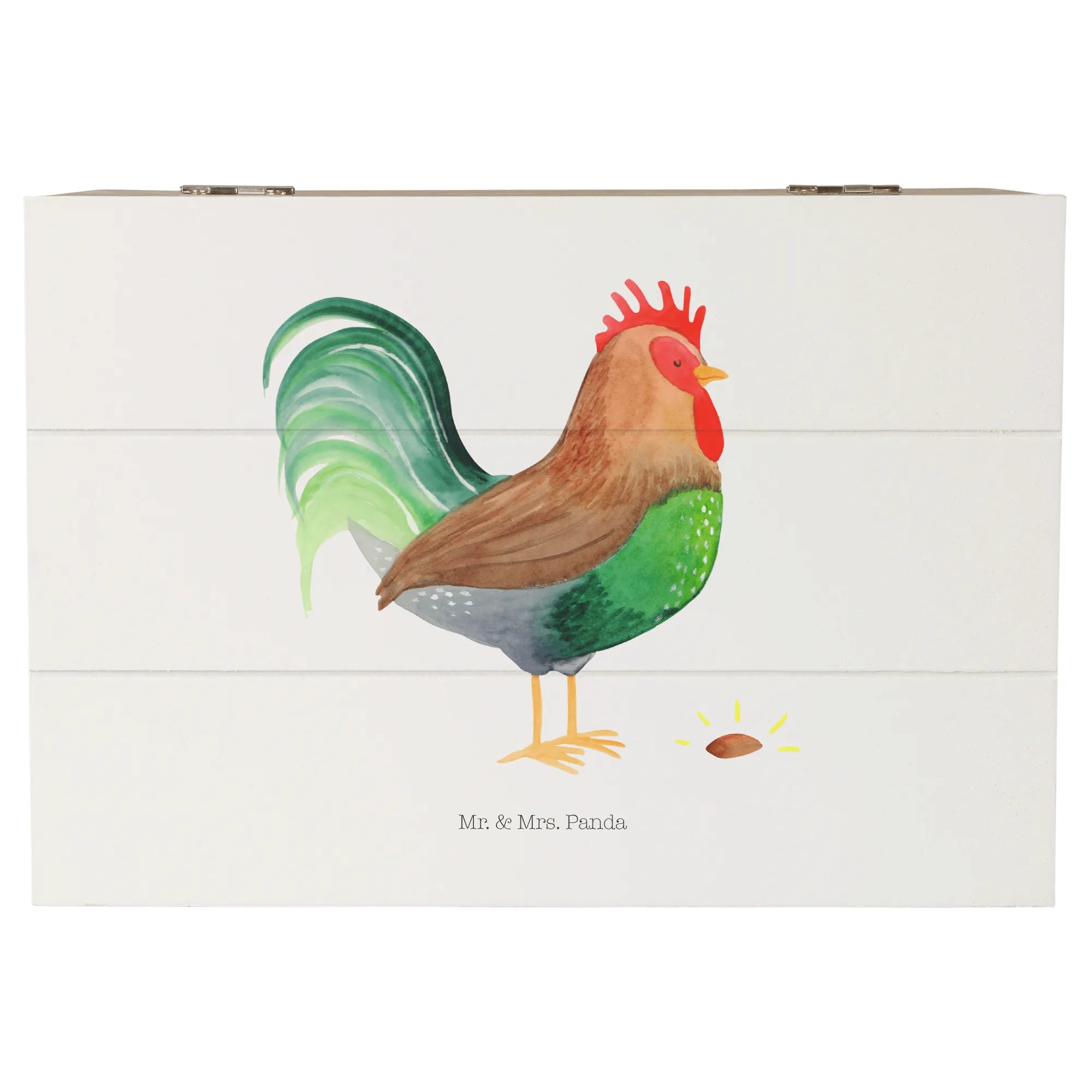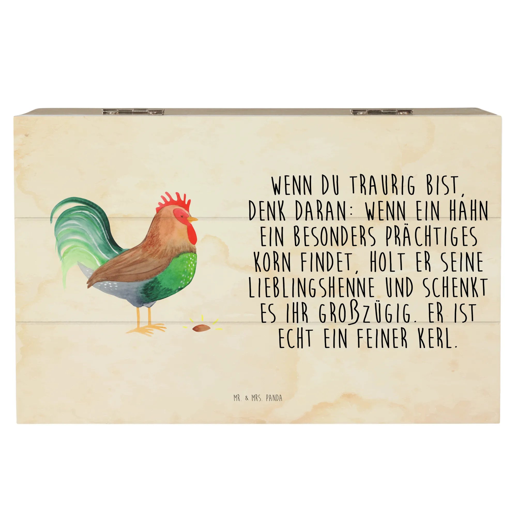 Skrzynia drewniana kogut ziarno - 22 x 15 cm - z napisem - biały