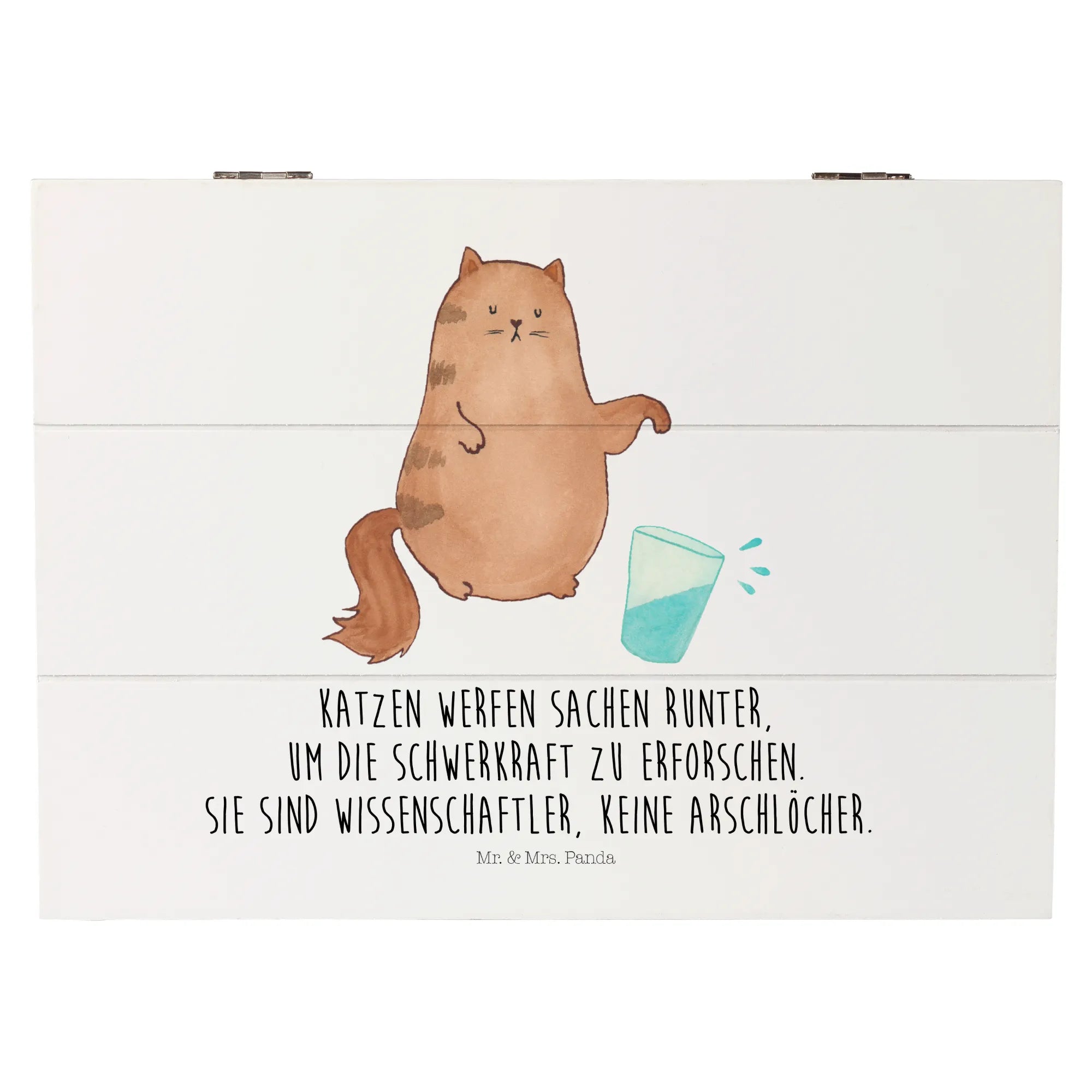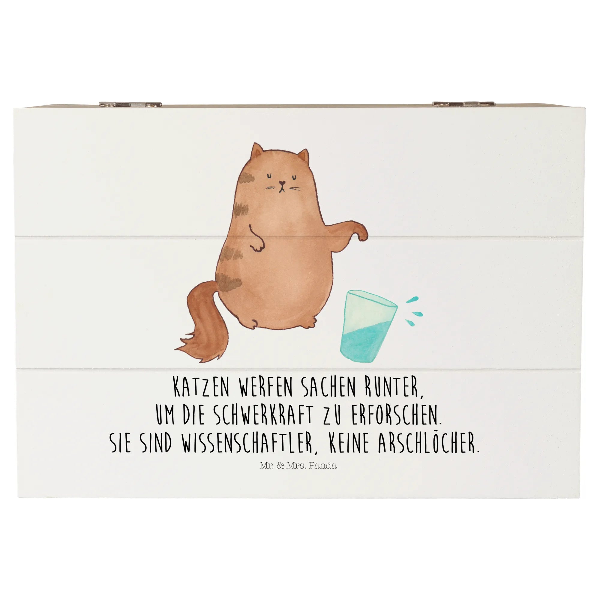 Skrzynia drewniana kot szklanka wody - 22 x 15 cm - z napisem - biały