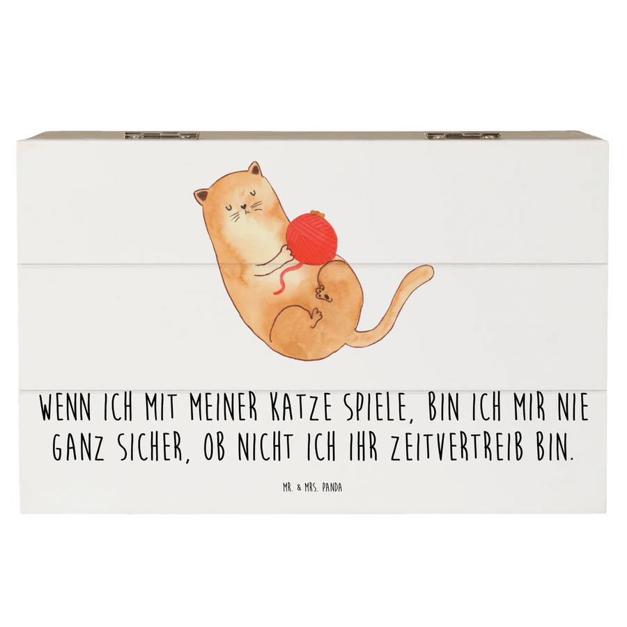 Skrzynia drewniana kot wełna - 19 x 12 cm - z napisem - biały