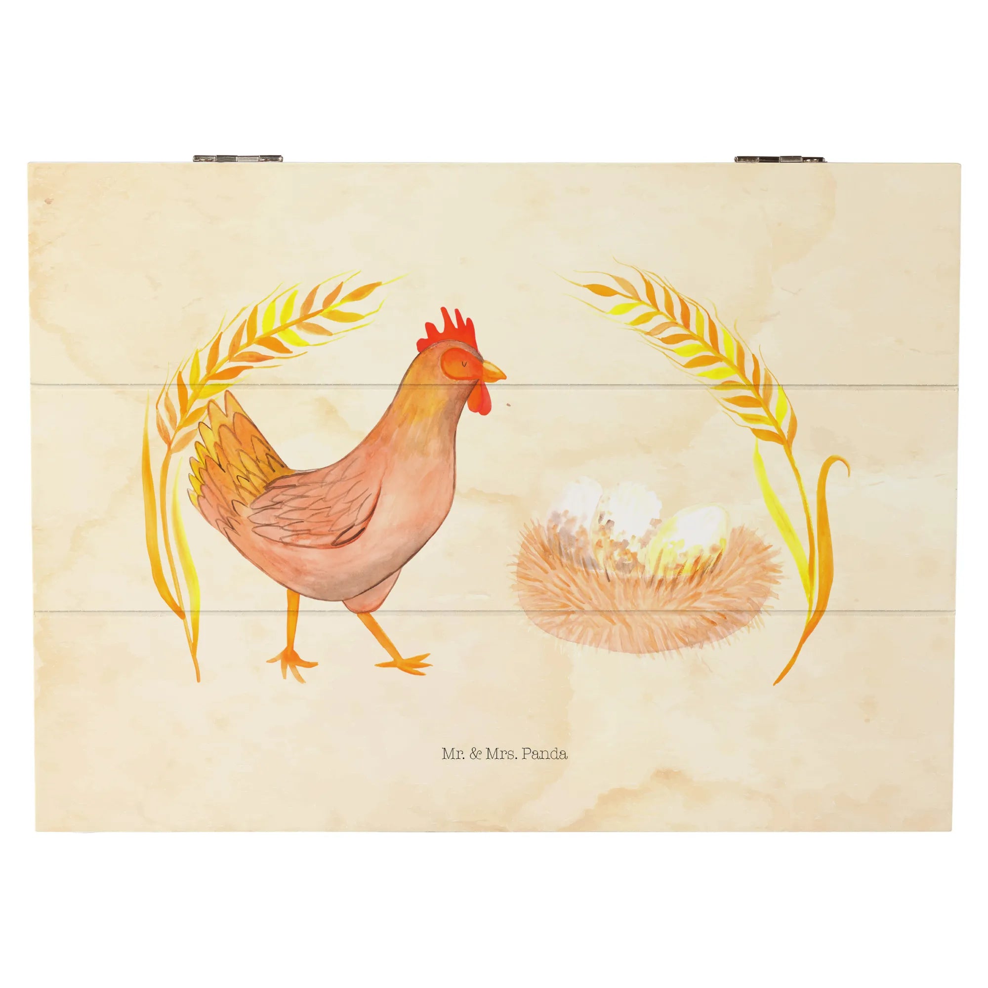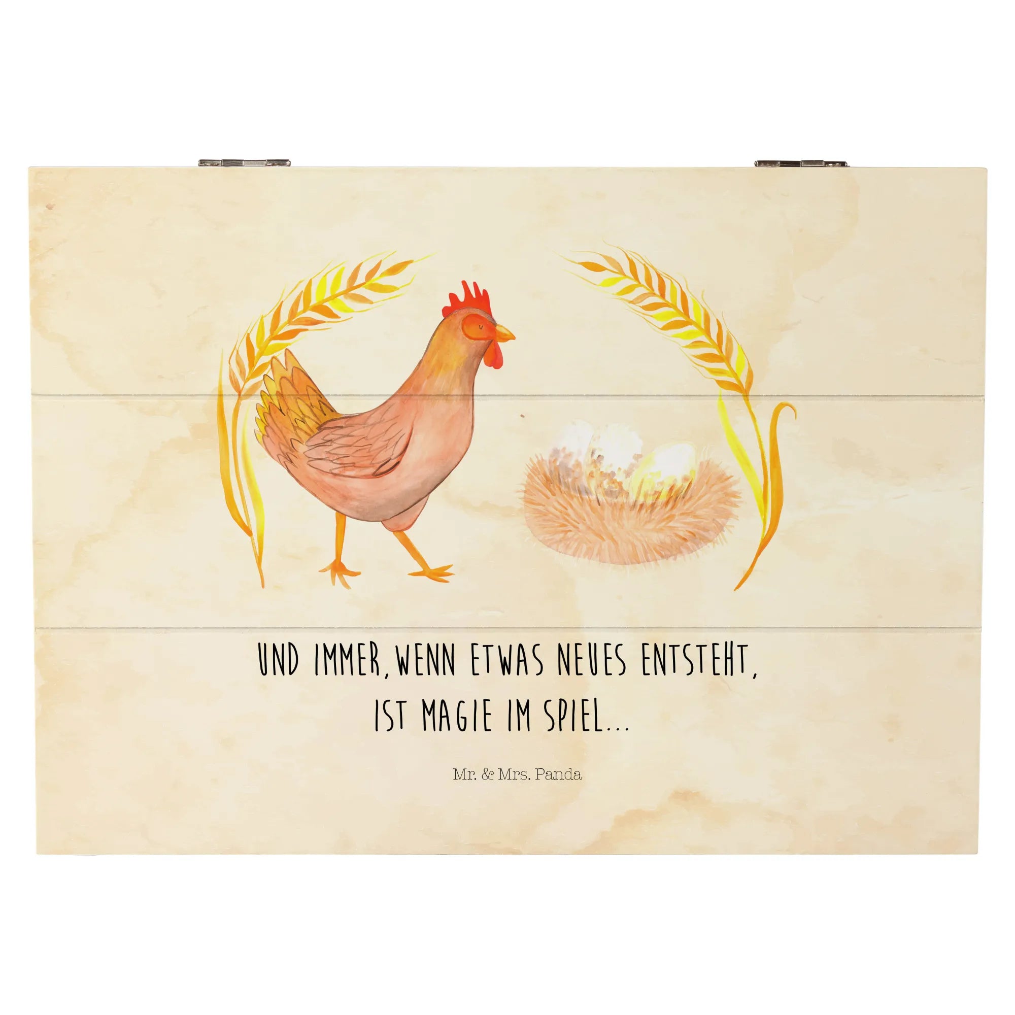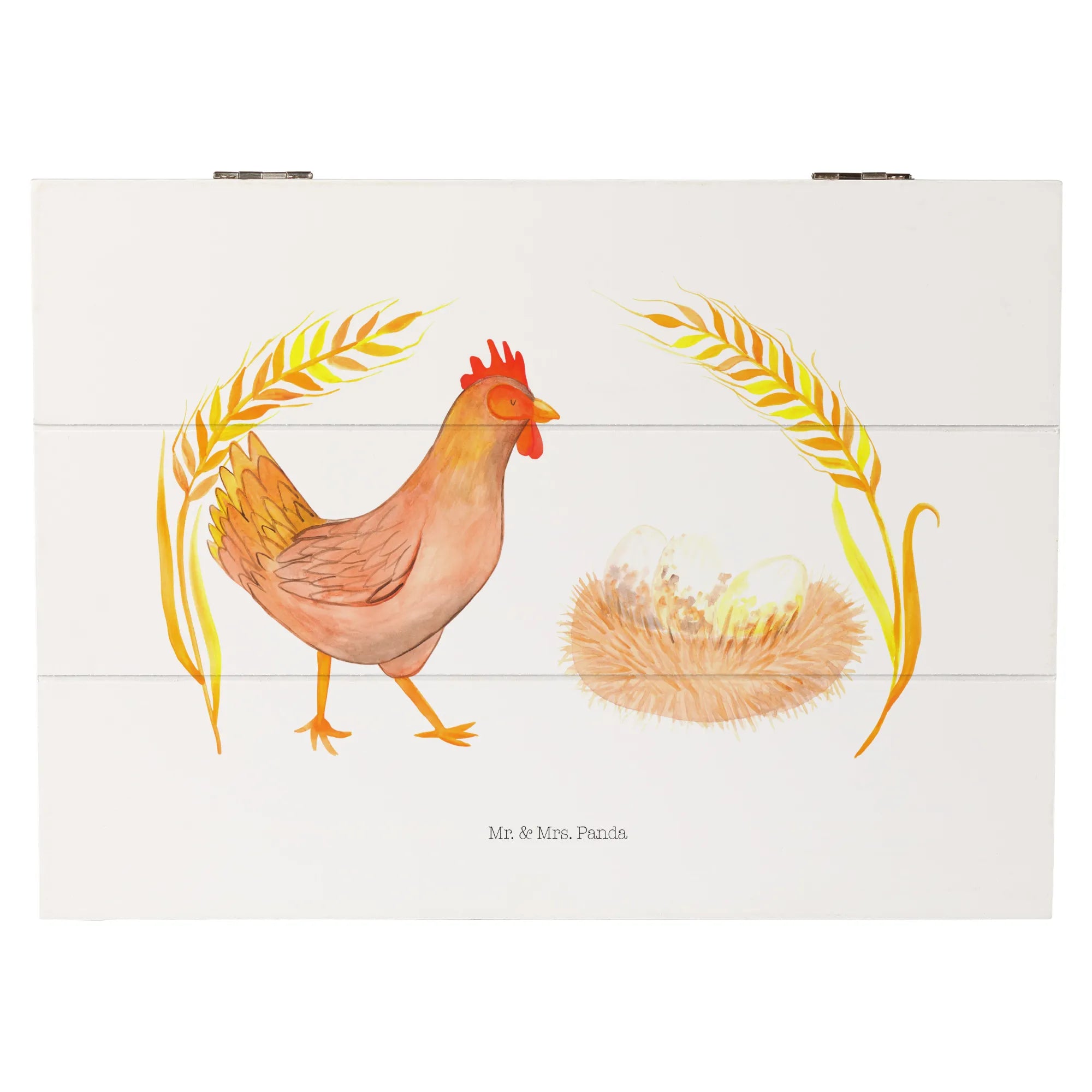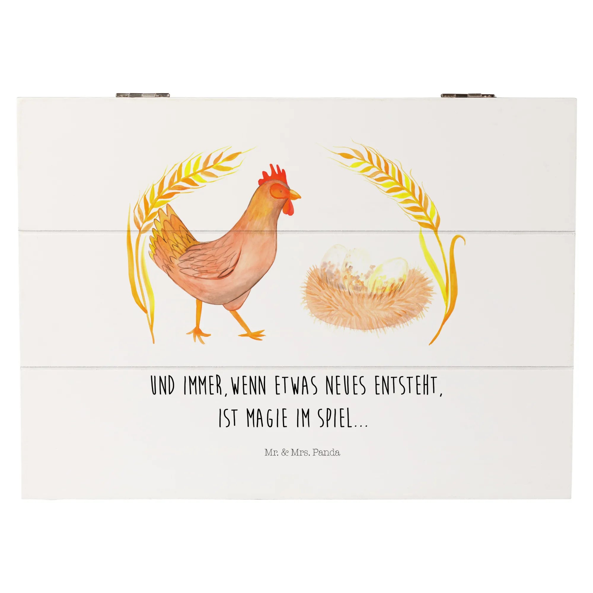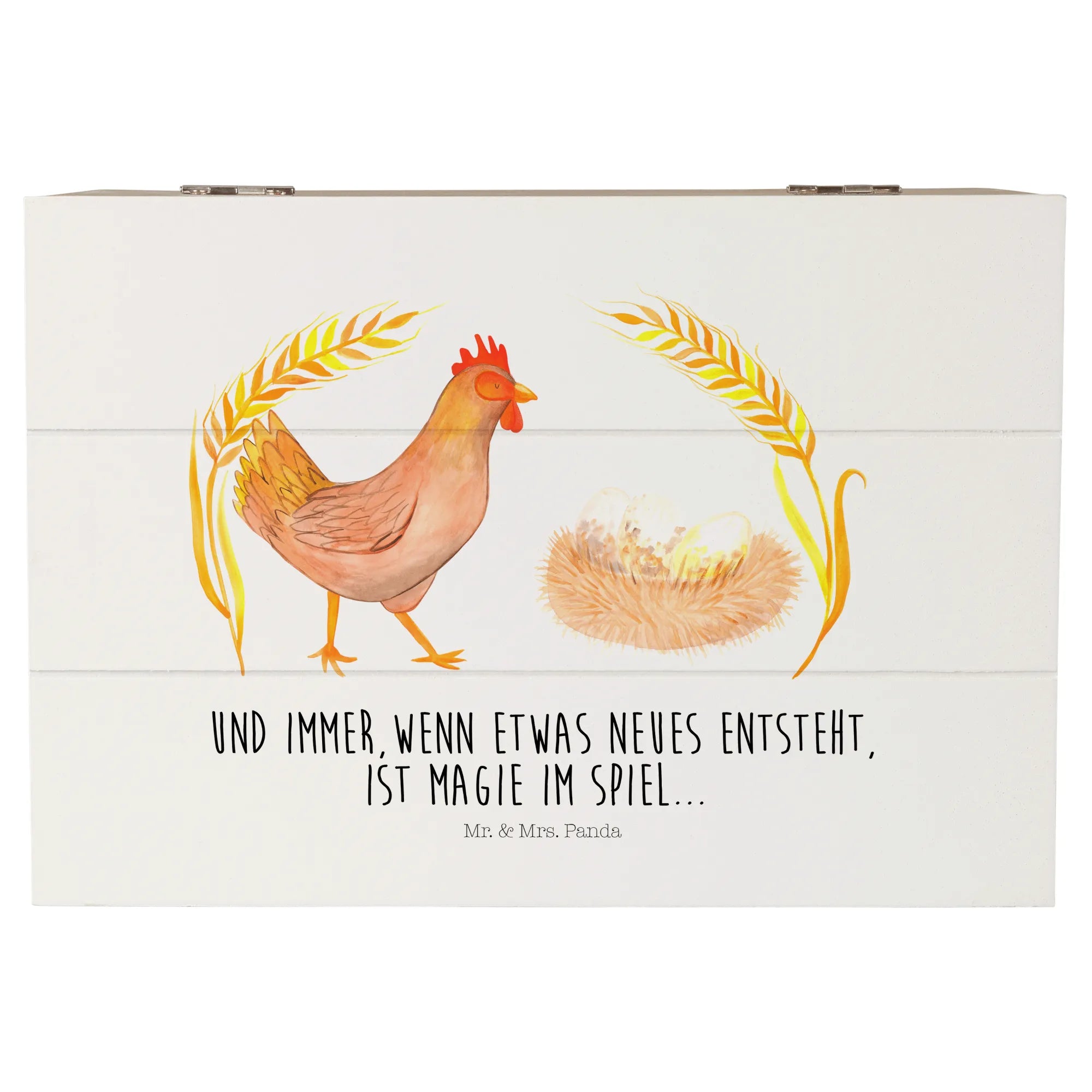 Skrzynia drewniana kurczak Dumny - 22 x 15 cm - z napisem - Biały