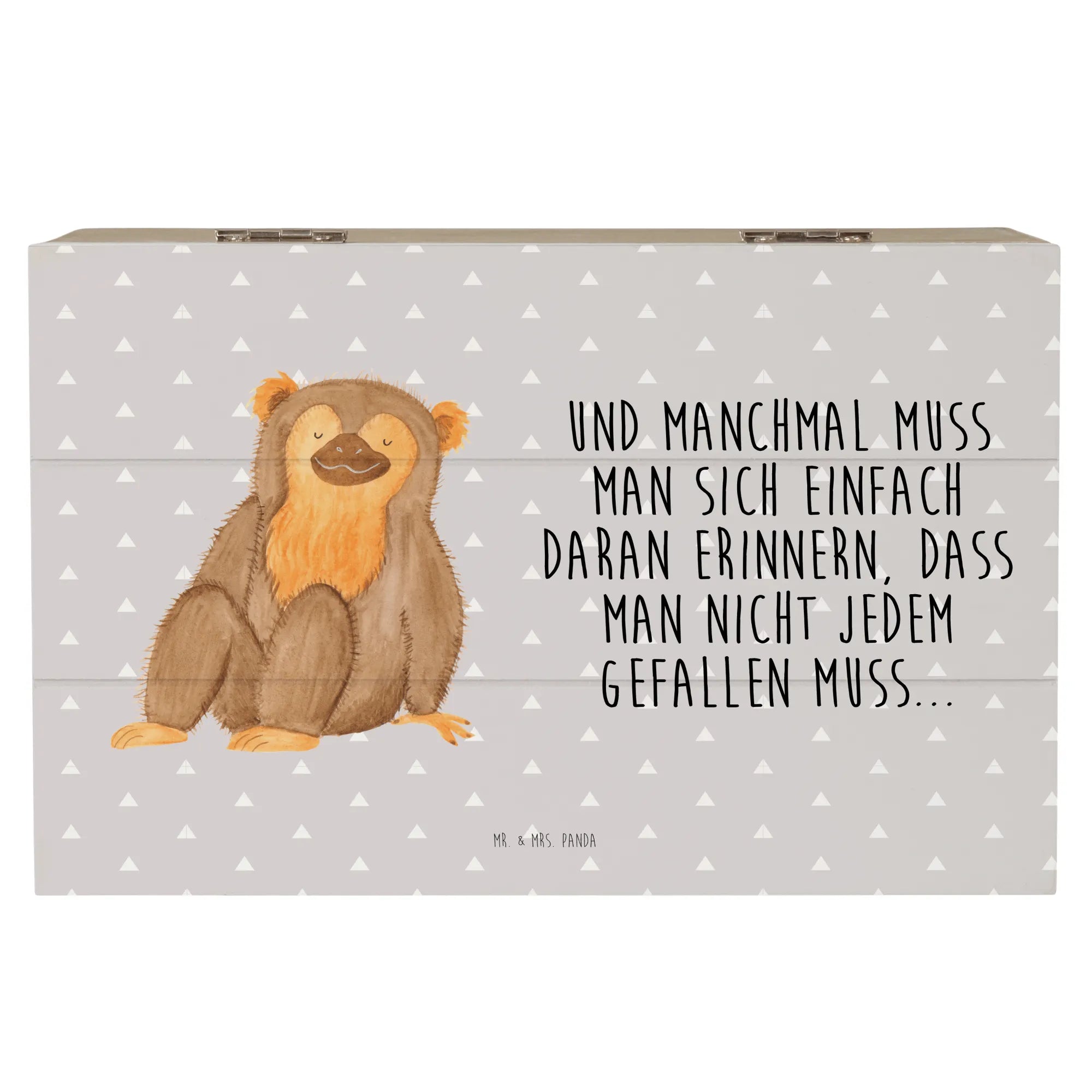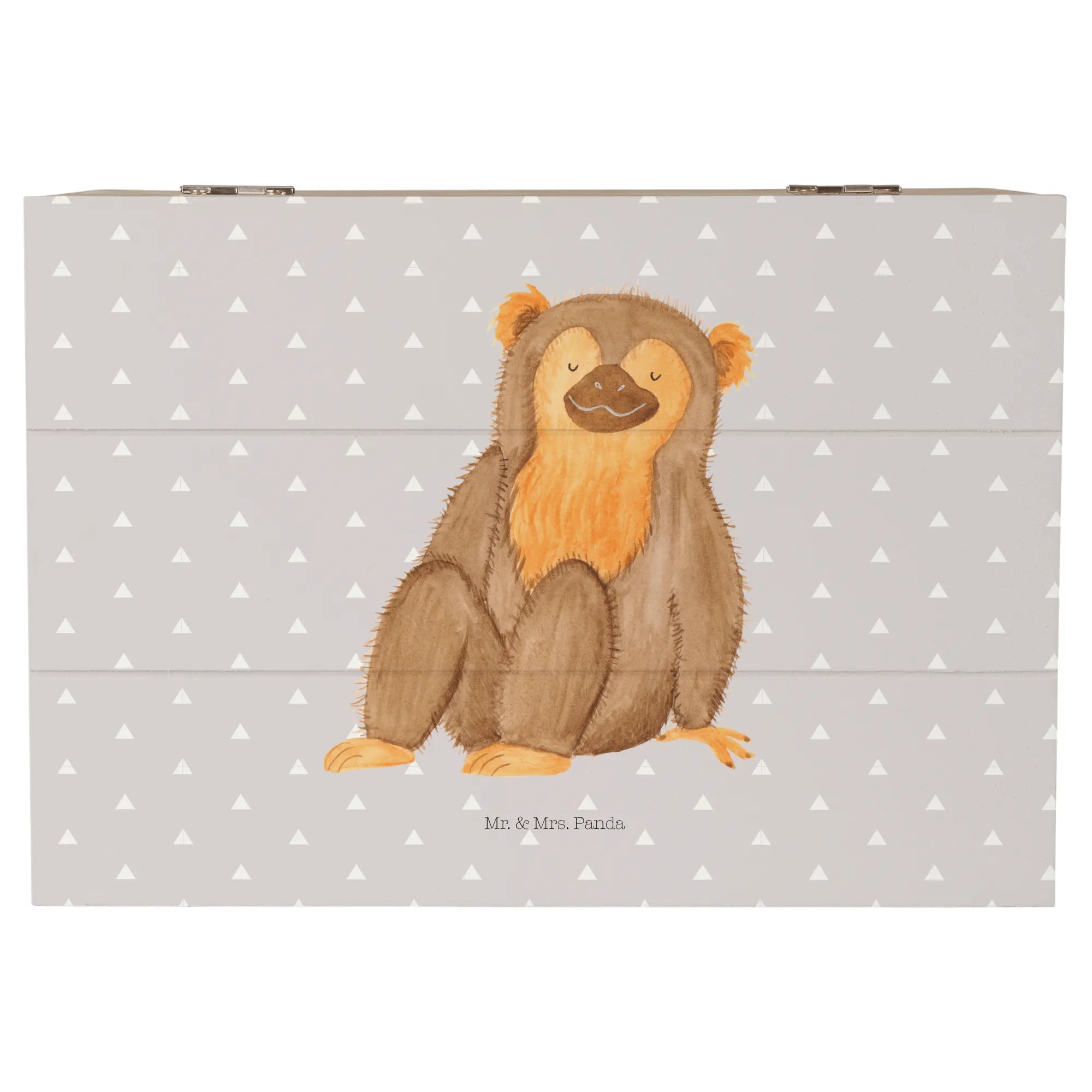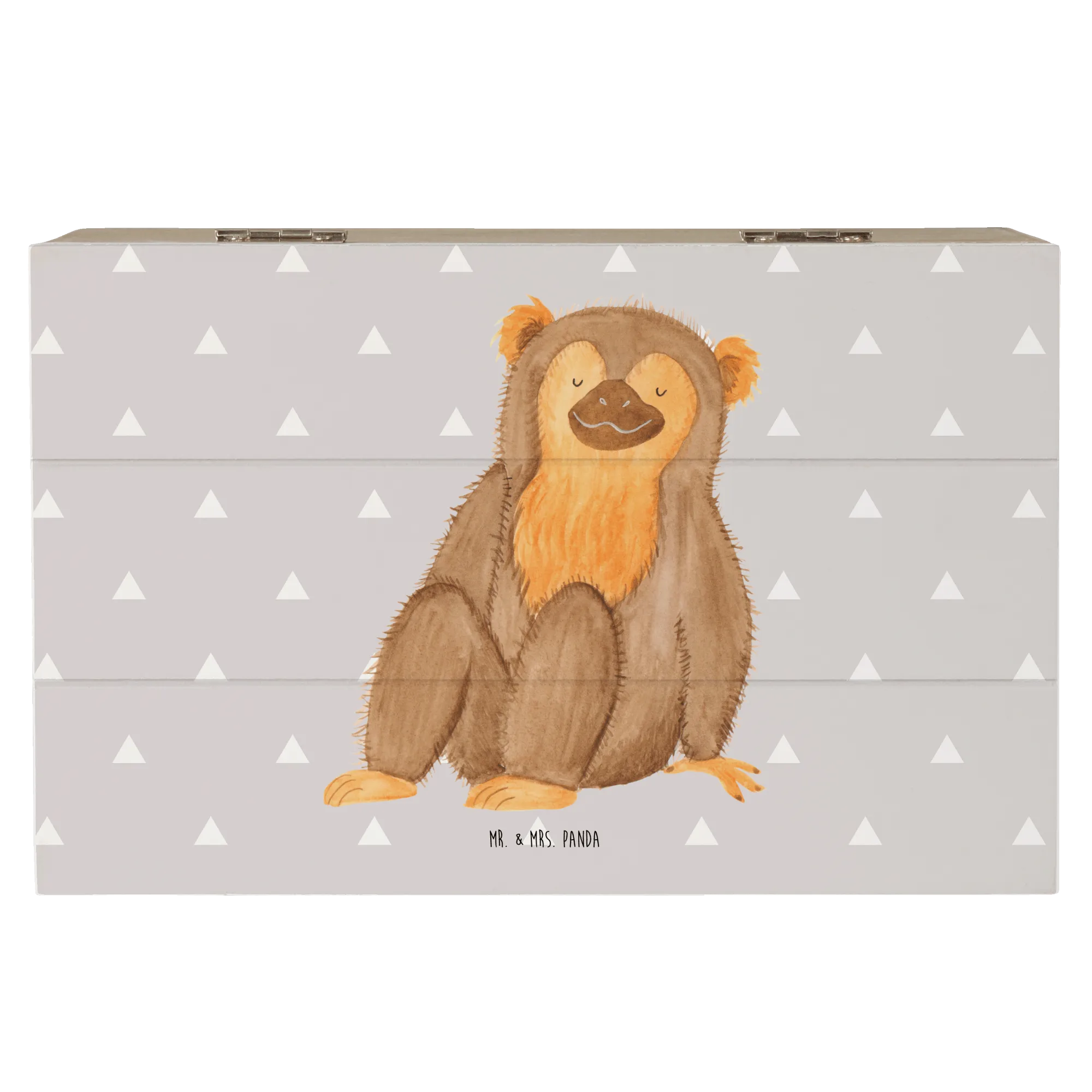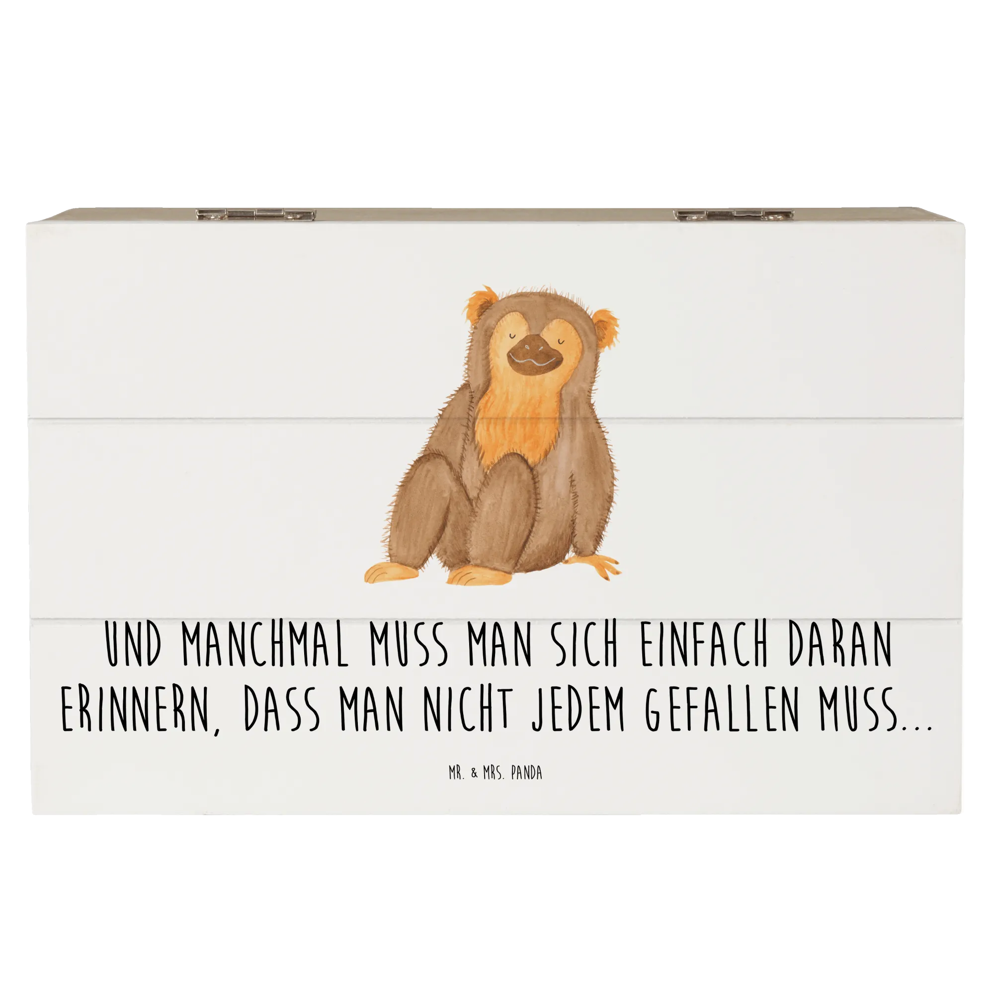 Skrzynia drewniana Małpa - 22 x 15 cm - z napisem - biały