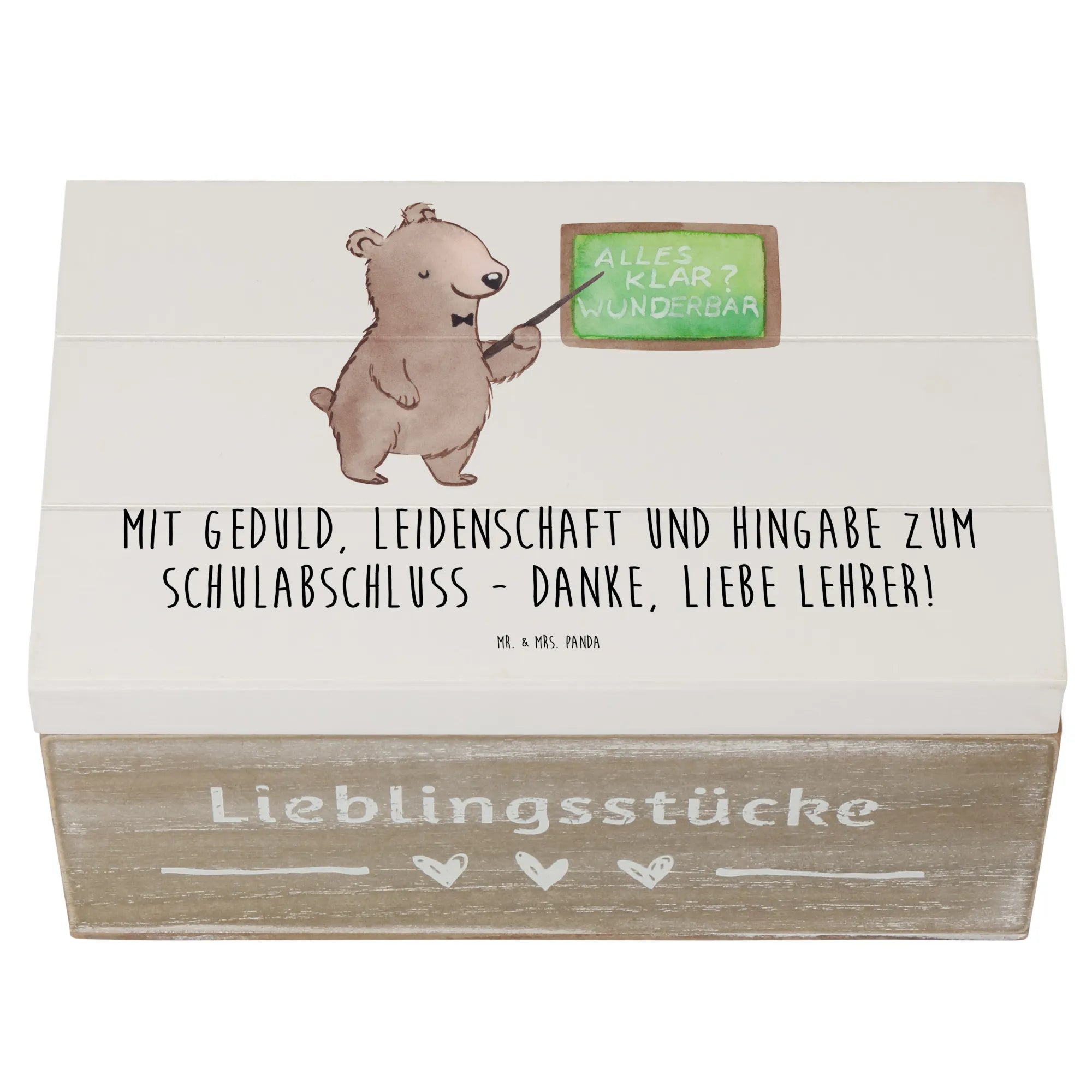 Skrzynia drewniana Mit Geduld, Leidenschaft und Hingabe zum Schulabschluss - Danke, liebe Lehrer! - 19 x 12 cm