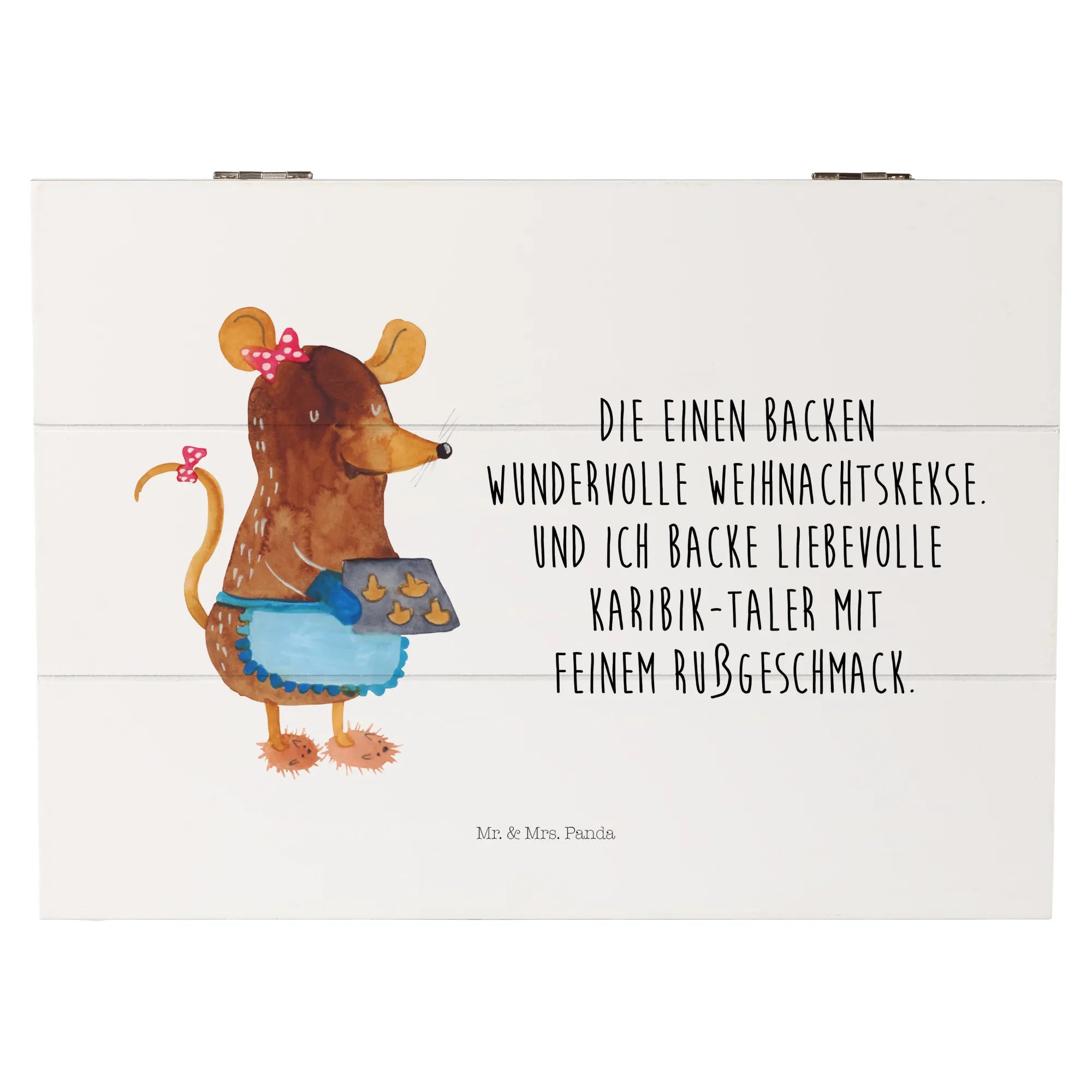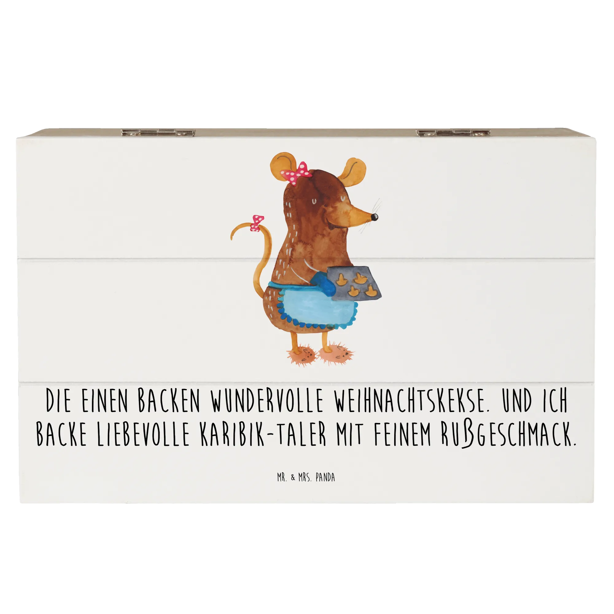 Skrzynia drewniana Mysz ciastka - 22 x 15 cm - z napisem - biały