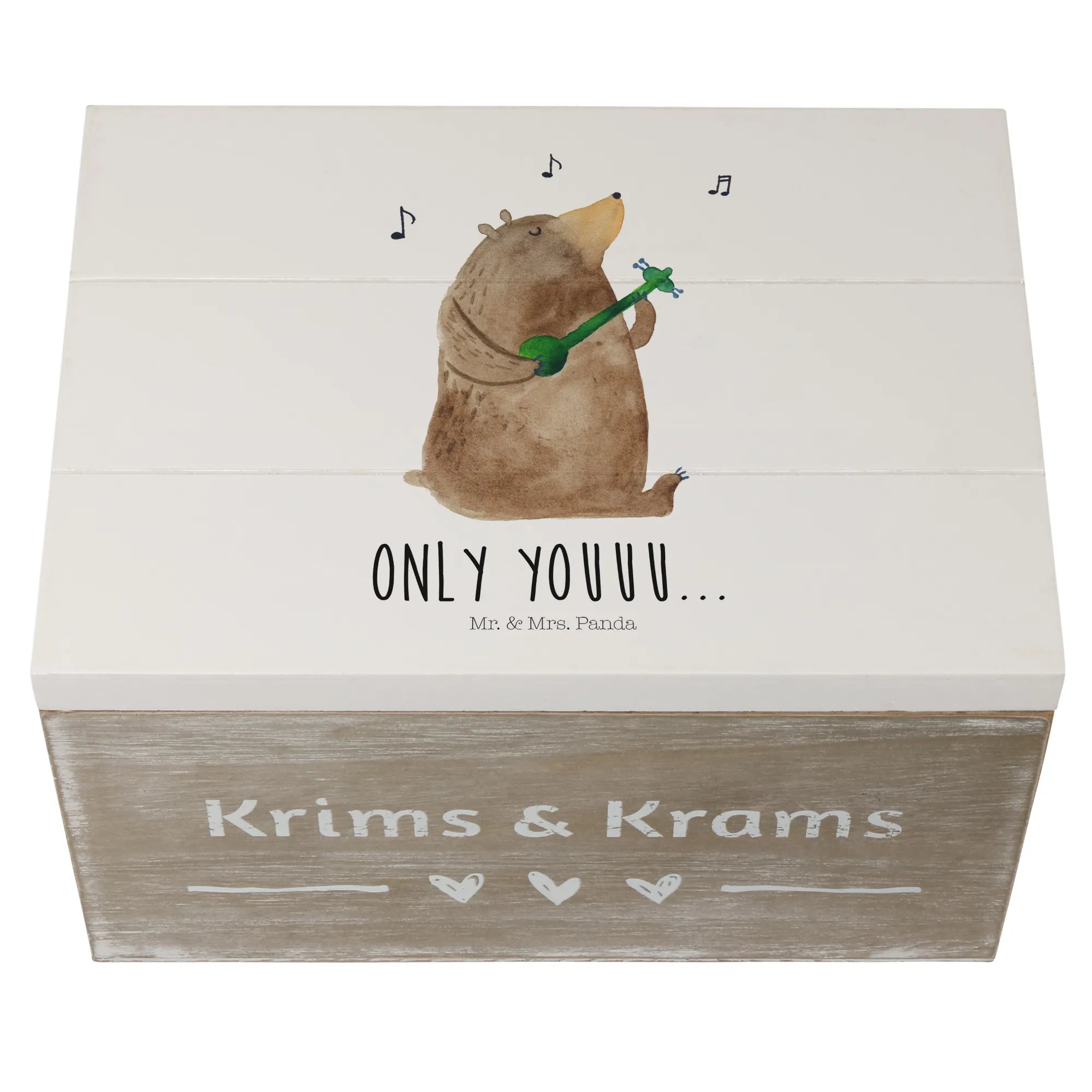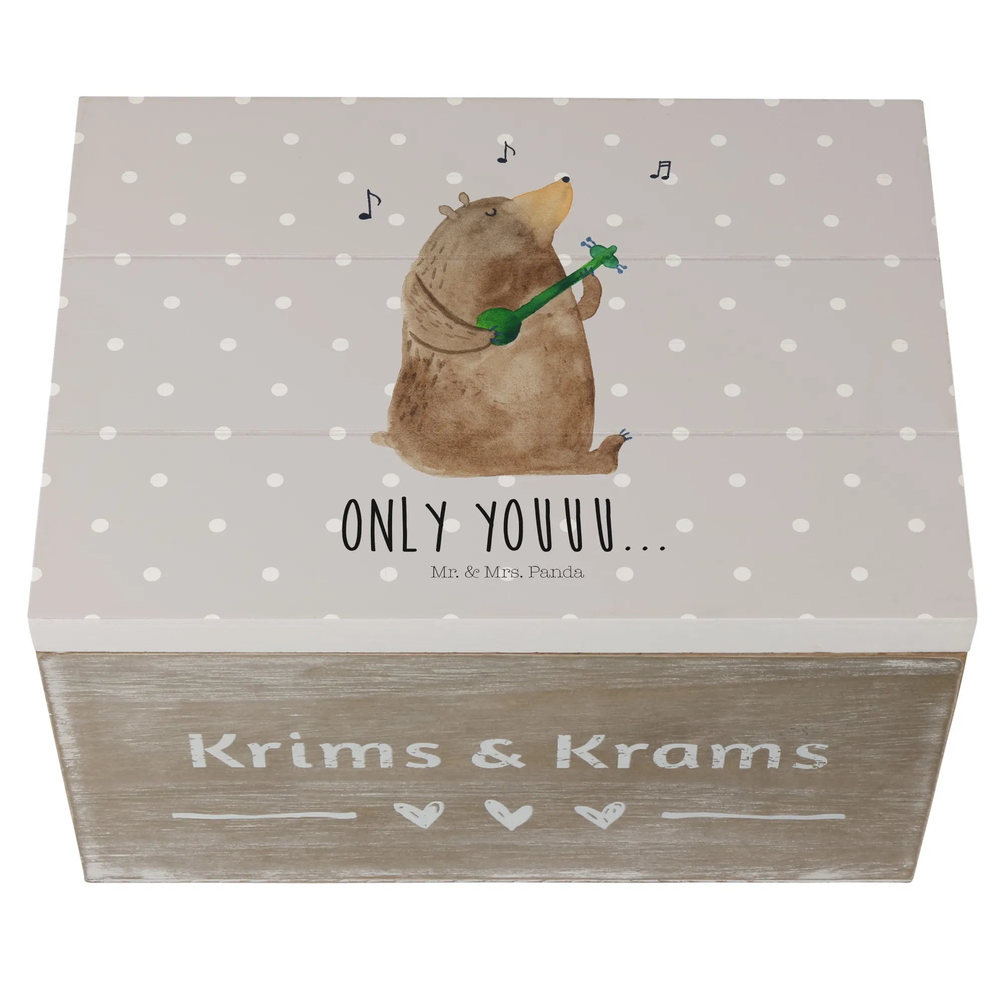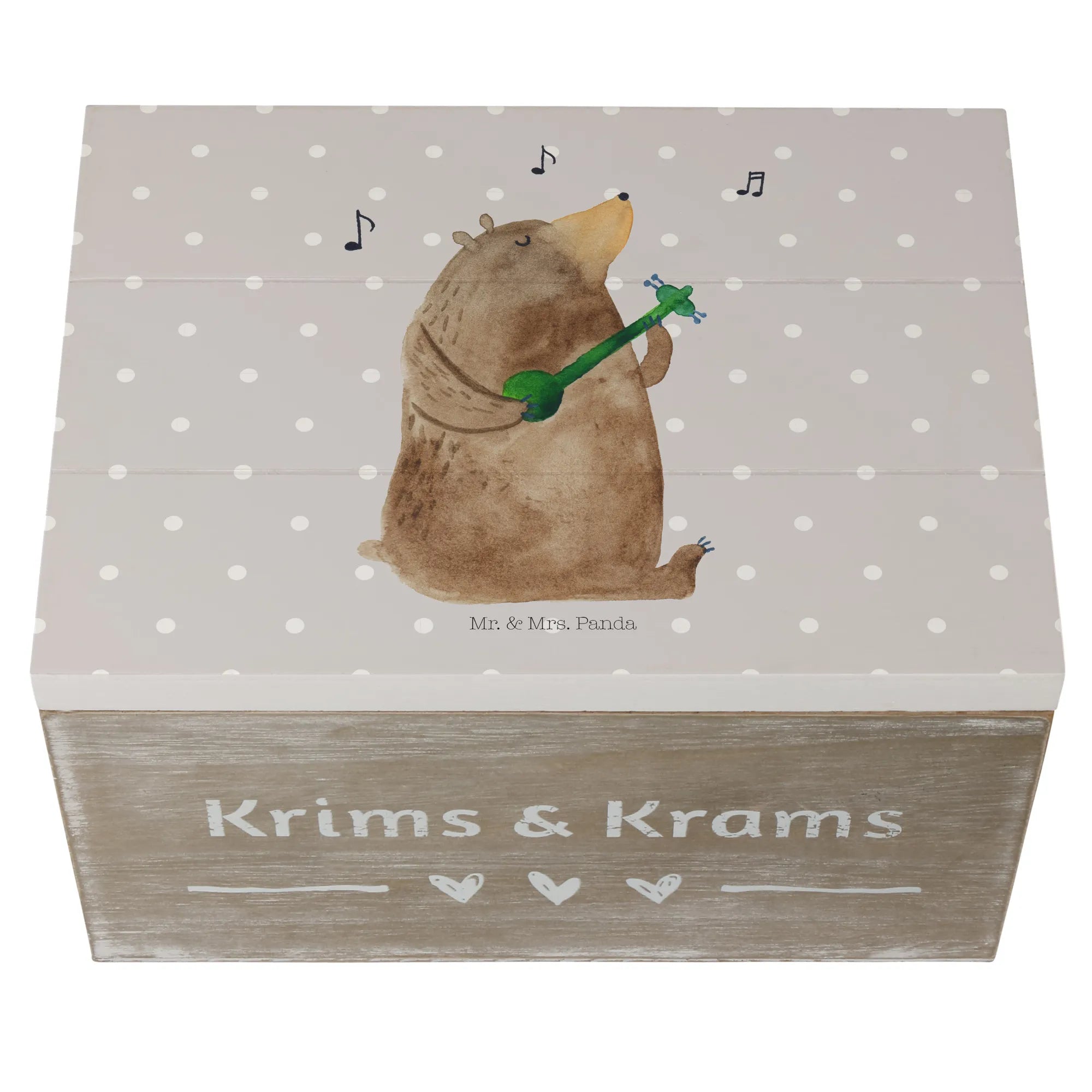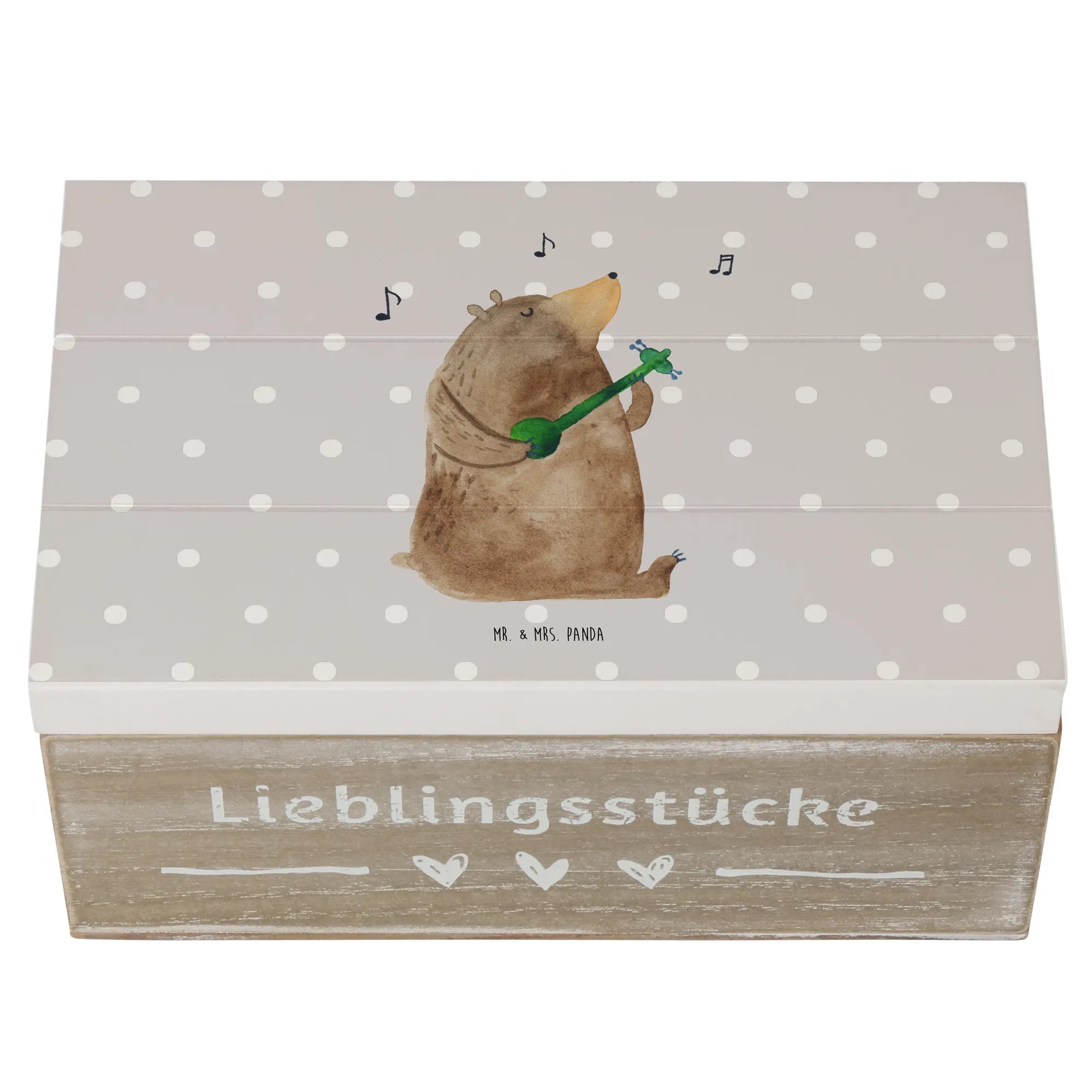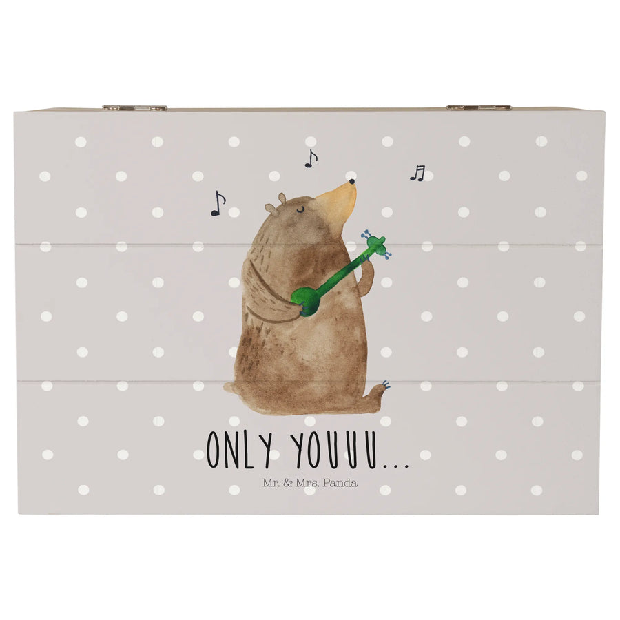 Skrzynia drewniana niedźwiedź Gitara - 22 x 15 cm - z napisem - Pastelowy szary