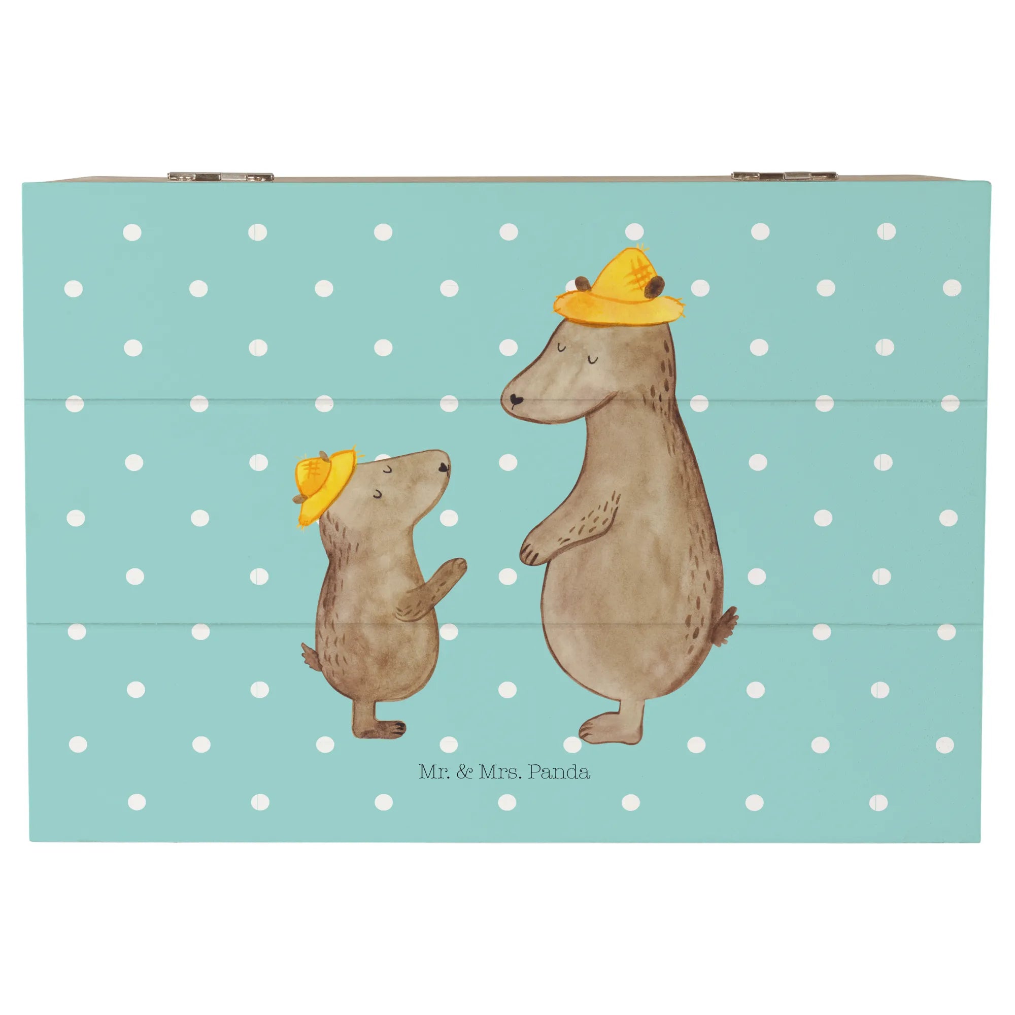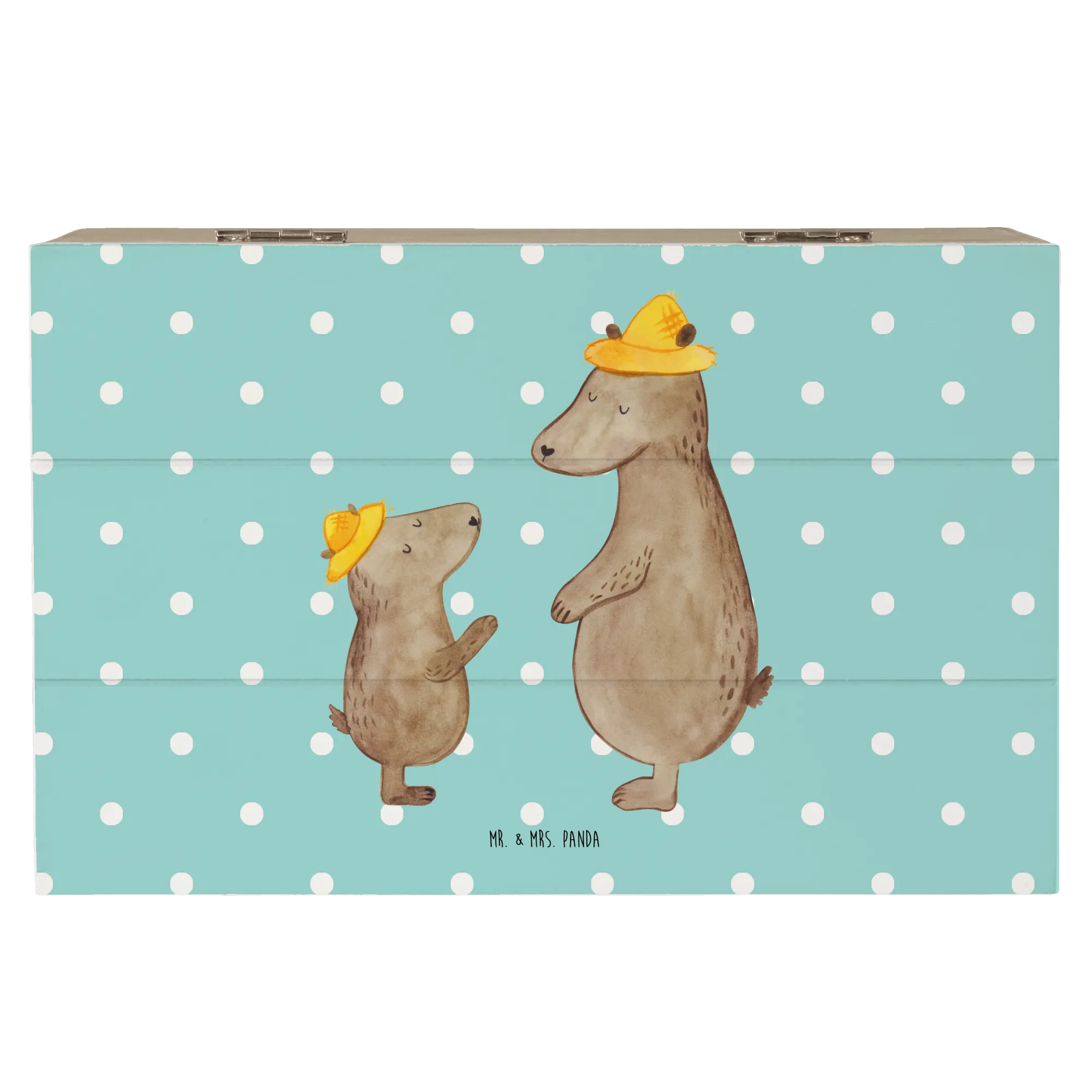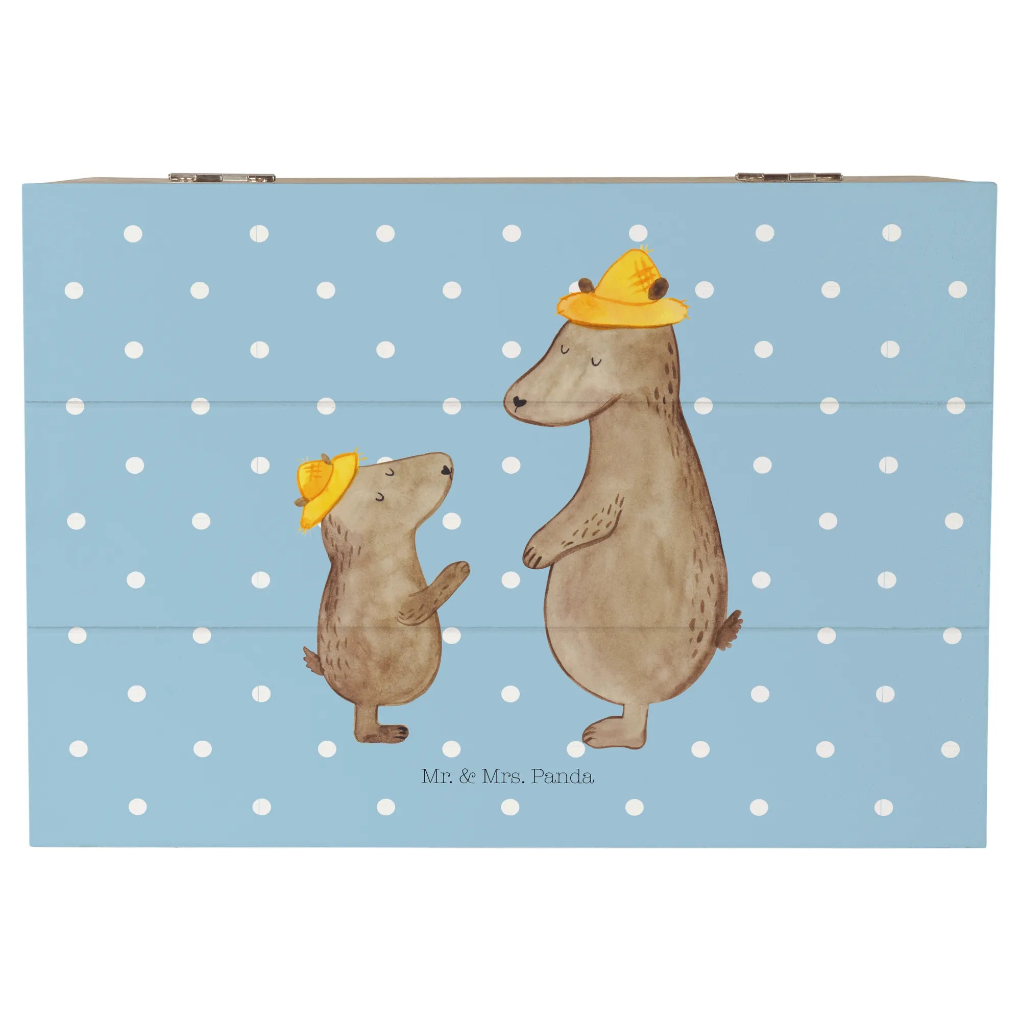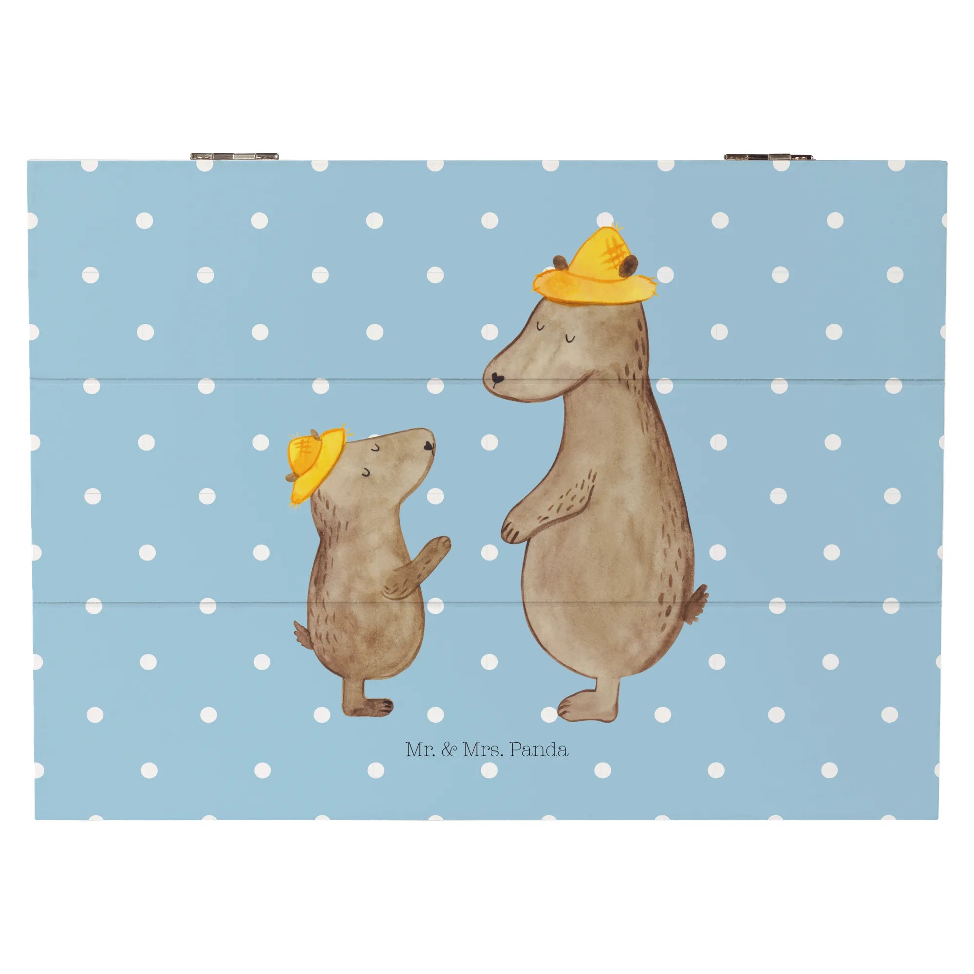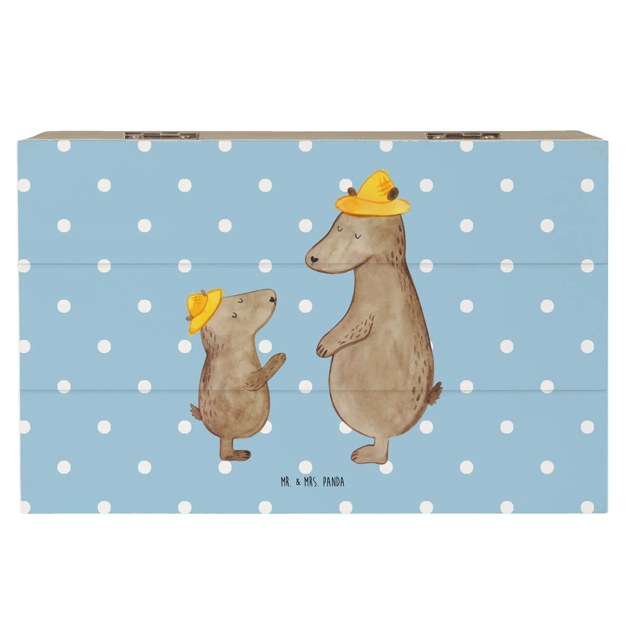 Skrzynia drewniana Niedźwiedzie z kapeluszami - 22 x 15 cm - z napisem - Niebieski Pastel