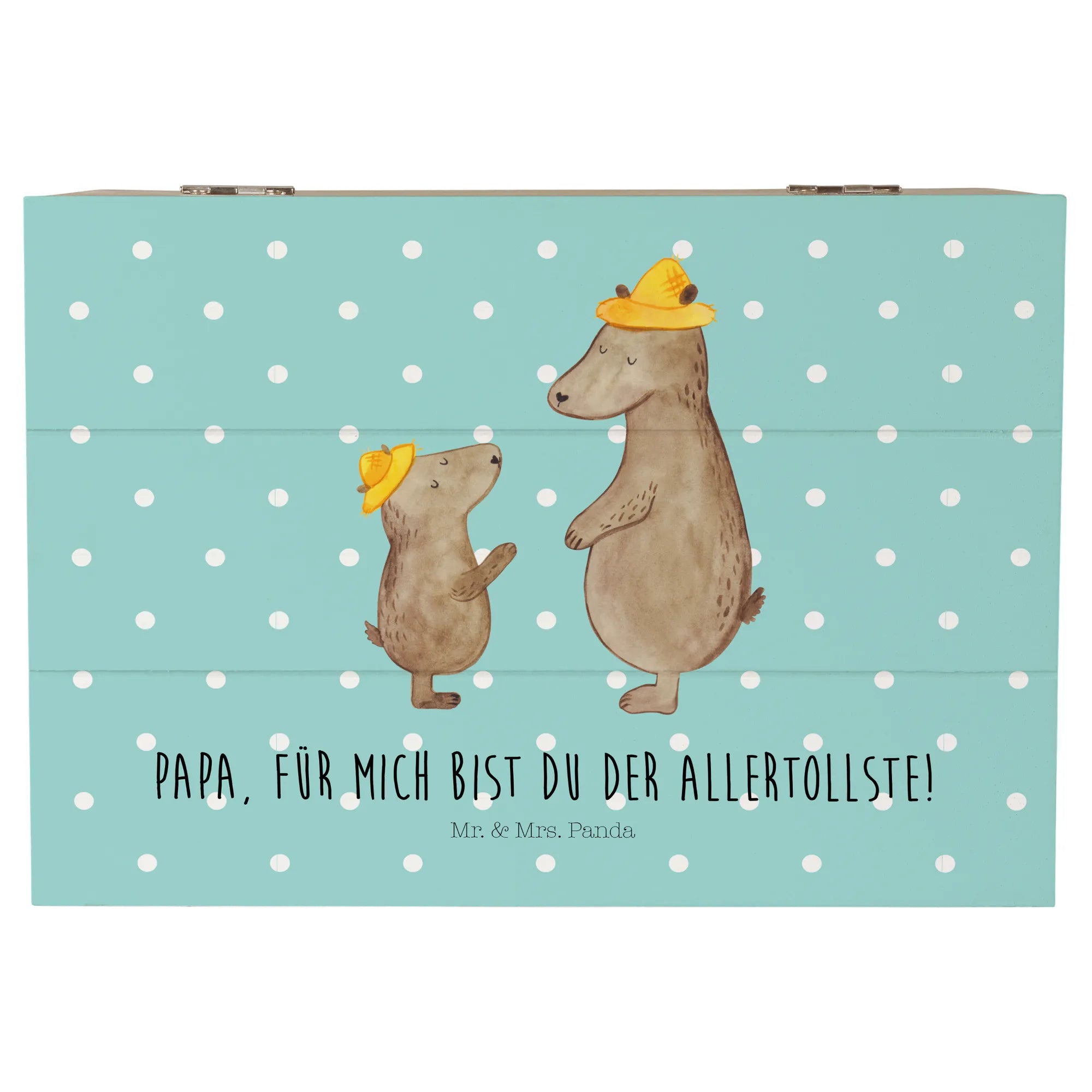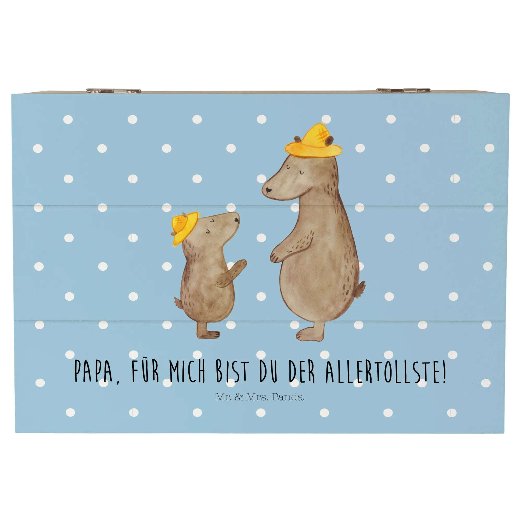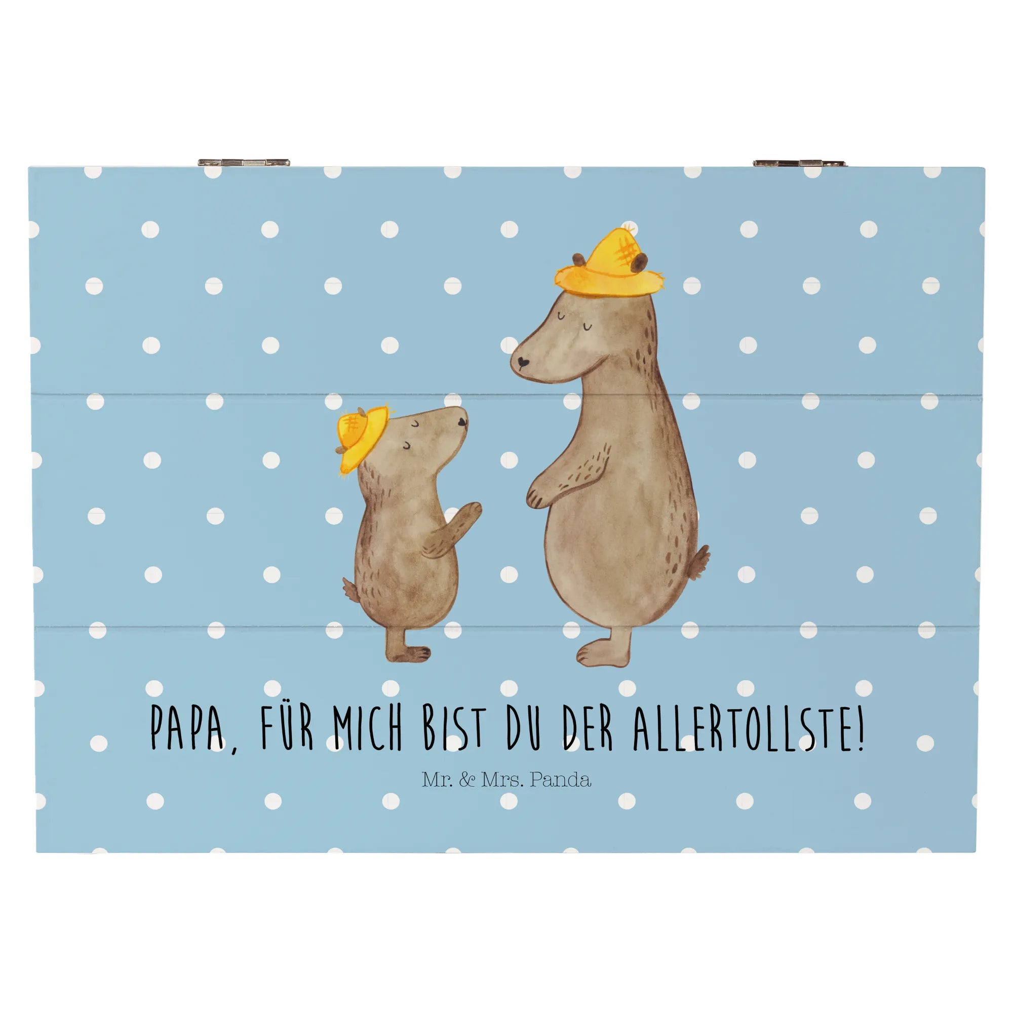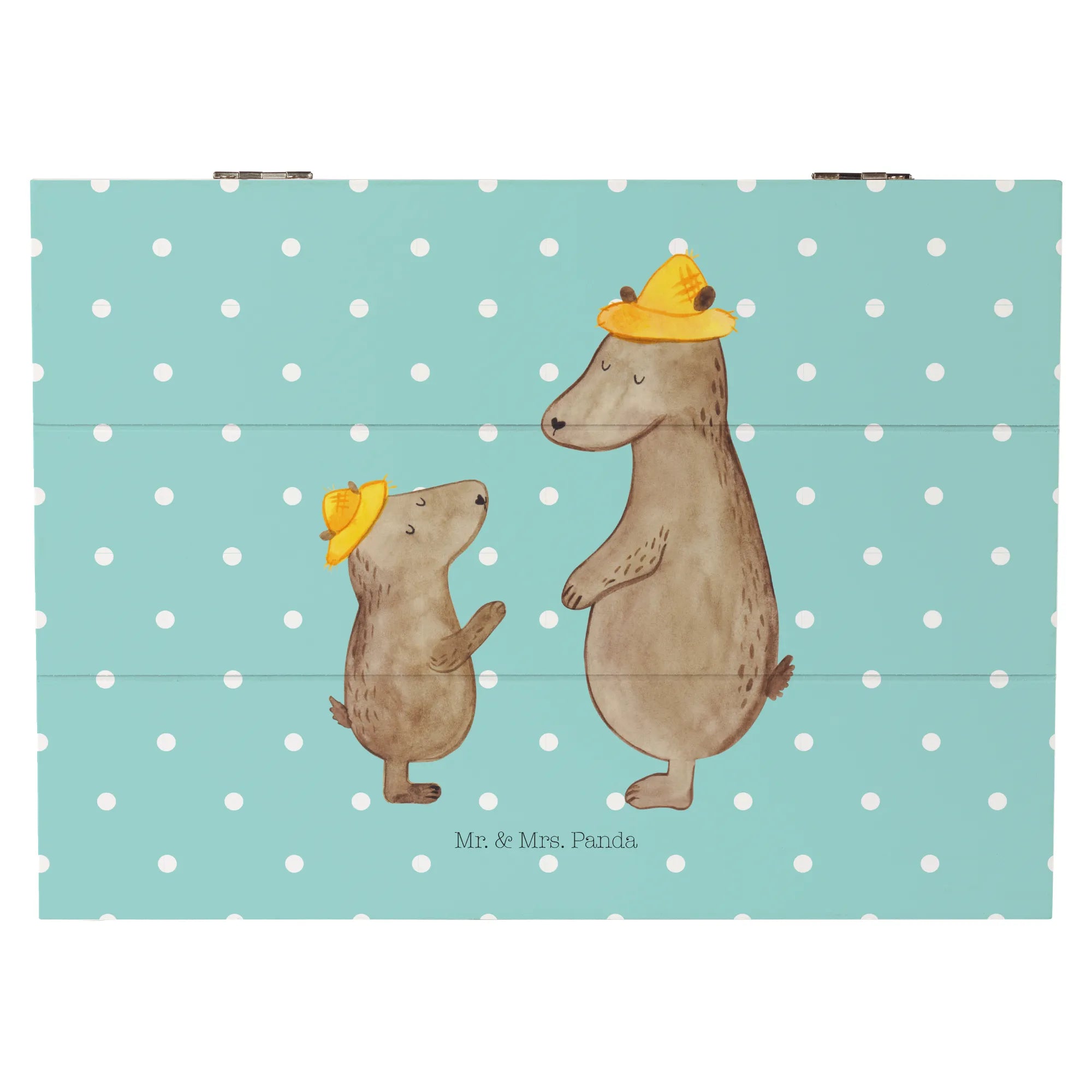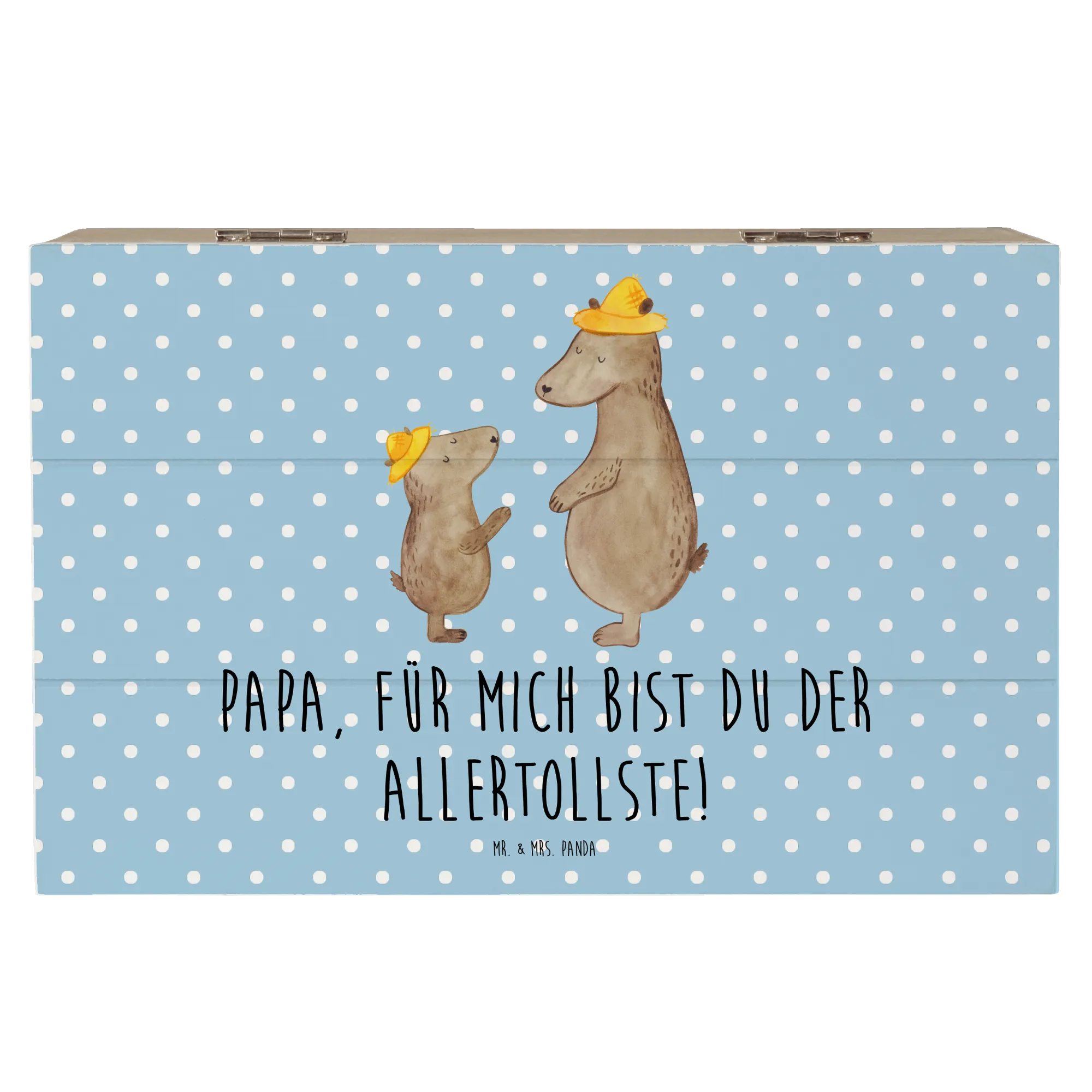 Skrzynia drewniana Niedźwiedzie z kapeluszami - 22 x 15 cm - z napisem - Niebieski Pastel