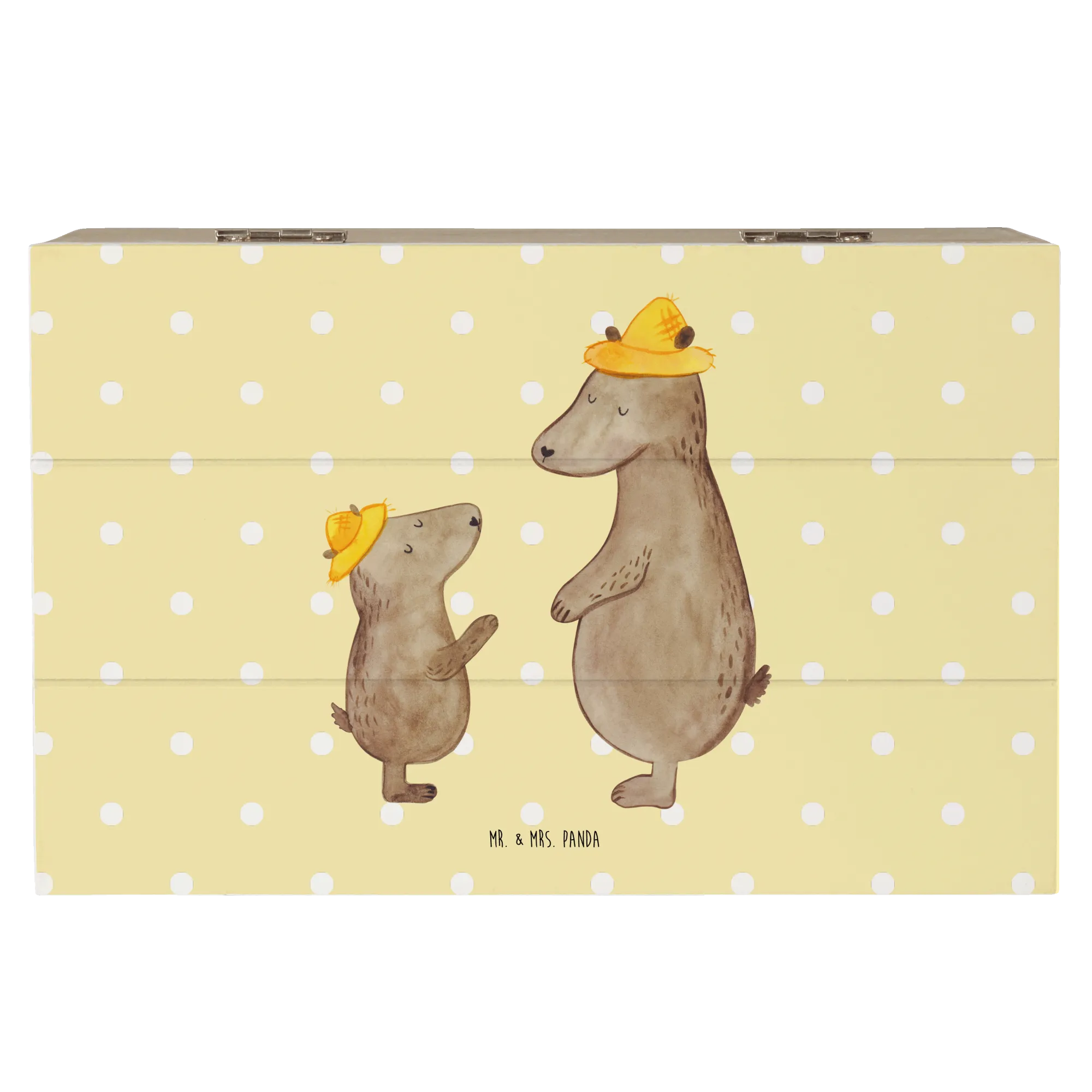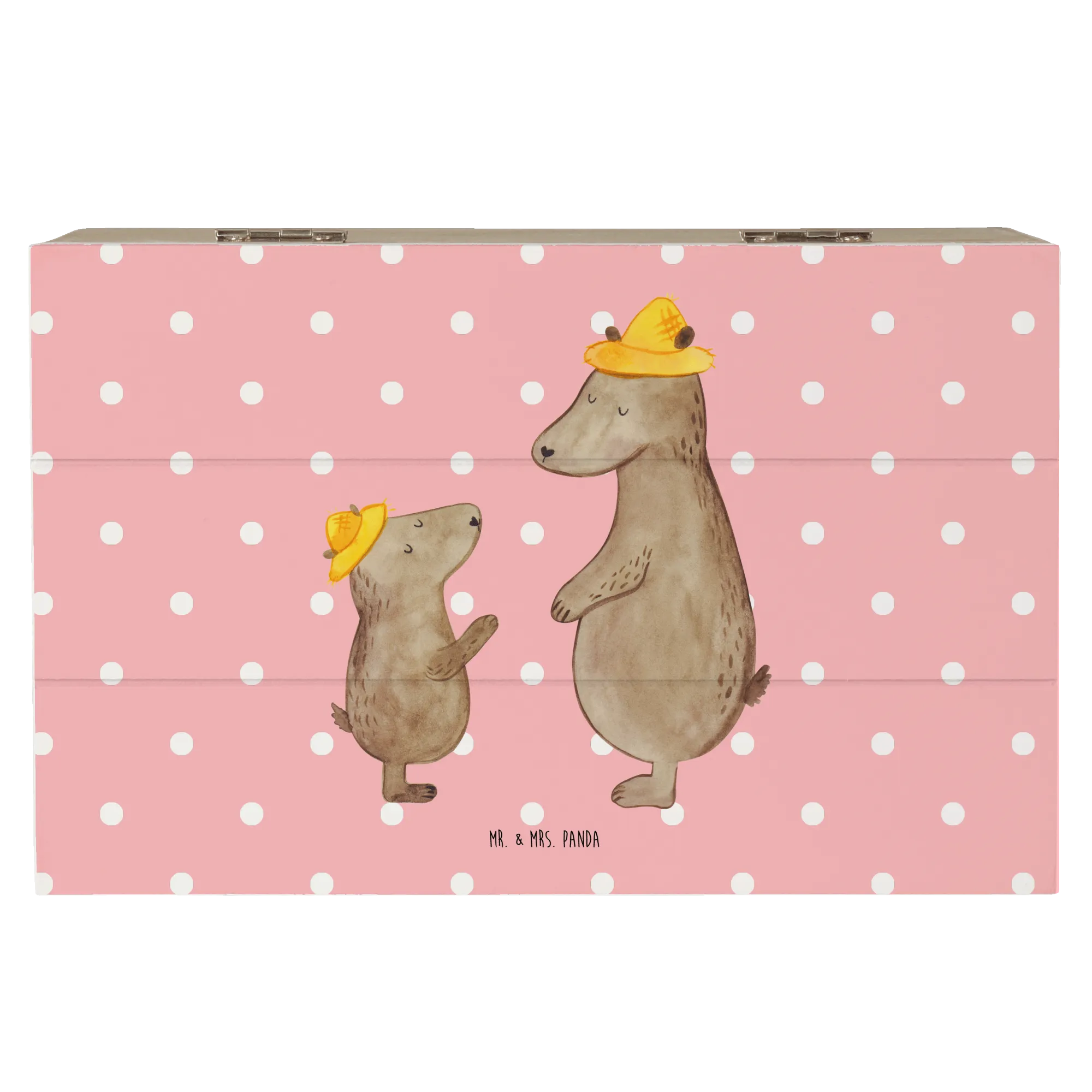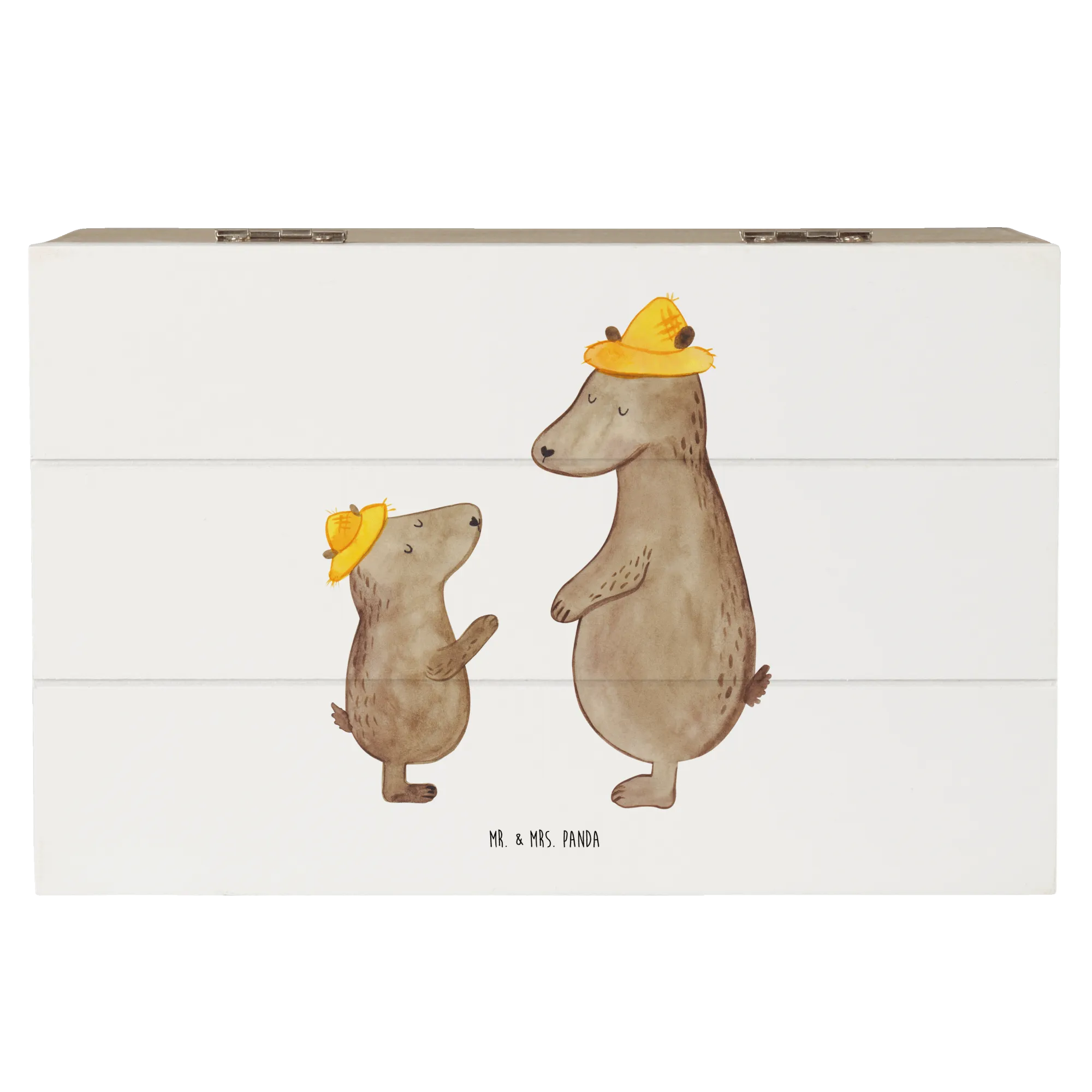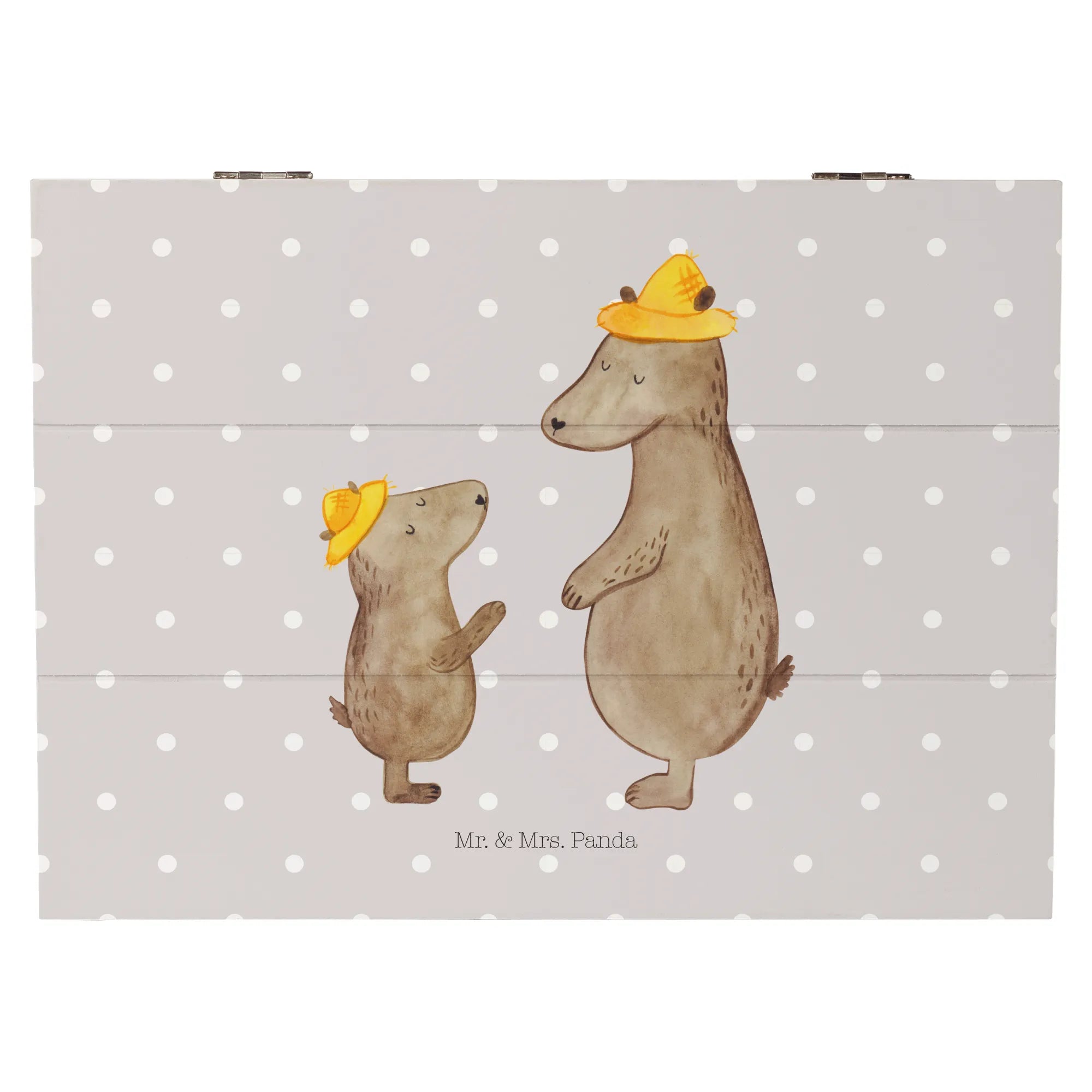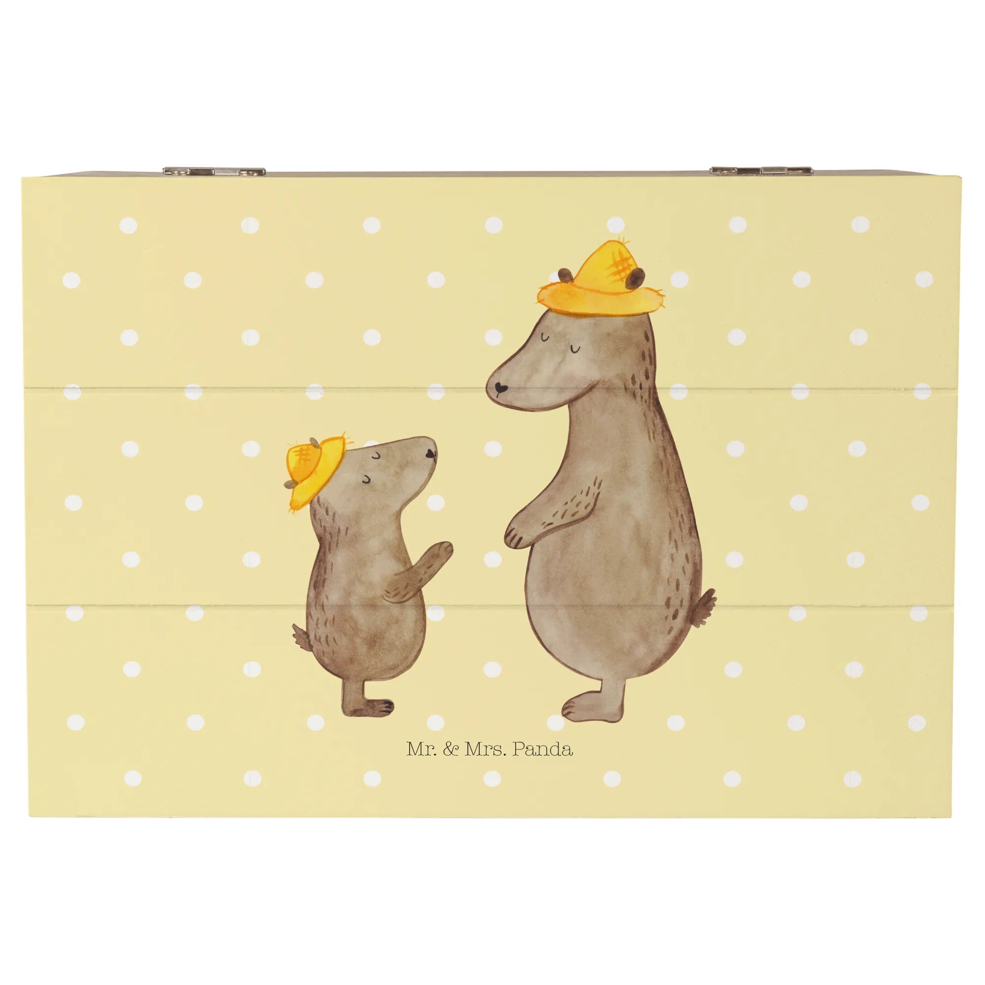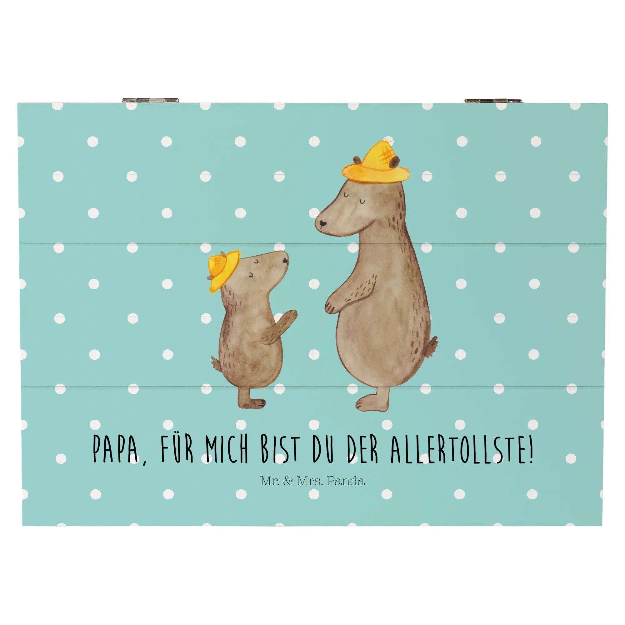 Skrzynia drewniana Niedźwiedzie z kapeluszami - 22 x 15 cm - z napisem - Niebieski Pastel