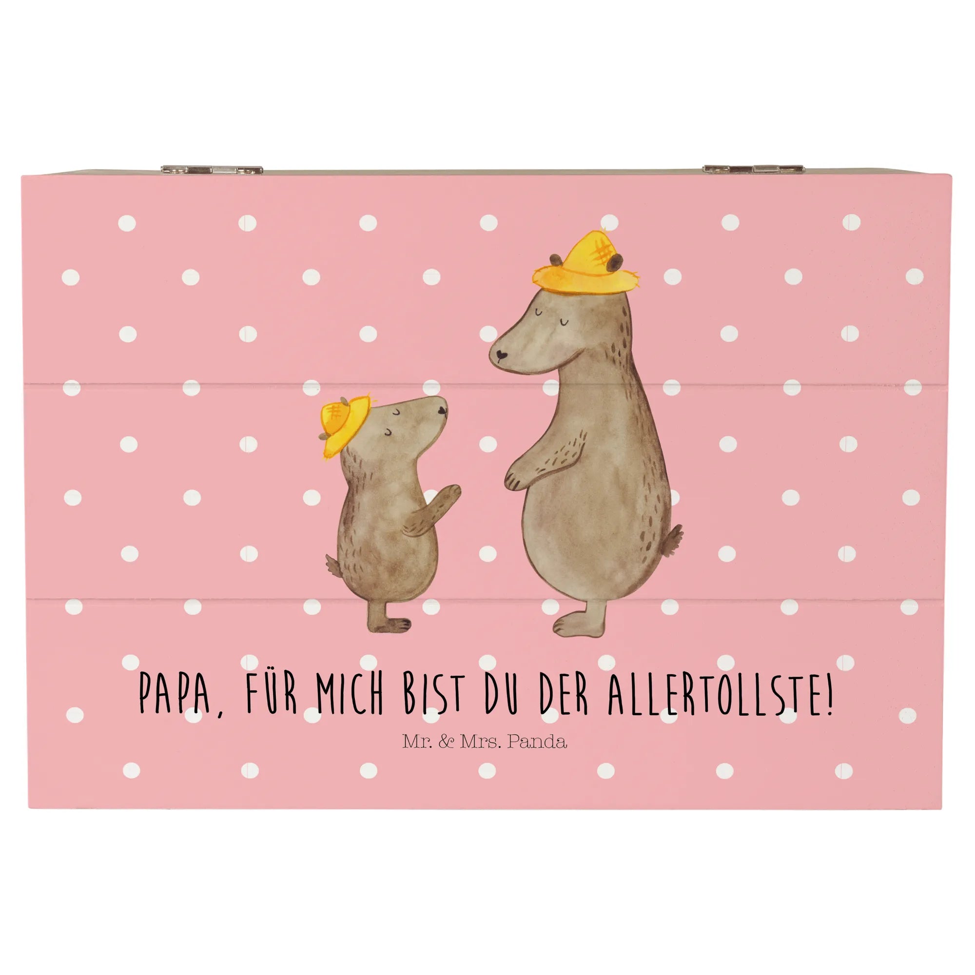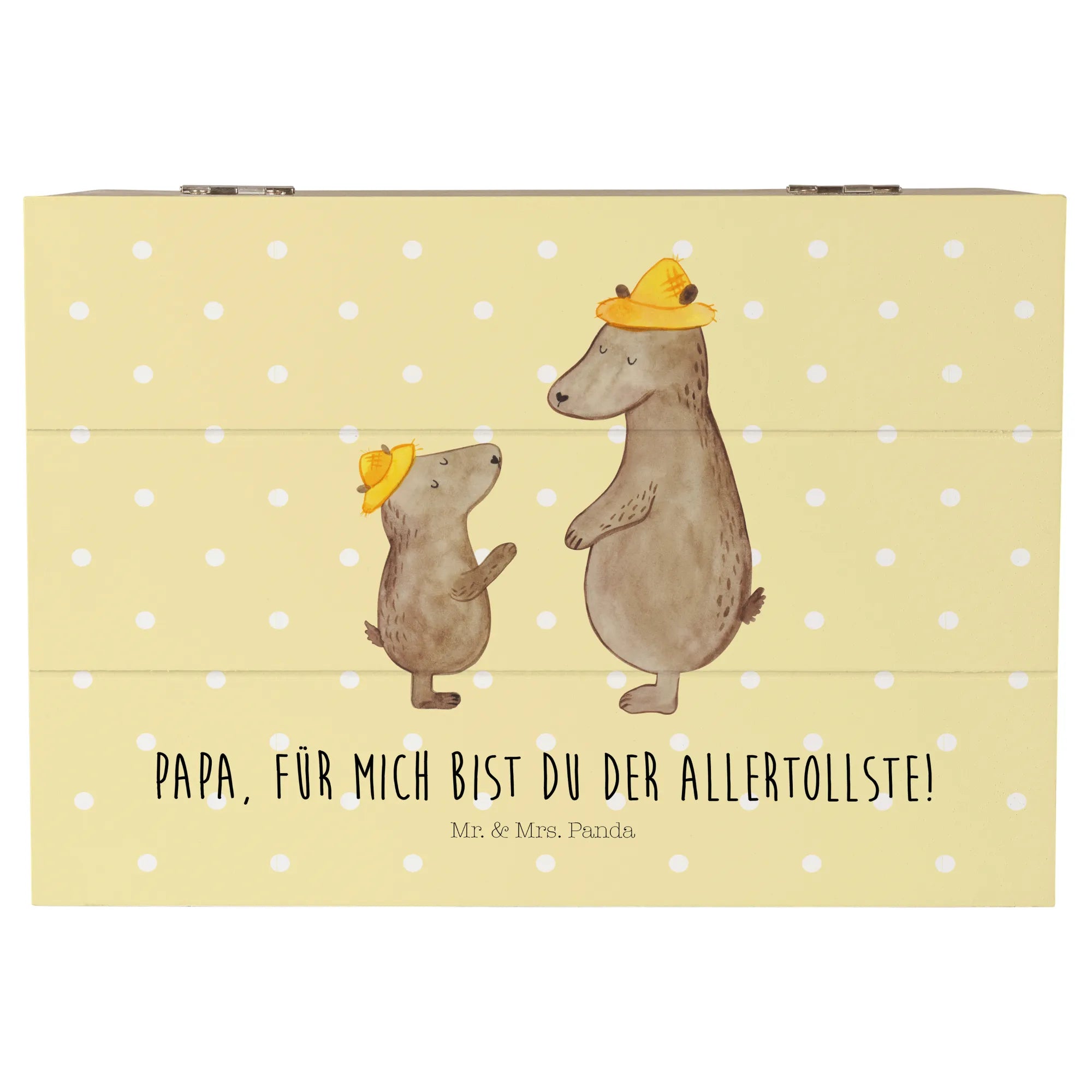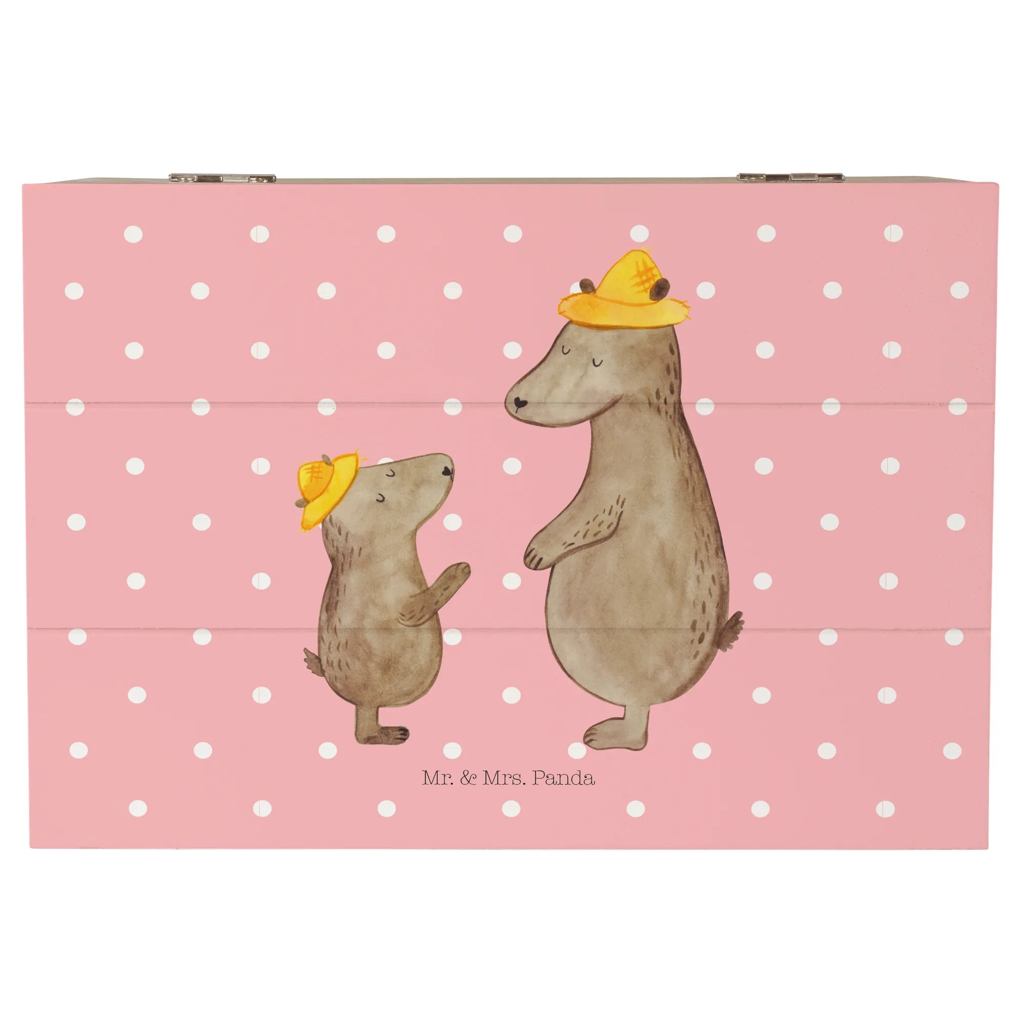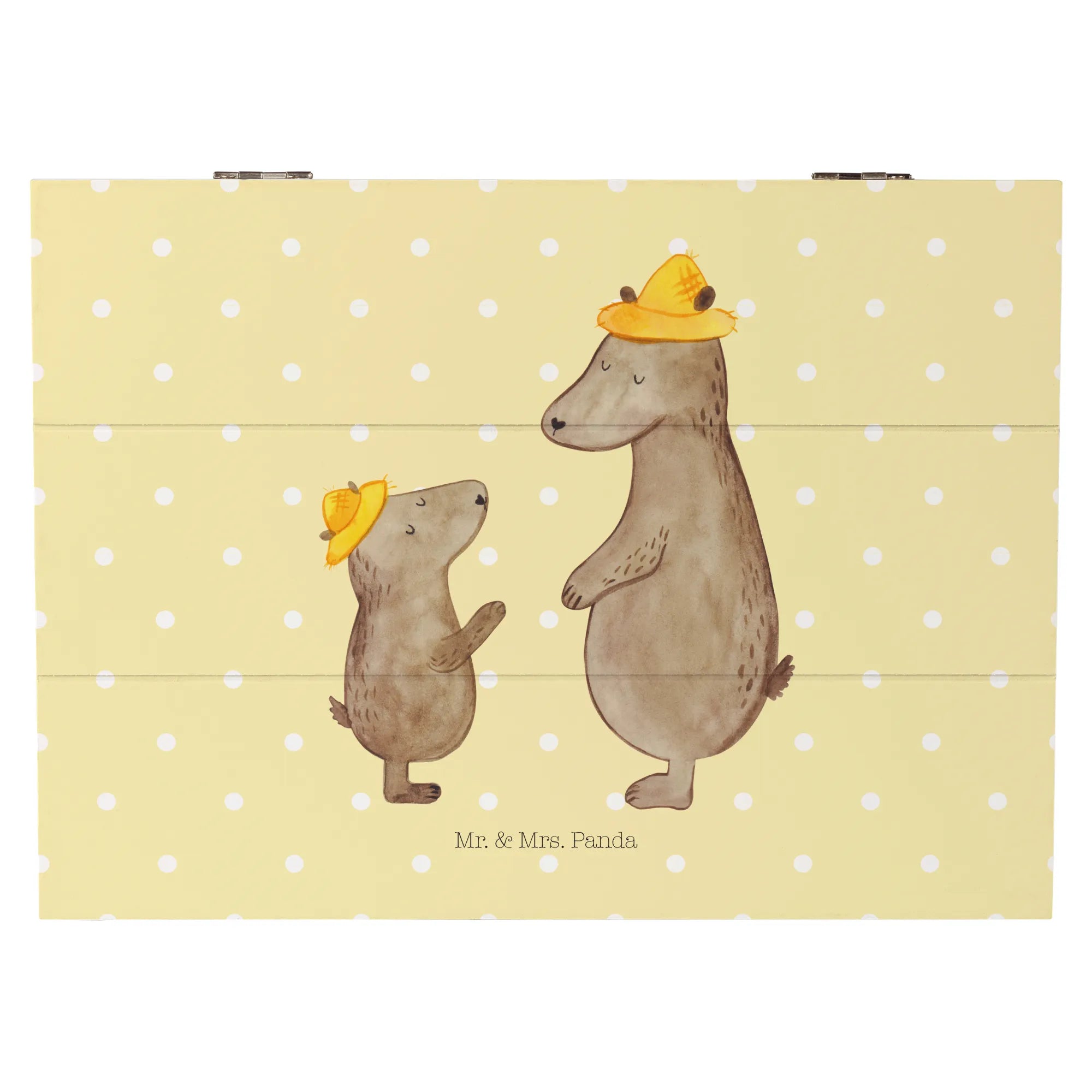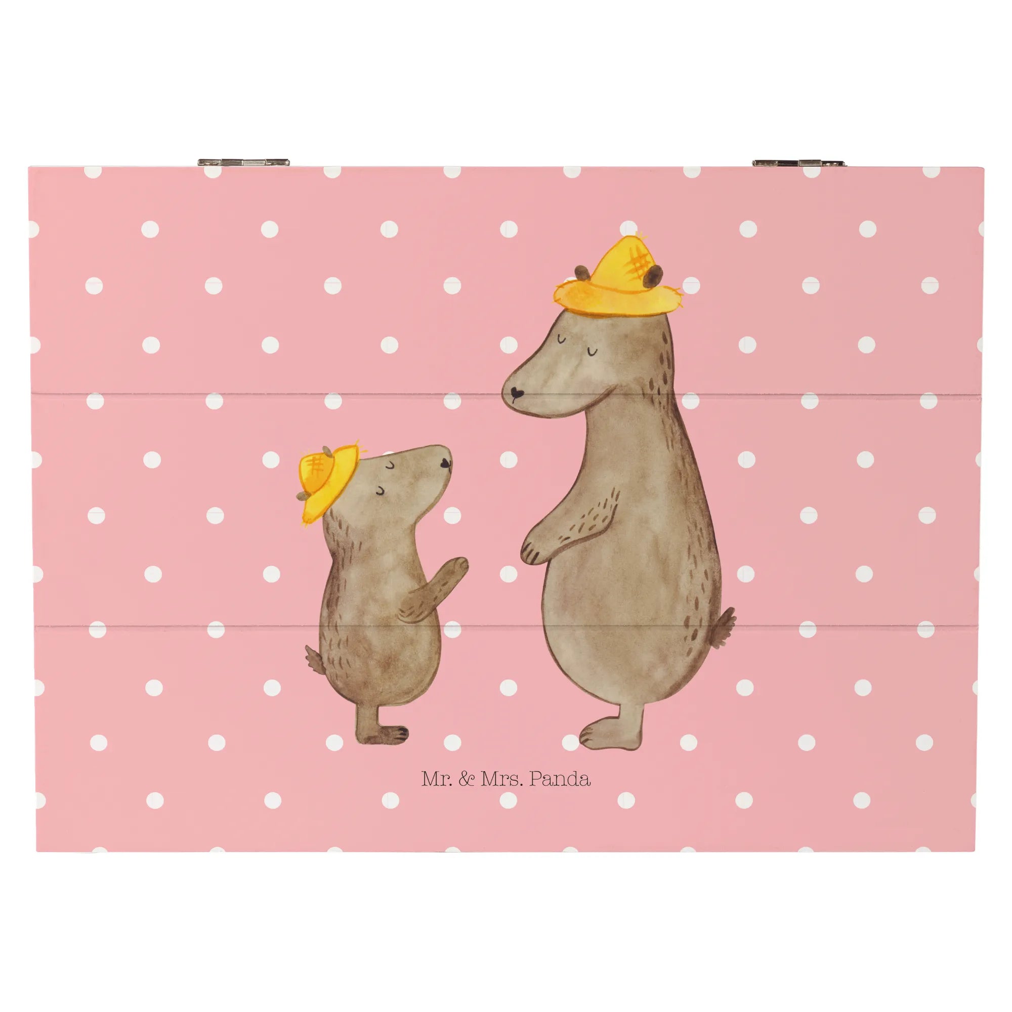 Skrzynia drewniana Niedźwiedzie z kapeluszami - 22 x 15 cm - z napisem - Niebieski Pastel