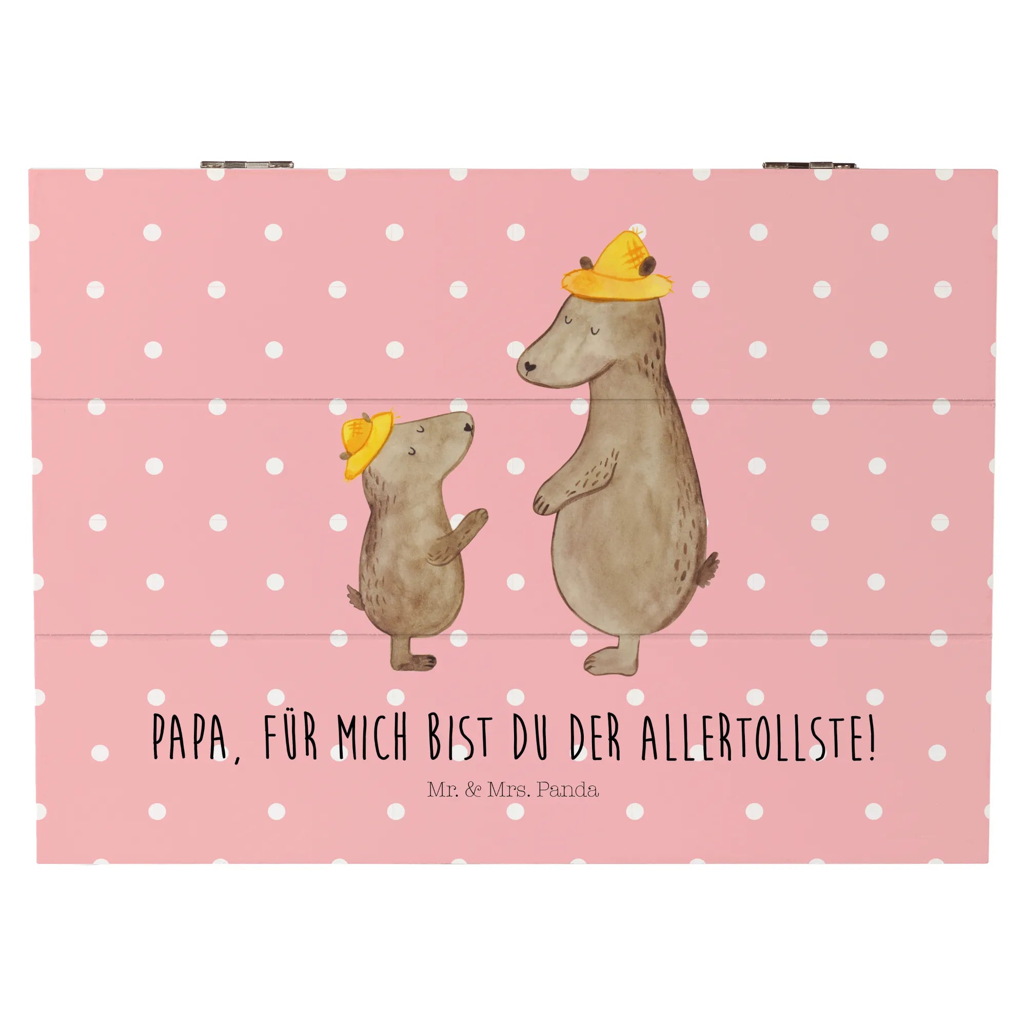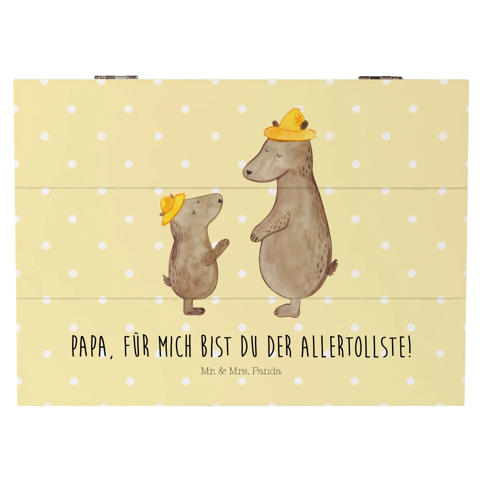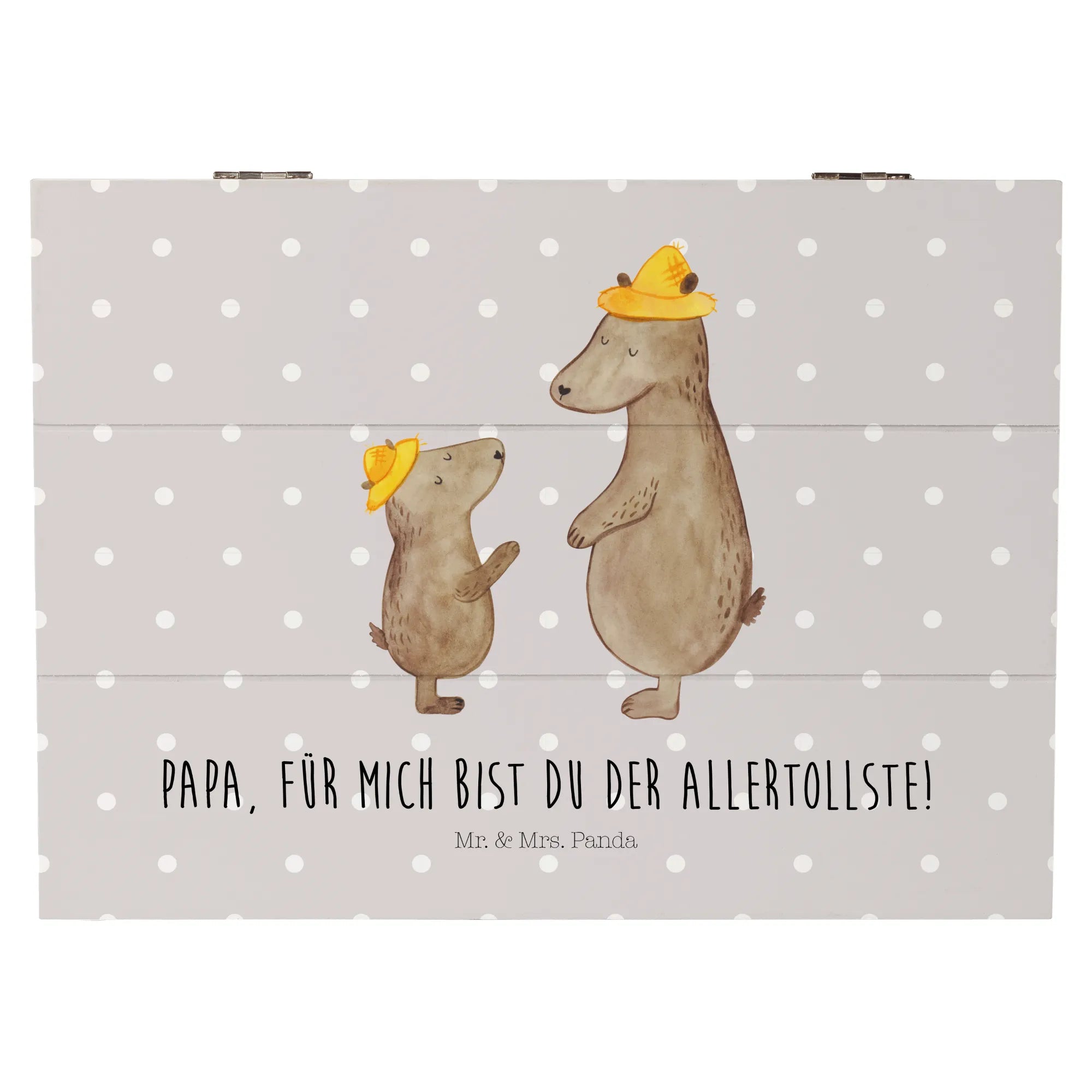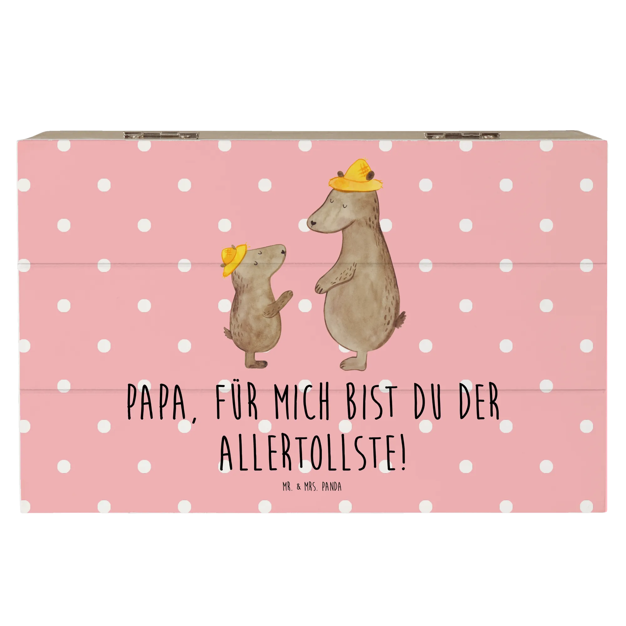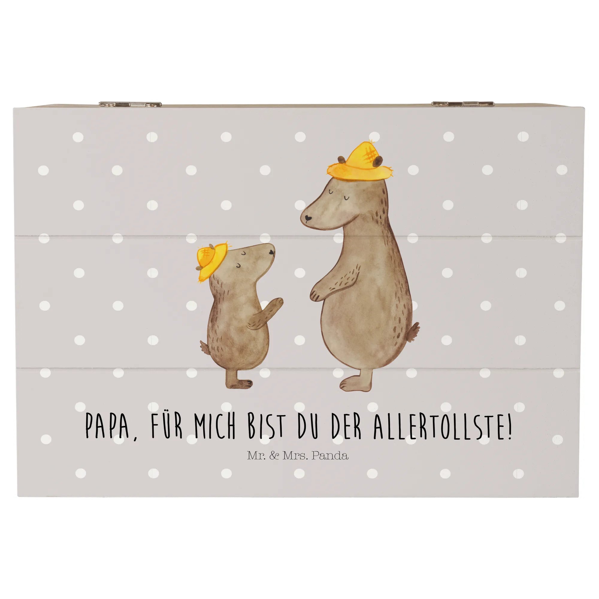 Skrzynia drewniana Niedźwiedzie z kapeluszami - 22 x 15 cm - z napisem - Niebieski Pastel