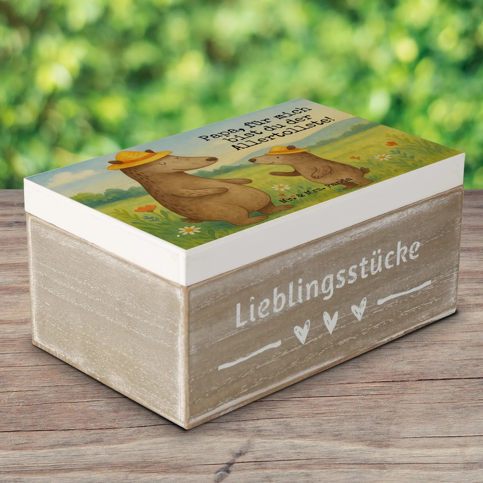 Skrzynia drewniana Niedźwiedzie z kapeluszami Design Schatzkiste, Erinnerungsbox, Erinnerungskiste, Geschenkdose, Schatulle, Geschenkbox, Truhe, Aufbewahrungsbox, Kiste, Dekokiste, XXL, Holzkiste, Familie, Vatertag, Muttertag, Bruder, Schwester, Mama, Papa, Oma, Opa, Vorbild, Söhne, Kind, Daddy, Paps, Vater, Family, Kinder, Bär, Lieblingsmensch, Sohn, Papi, Vater-Sohn, Dad, Bären