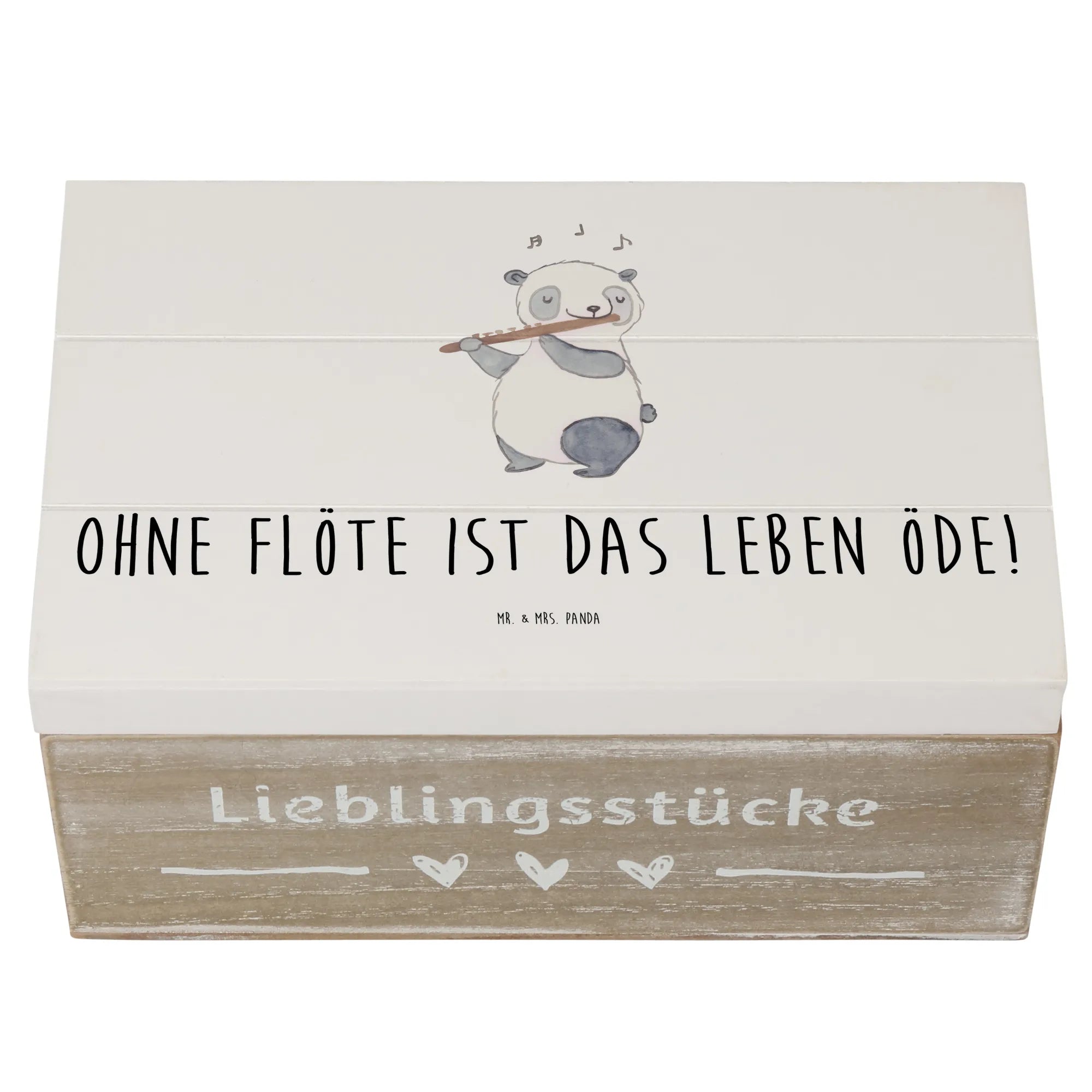 Skrzynia drewniana Ohne Flöte ist das Leben öde! - 22 x 15 cm - biały