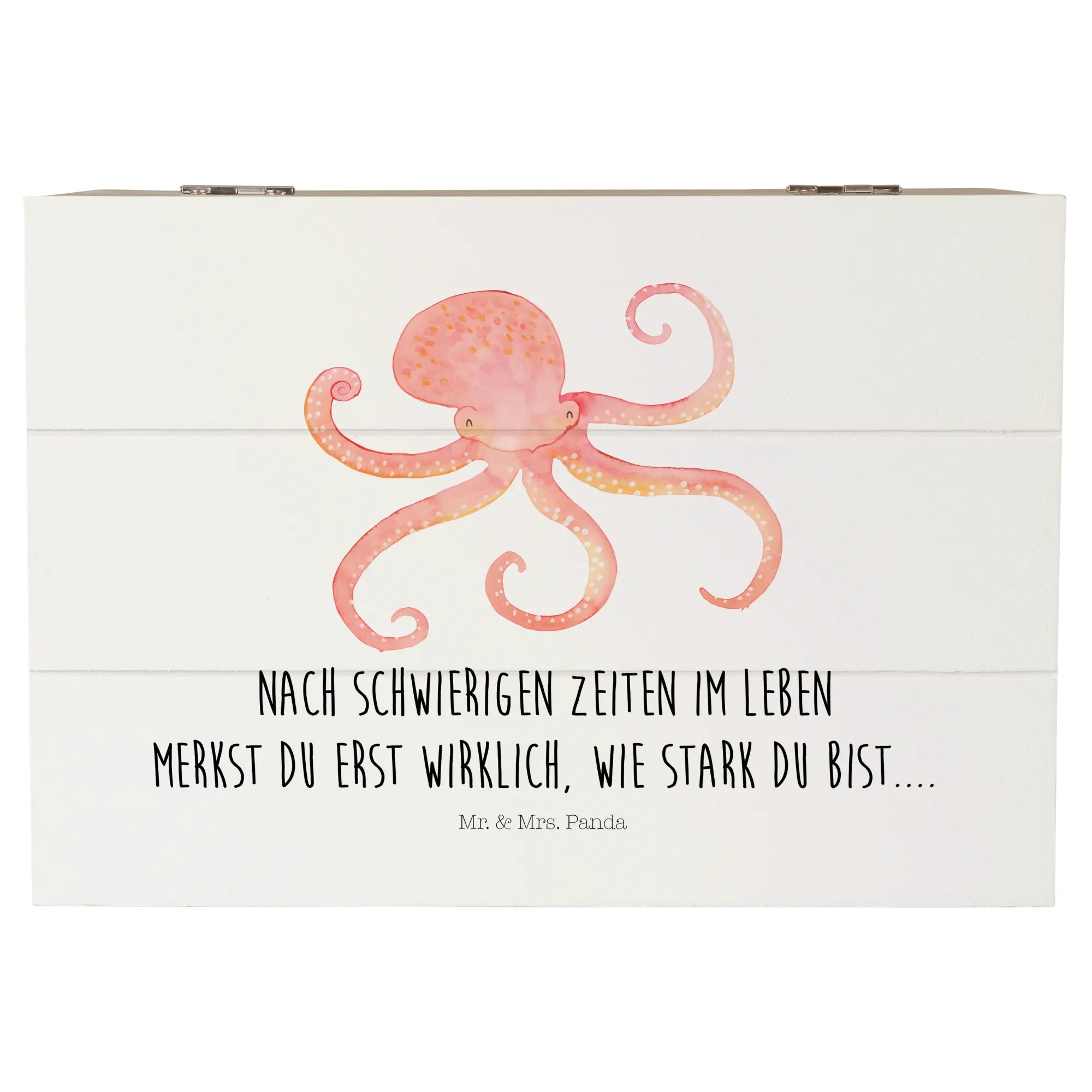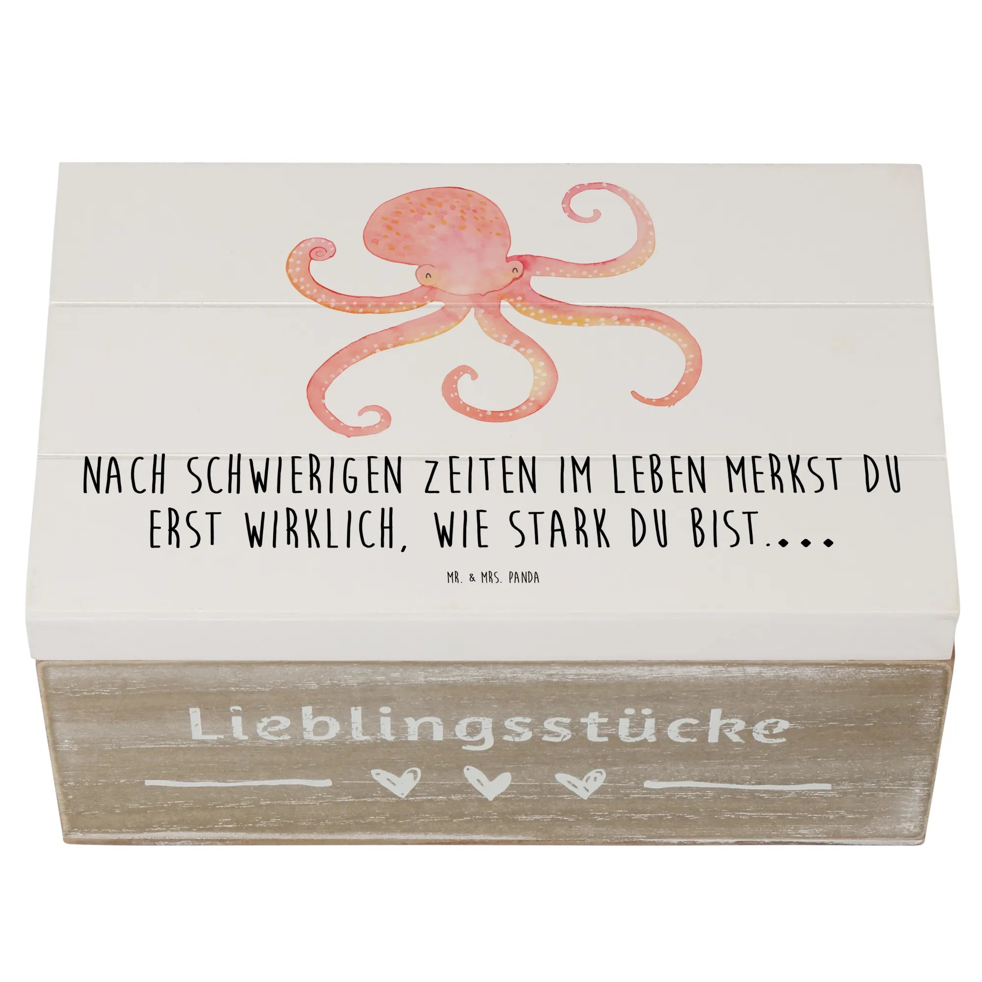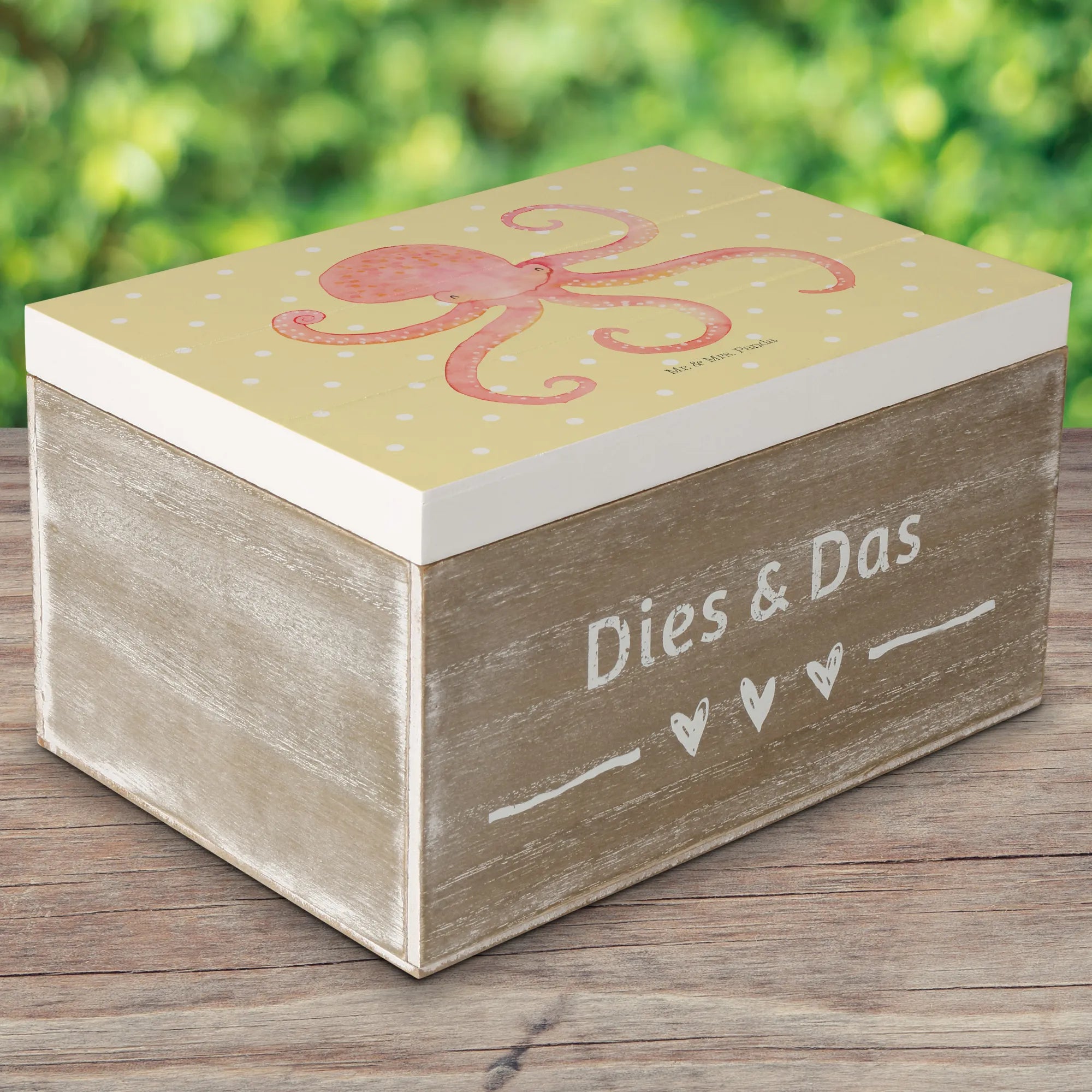 Skrzynia drewniana Ośmiornica - 22 x 15 cm - z napisem - biały