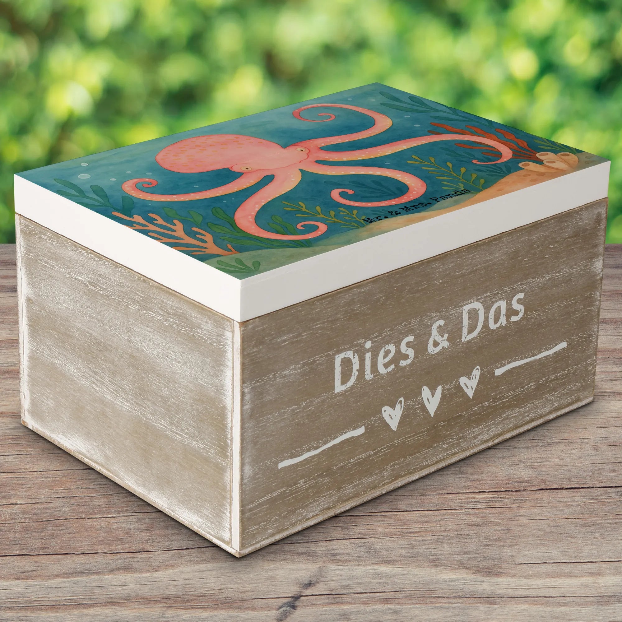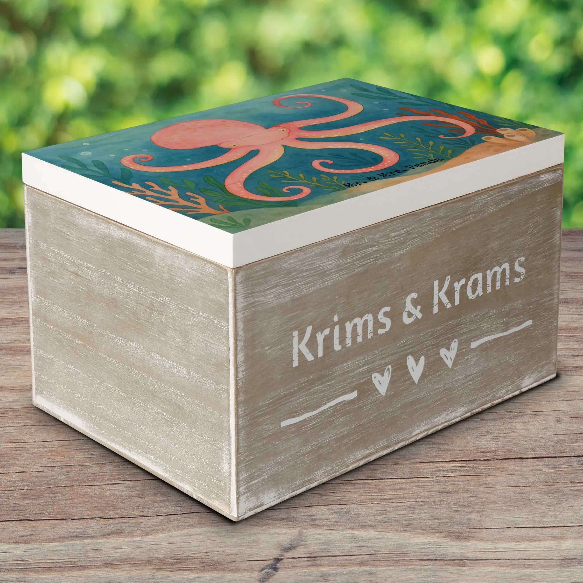Skrzynia drewniana Ośmiornica Design - 22 x 15 cm - z napisem