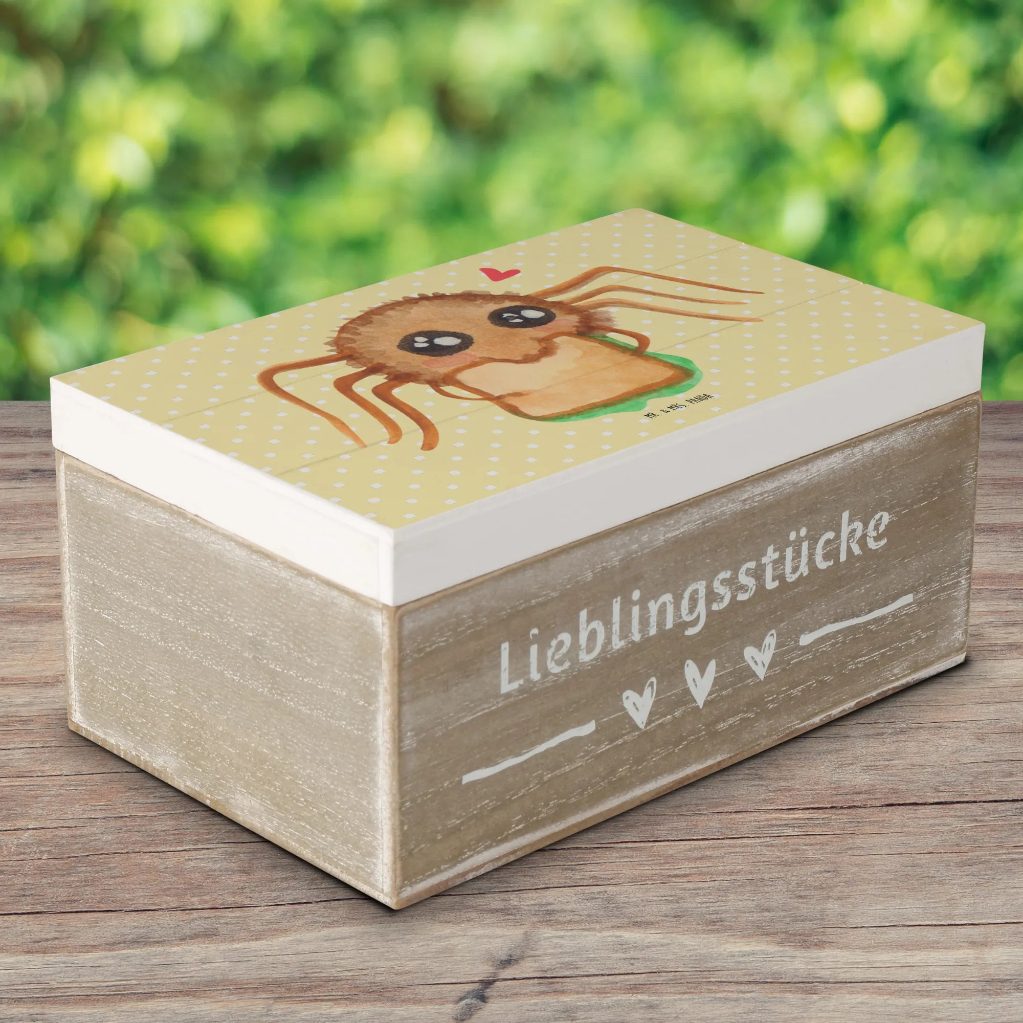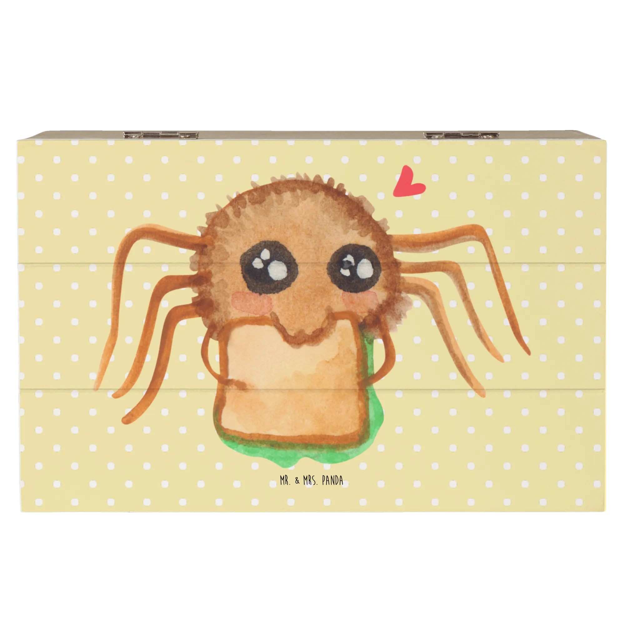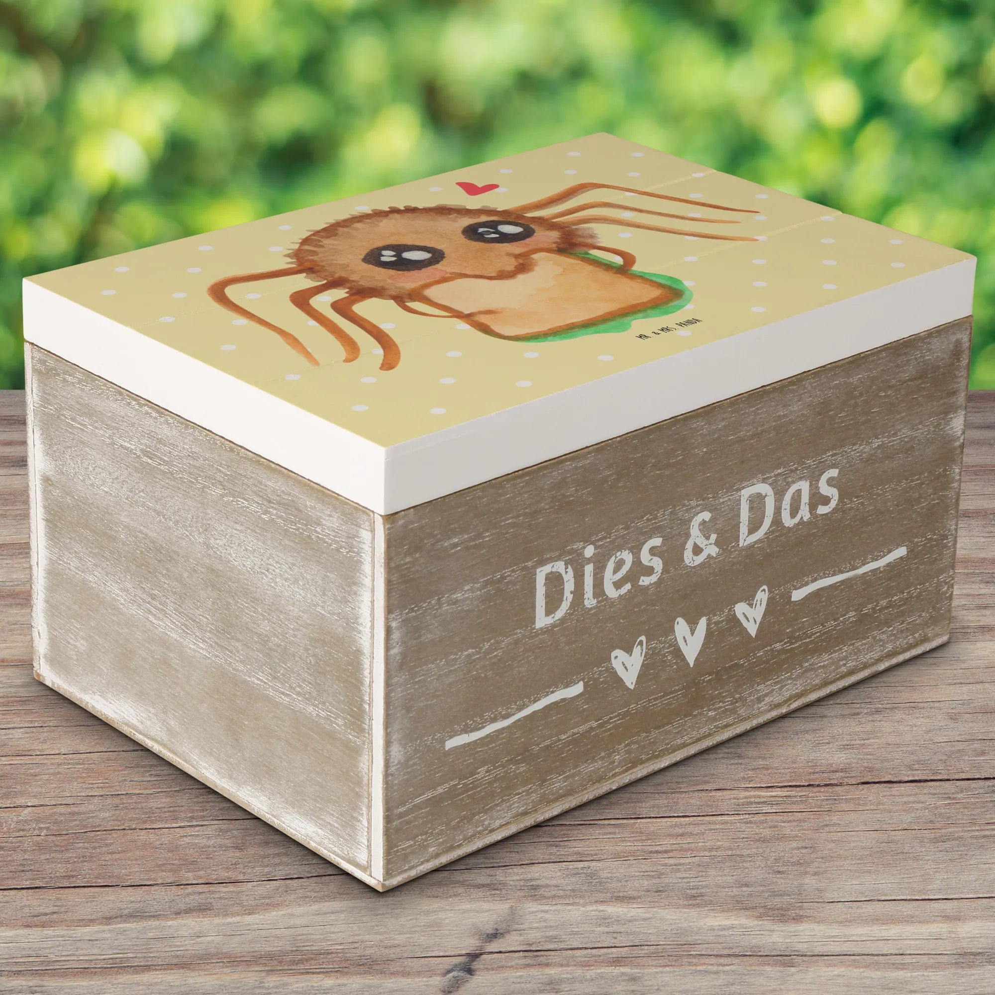 Skrzynia drewniana Pająk Agata kanapka - 22 x 15 cm - z napisem - Pastelowy żółty