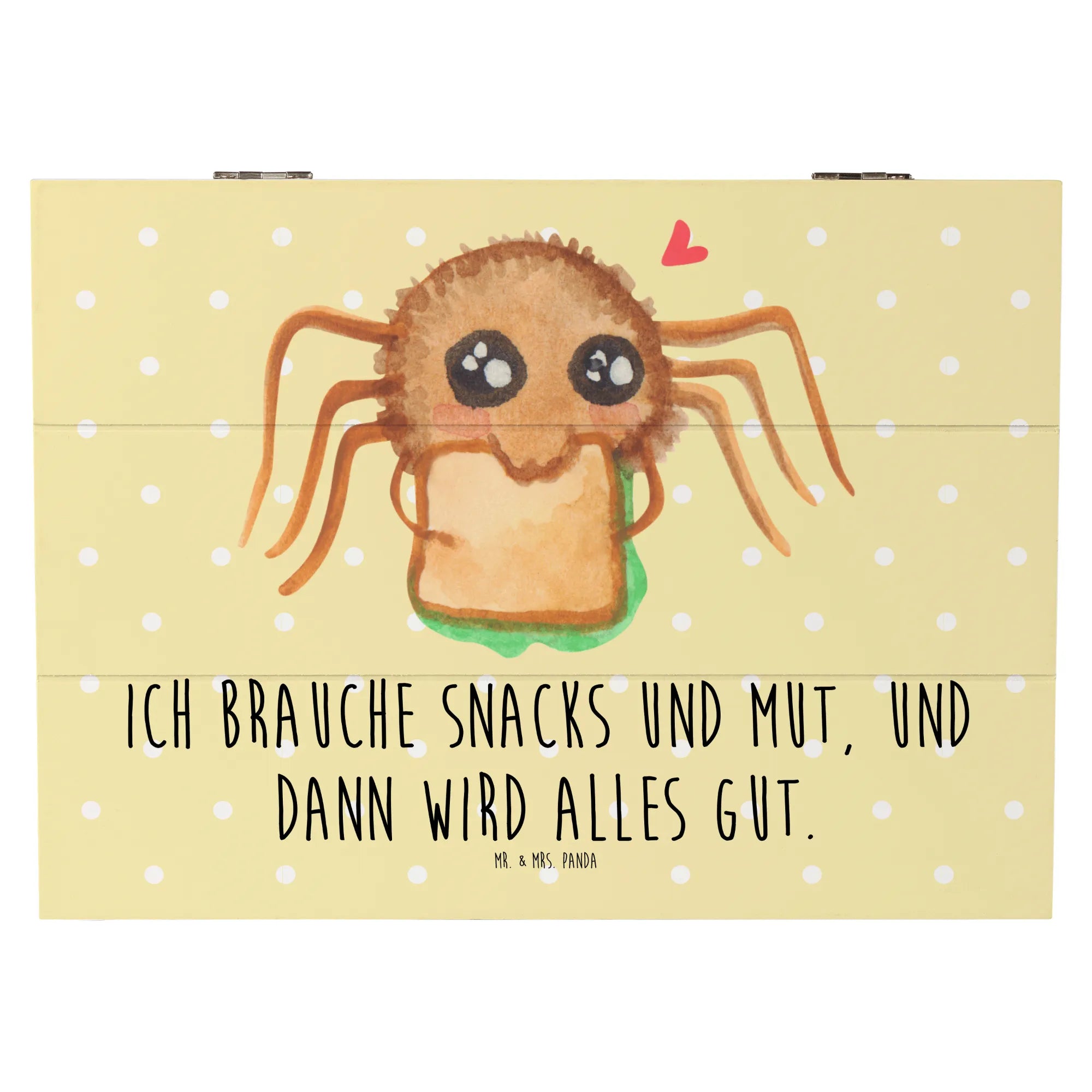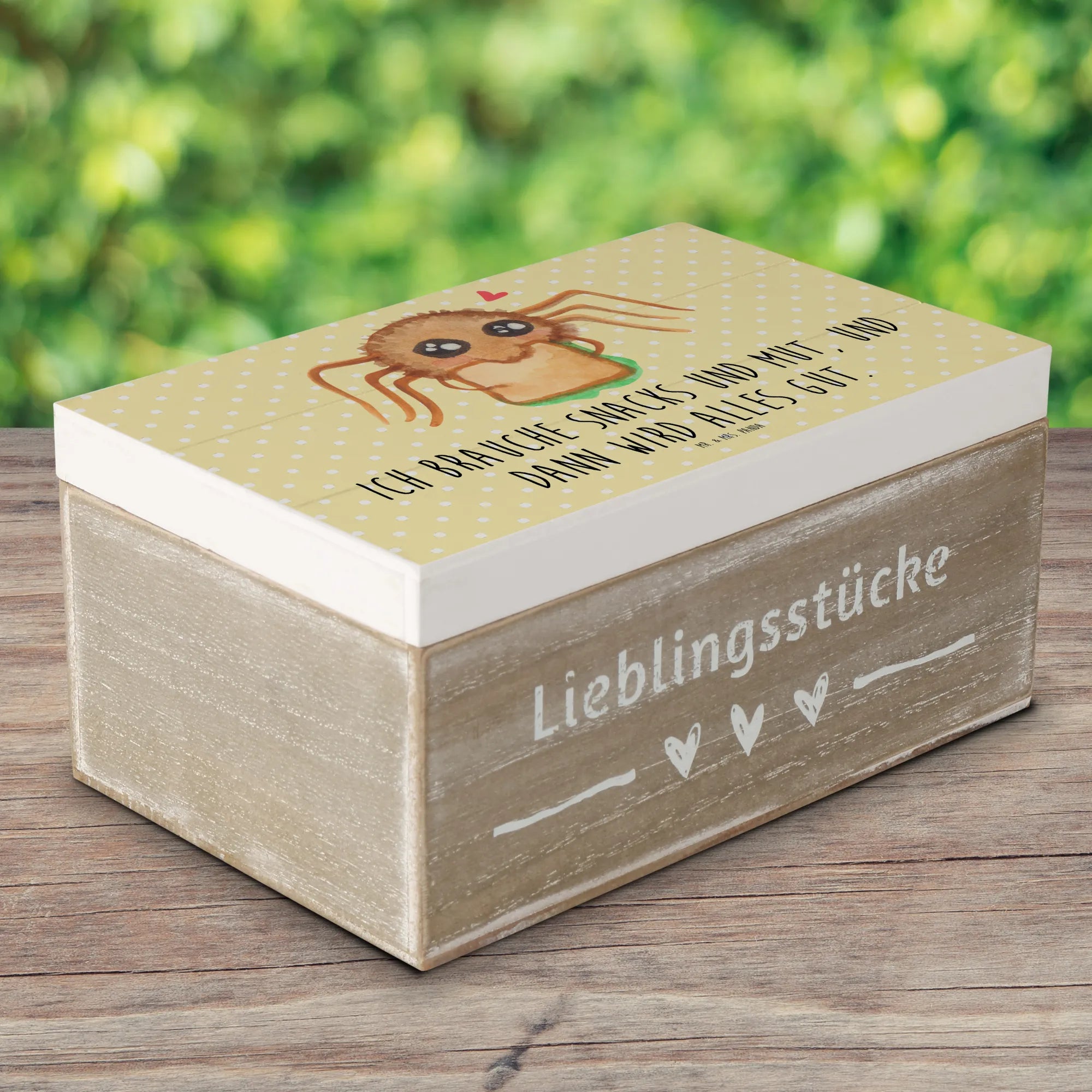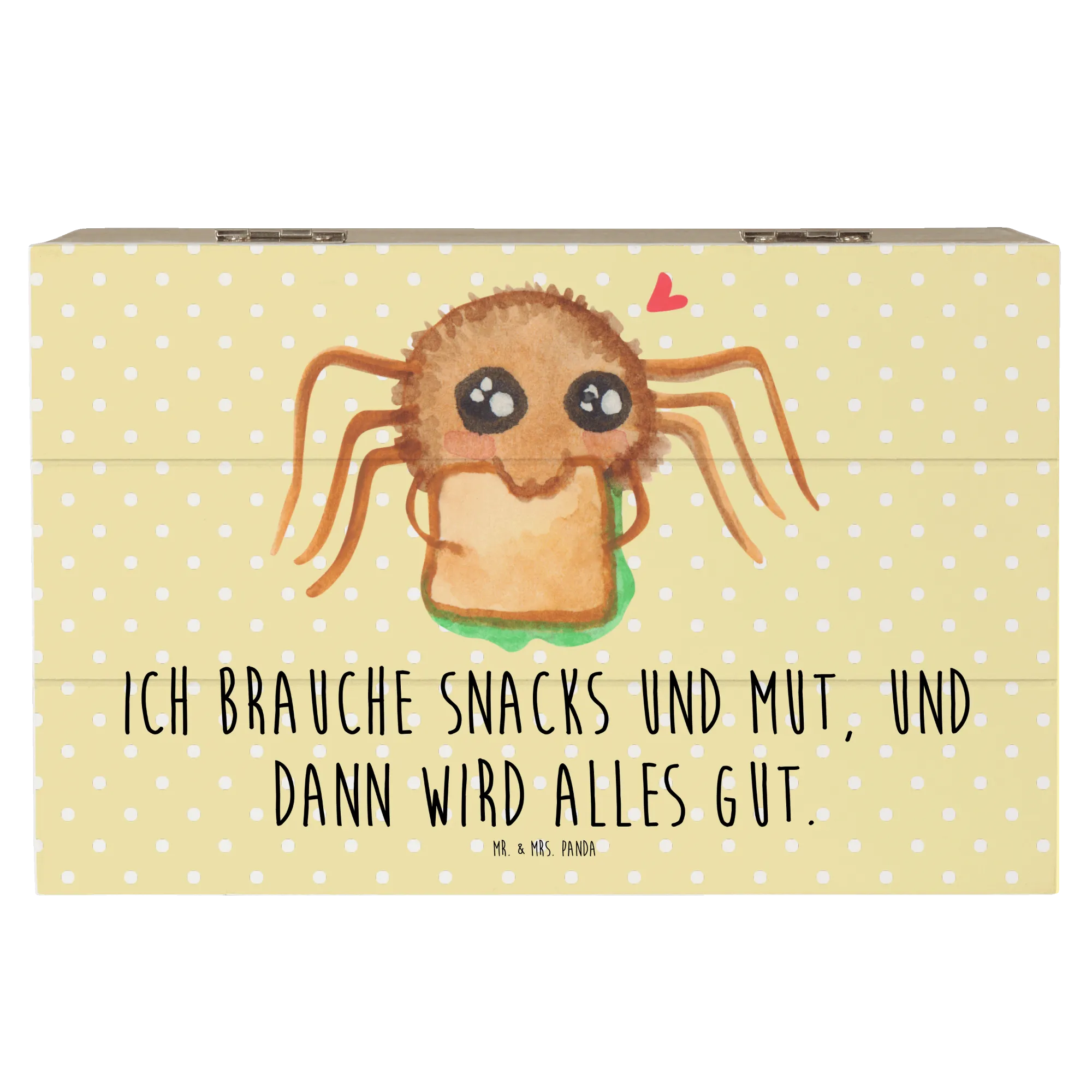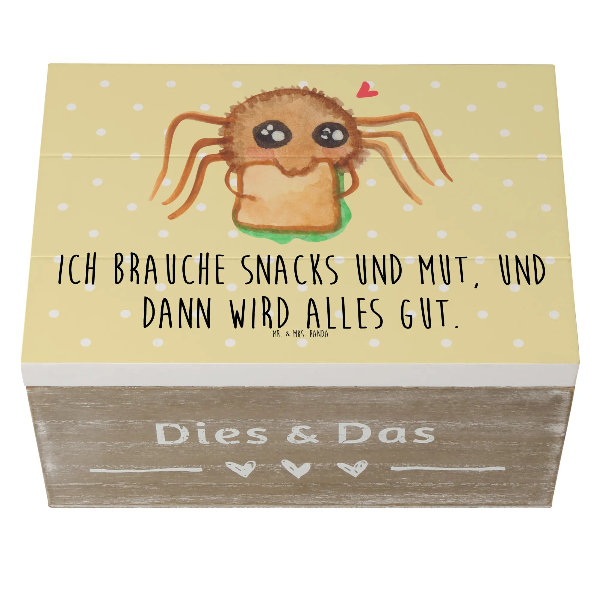 Skrzynia drewniana Pająk Agata kanapka - 22 x 15 cm - z napisem - Pastelowy żółty