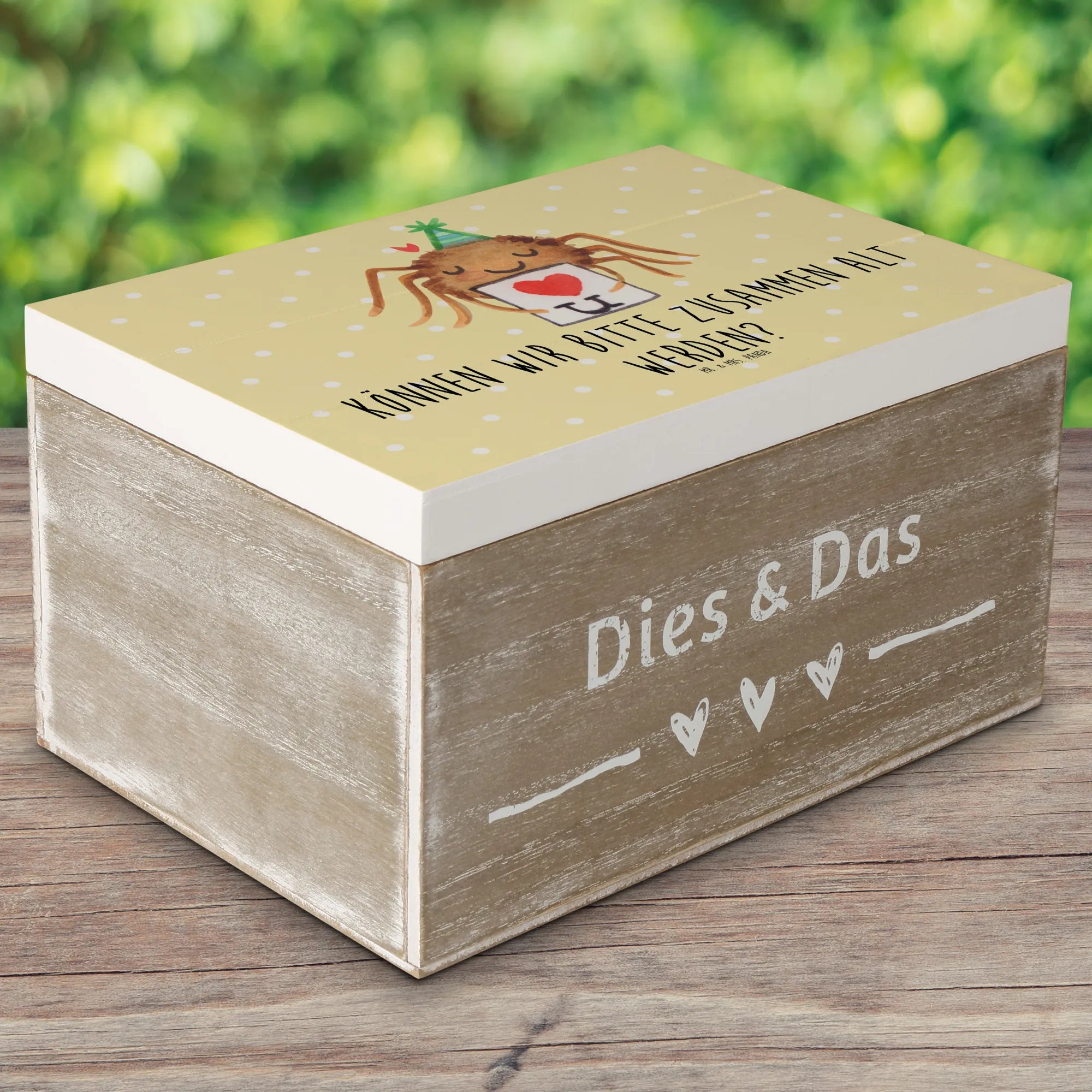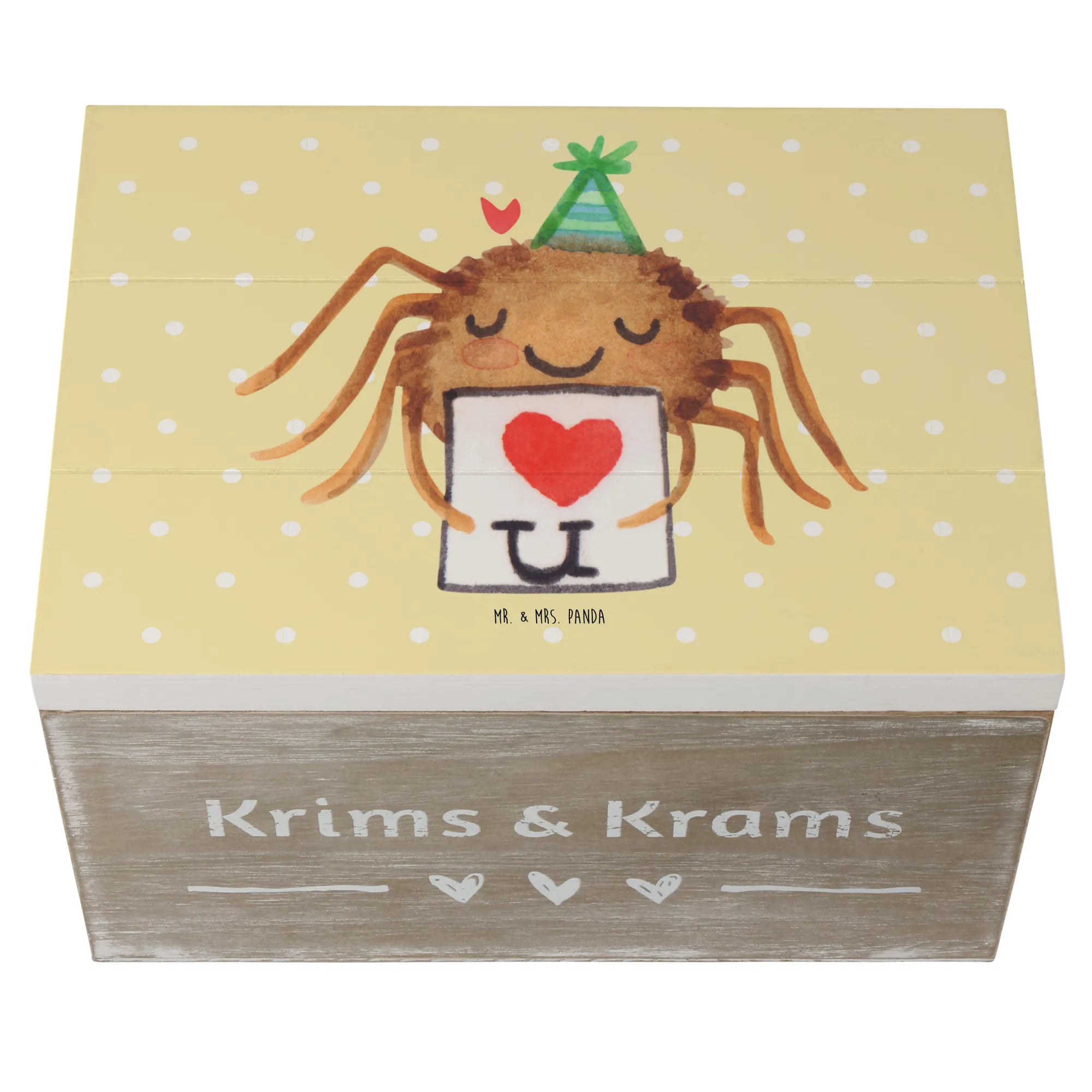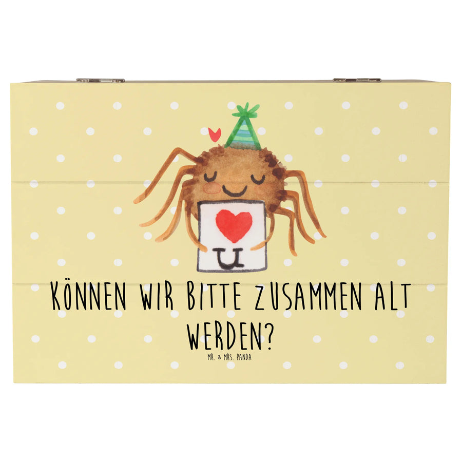 Skrzynia drewniana Pająk Agata list - 22 x 15 cm - z napisem - Pastelowy żółty