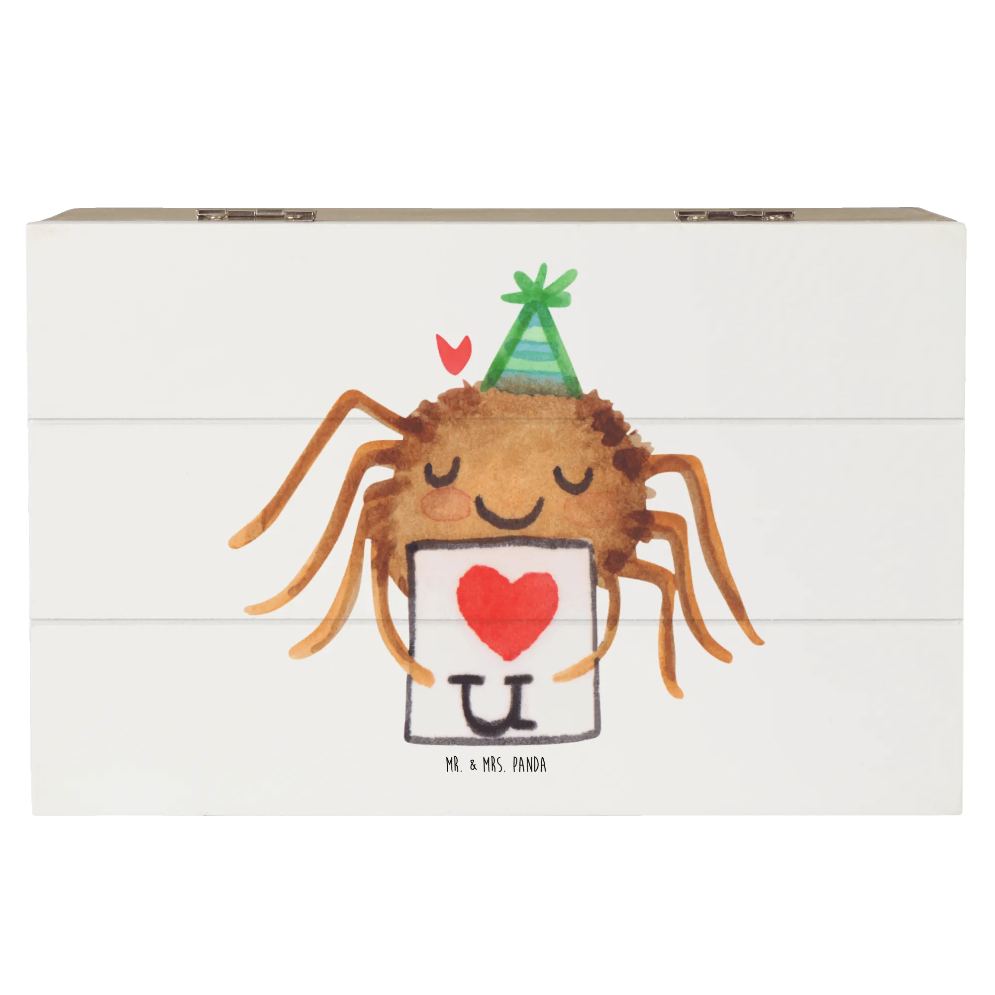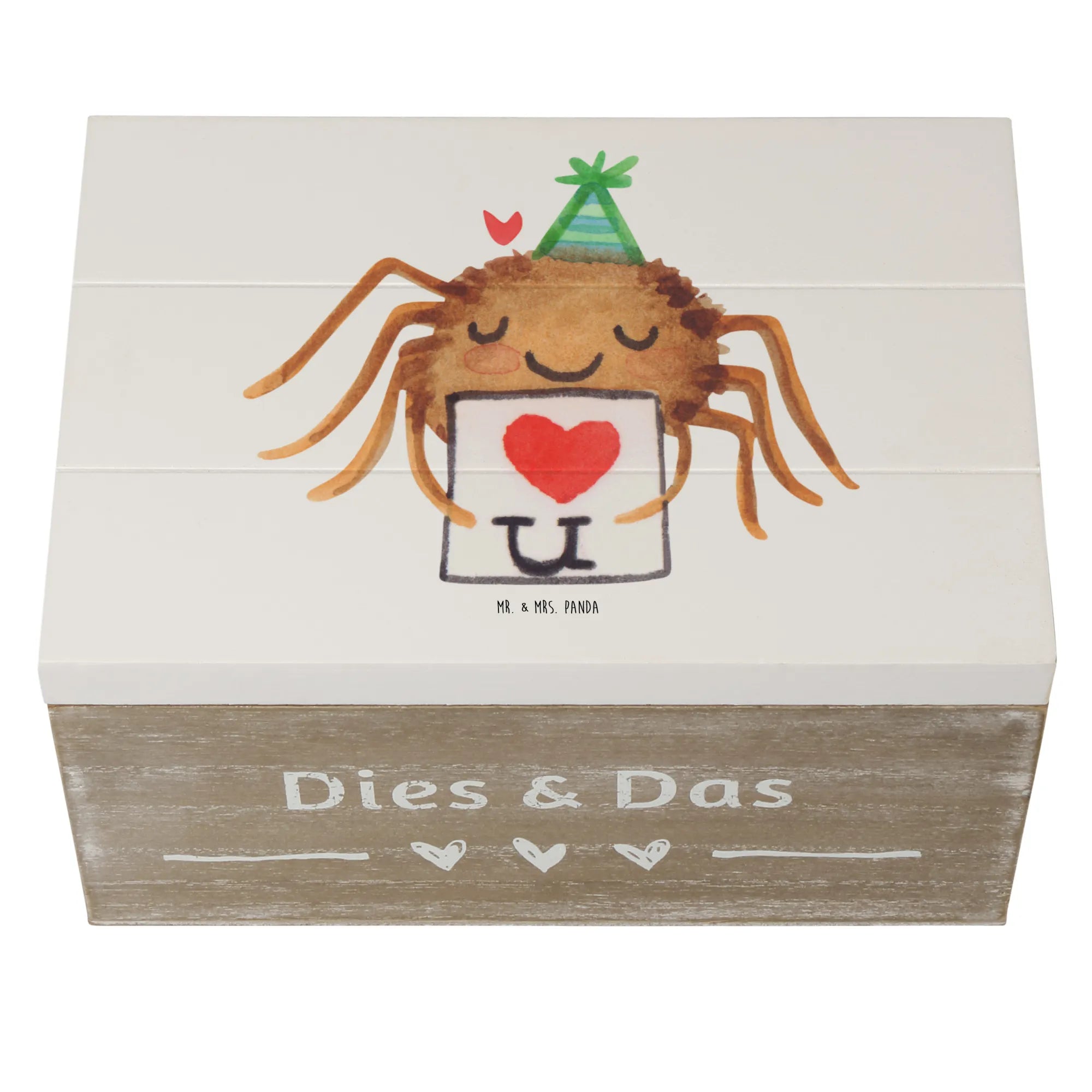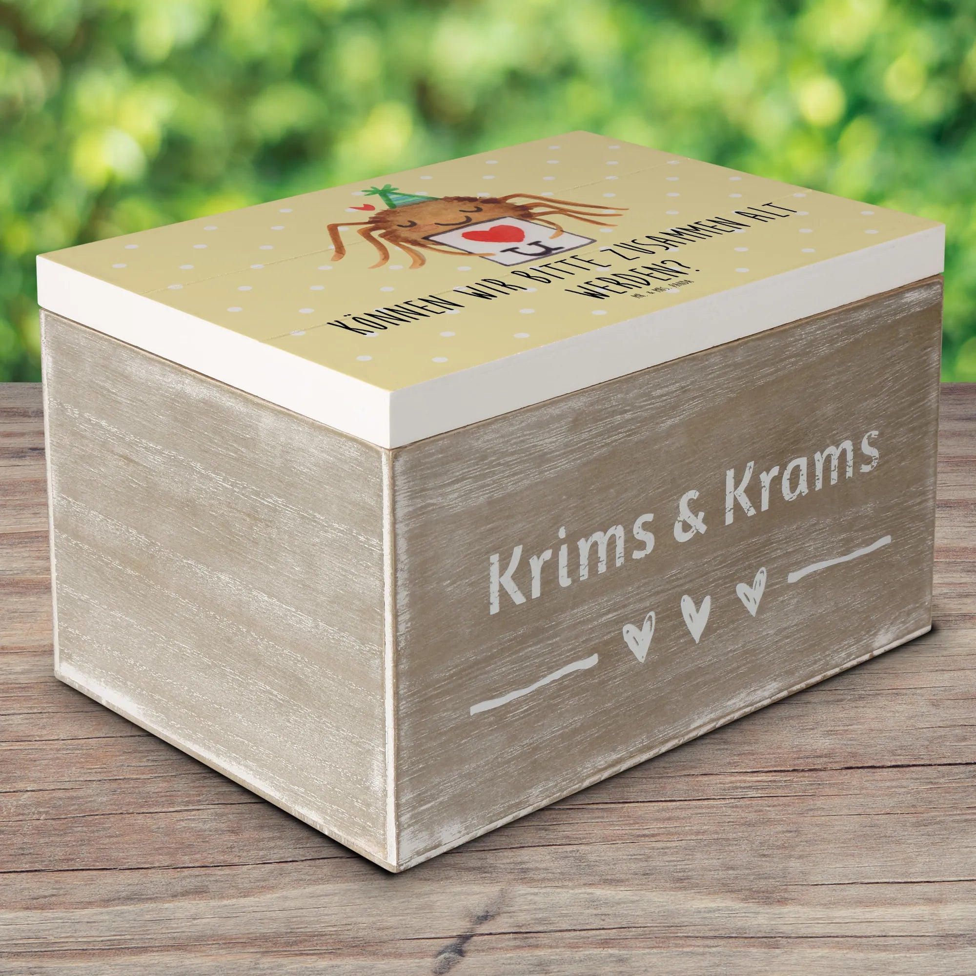 Skrzynia drewniana Pająk Agata list - 22 x 15 cm - z napisem - Pastelowy żółty