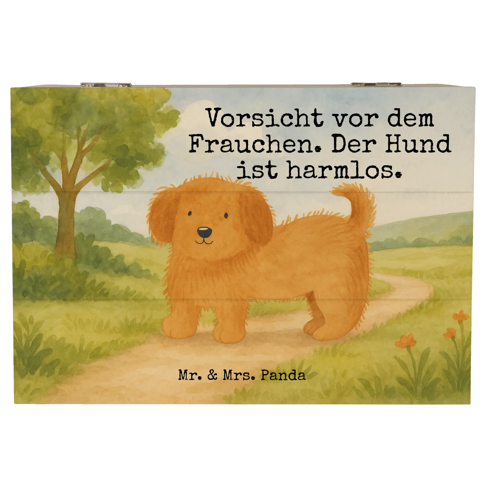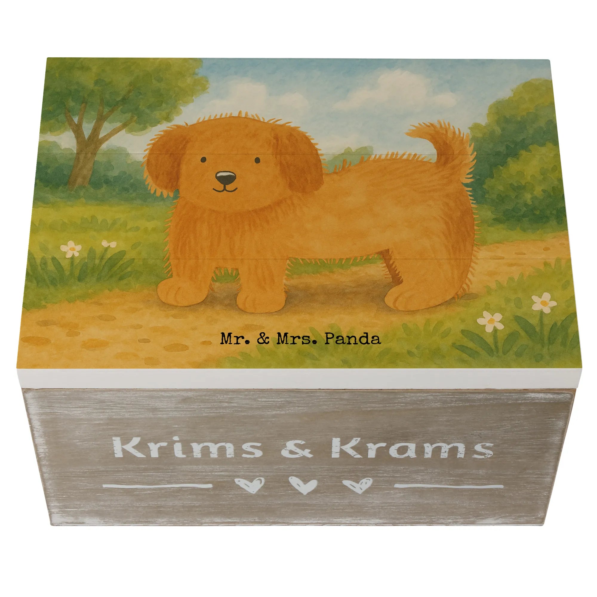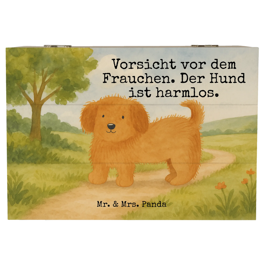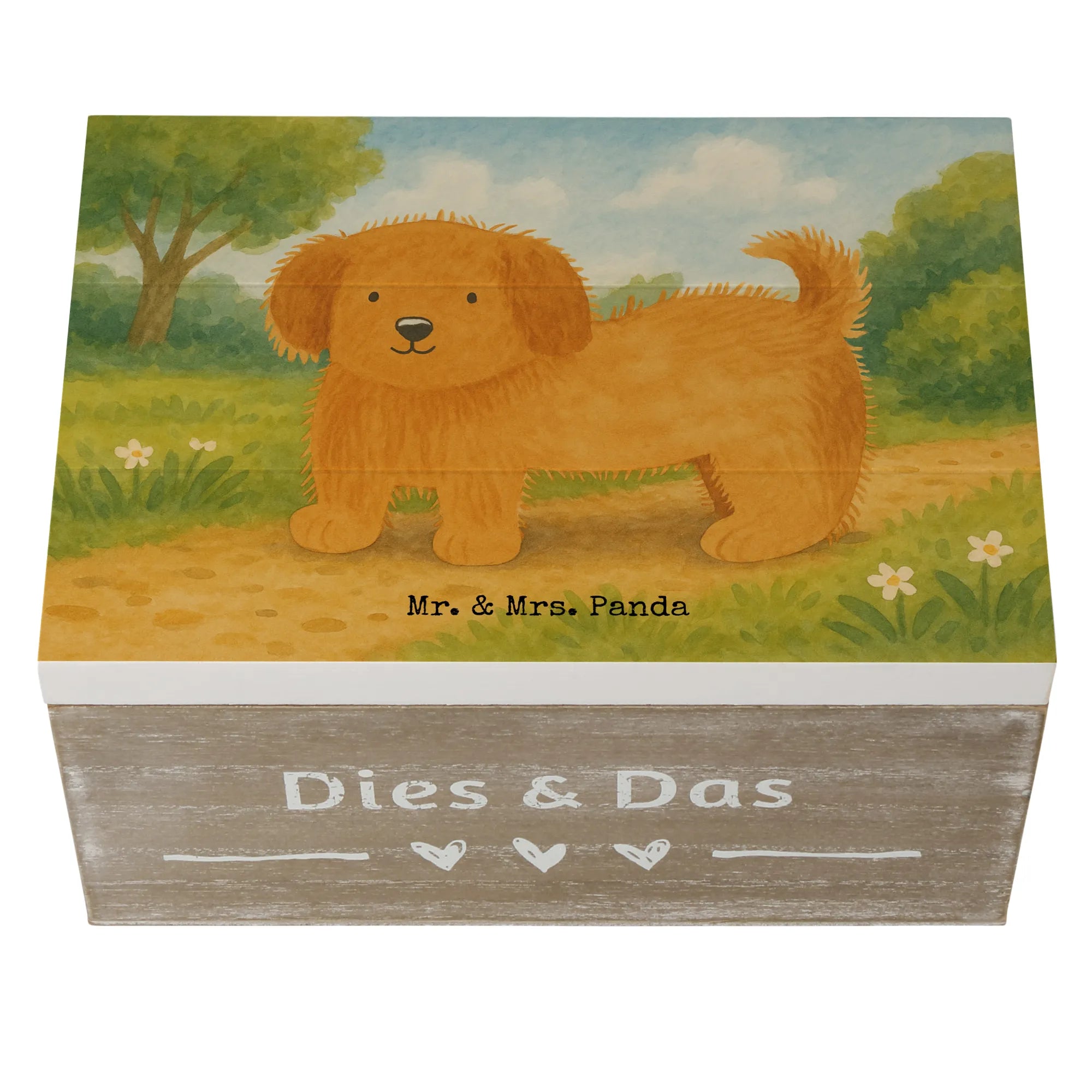 Skrzynia drewniana pies puszysty Design - 22 x 15 cm - z napisem