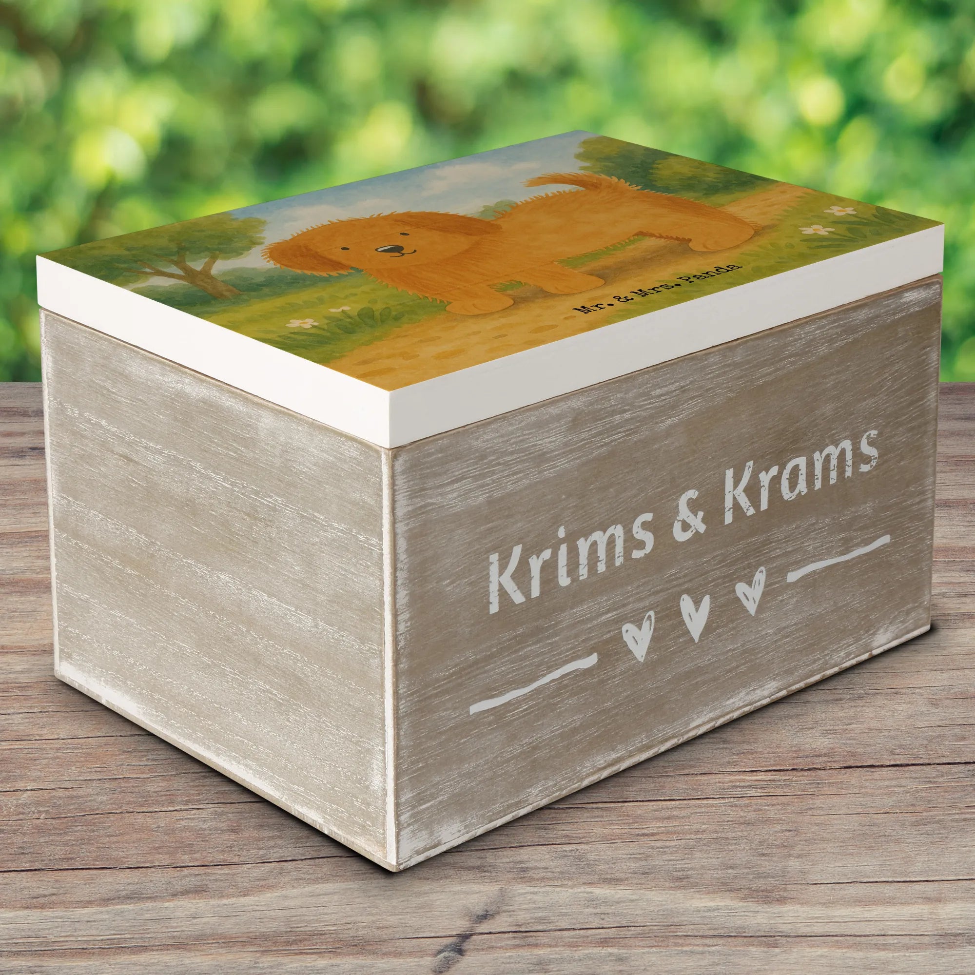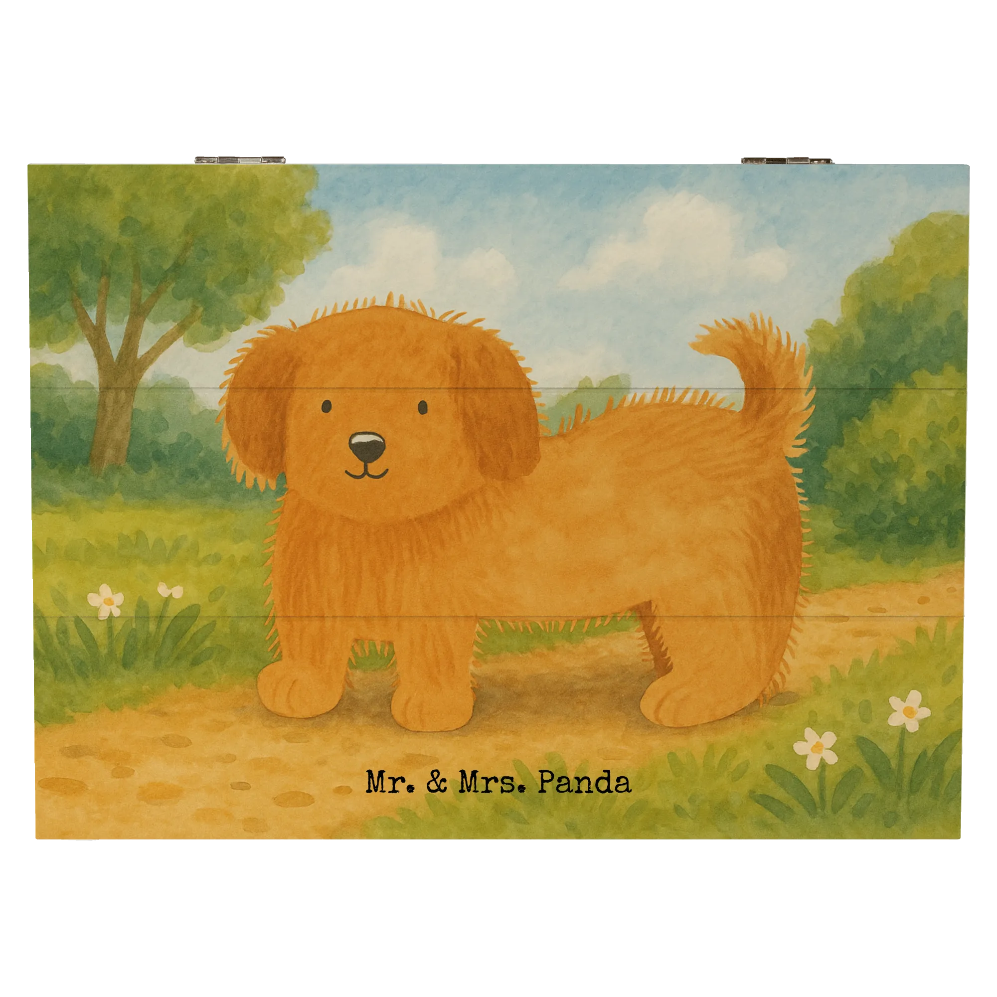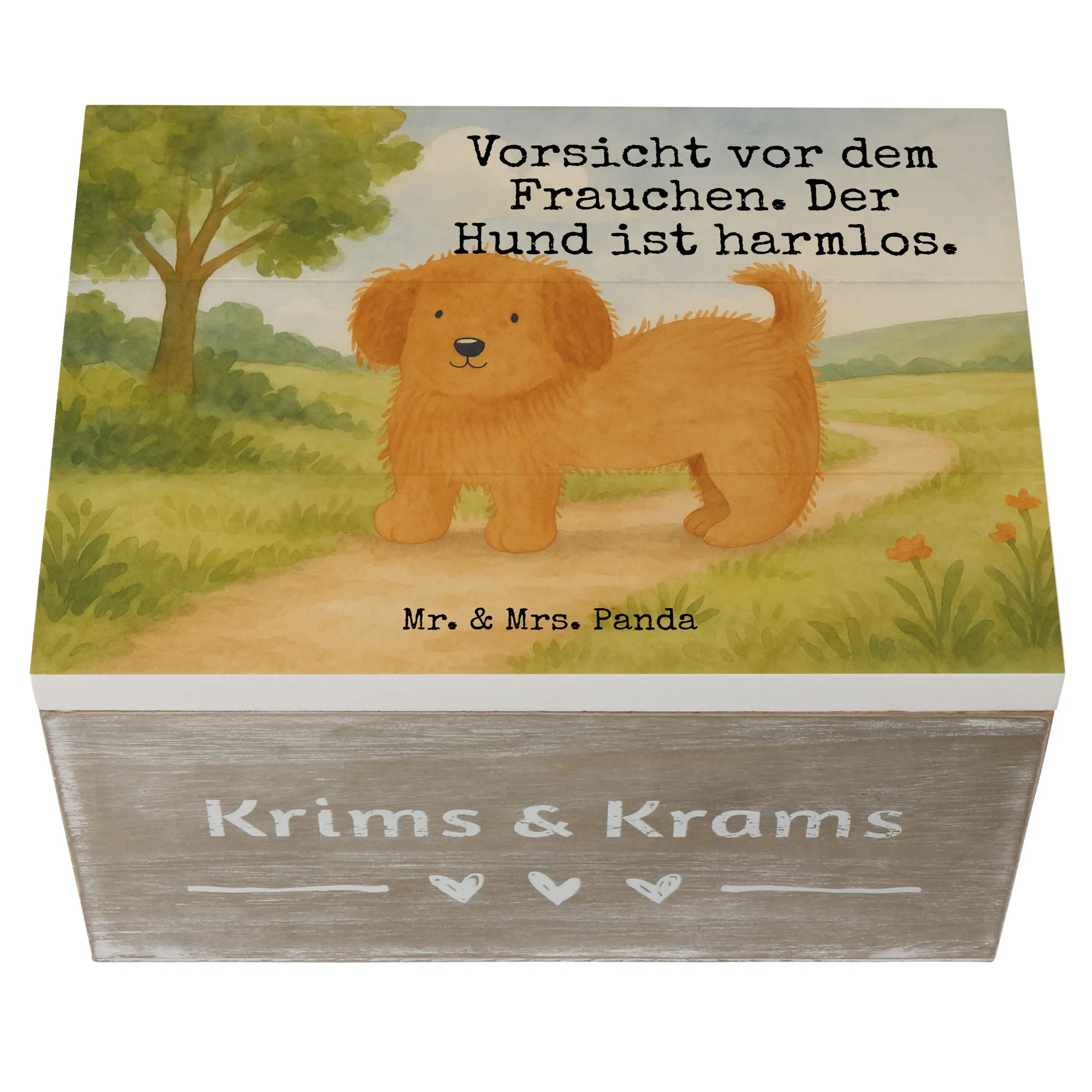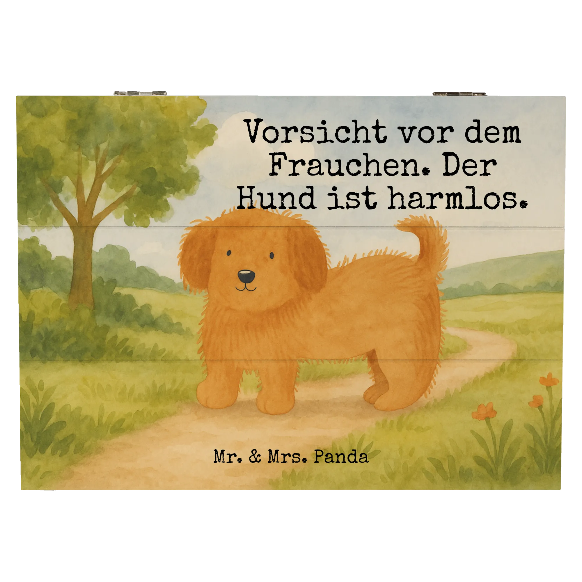 Skrzynia drewniana pies puszysty Design - 22 x 15 cm - z napisem