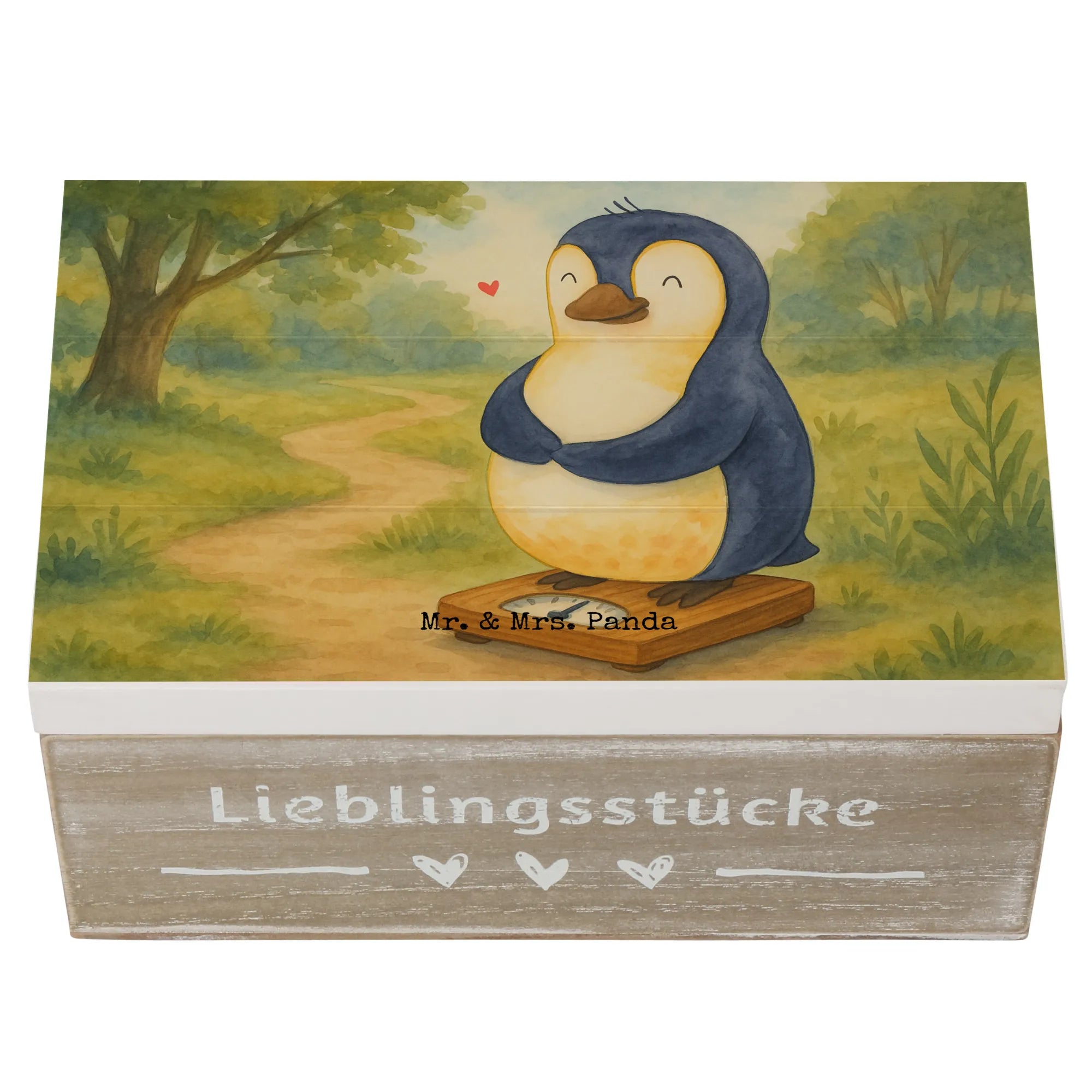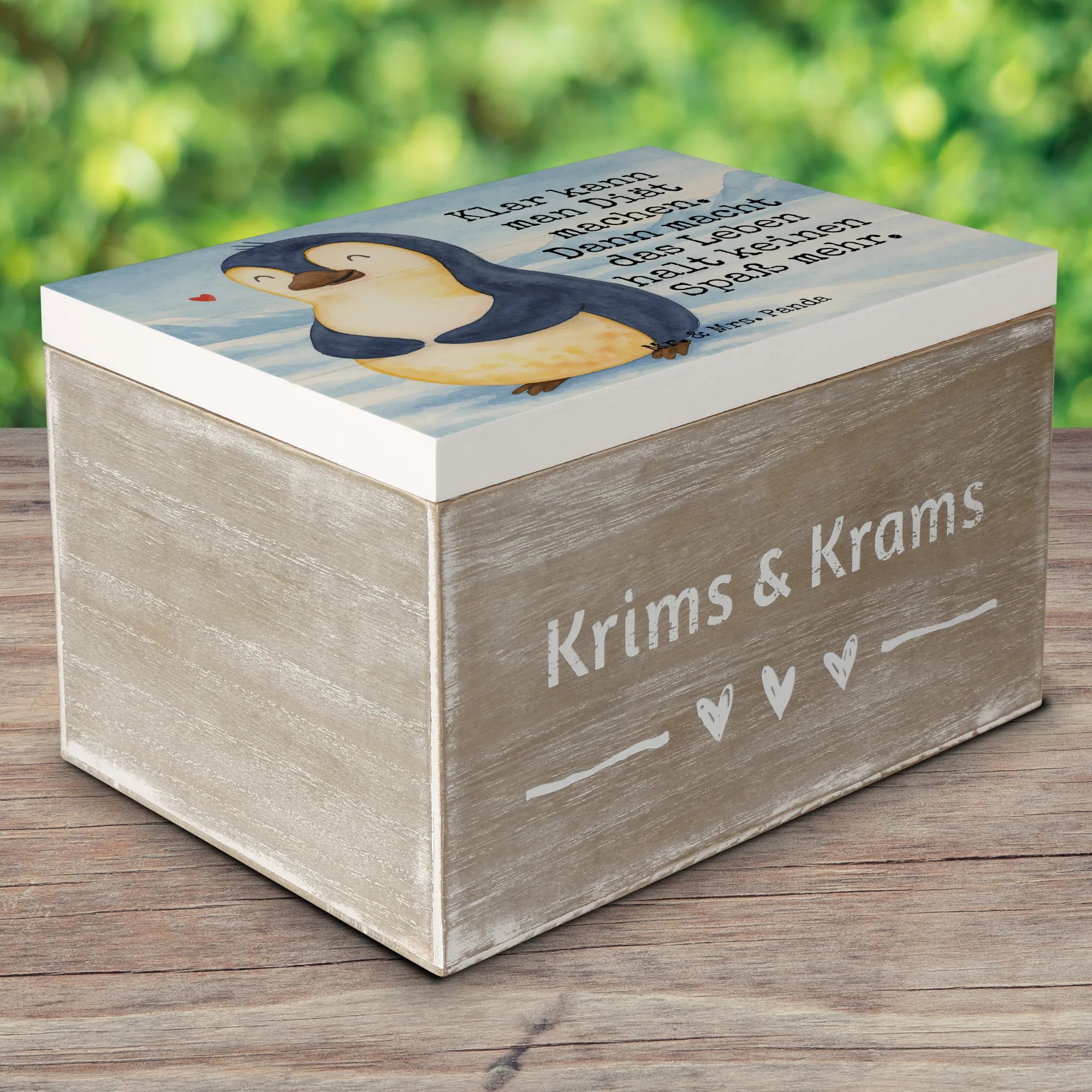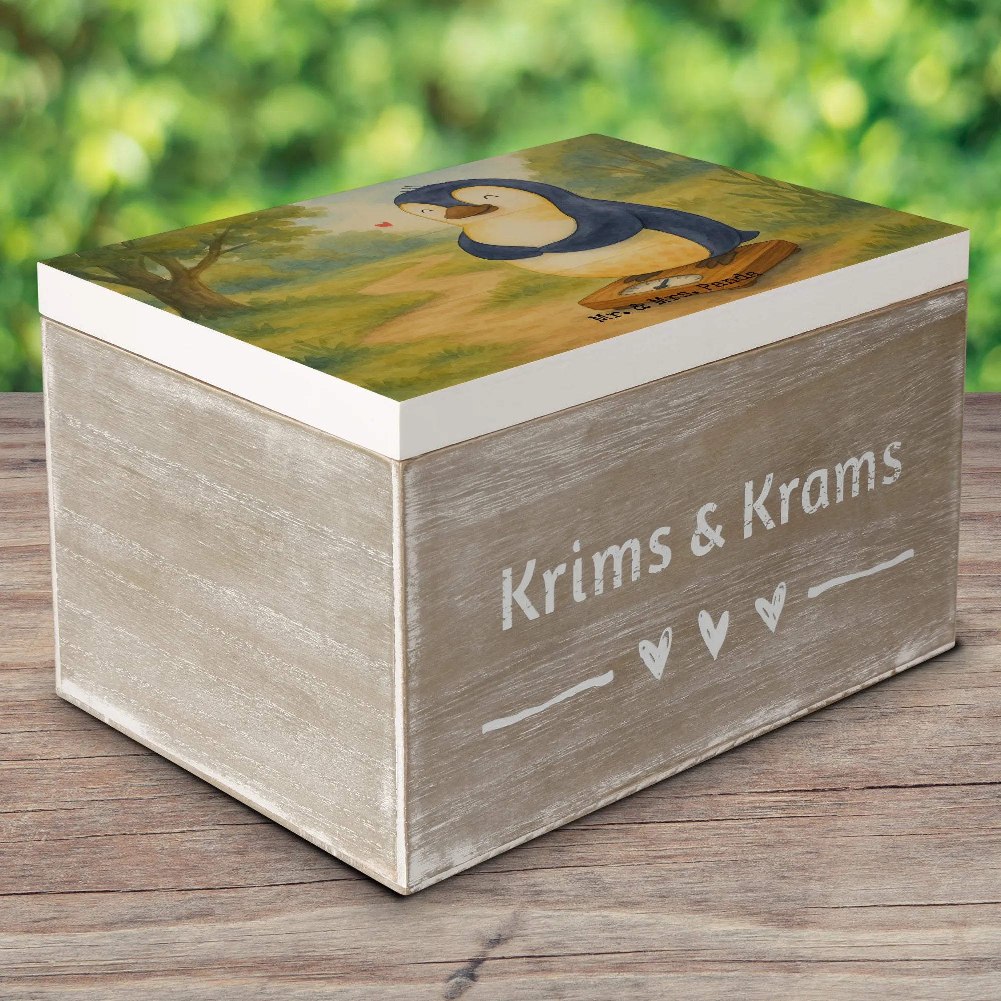 Skrzynia drewniana Pingwin dieta Design - 22 x 15 cm - z napisem