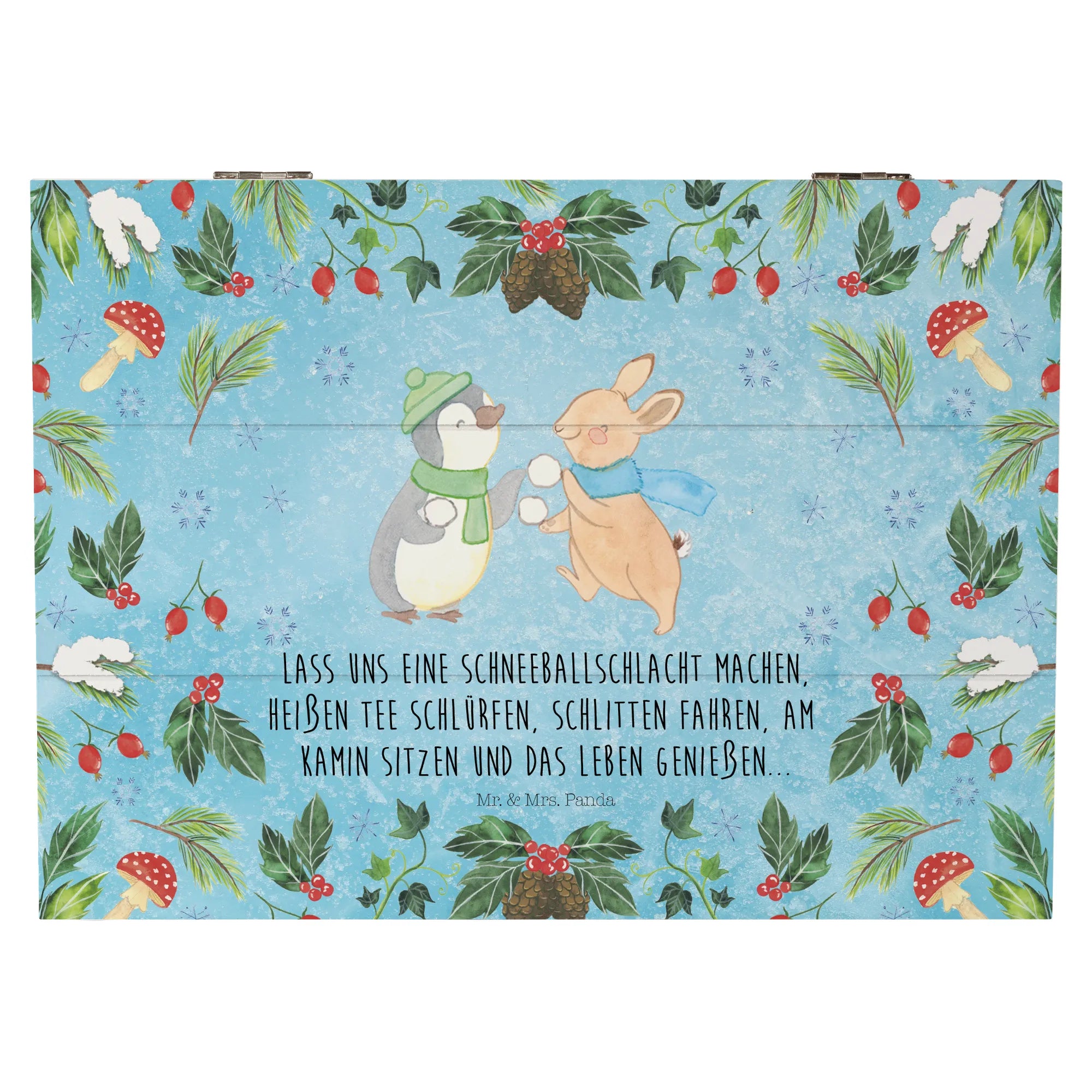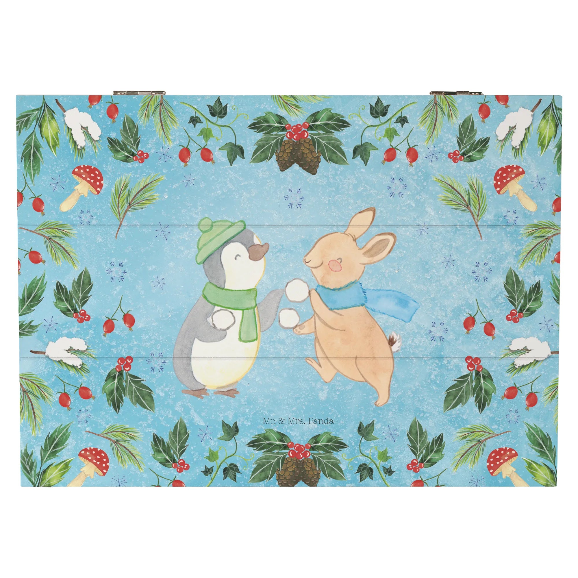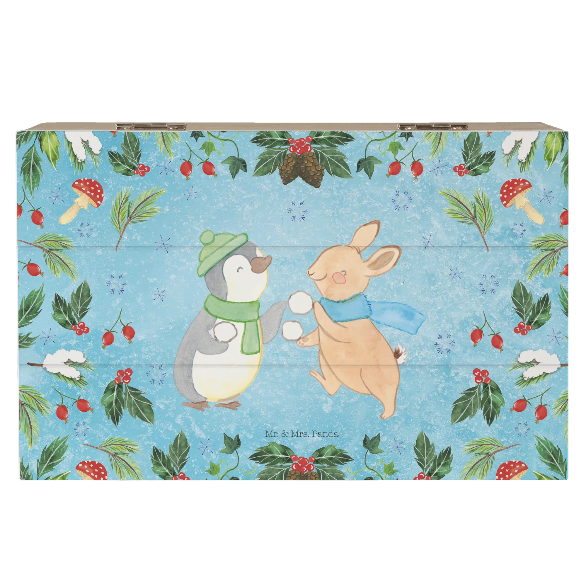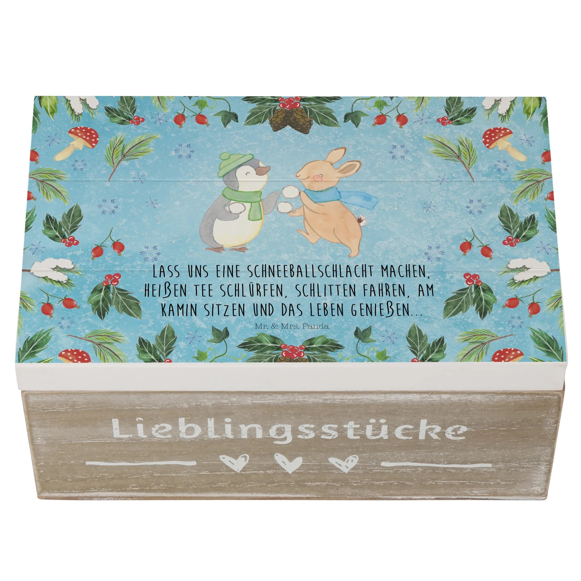 Skrzynia drewniana Pingwin królik Bitwa na śnieżki - 22 x 15 cm - z napisem - biały