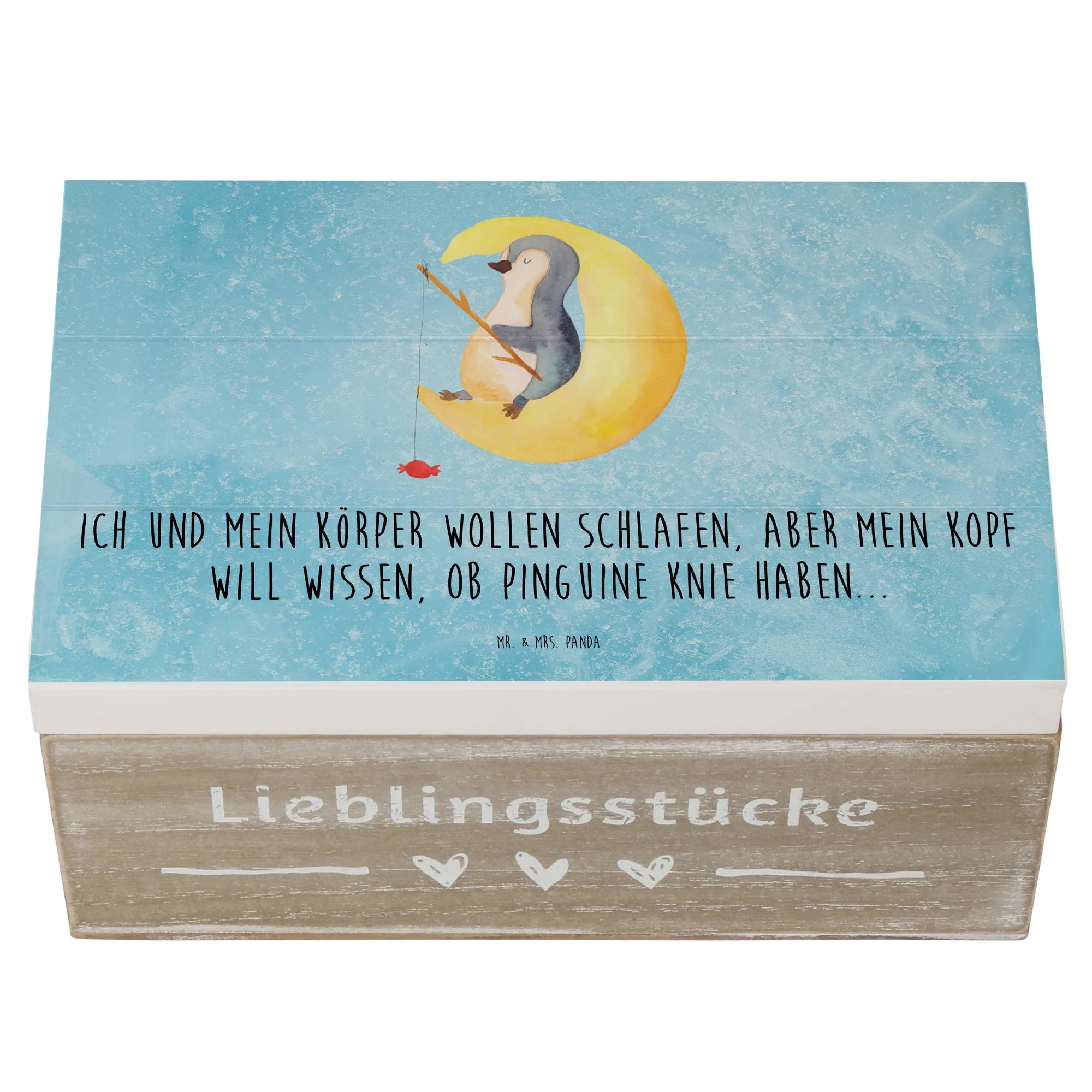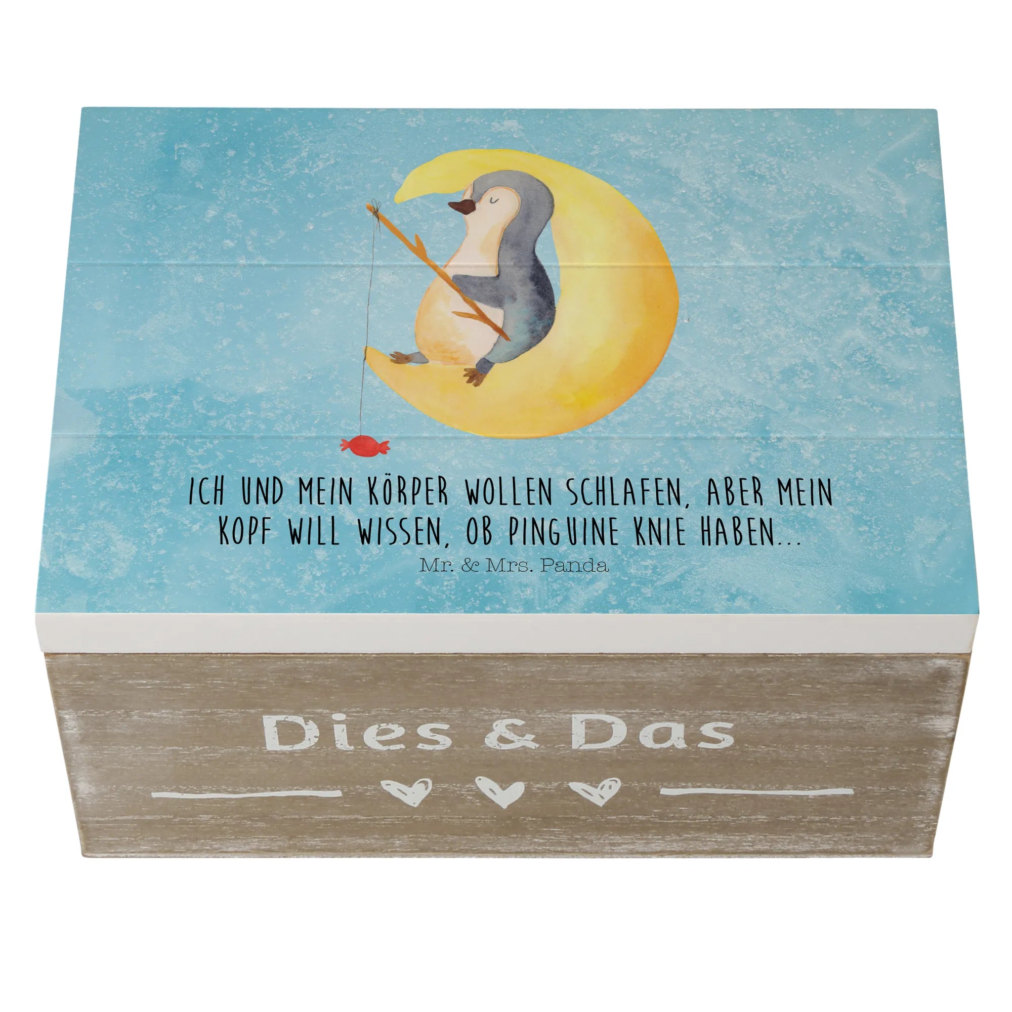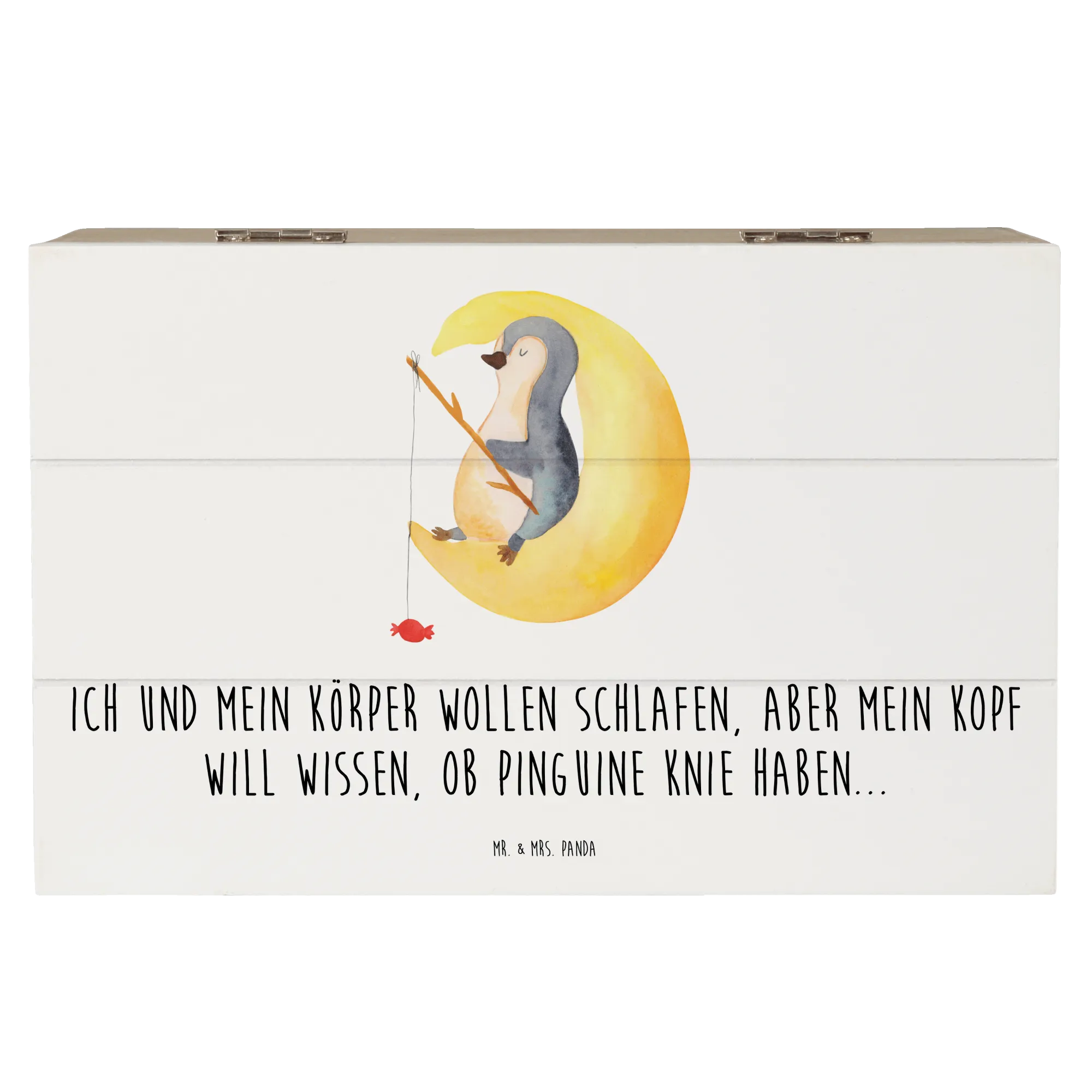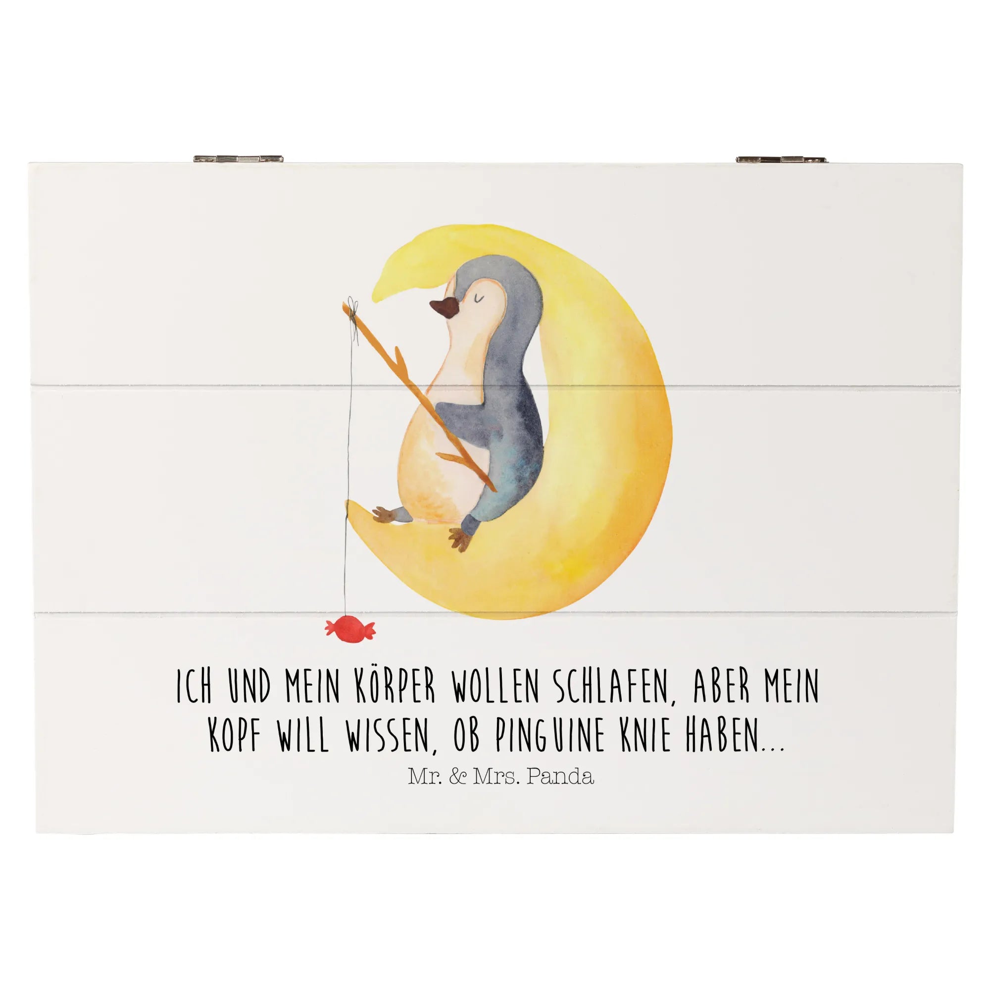 Skrzynia drewniana pingwin księżyc - 22 x 15 cm - z napisem - biały