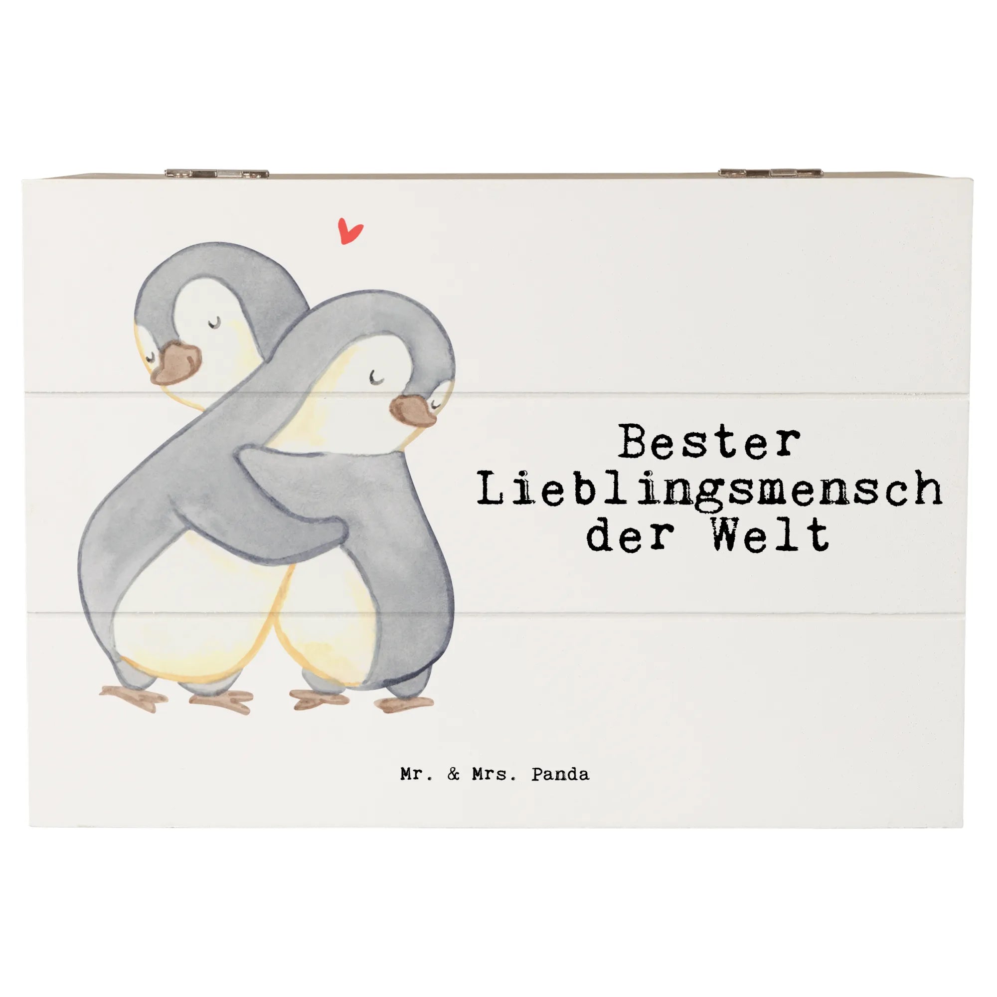 Skrzynia drewniana Pingwin Najlepszy ulubiony człowiek na świecie - 22 x 15 cm - biały