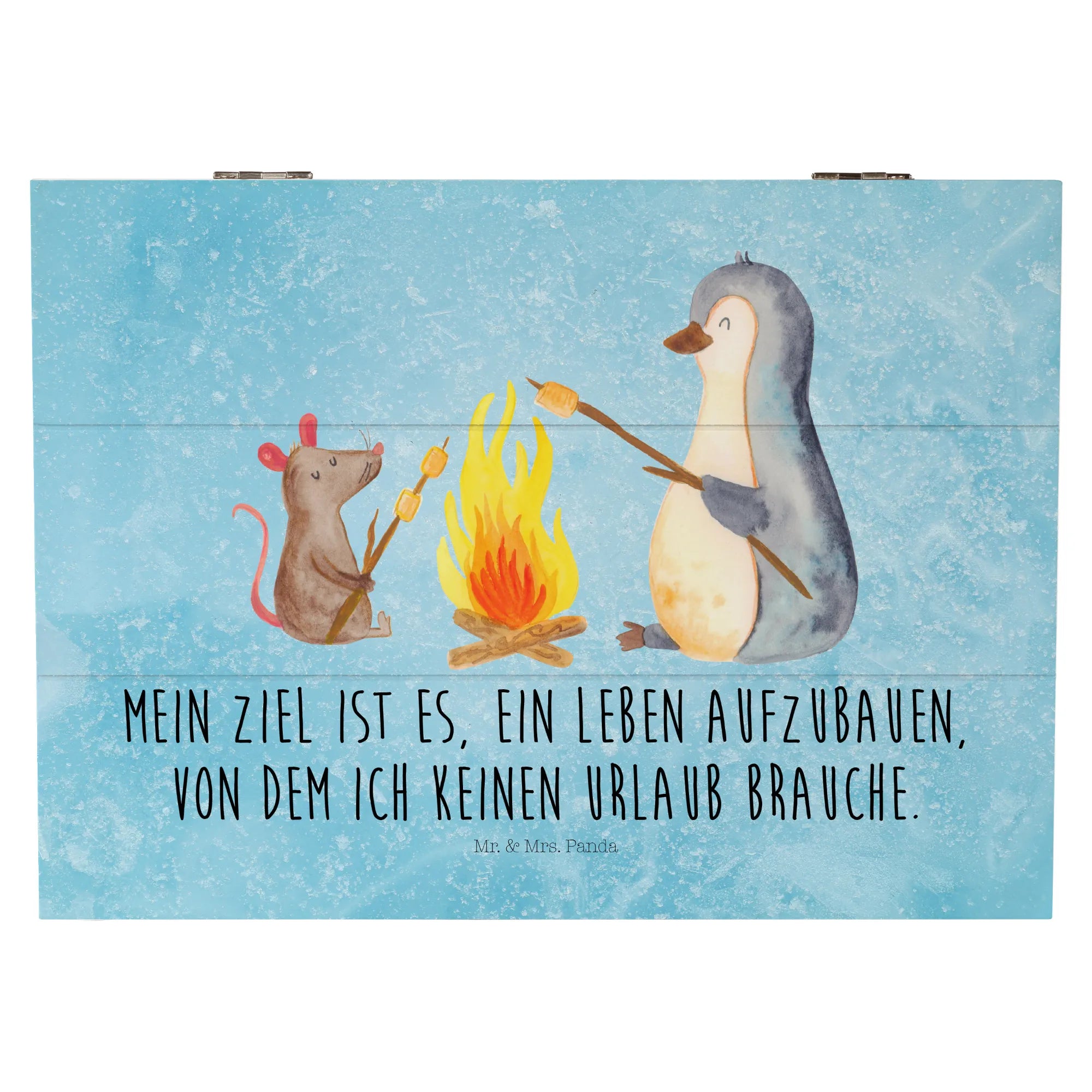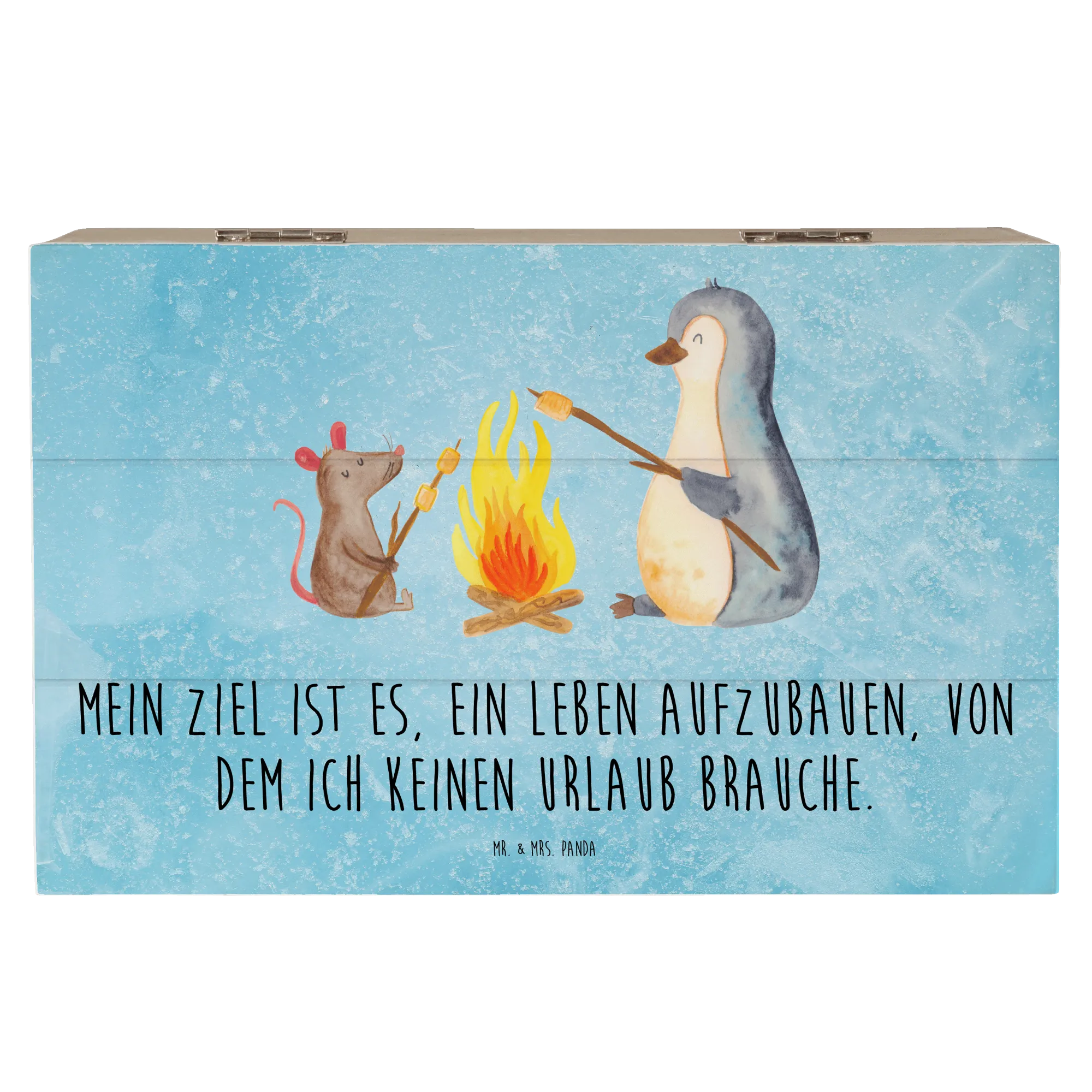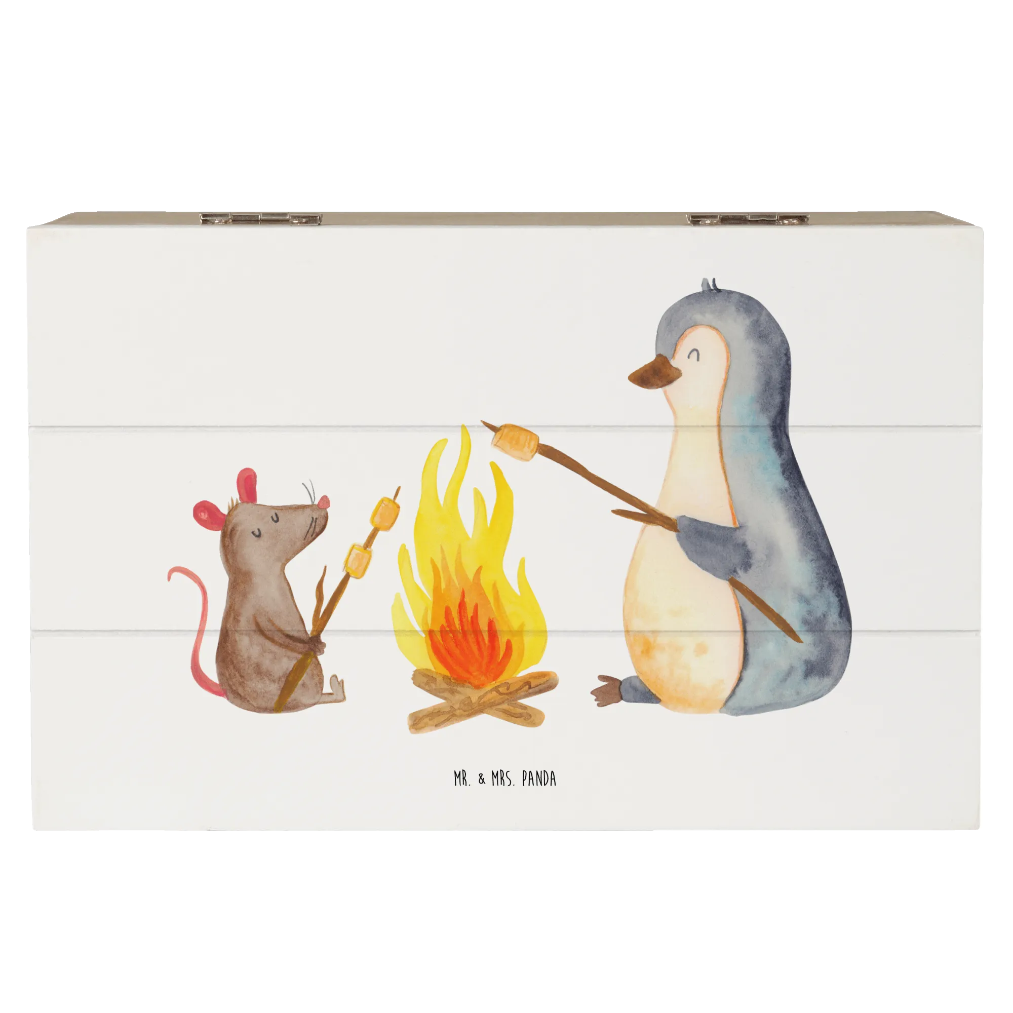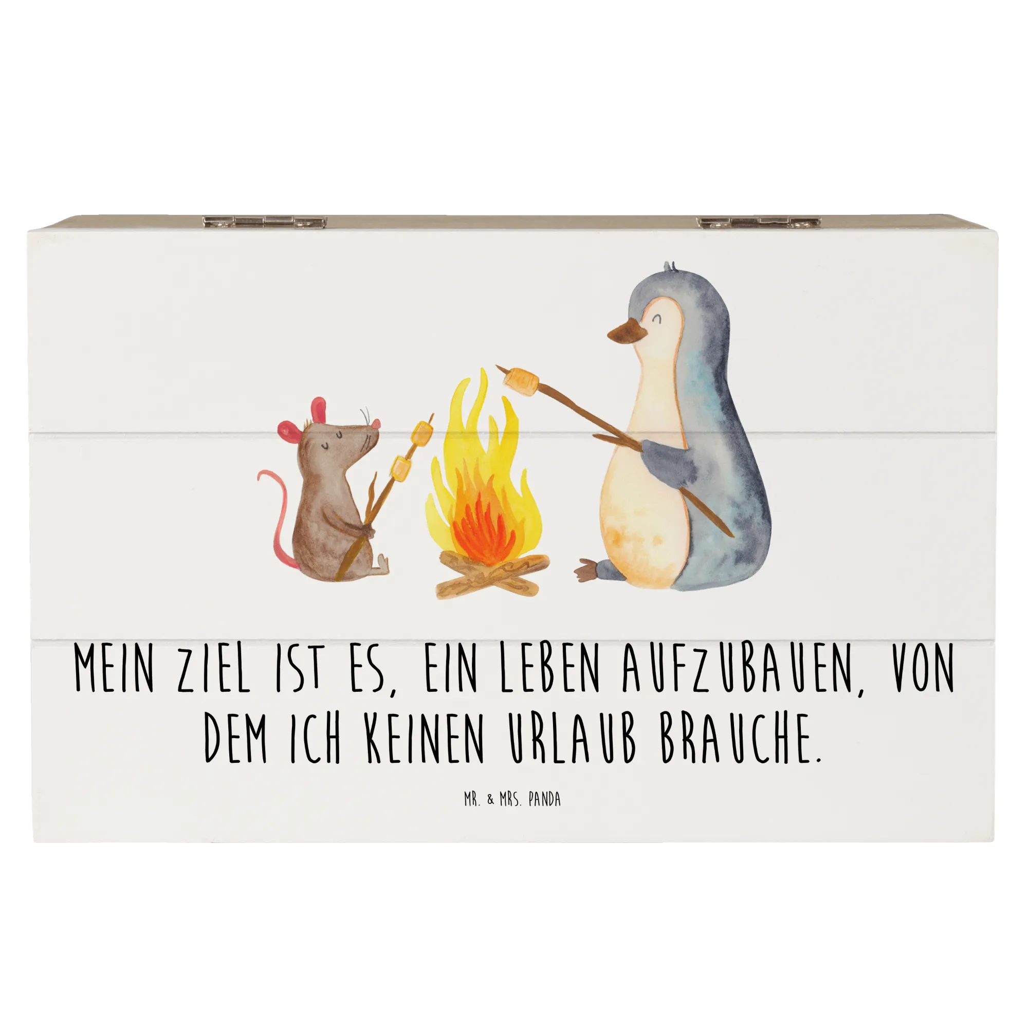 Skrzynia drewniana pingwin ognisko - 22 x 15 cm - z napisem - biały