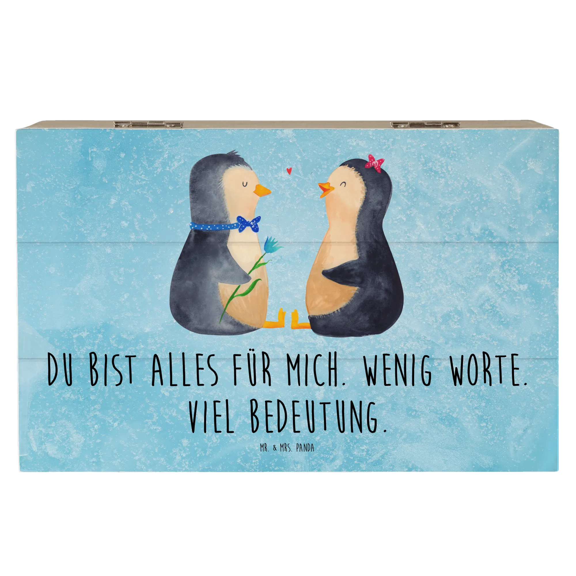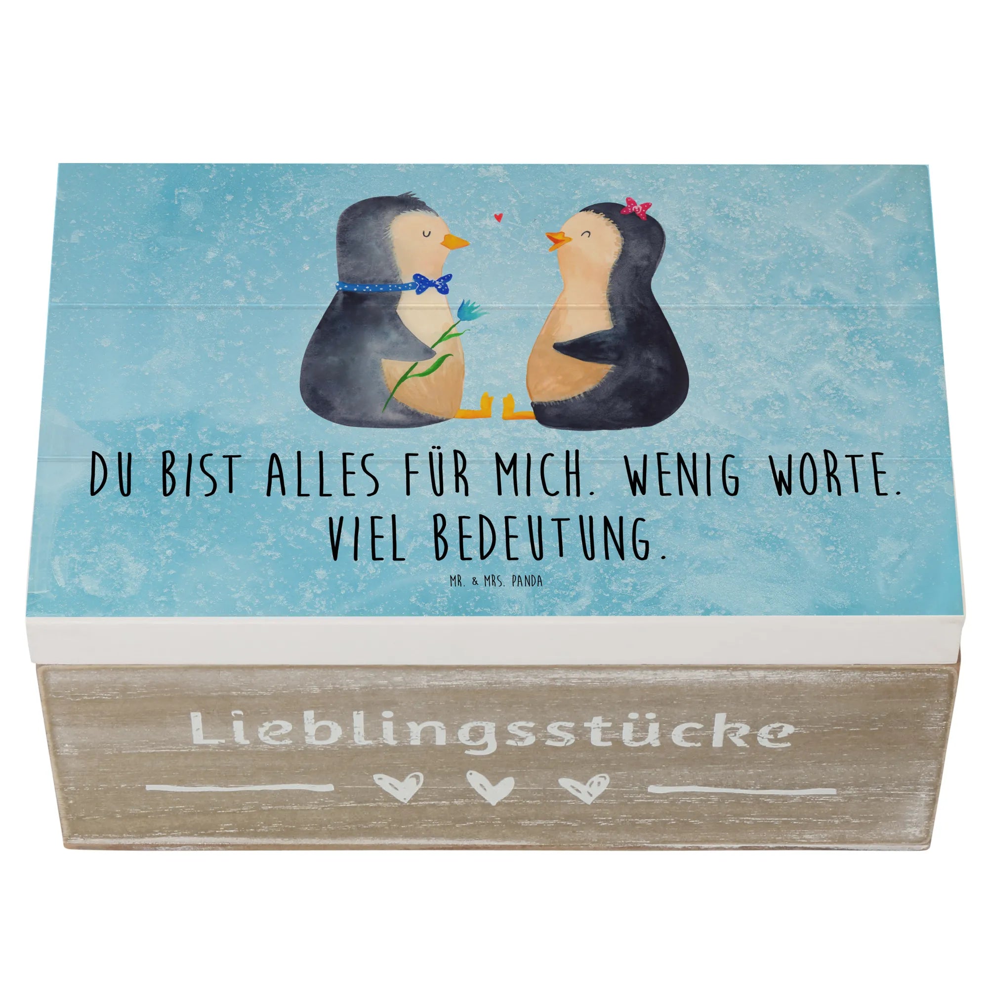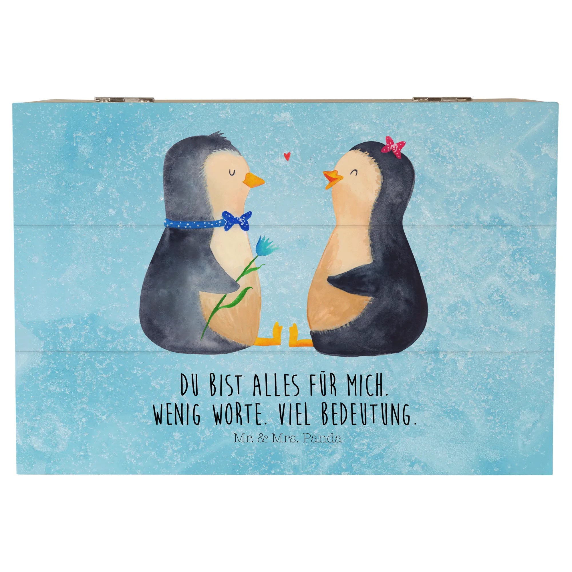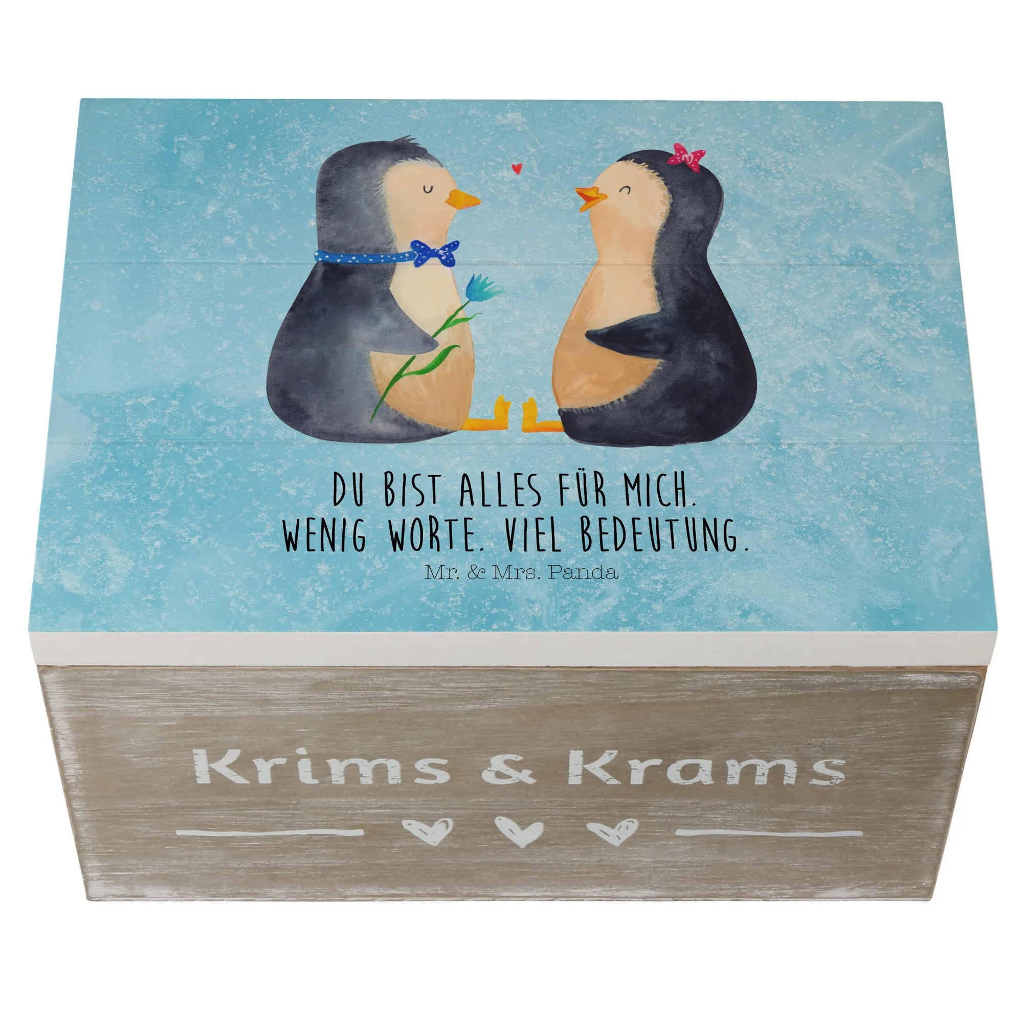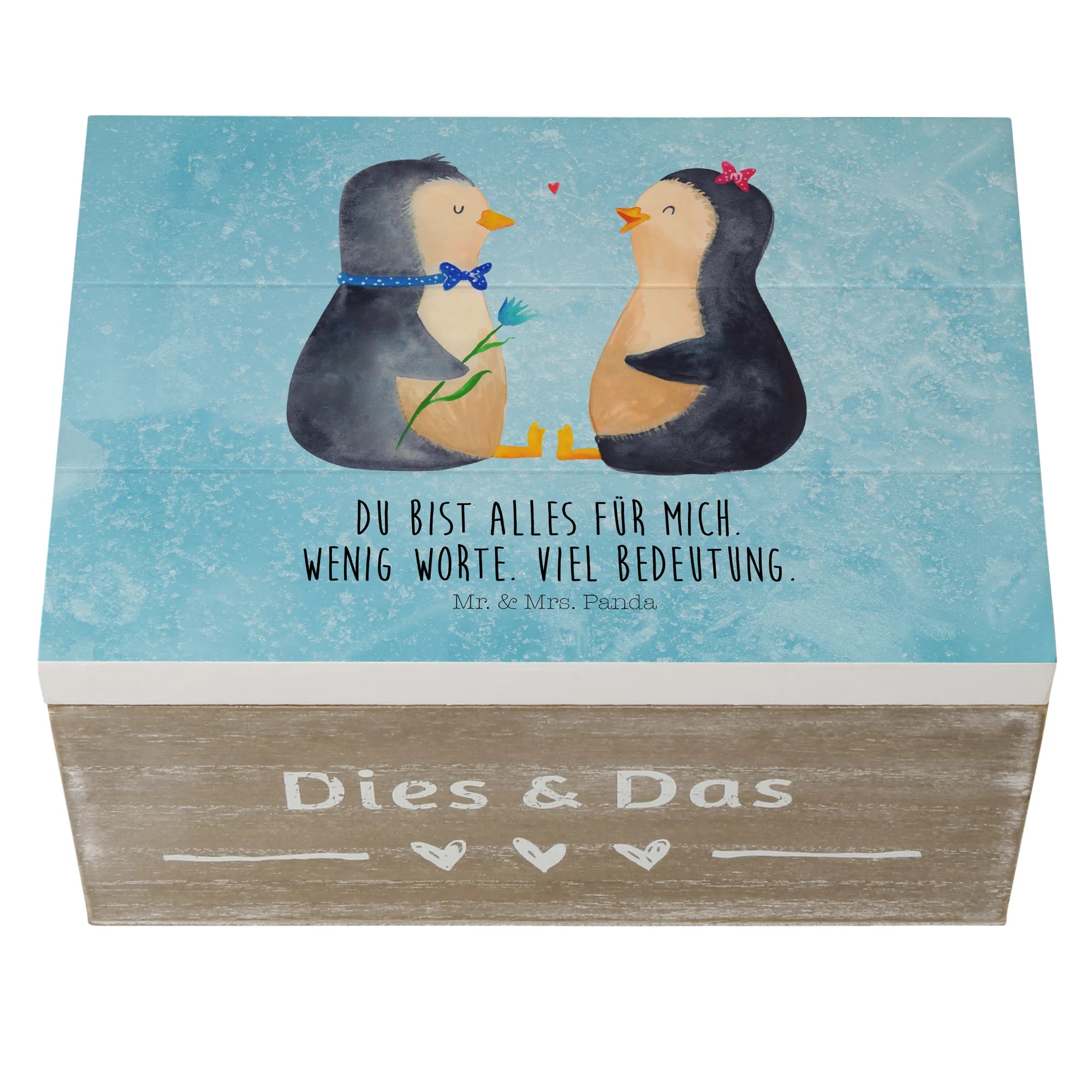 Skrzynia drewniana Pingwin para - 22 x 15 cm - z napisem - biały