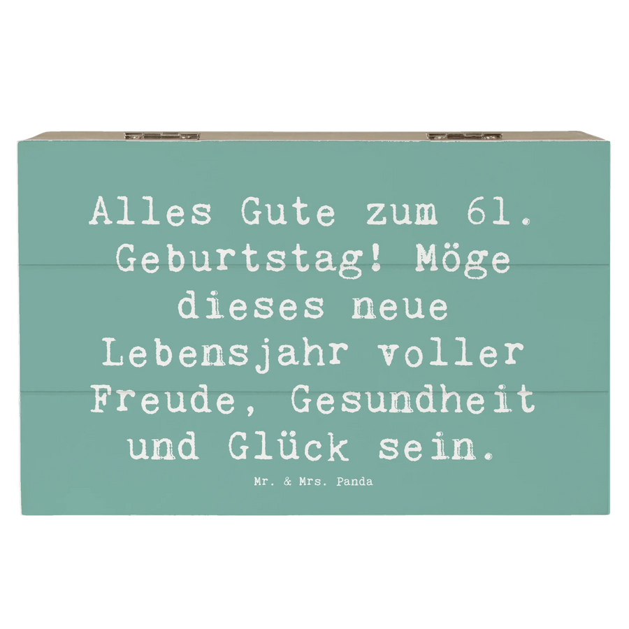 Skrzynia drewniana Przysłowie Alles Gute zum 61. Geburtstag! Möge dieses neue Lebensjahr voller Freude, Gesundheit und Glück sein. - 19 x 12 cm - Meeresbrise