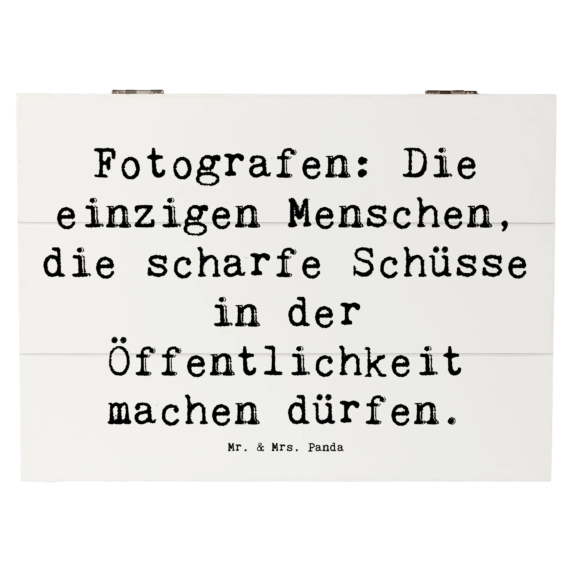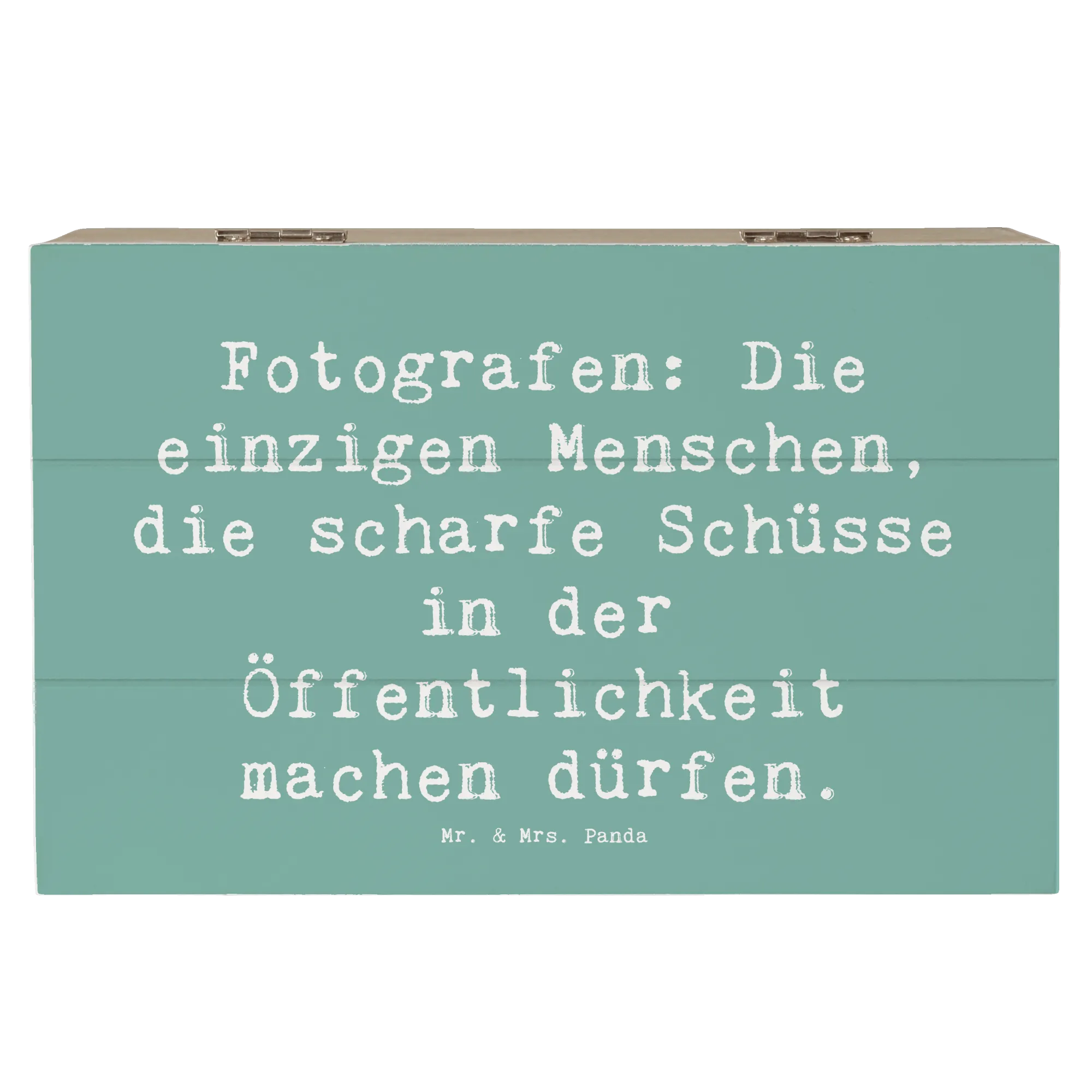 Skrzynia drewniana Przysłowie Fotografen: Die einzigen Menschen, die scharfe Schüsse in der Öffentlichkeit machen dürfen. - 19 x 12 cm - Meeresbrise