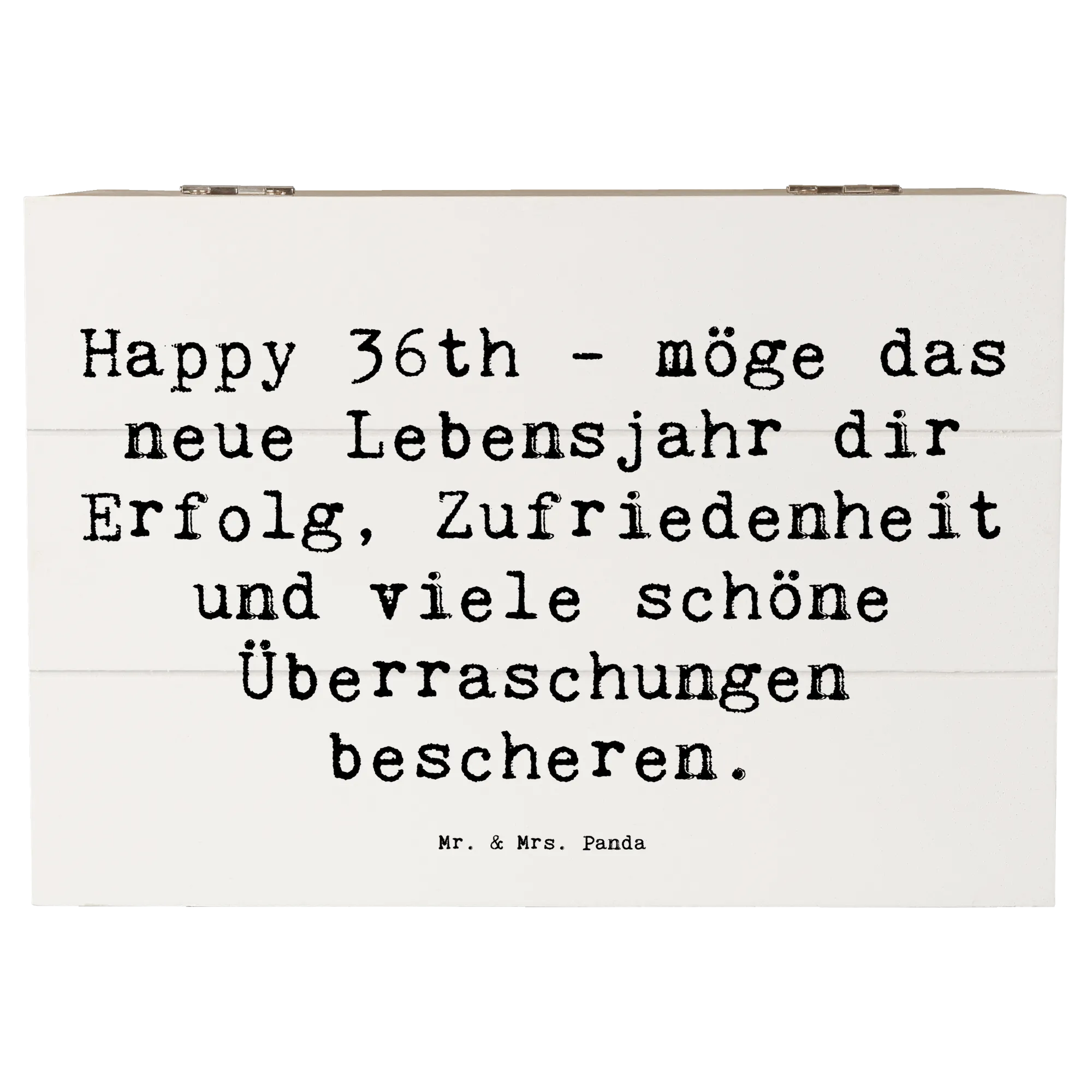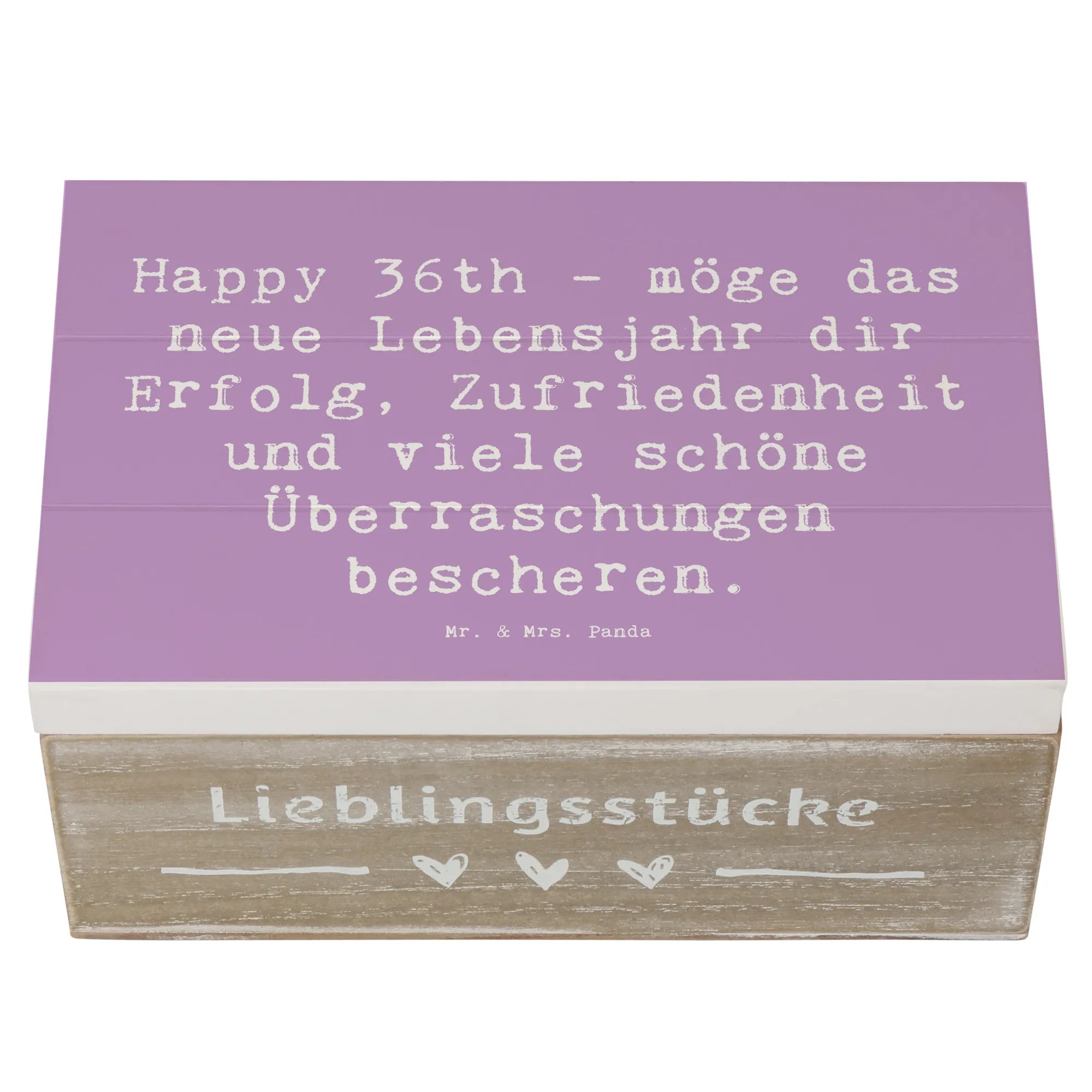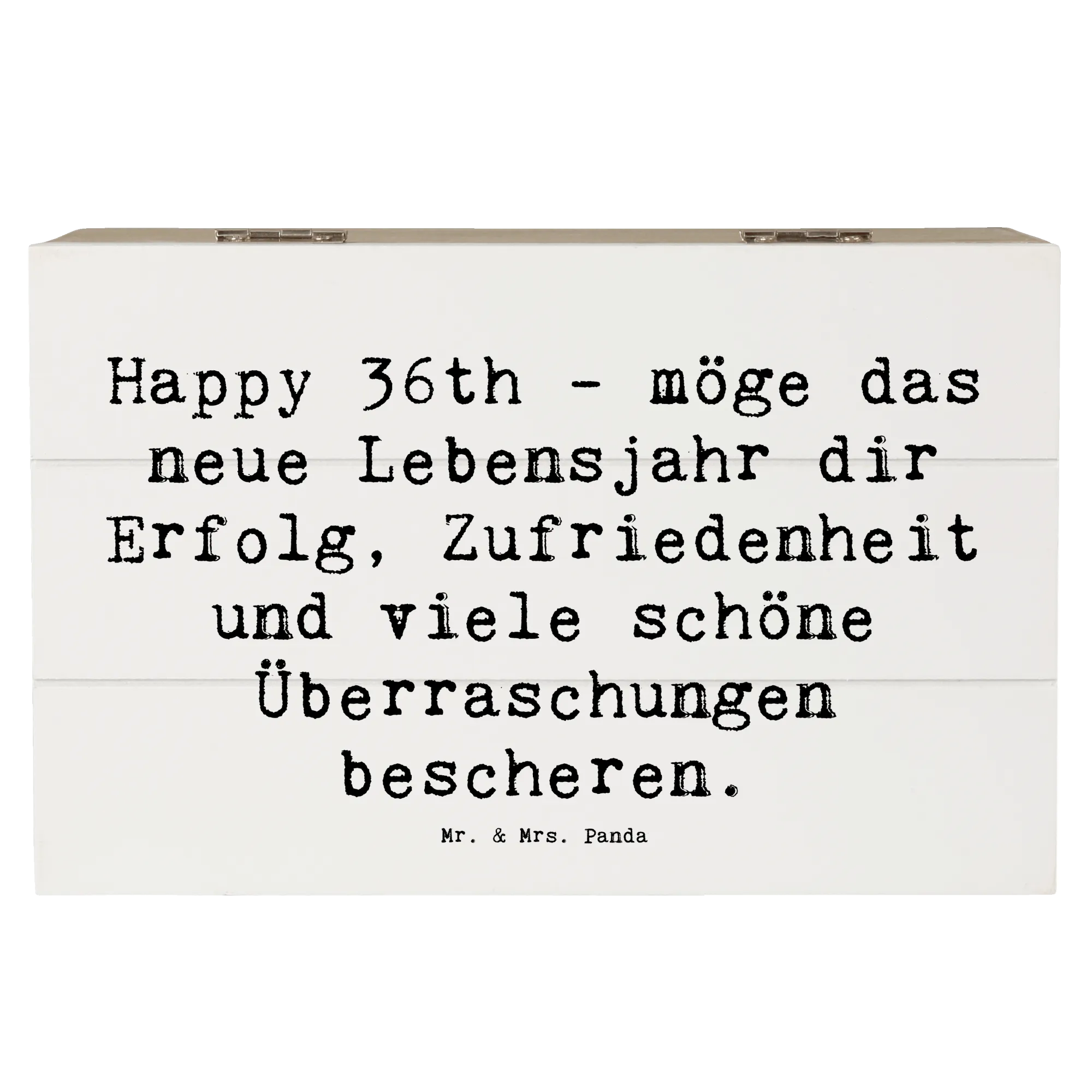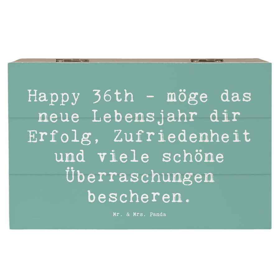 Skrzynia drewniana Przysłowie Happy 36th - möge das neue Lebensjahr dir Erfolg, Zufriedenheit und viele schöne Überraschungen bescheren. - 19 x 12 cm - Meeresbrise
