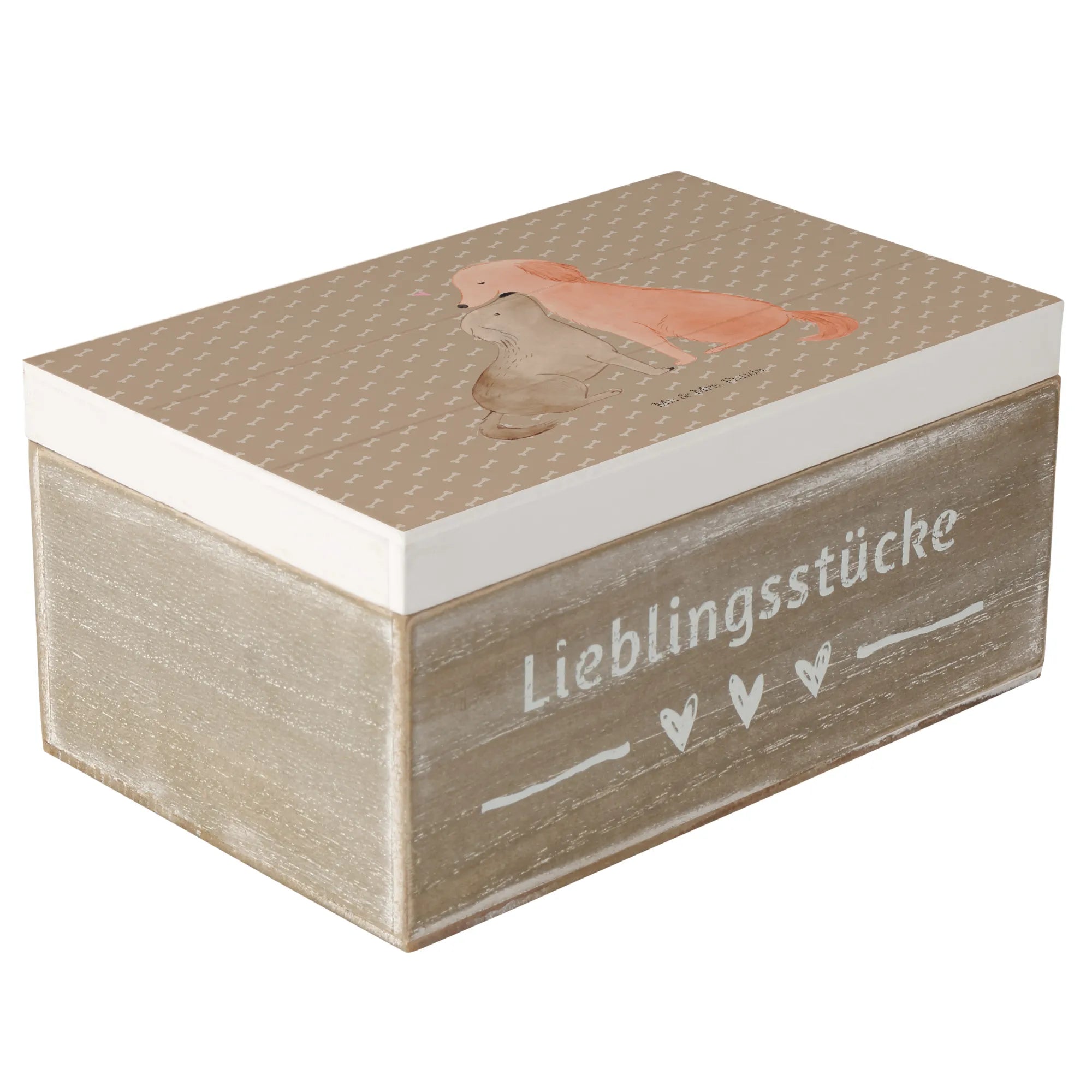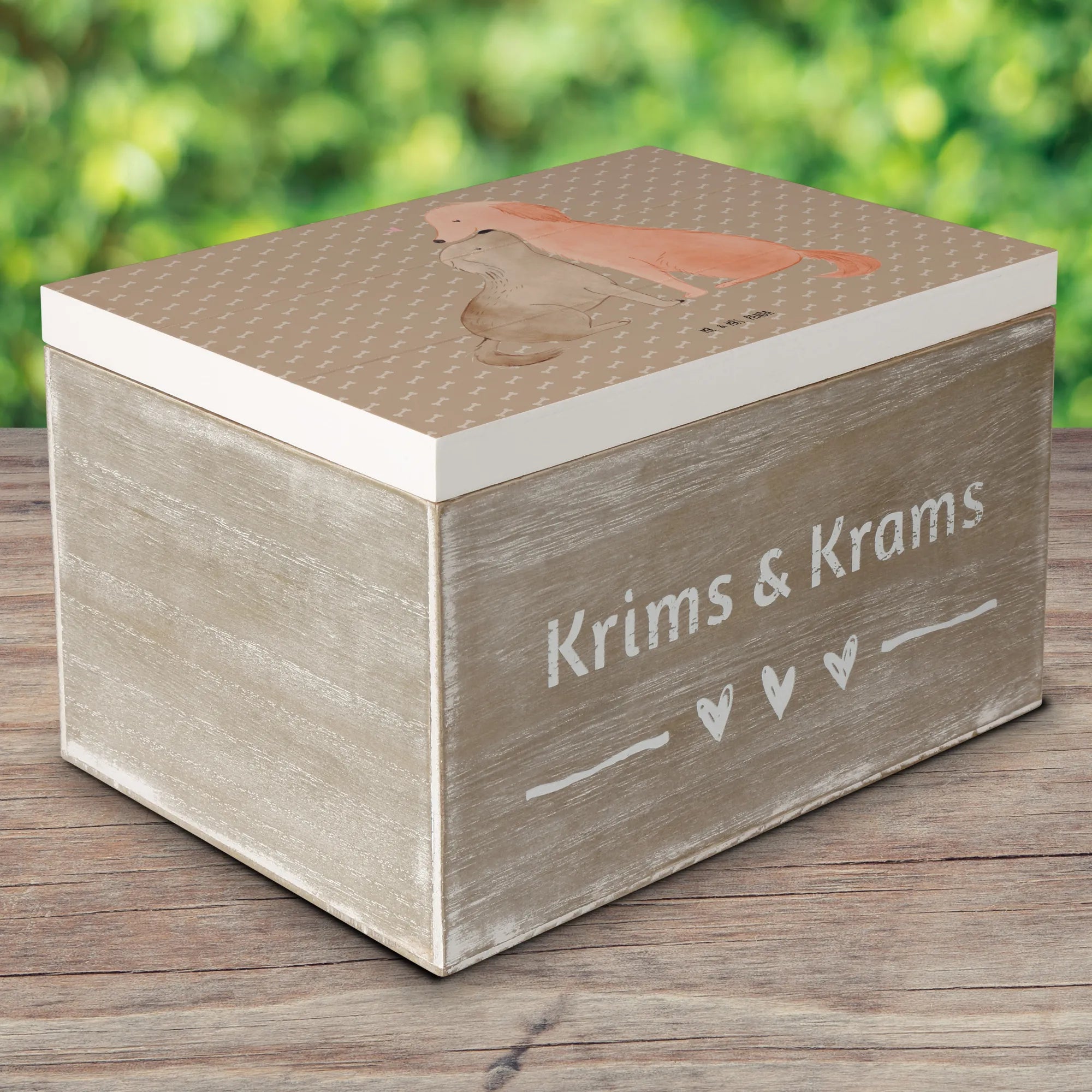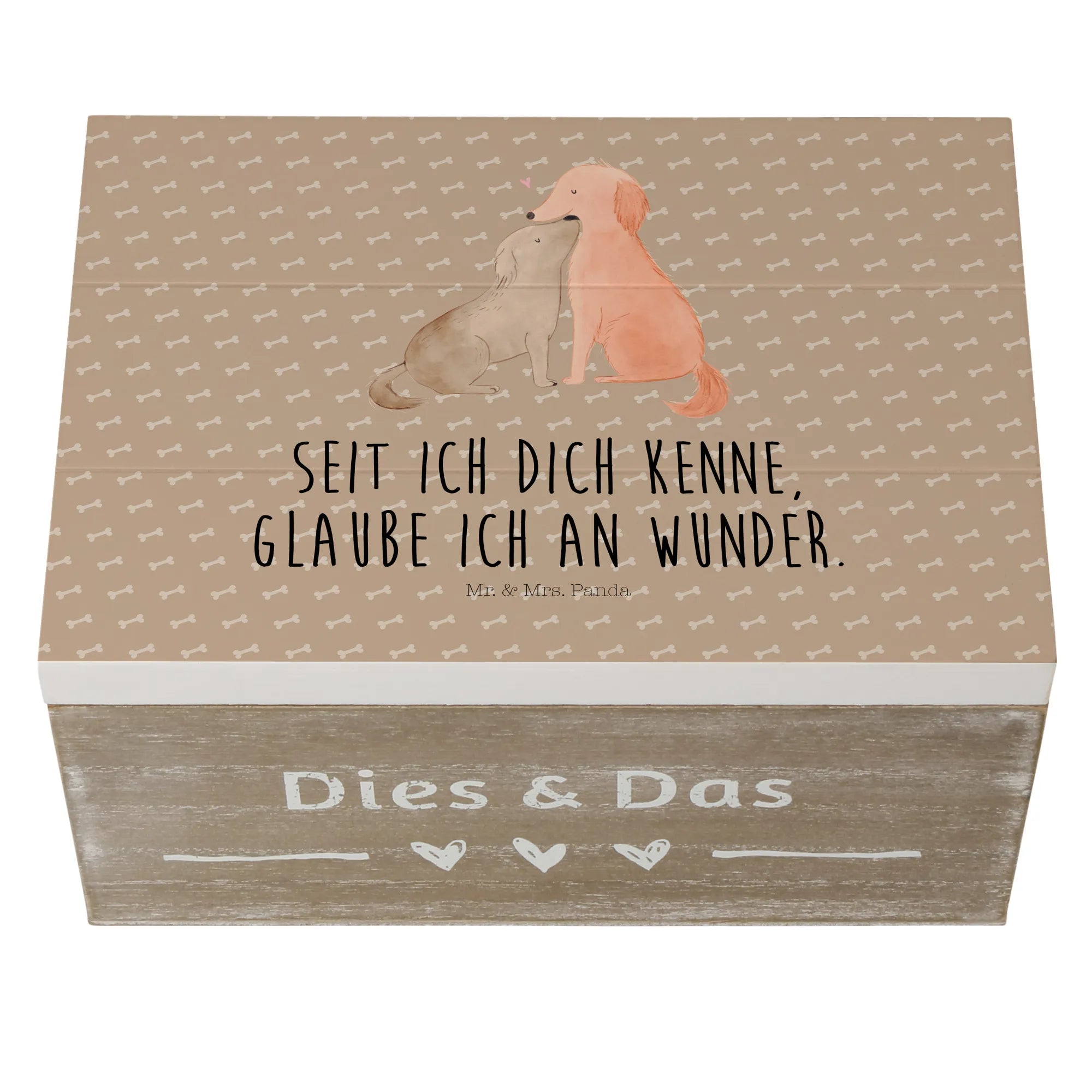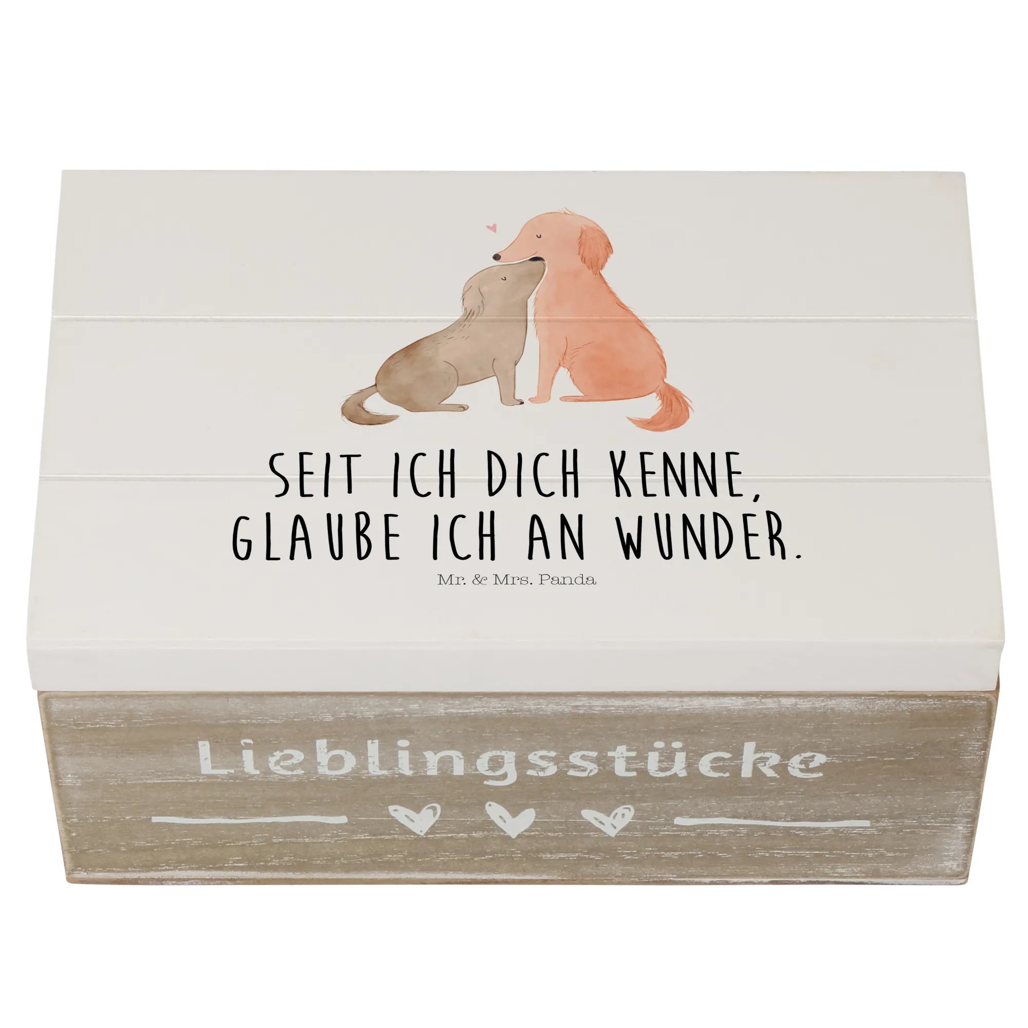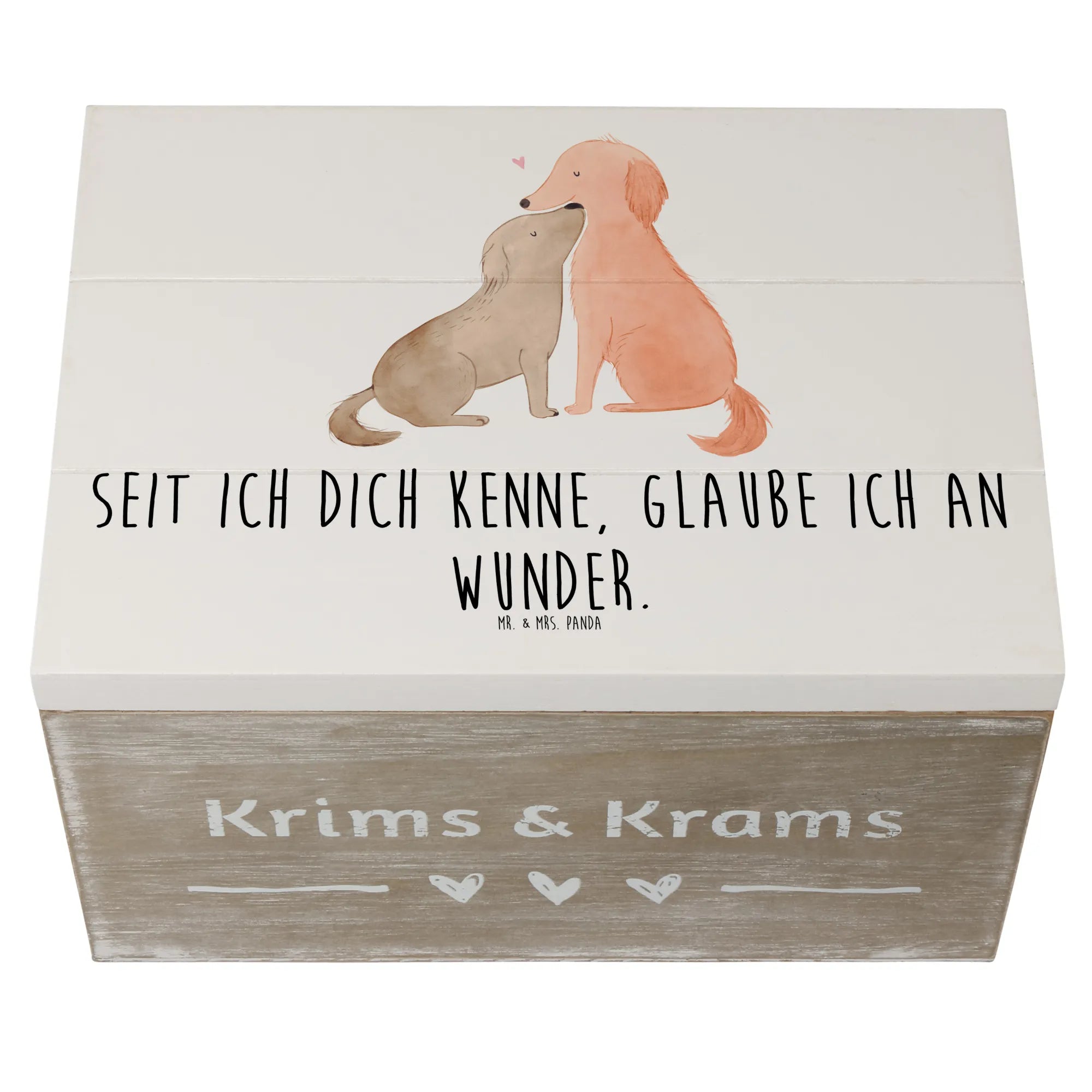 Skrzynia drewniana psy Miłość - 22 x 15 cm - z napisem - biały