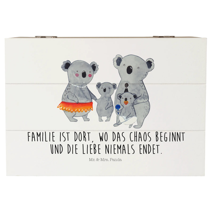 Skrzynia drewniana Rodzina koali - 22 x 15 cm - z napisem - Biały