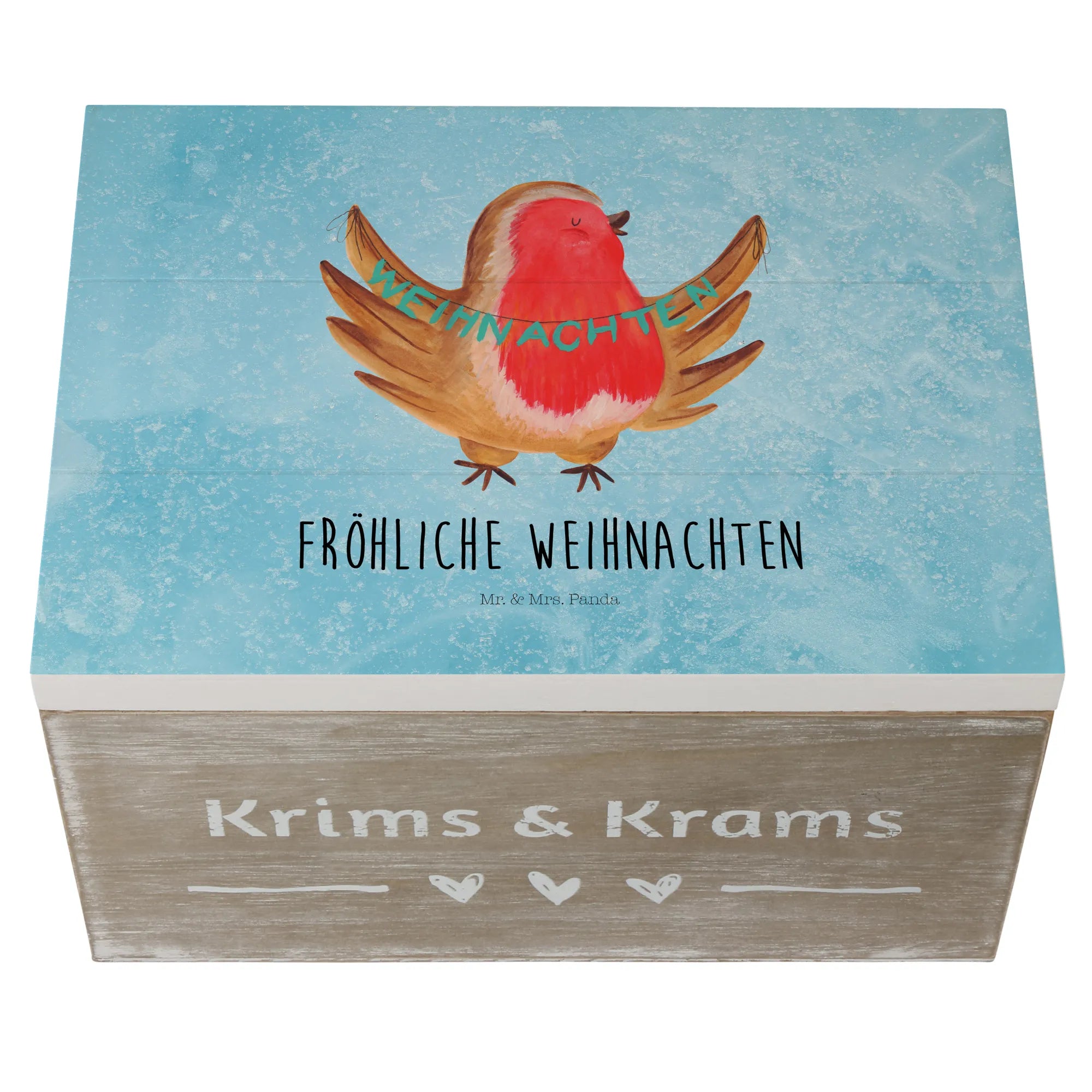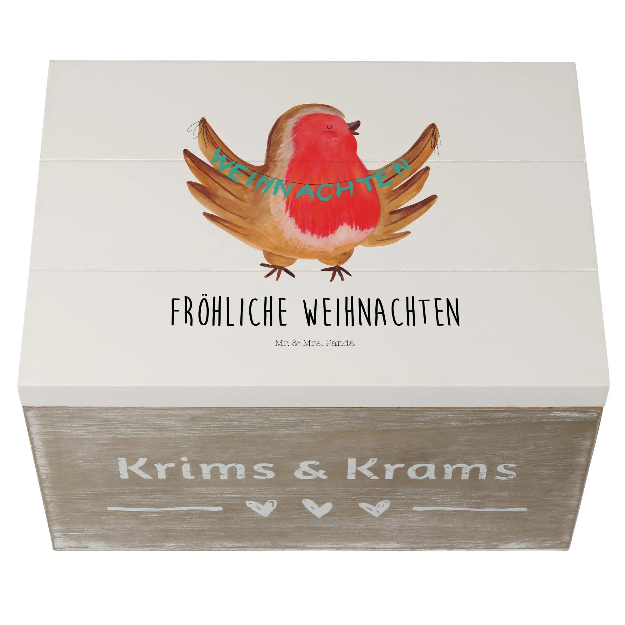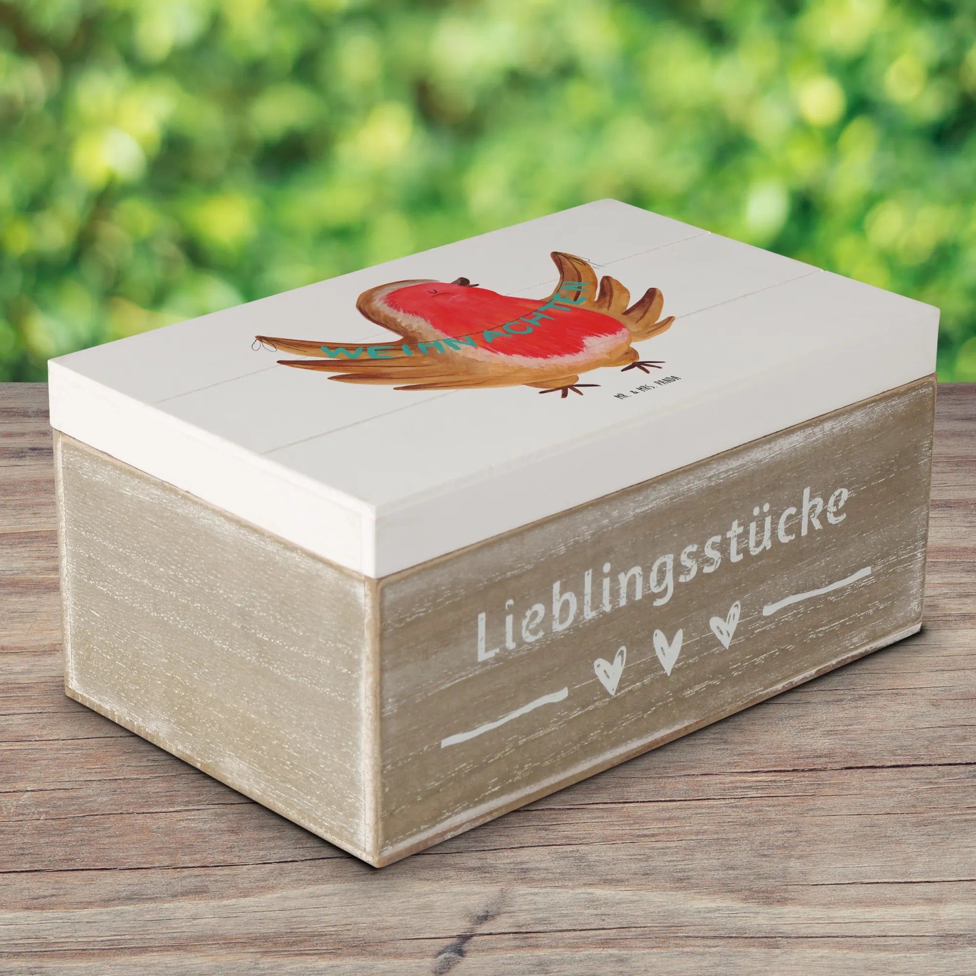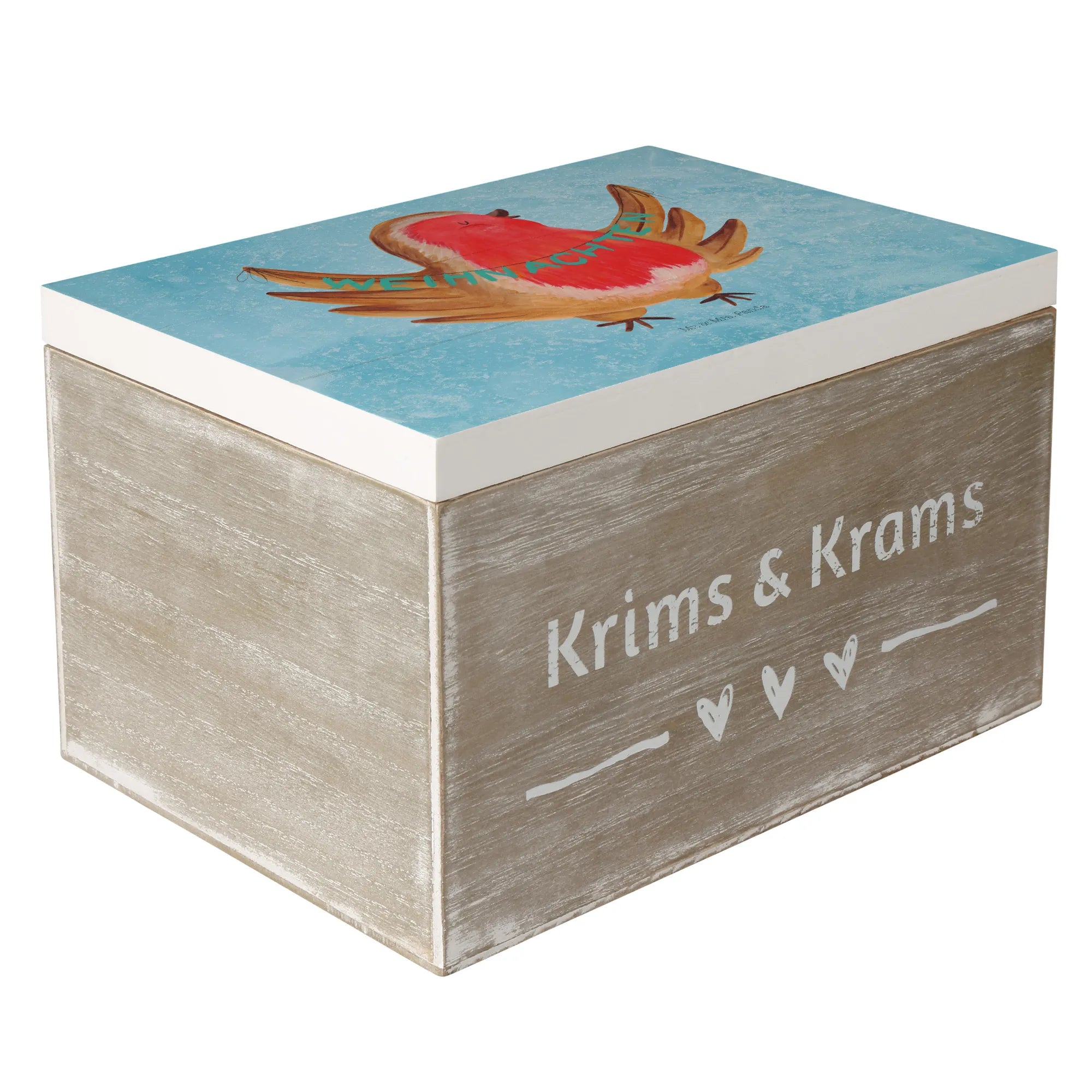 Skrzynia drewniana rudzik Boże Narodzenie - 22 x 15 cm - z napisem - biały
