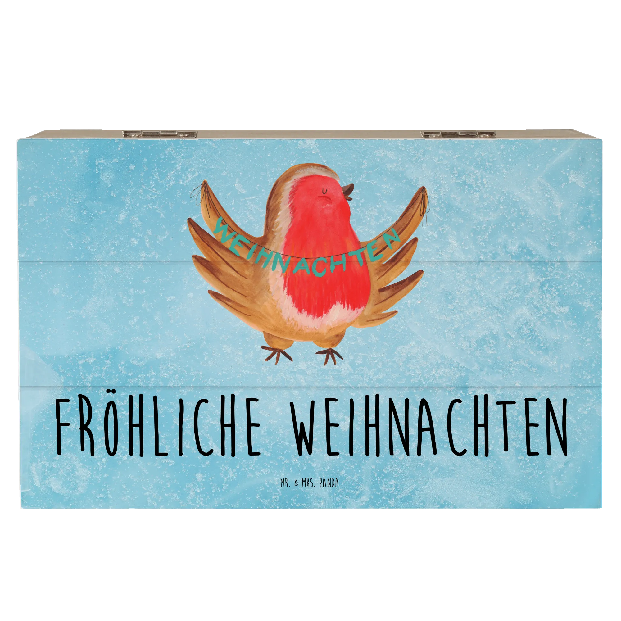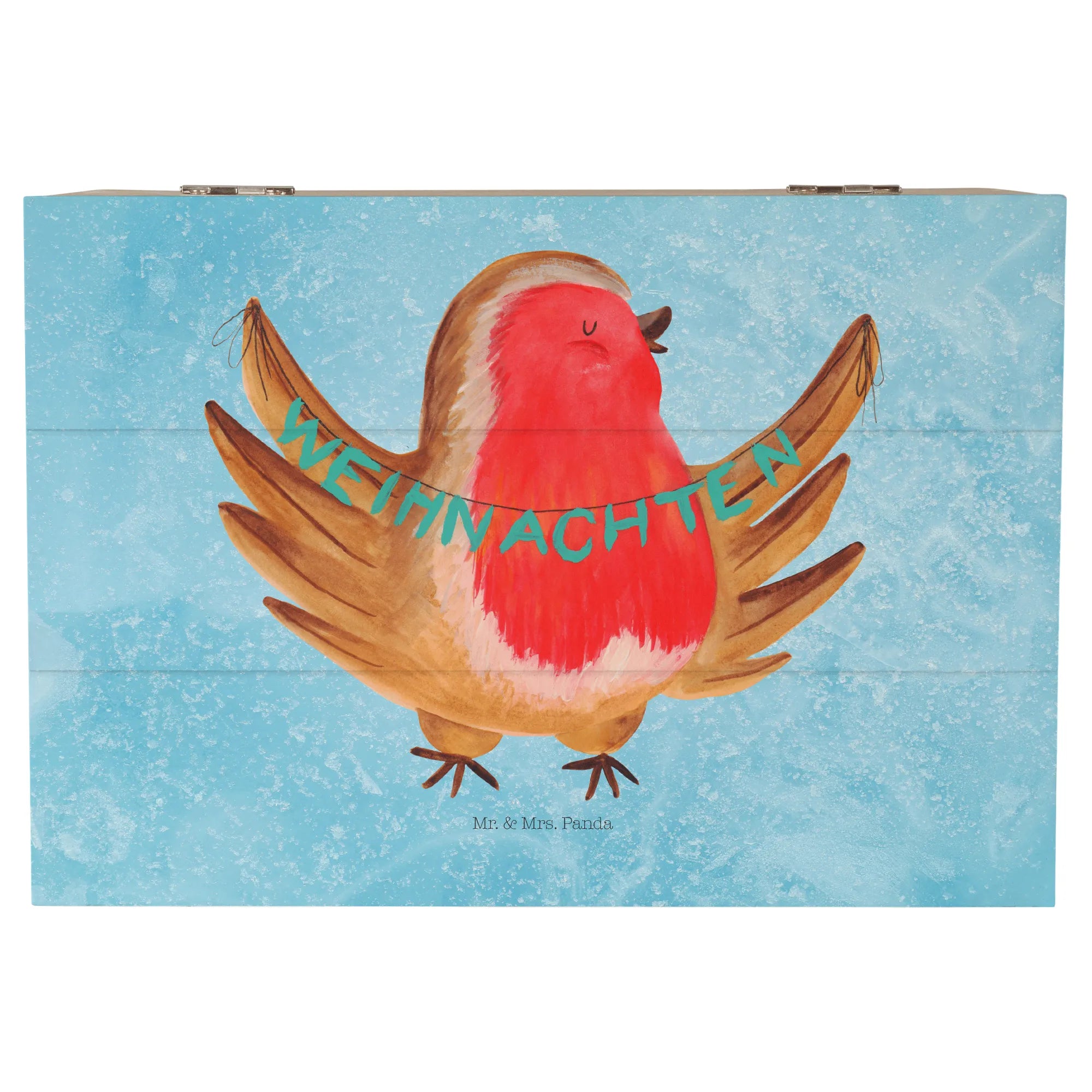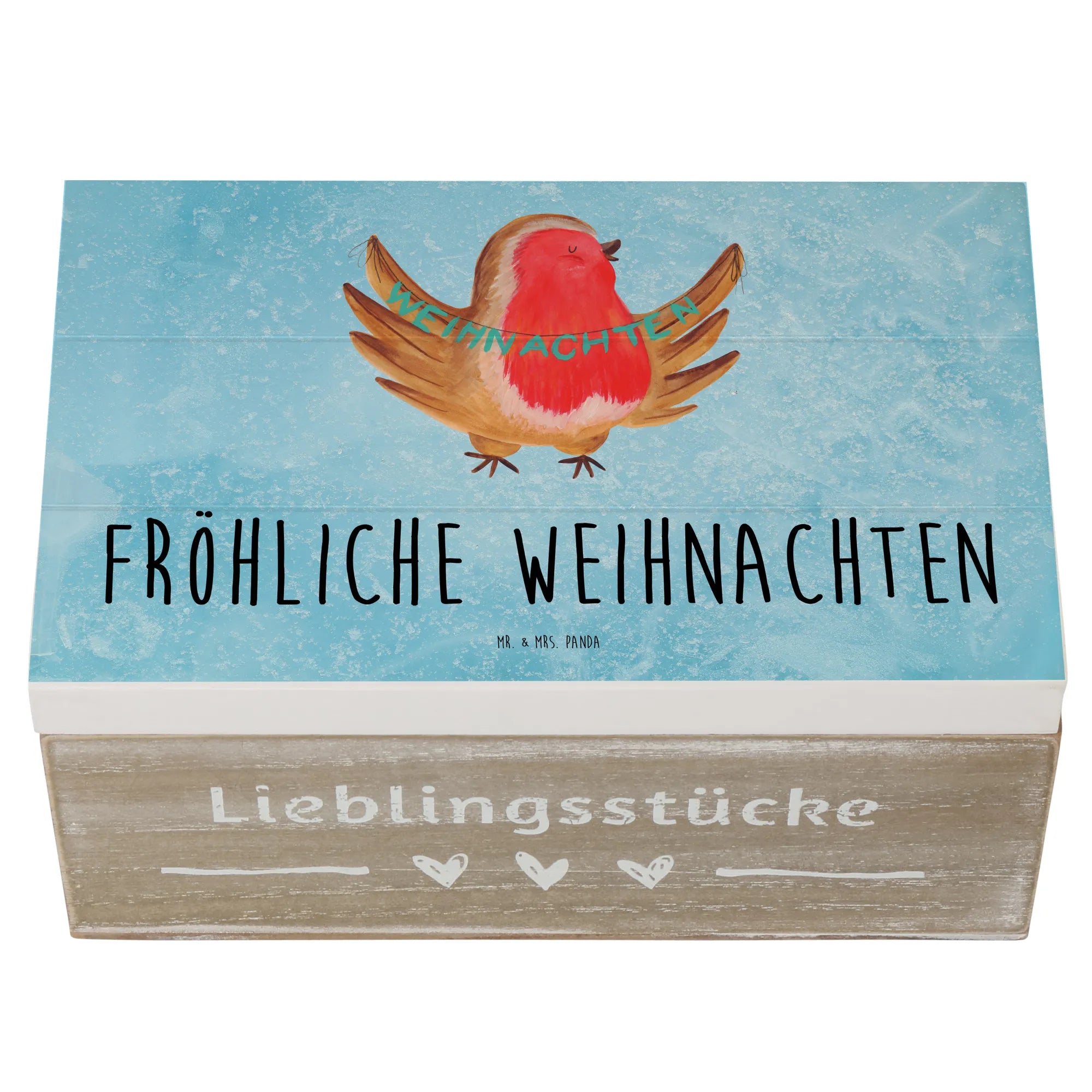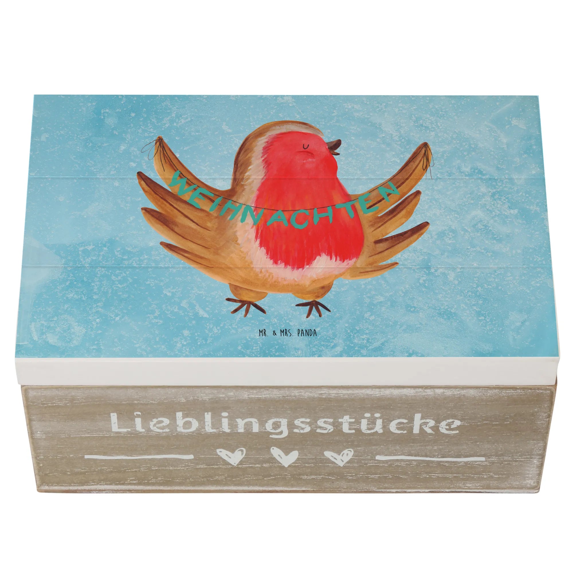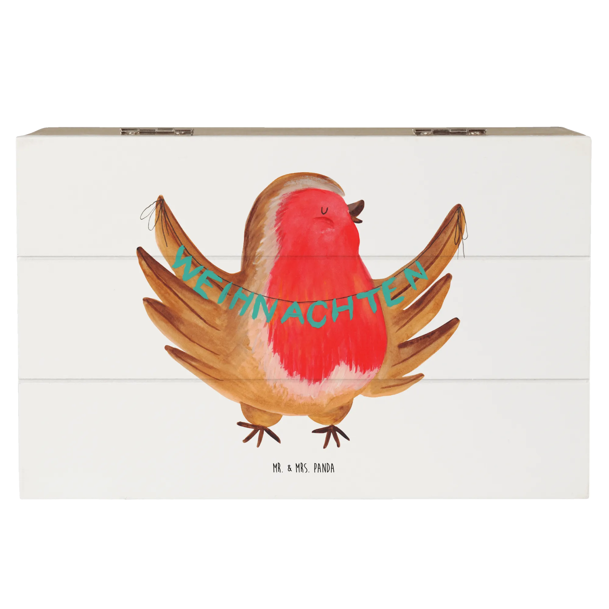 Skrzynia drewniana rudzik Boże Narodzenie - 22 x 15 cm - z napisem - biały
