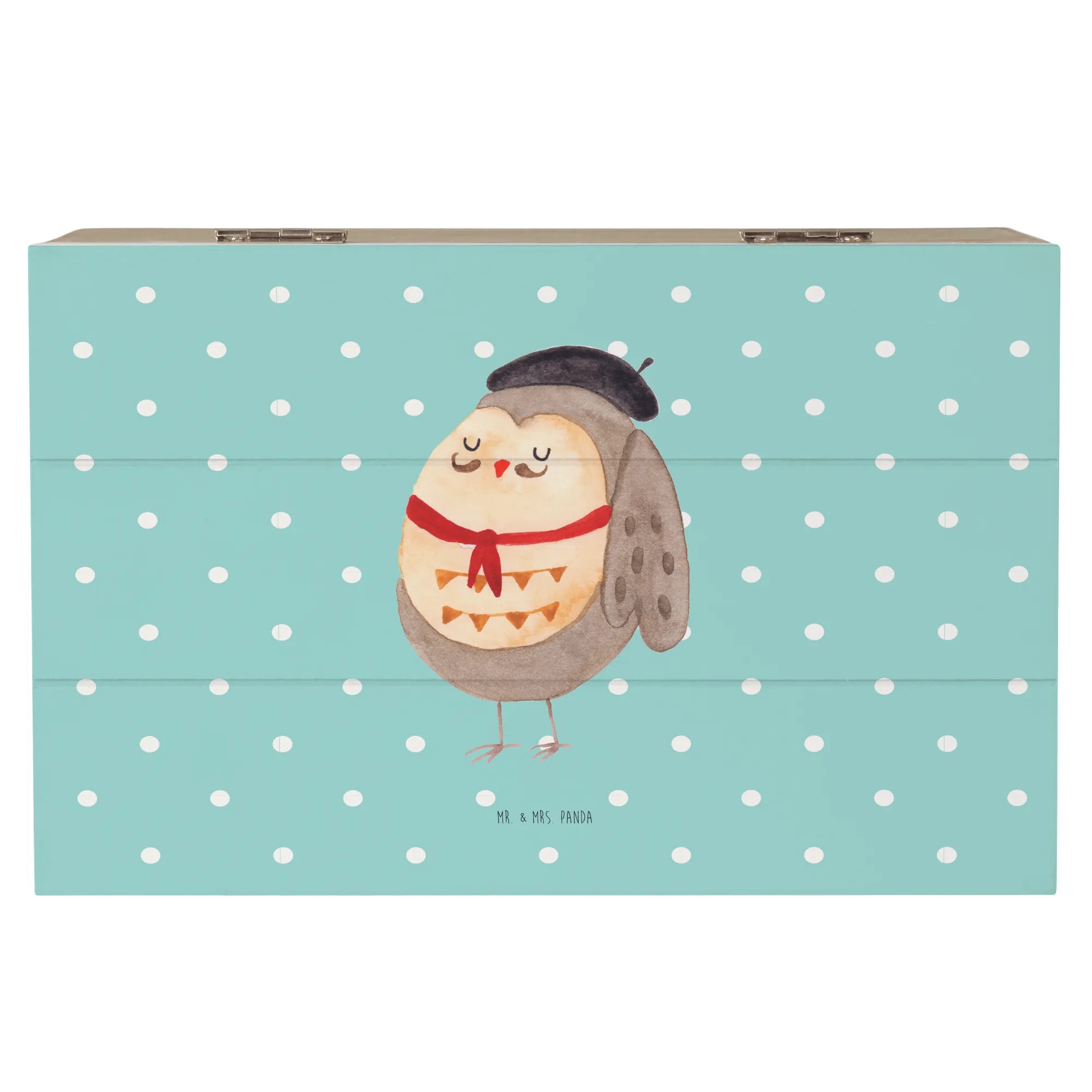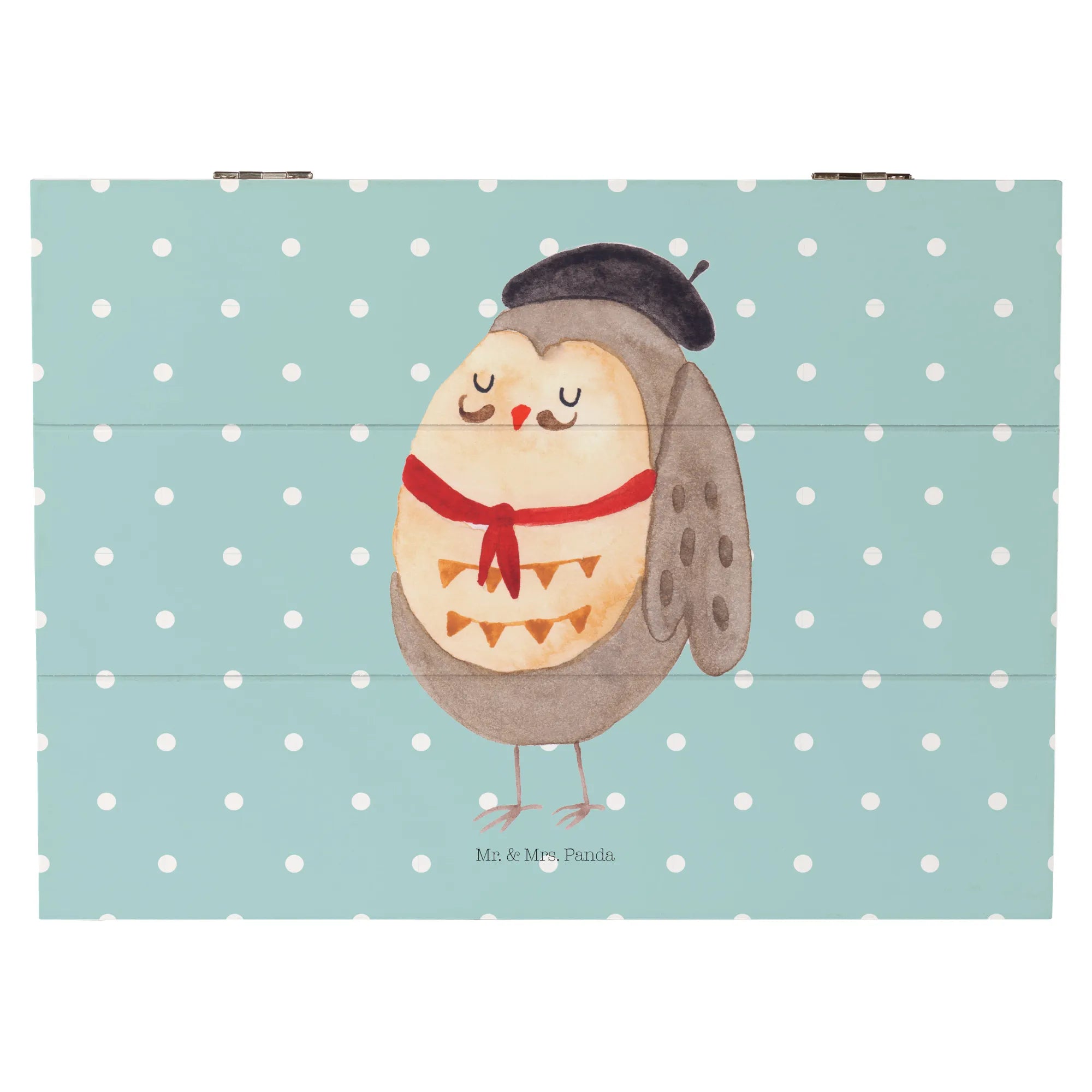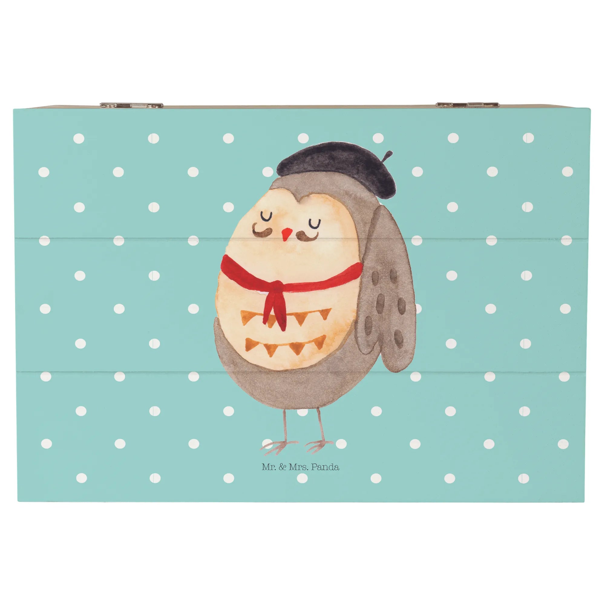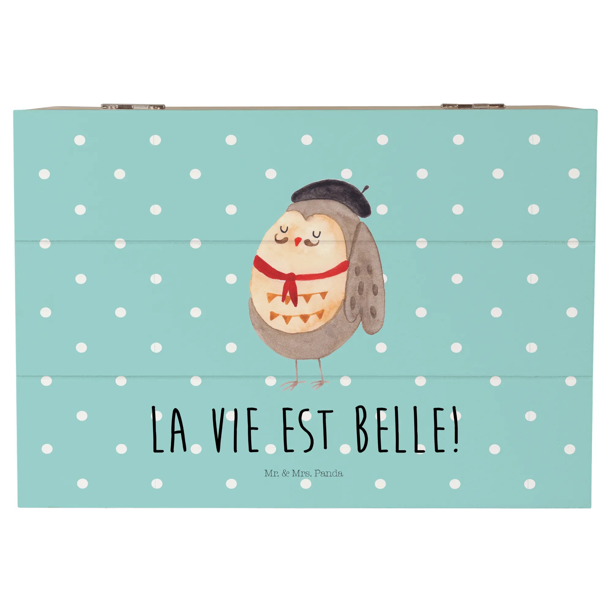 Skrzynia drewniana sowa Francja - 22 x 15 cm - z napisem - pastelowy turkus