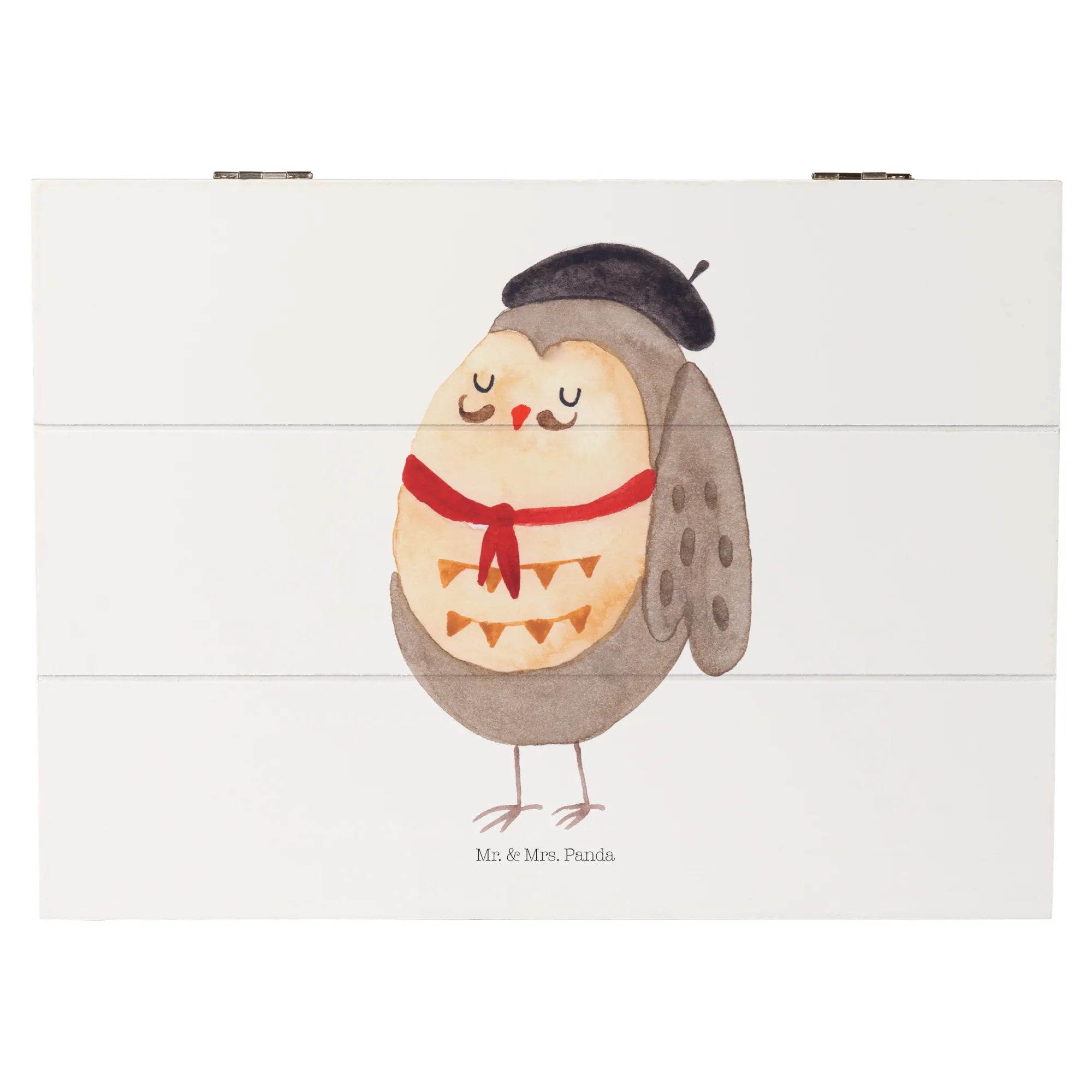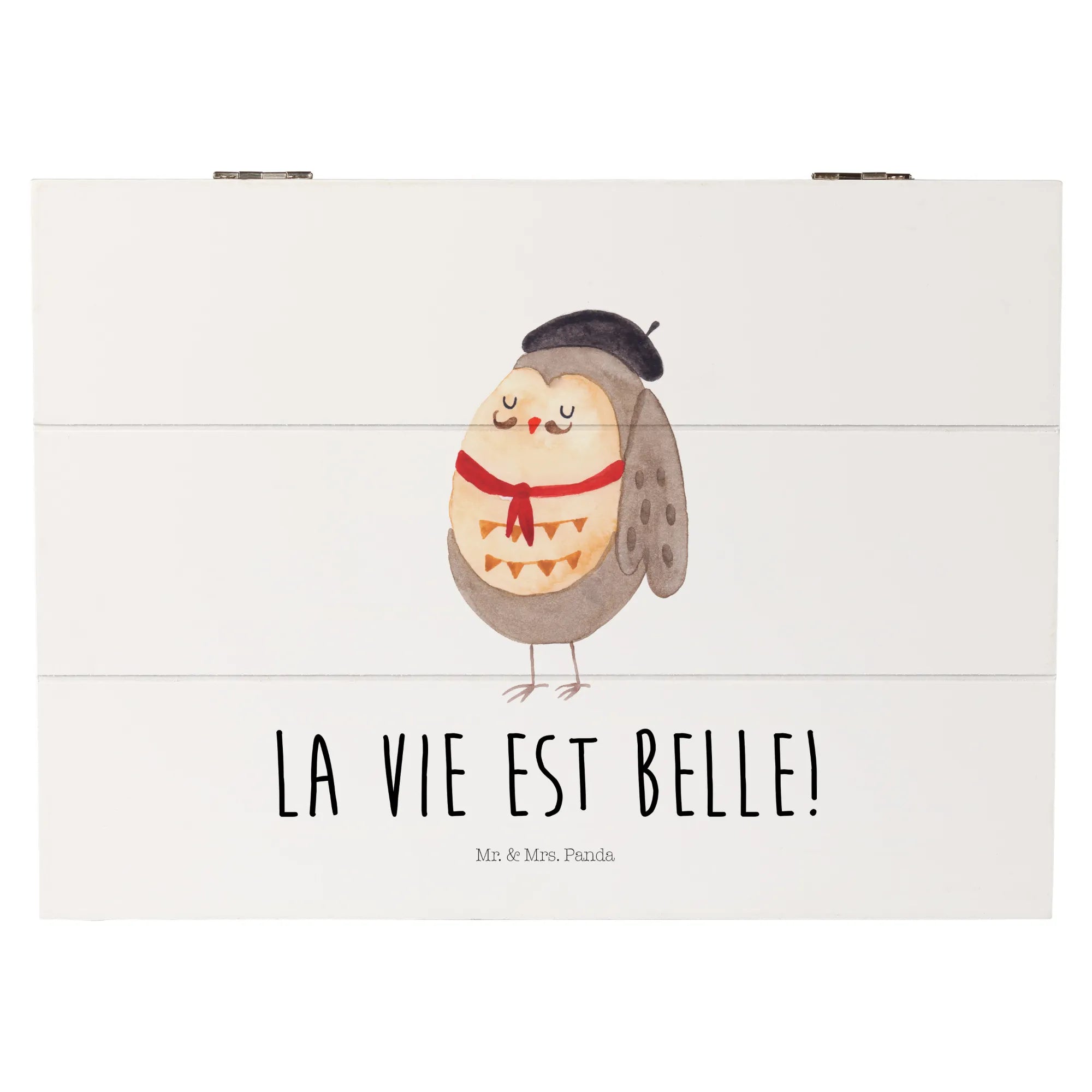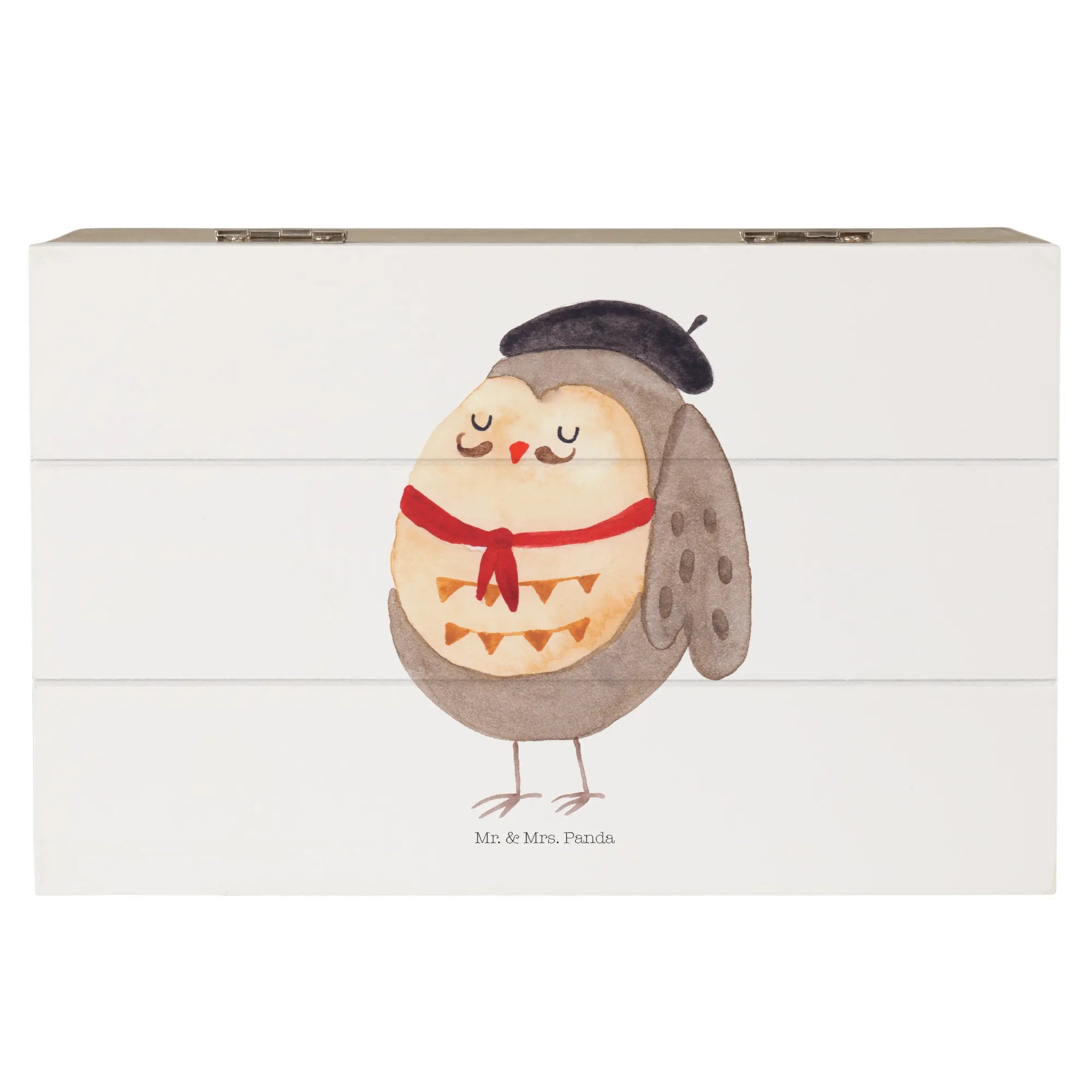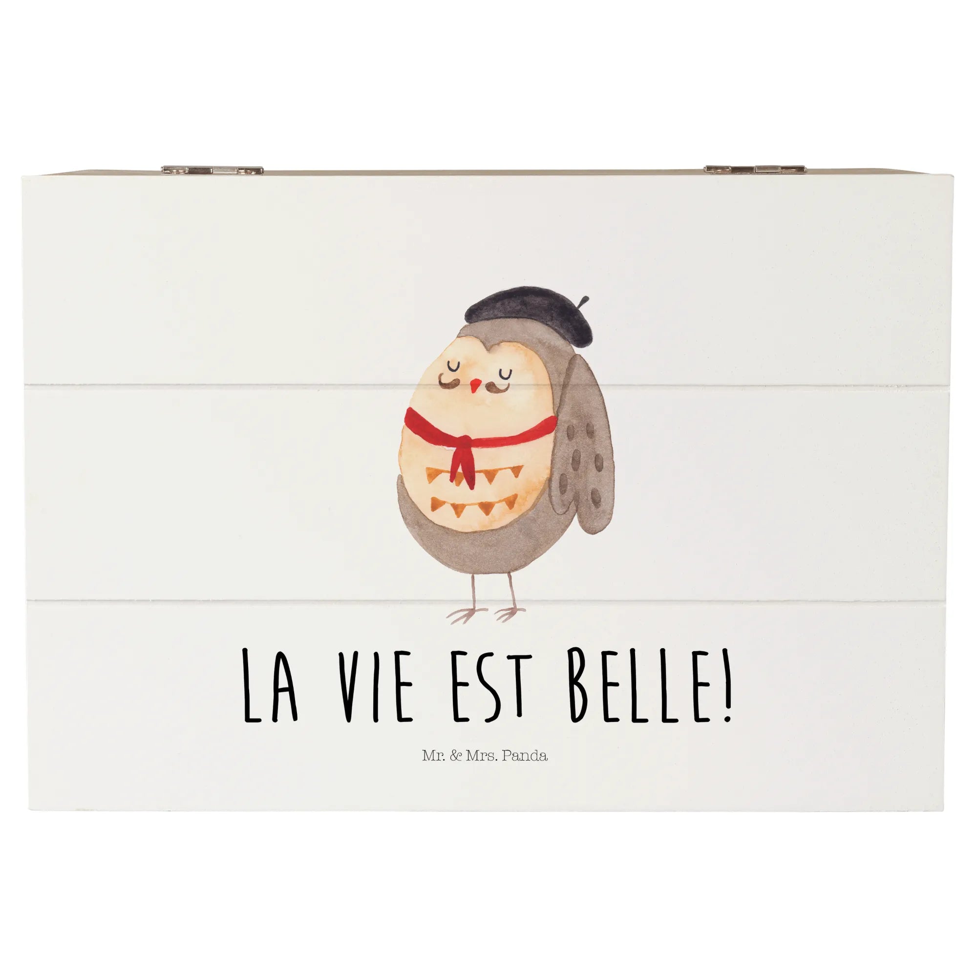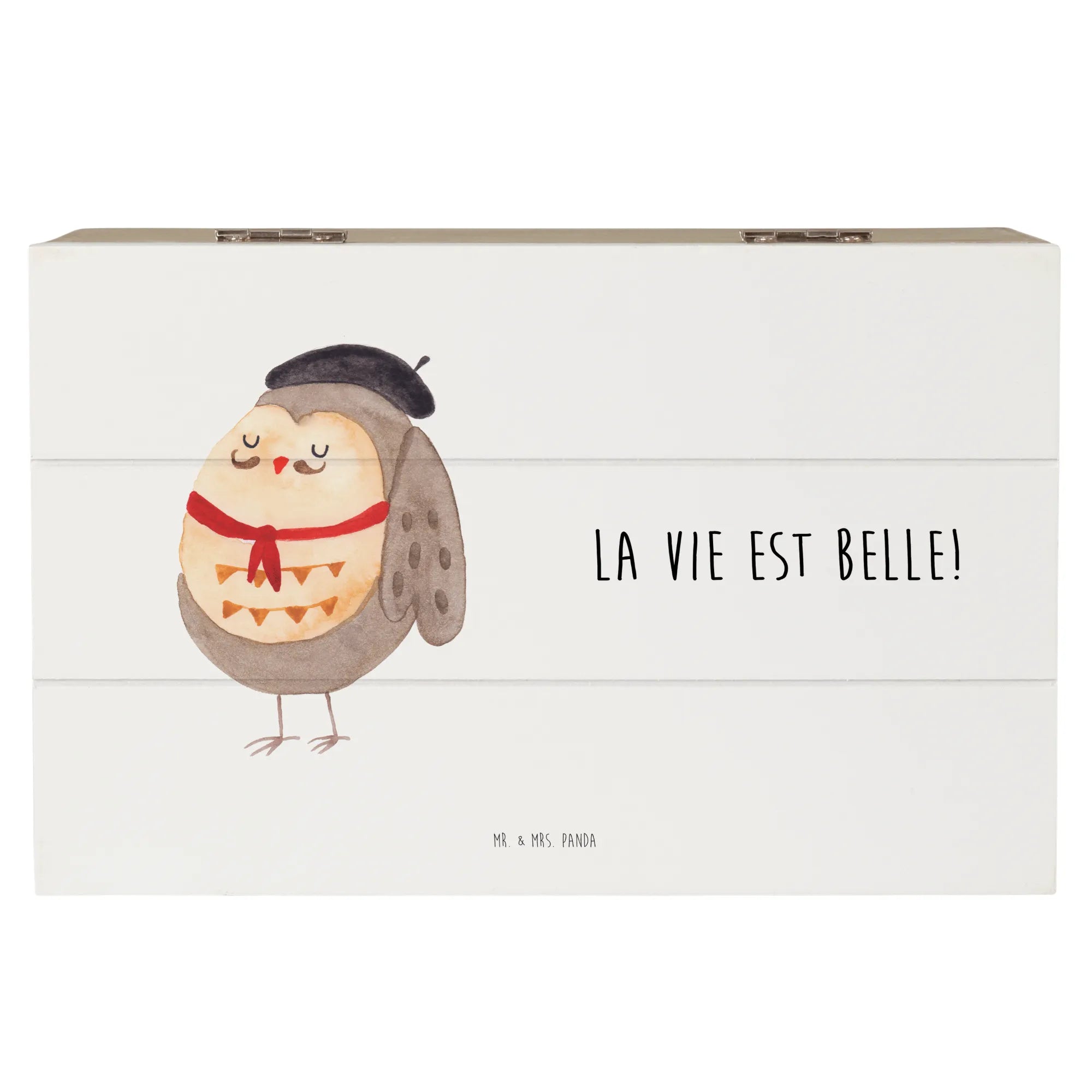 Skrzynia drewniana sowa Francja - 22 x 15 cm - z napisem - pastelowy turkus