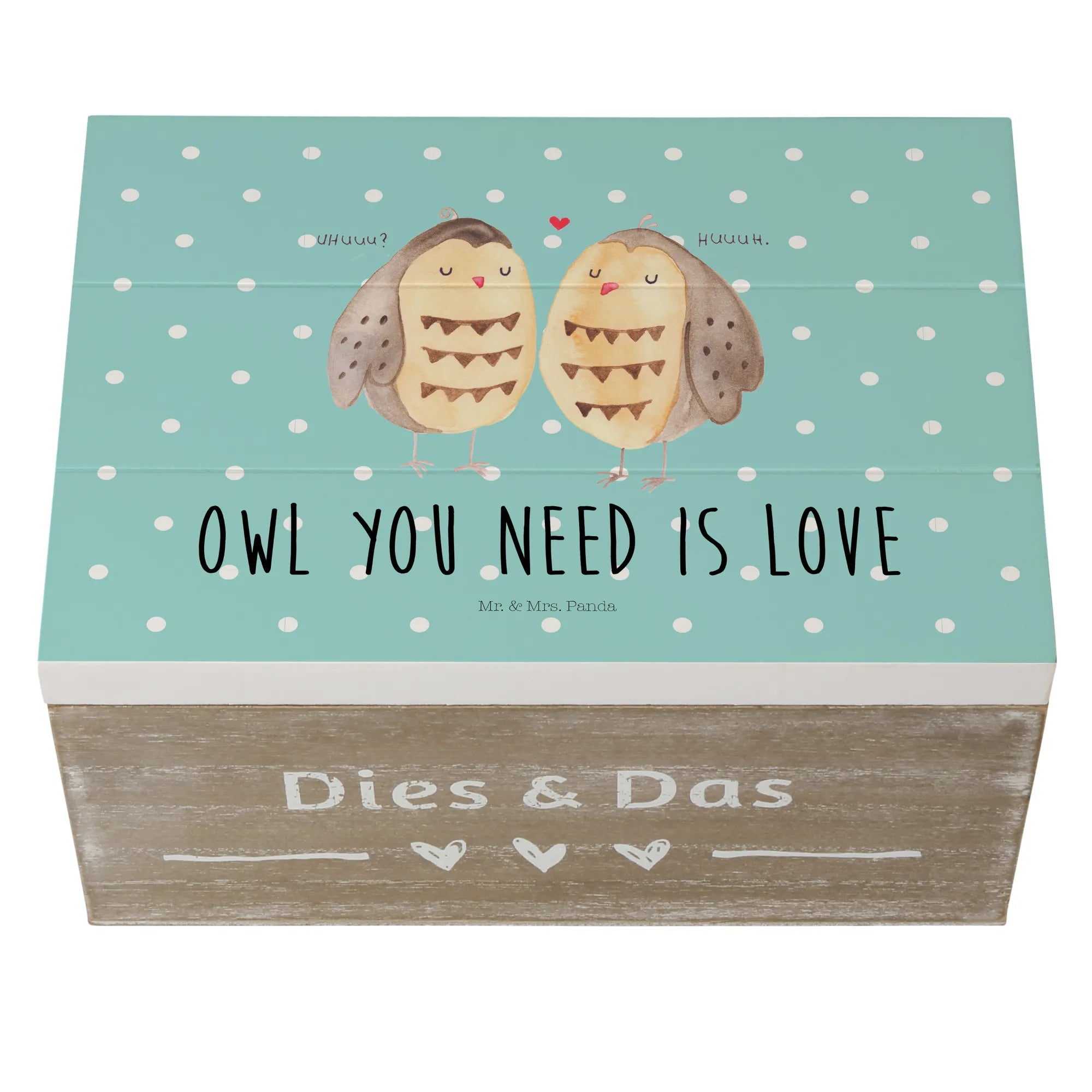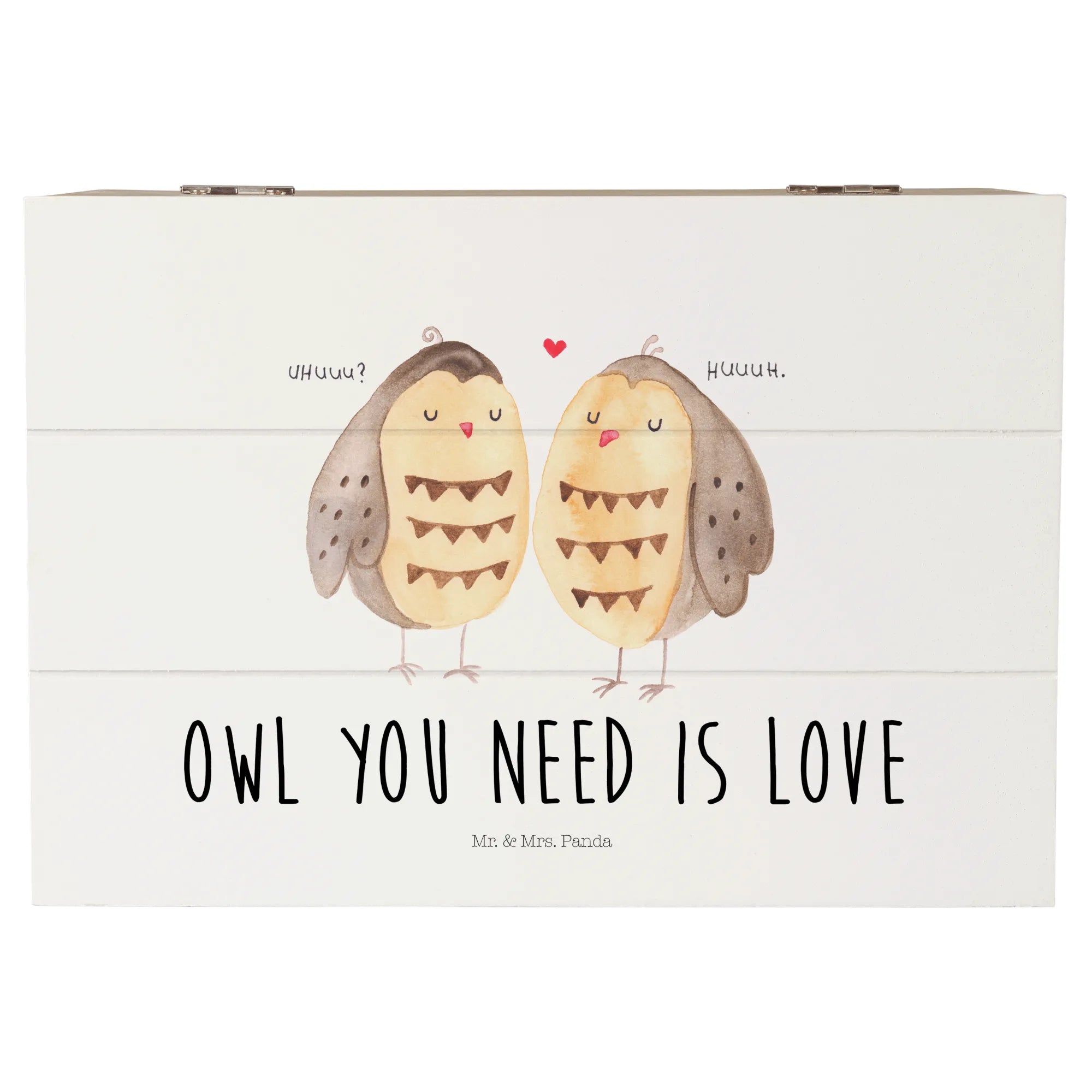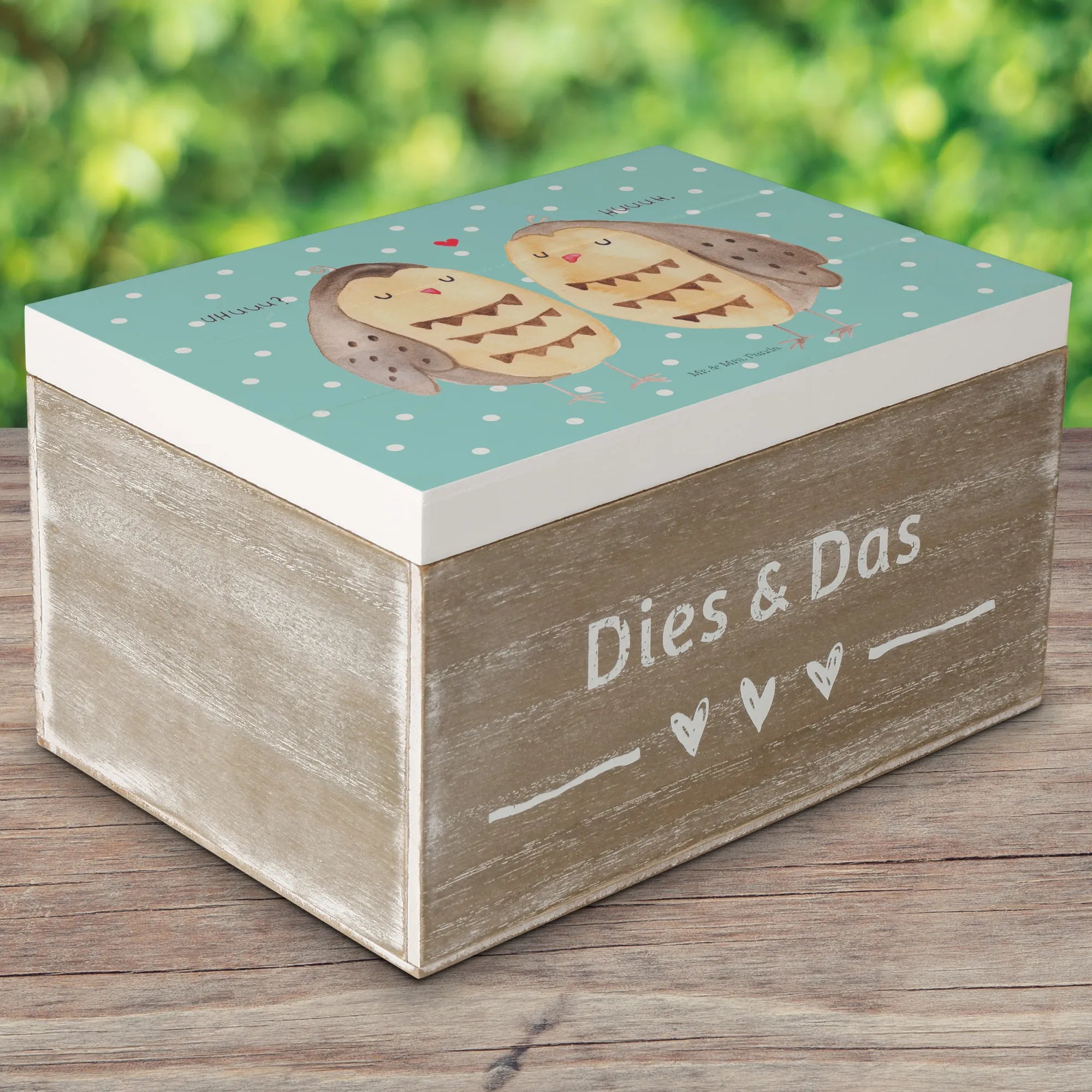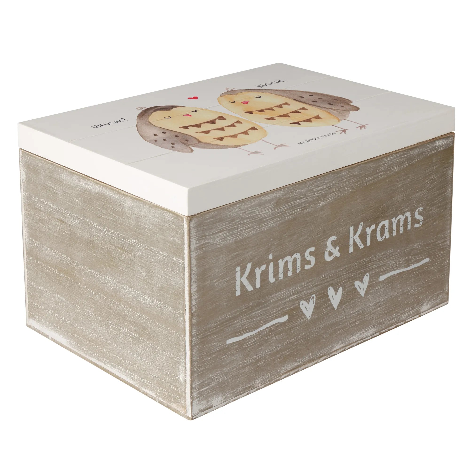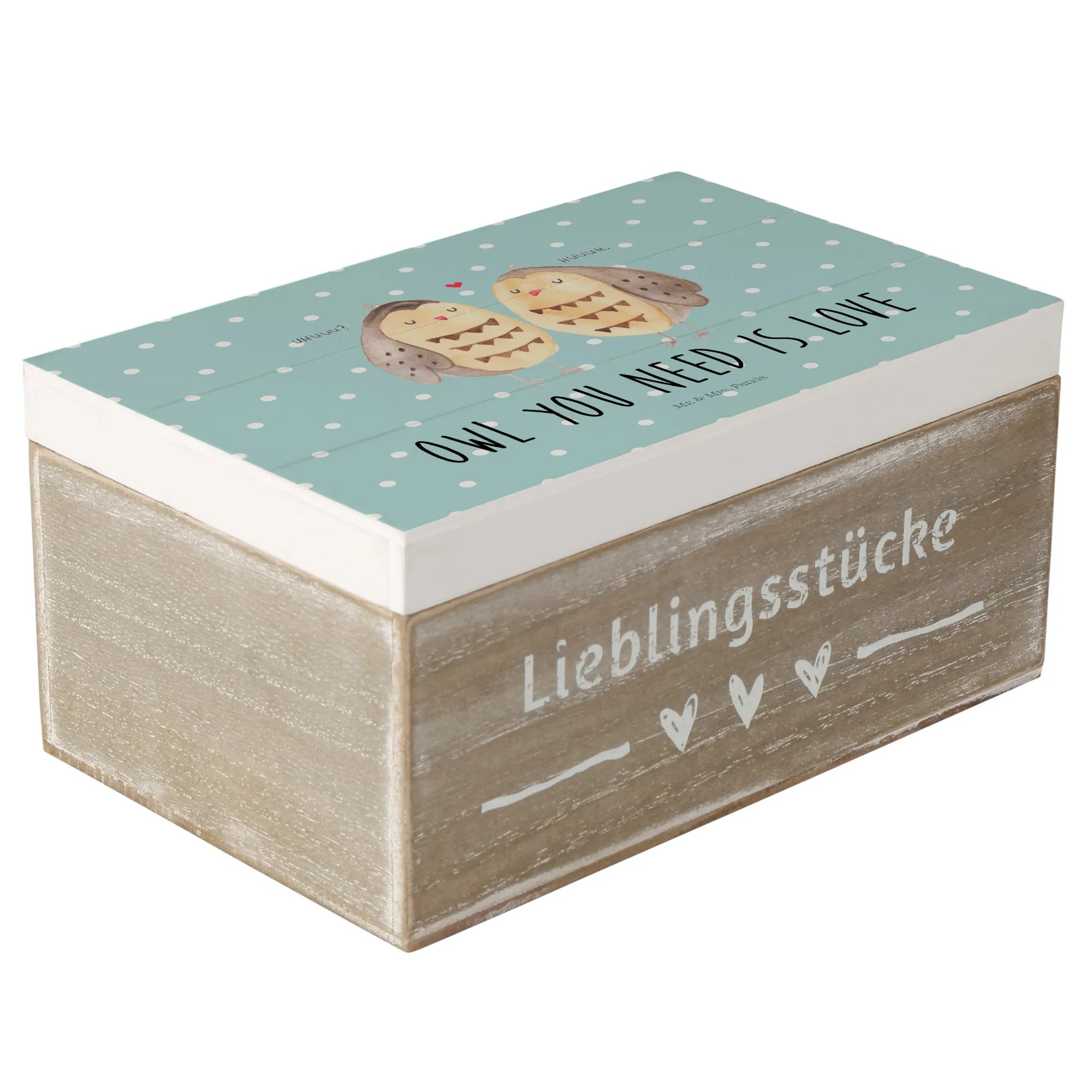 Skrzynia drewniana sowy miłość - 22 x 15 cm - z napisem - biały
