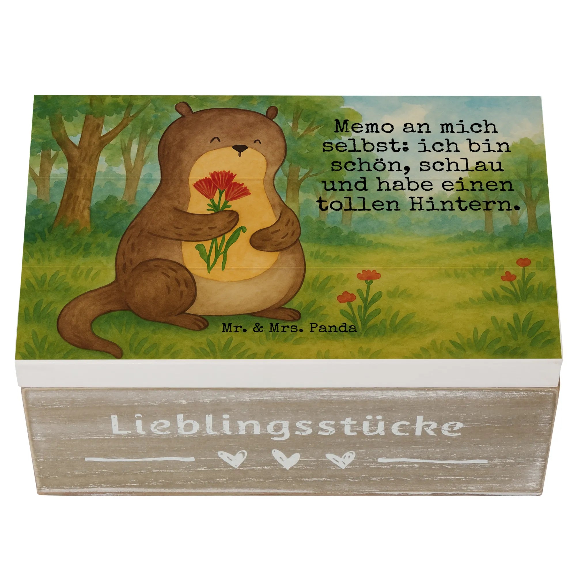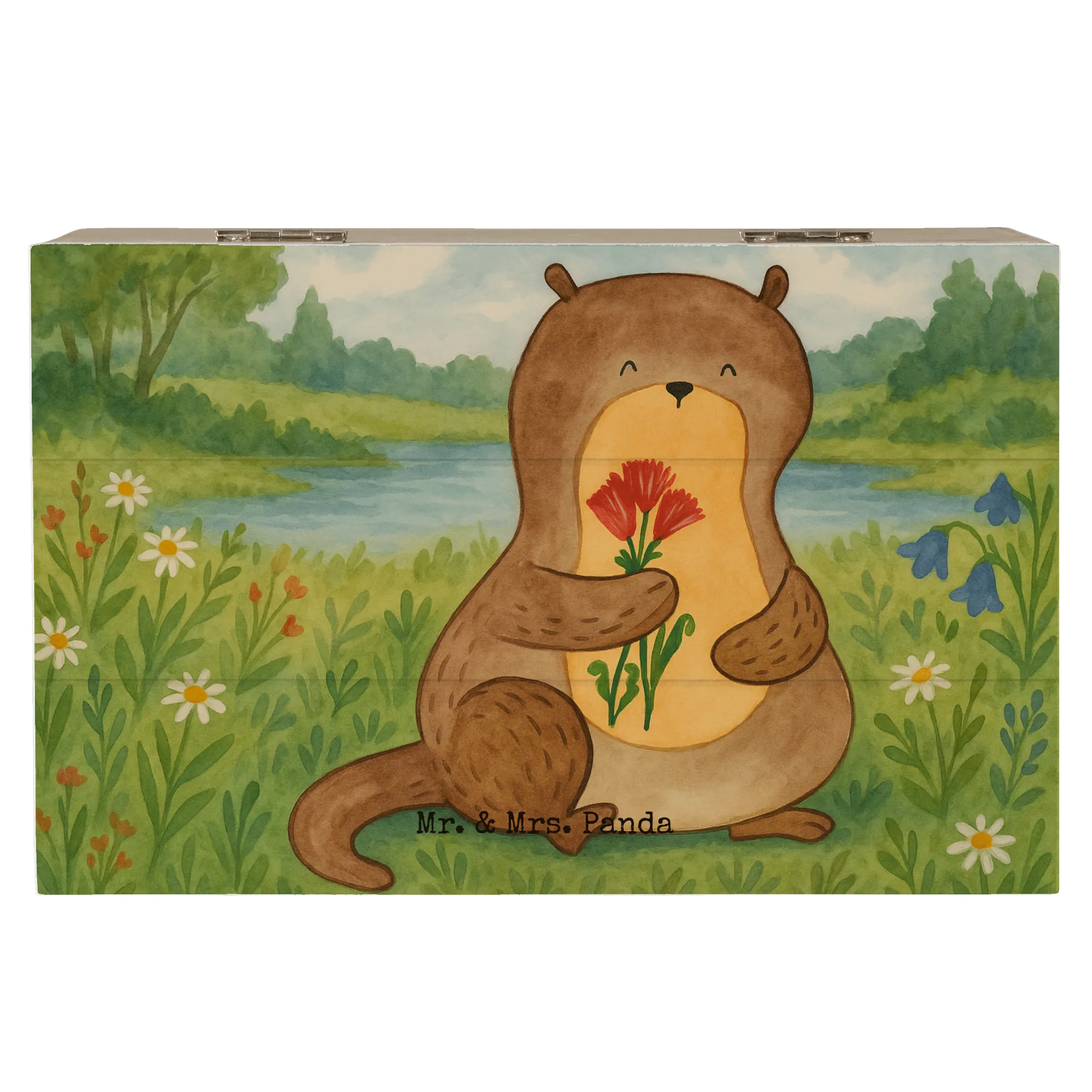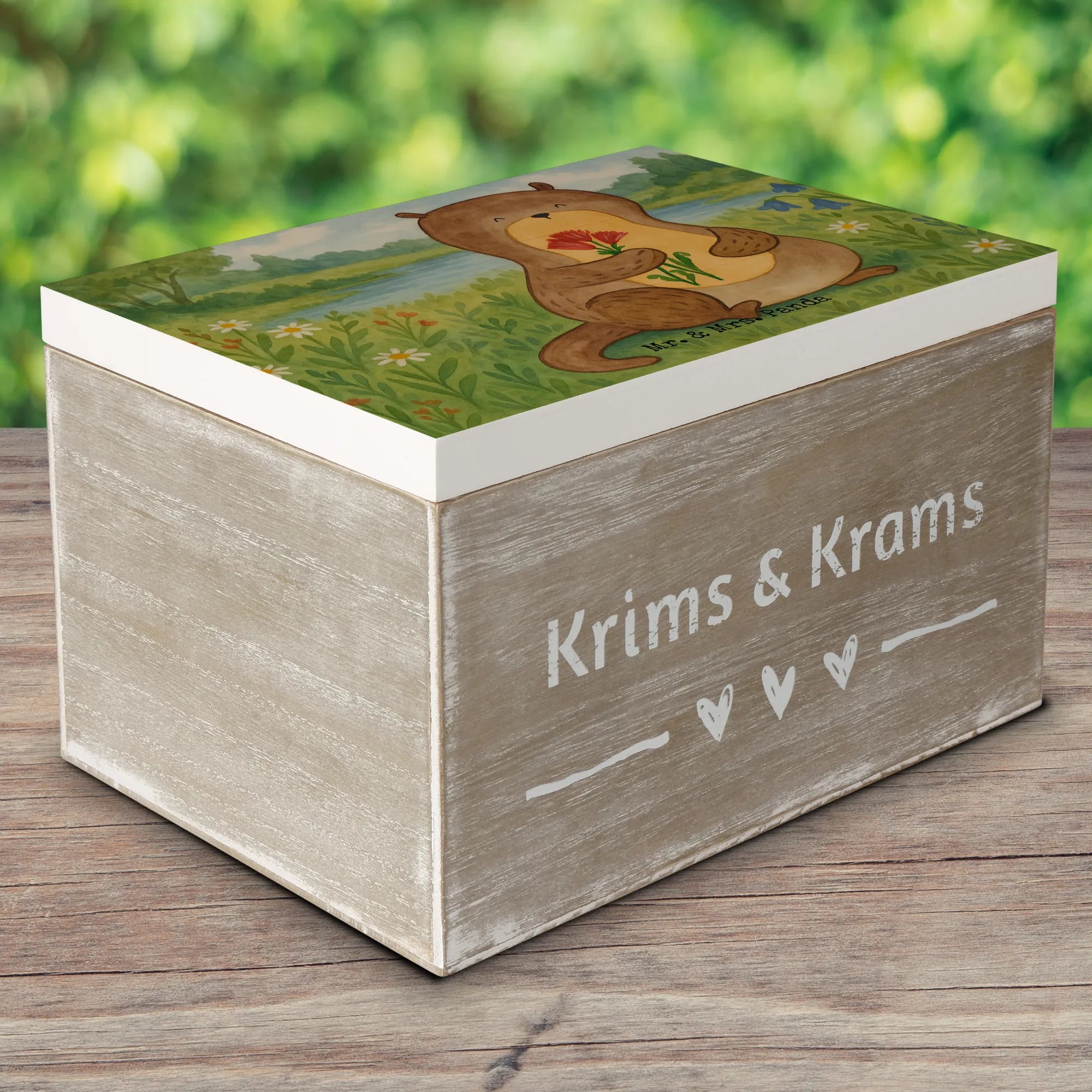 Skrzynia drewniana wydra bukiet kwiatów Design - 22 x 15 cm - z napisem