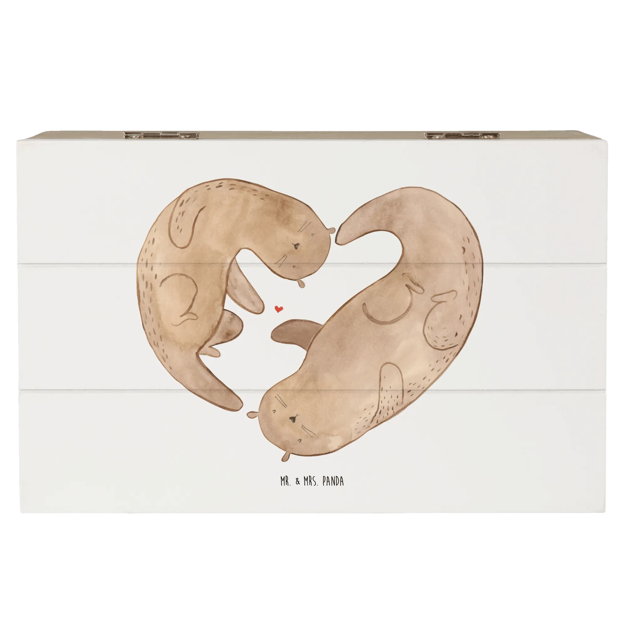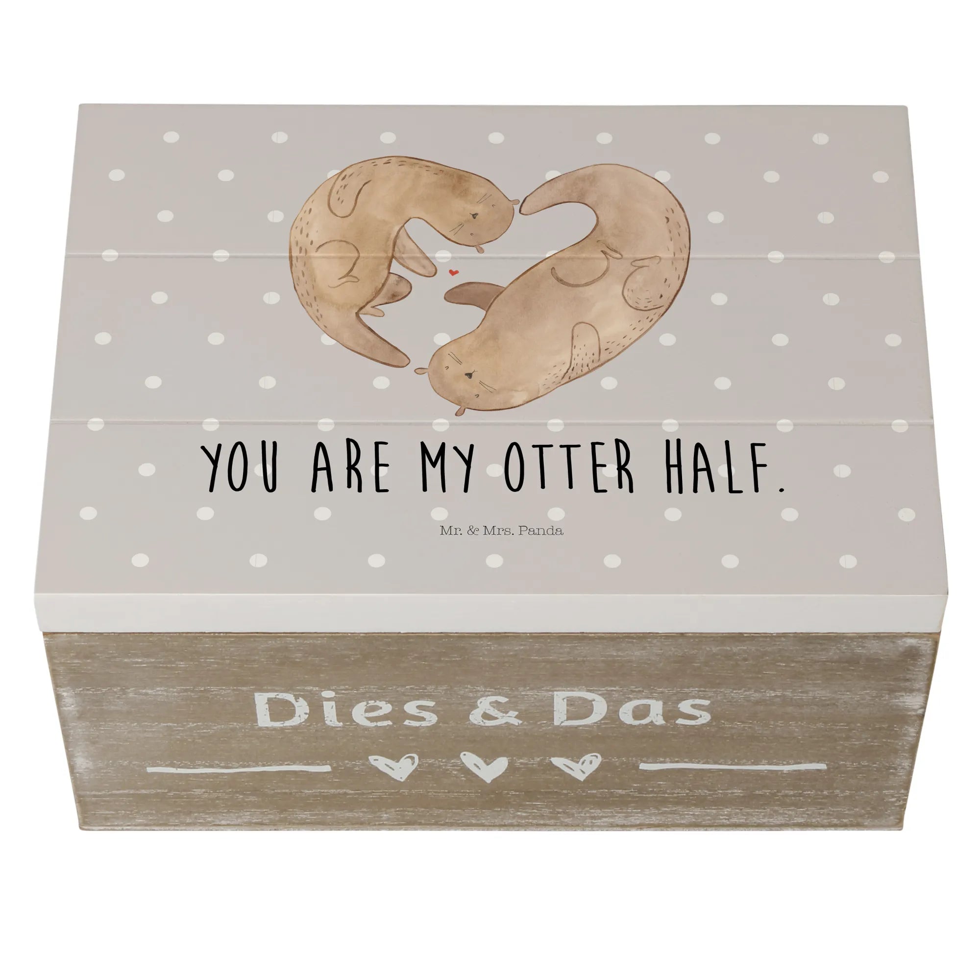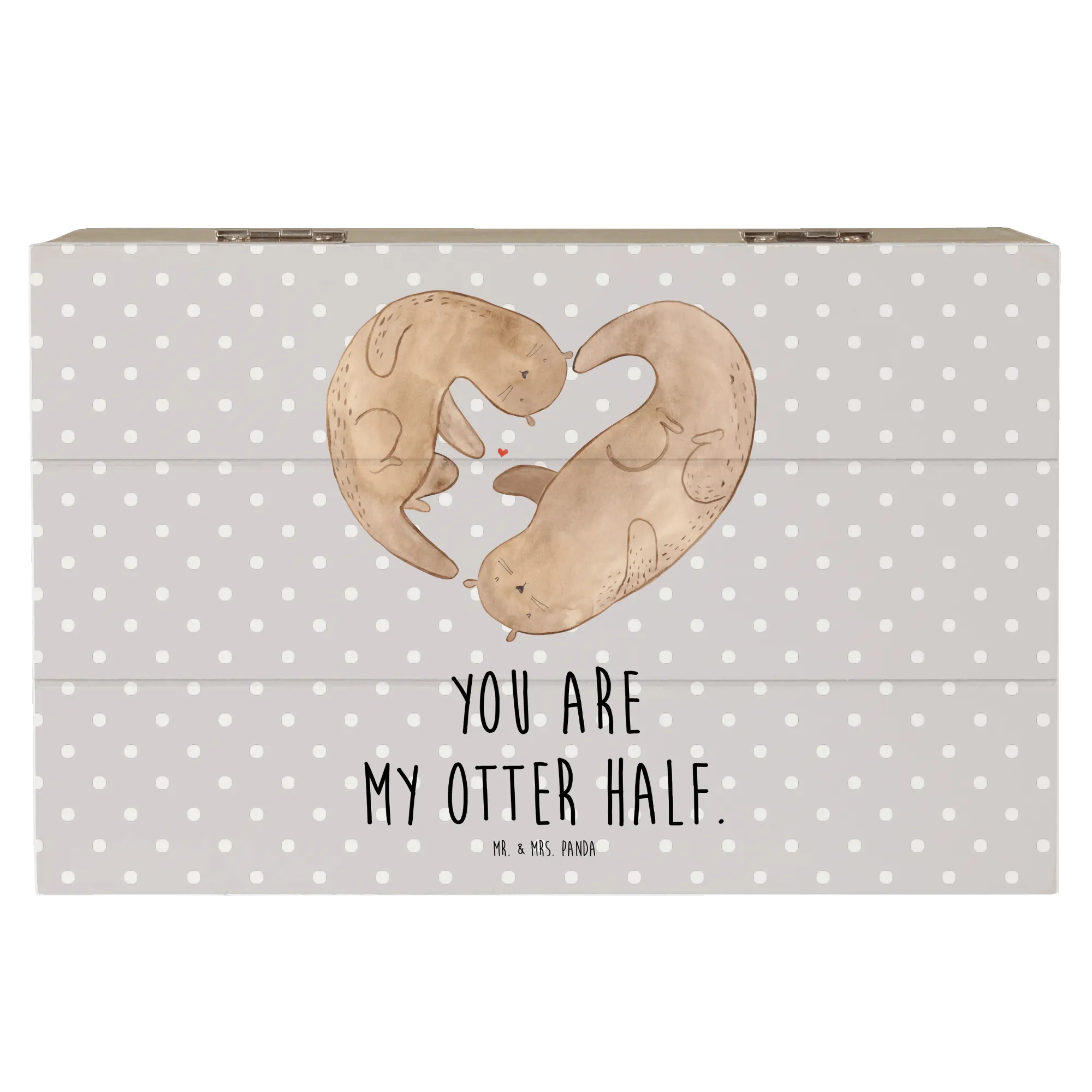 Skrzynia drewniana wydra serce - 22 x 15 cm - z napisem - Pastelowy szary
