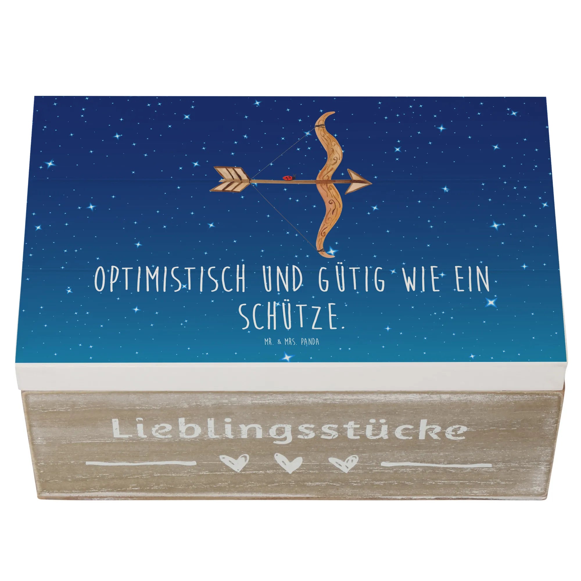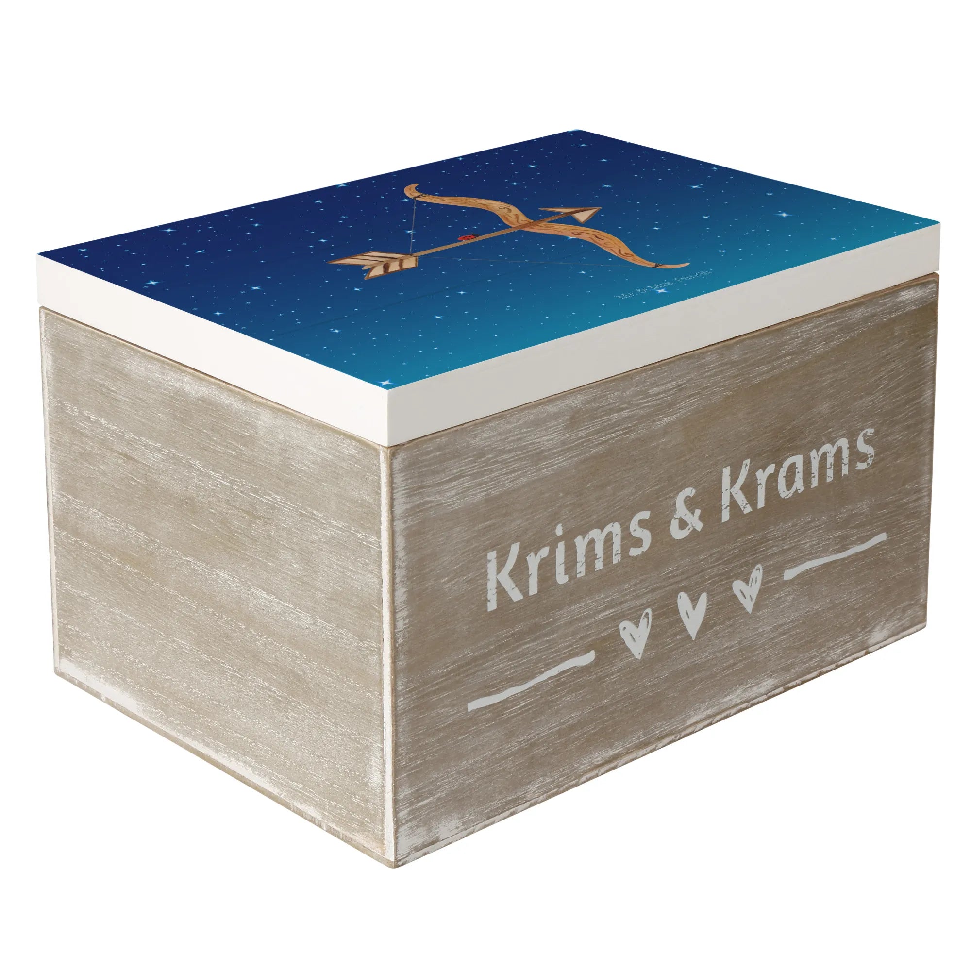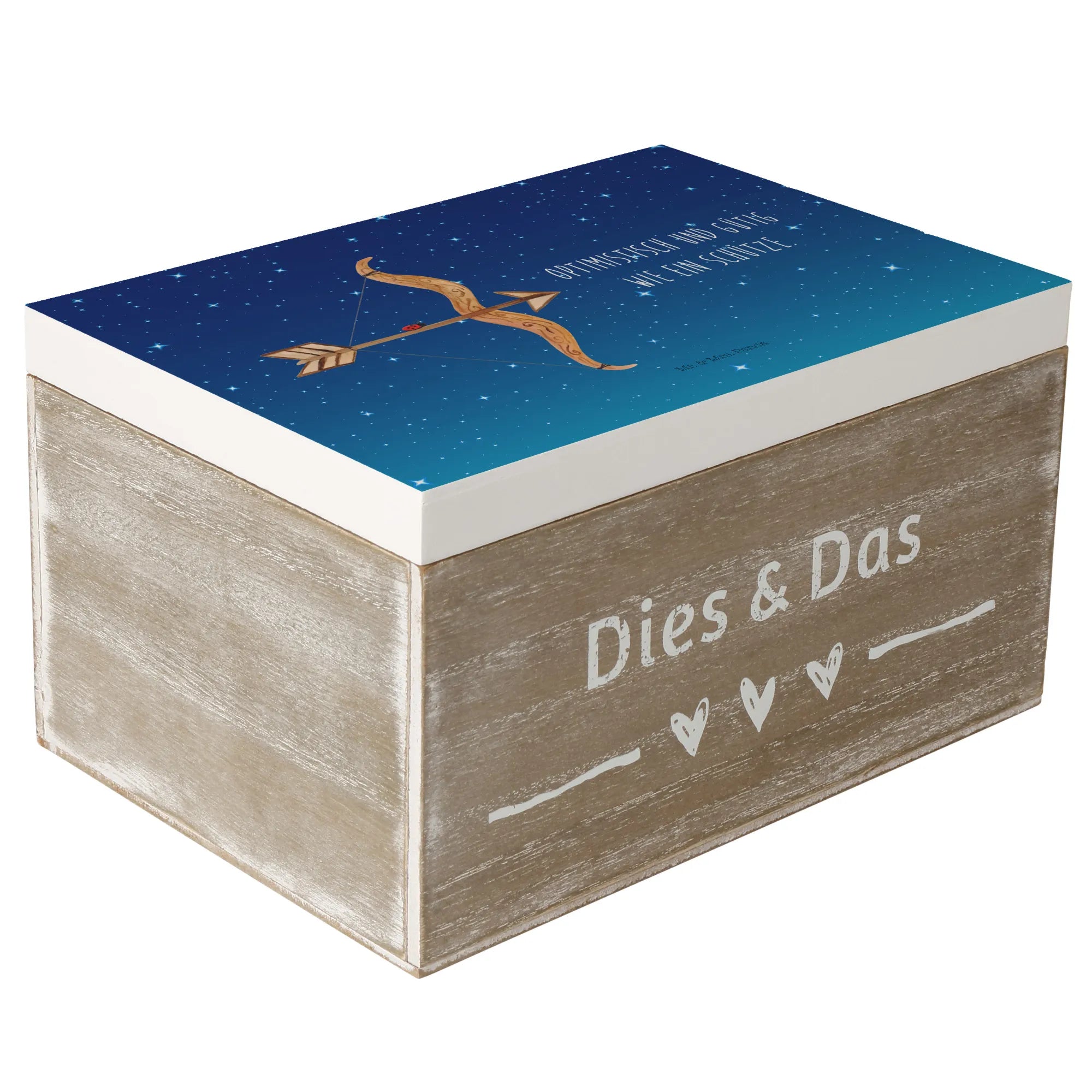 Skrzynia drewniana Znak zodiaku Strzelec - 22 x 15 cm - z napisem - biały