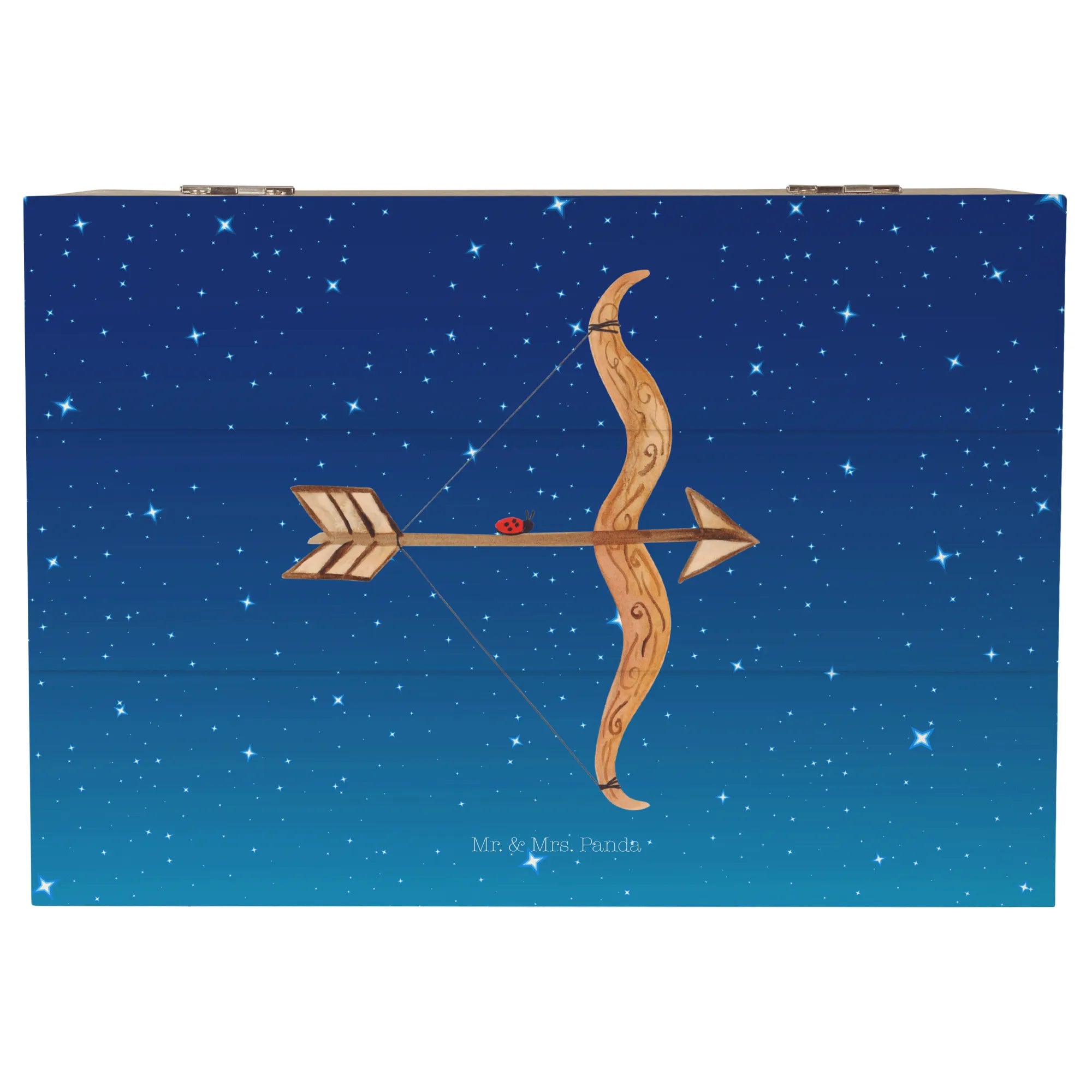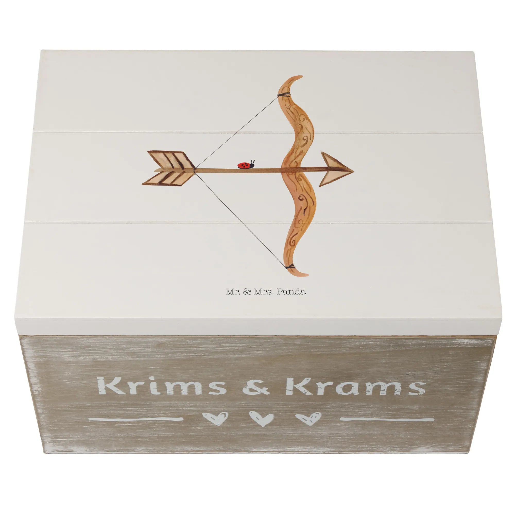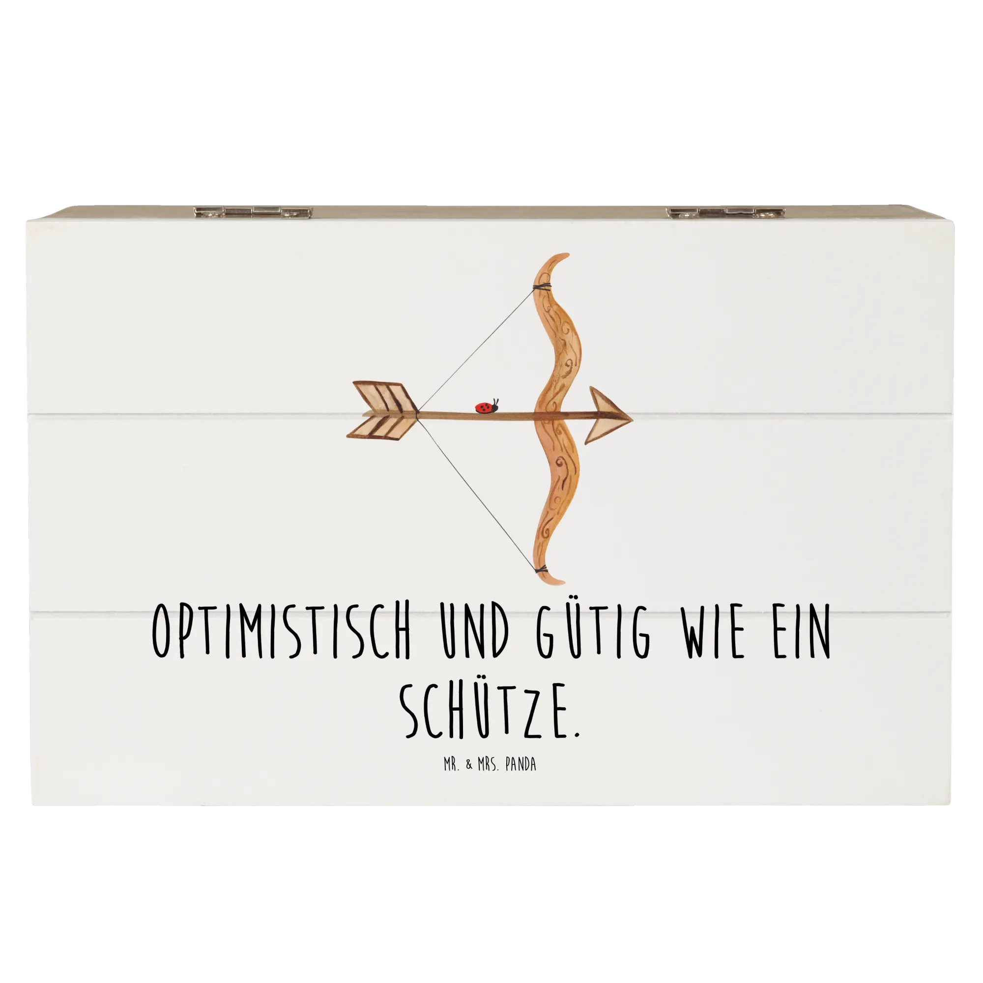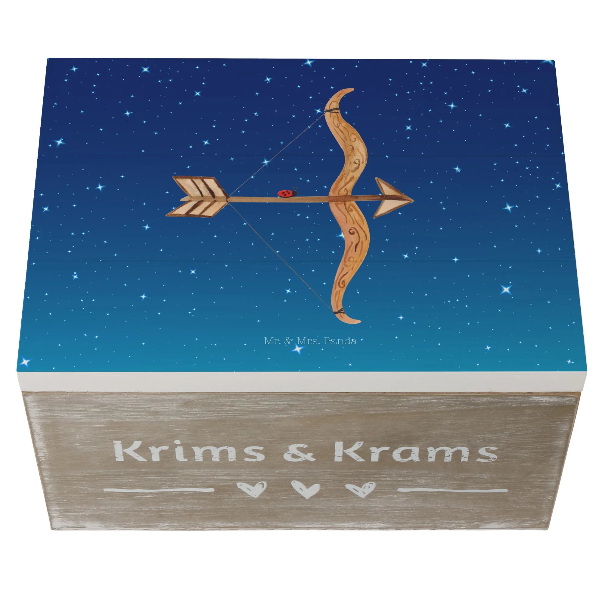 Skrzynia drewniana Znak zodiaku Strzelec - 22 x 15 cm - z napisem - biały